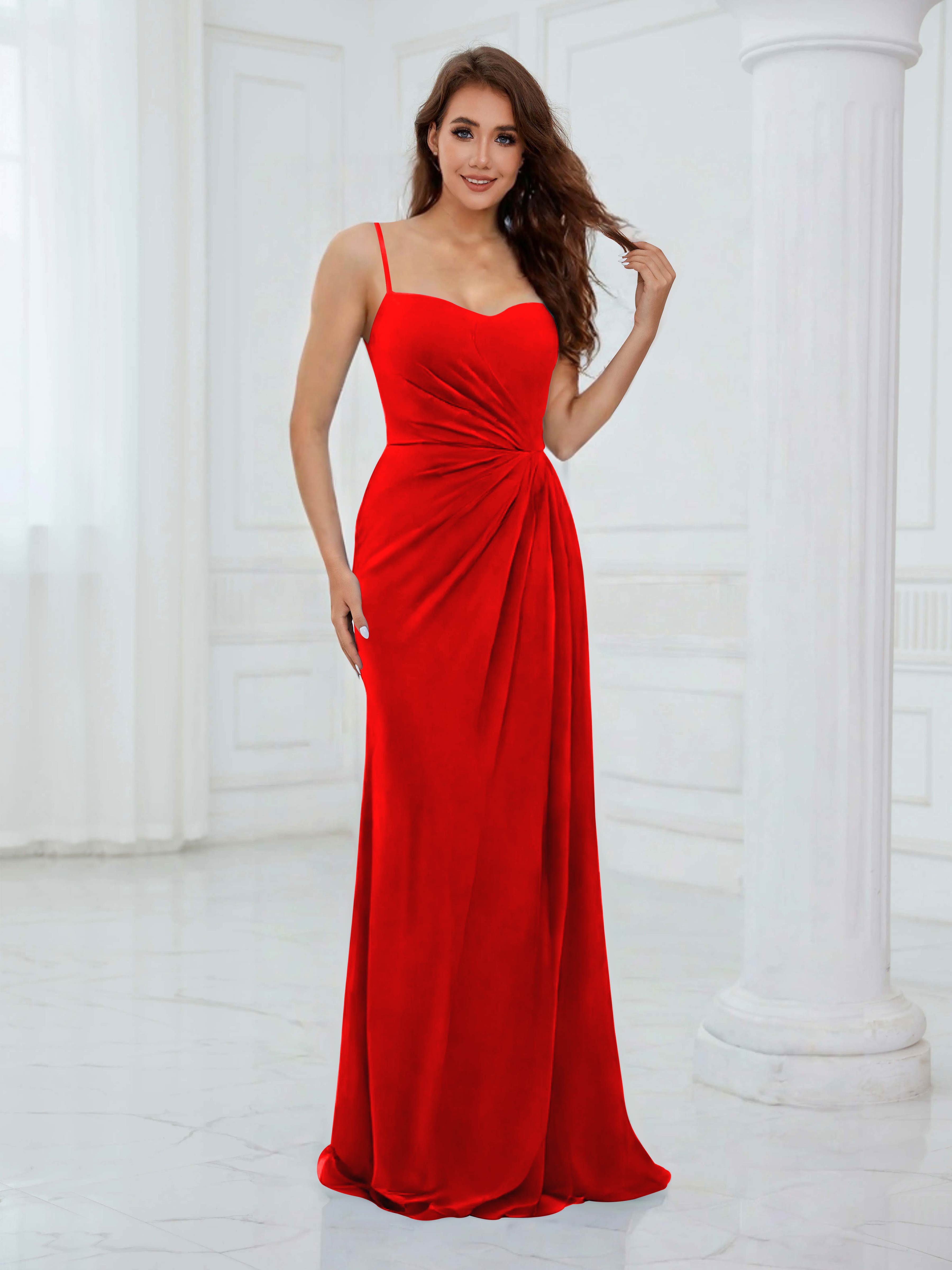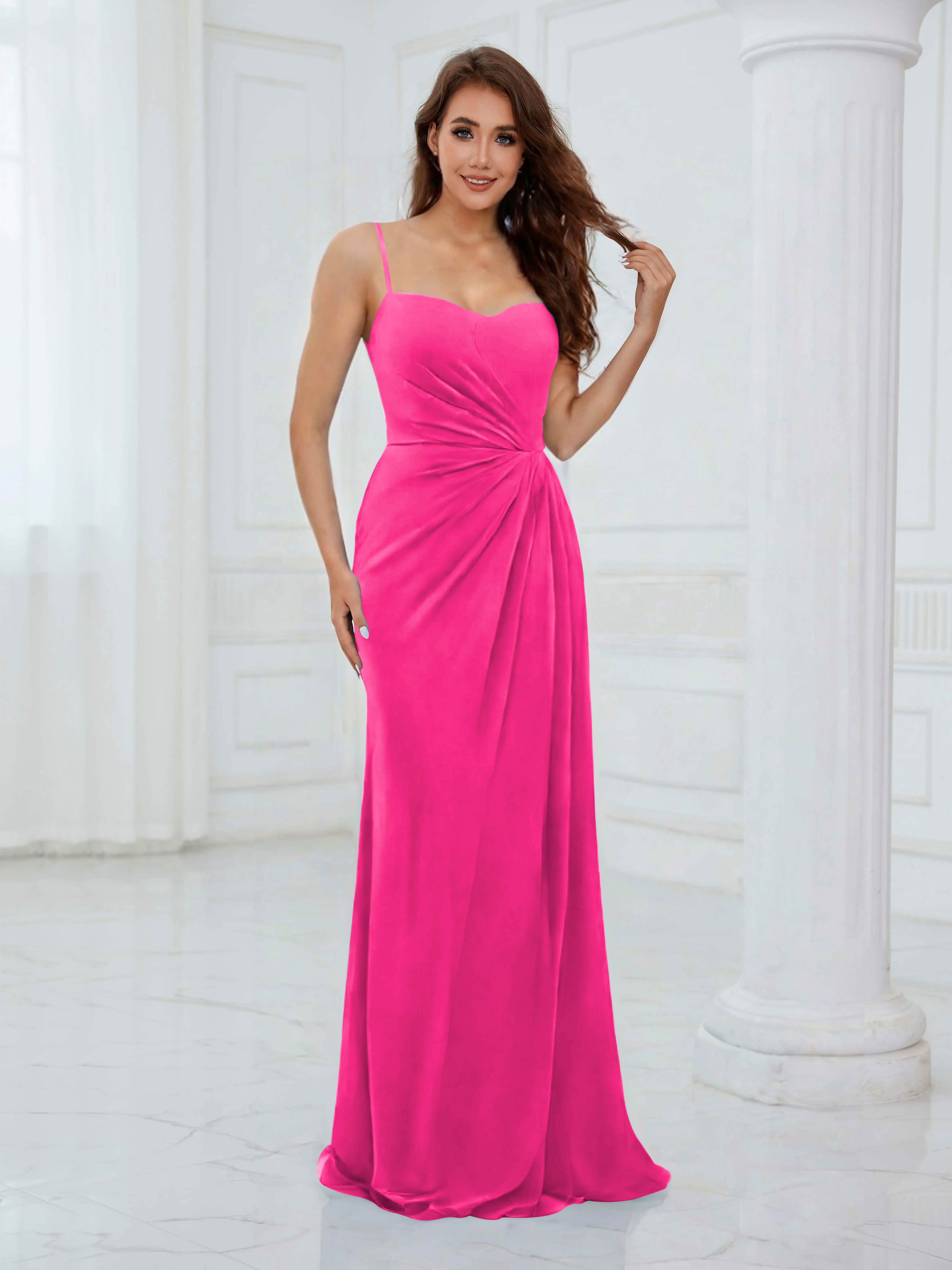 Rhea Trendy Spaghetti Straps Floor Length Satin Formal Dresses