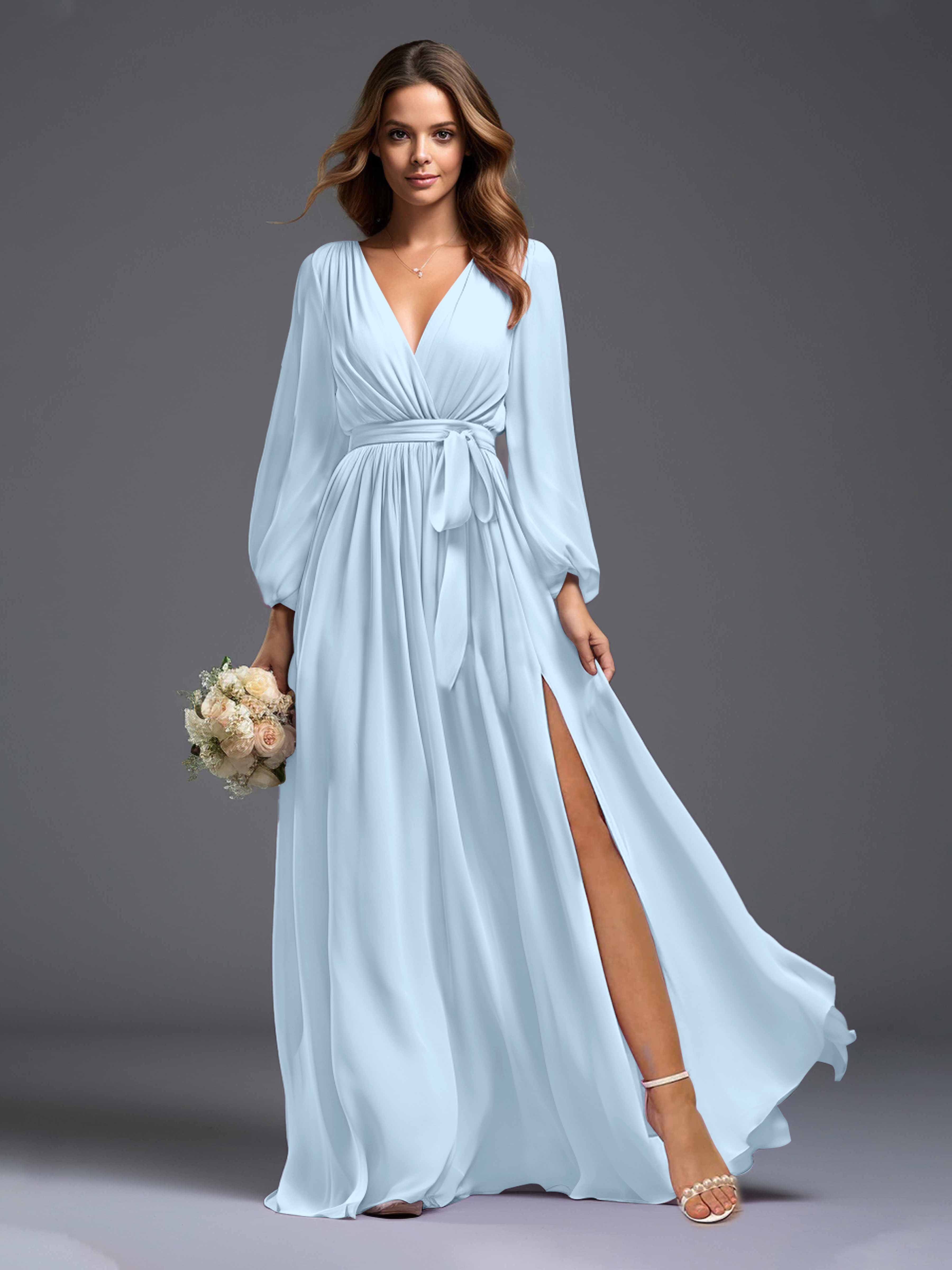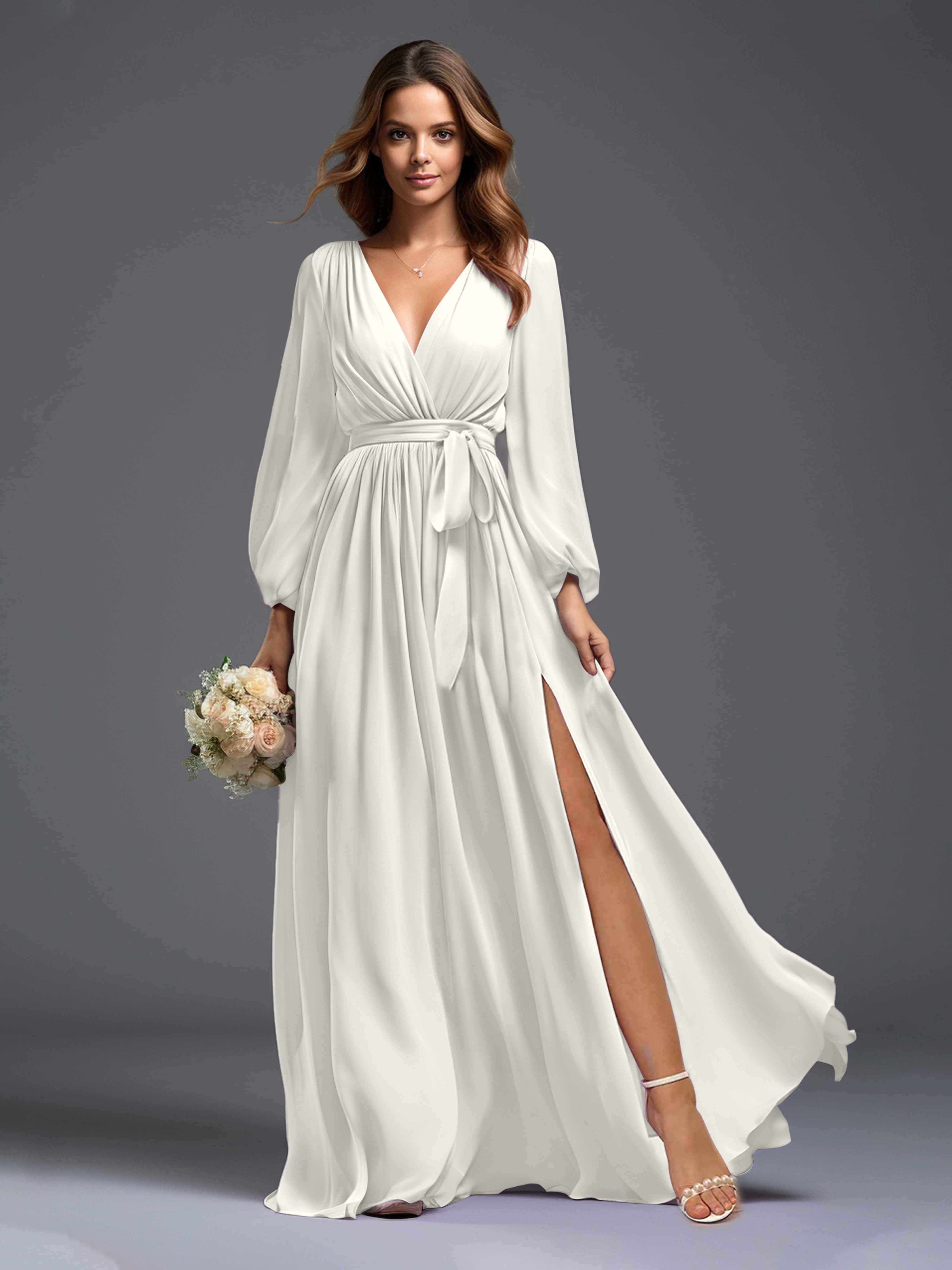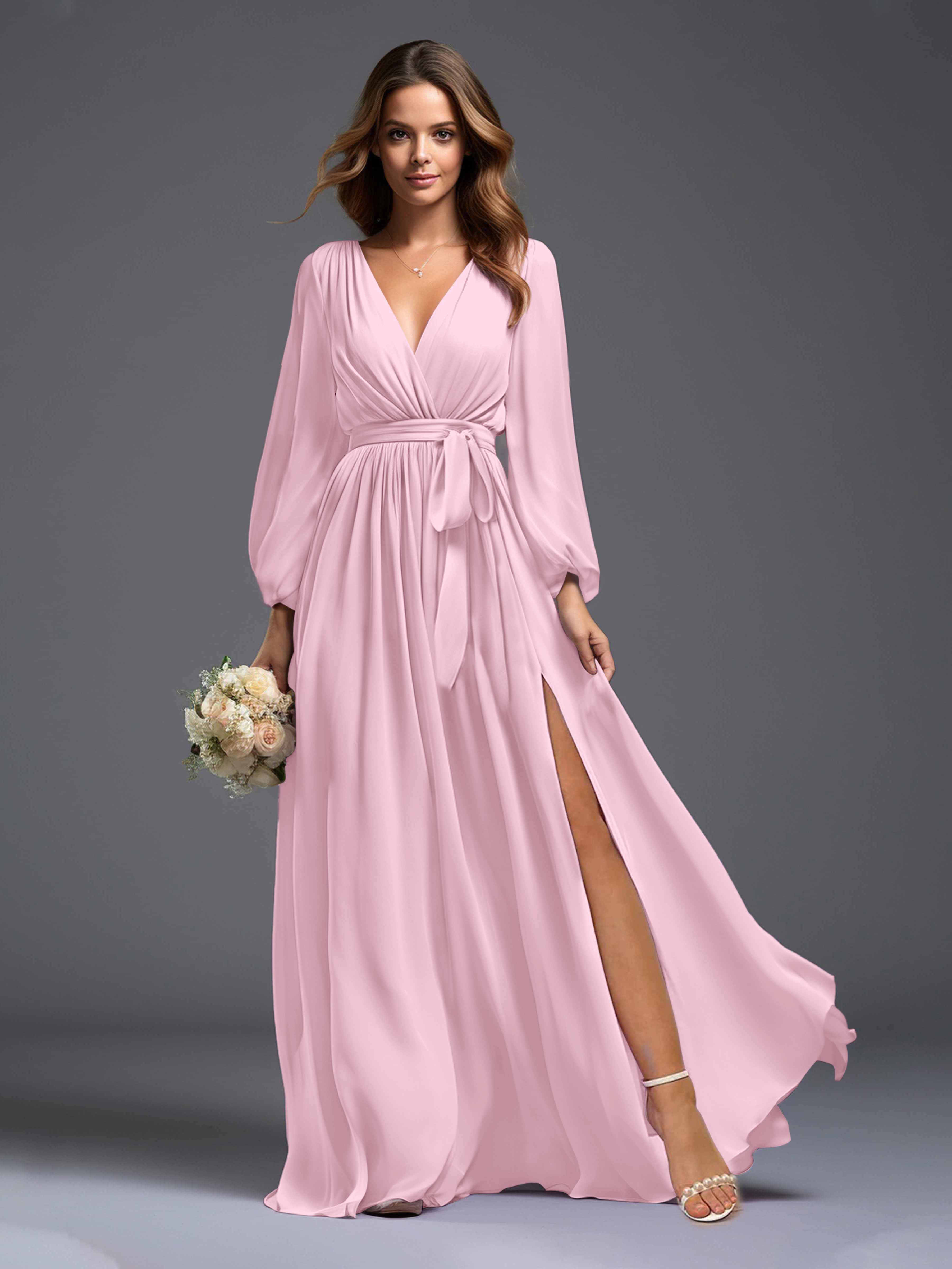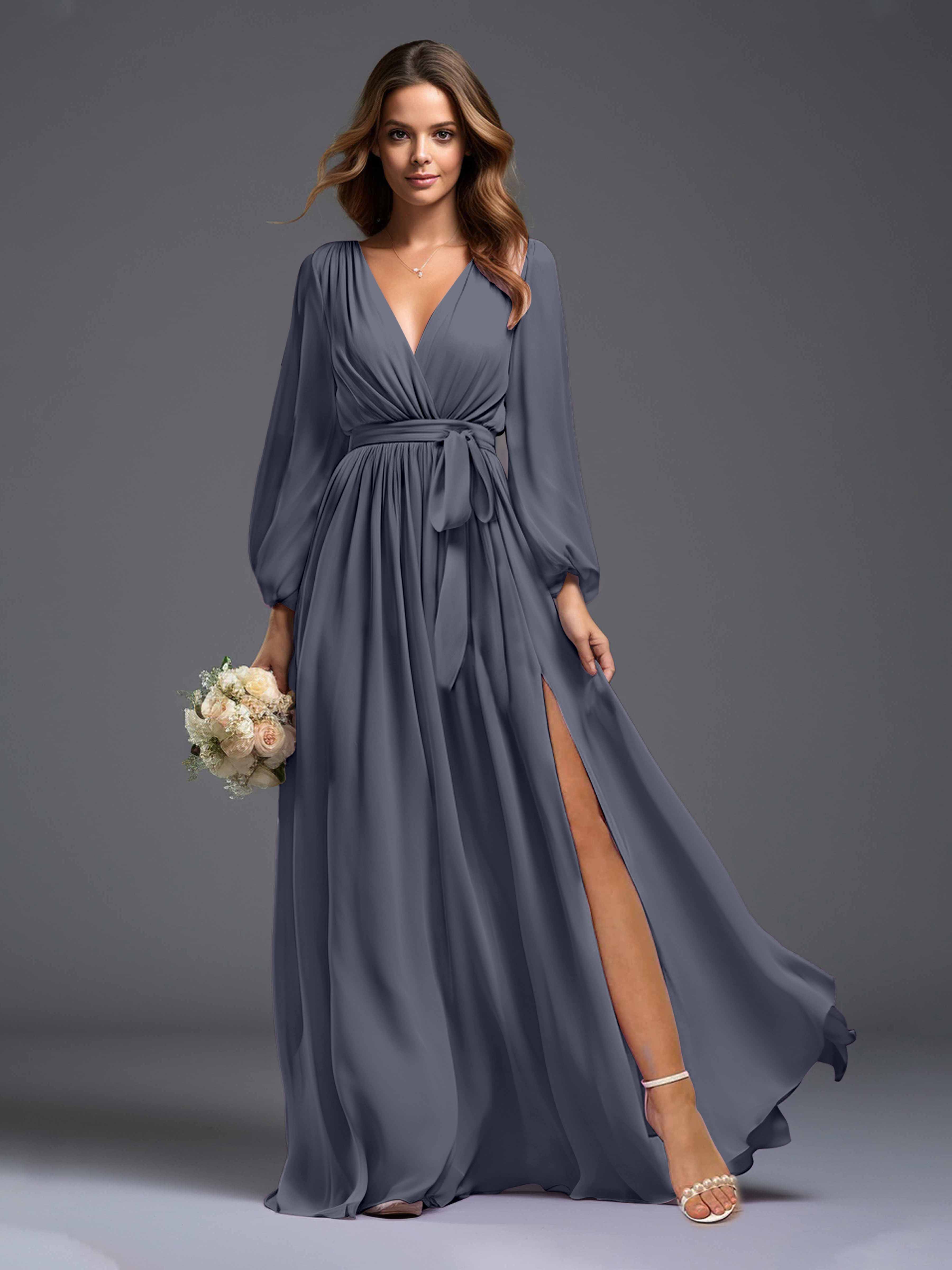 Leila Gorgeous V Neck Long Sleeves Chiffon Bridesmaid Dresses
