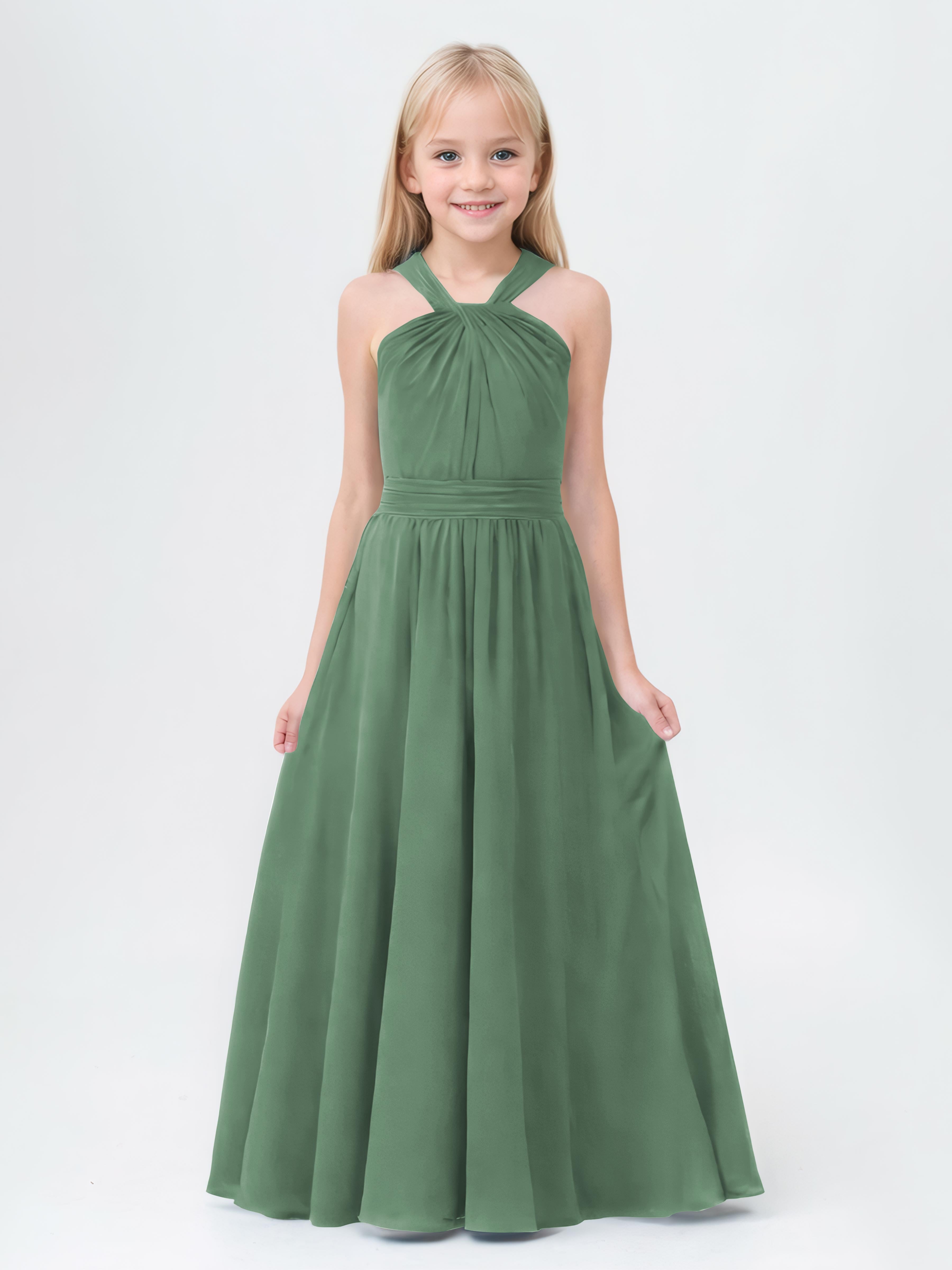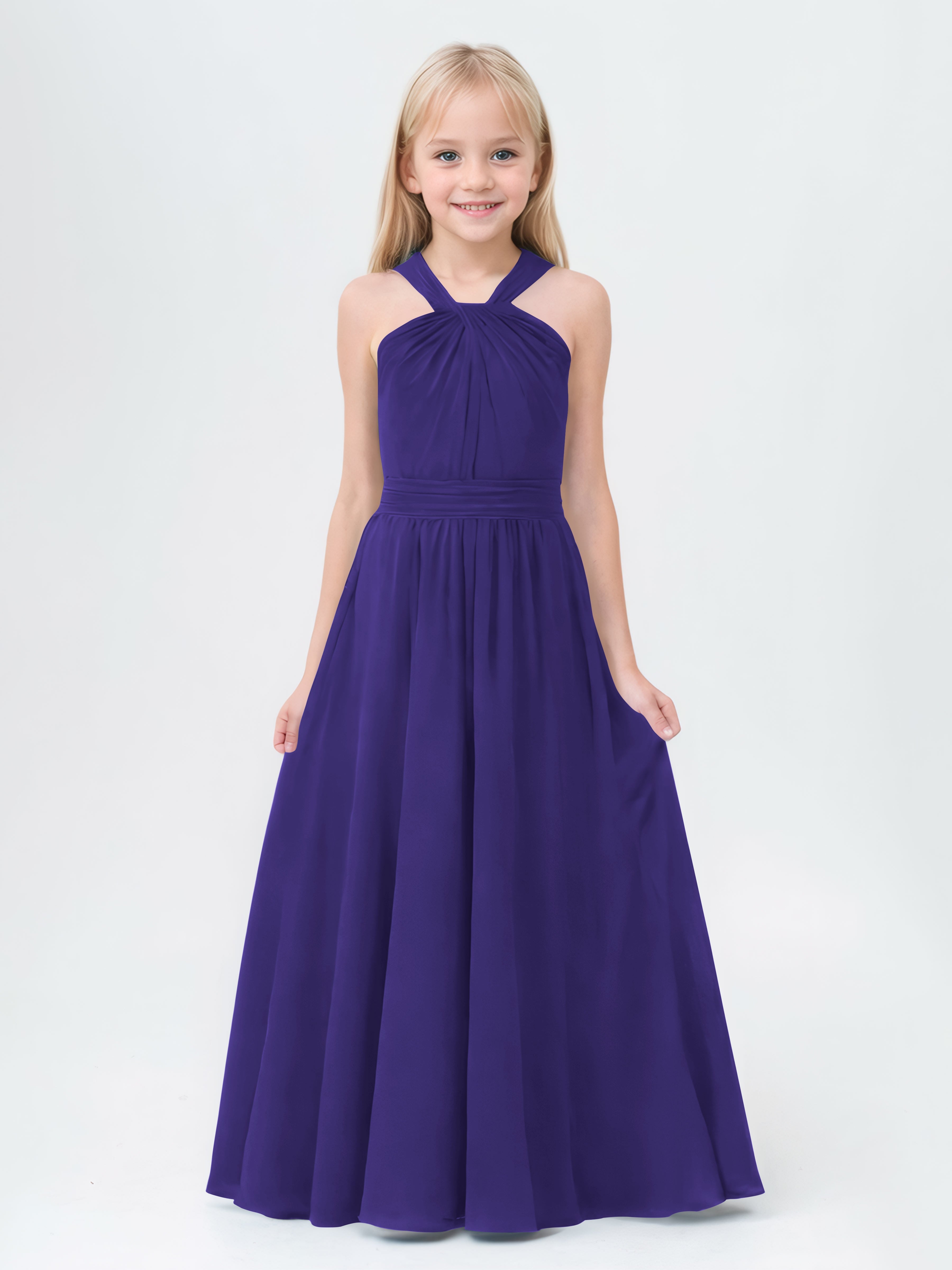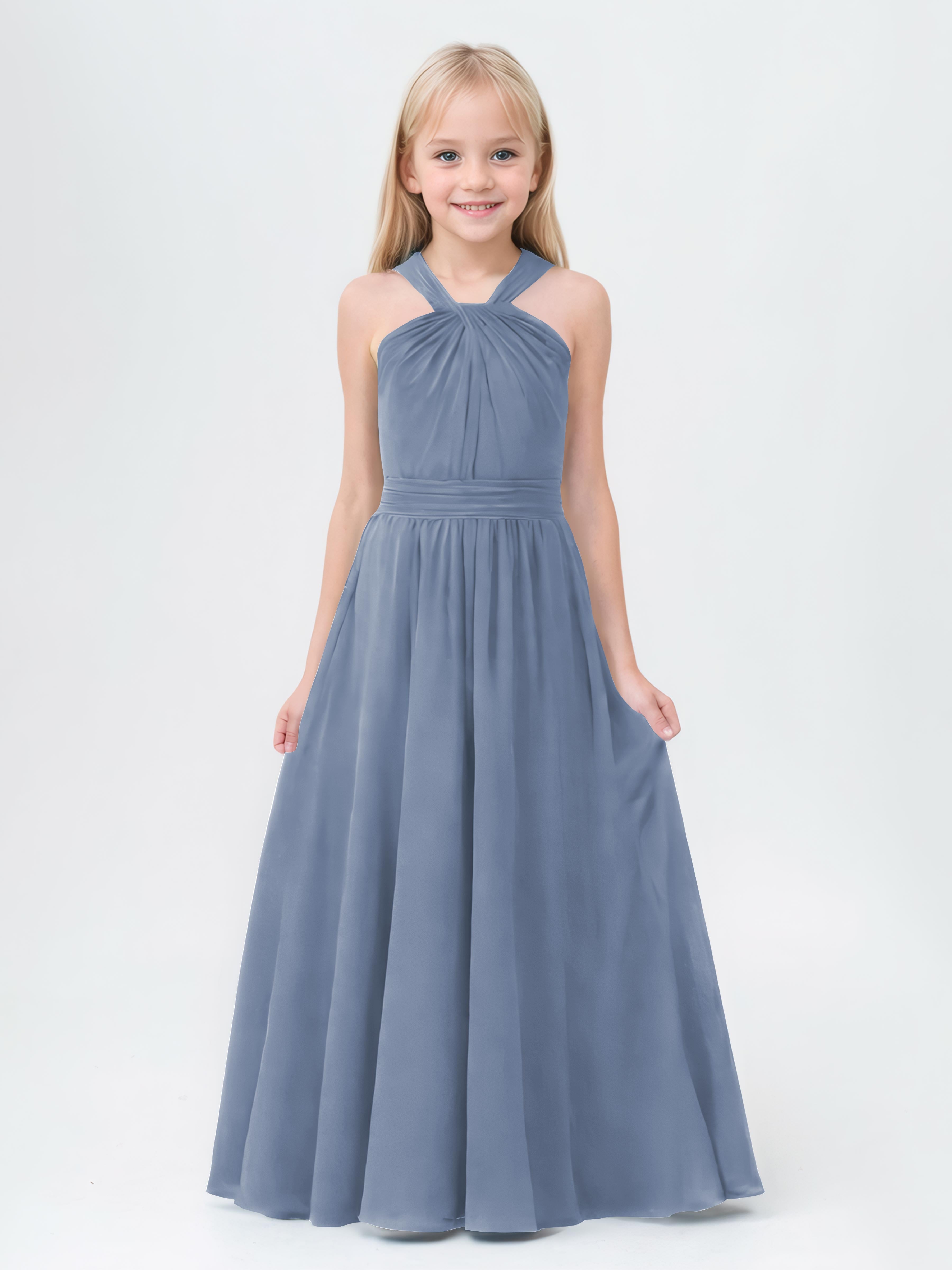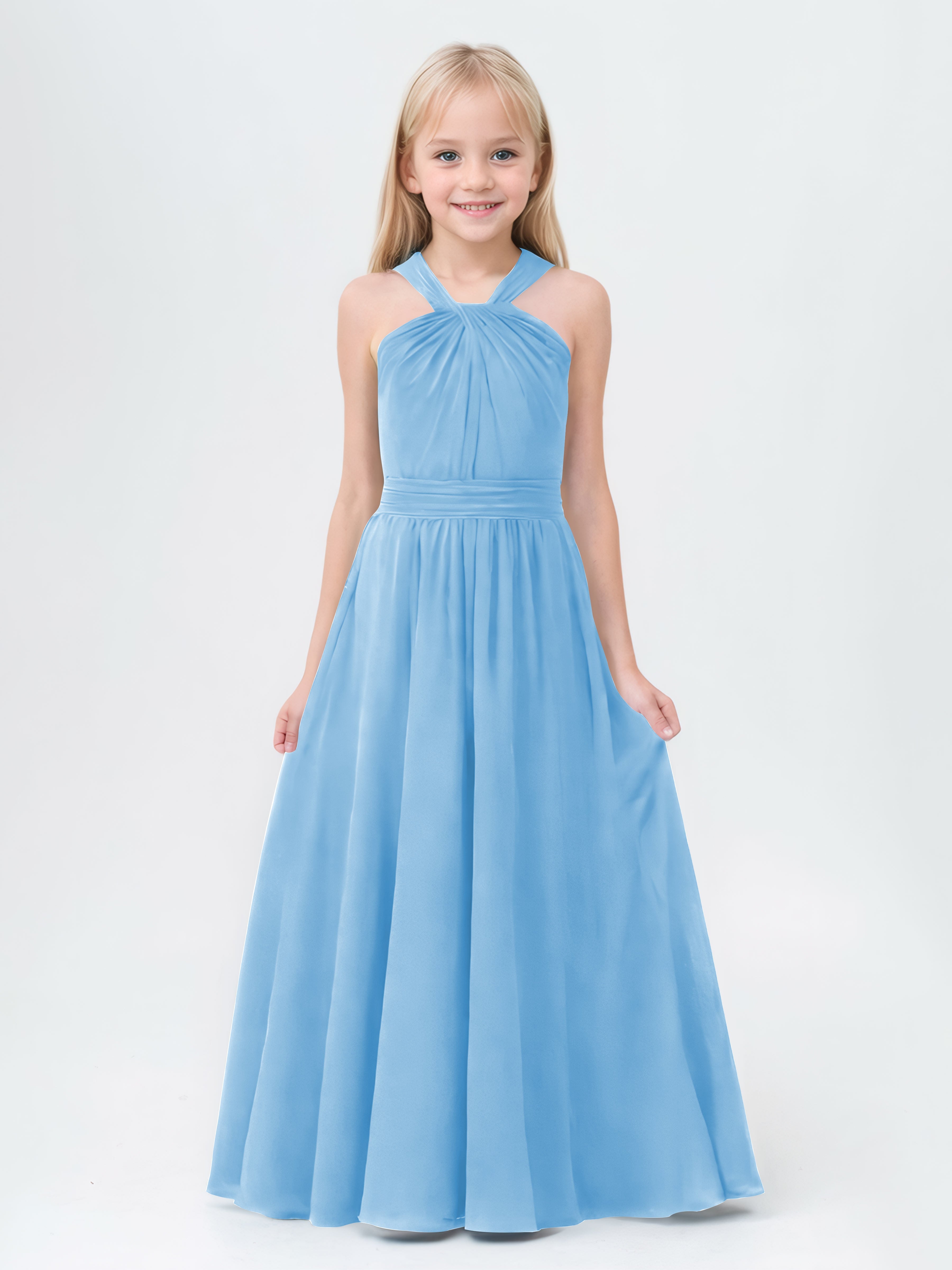 A-Line Halter Back Zip Long Chiffon Junior Bridesmaid Dresses