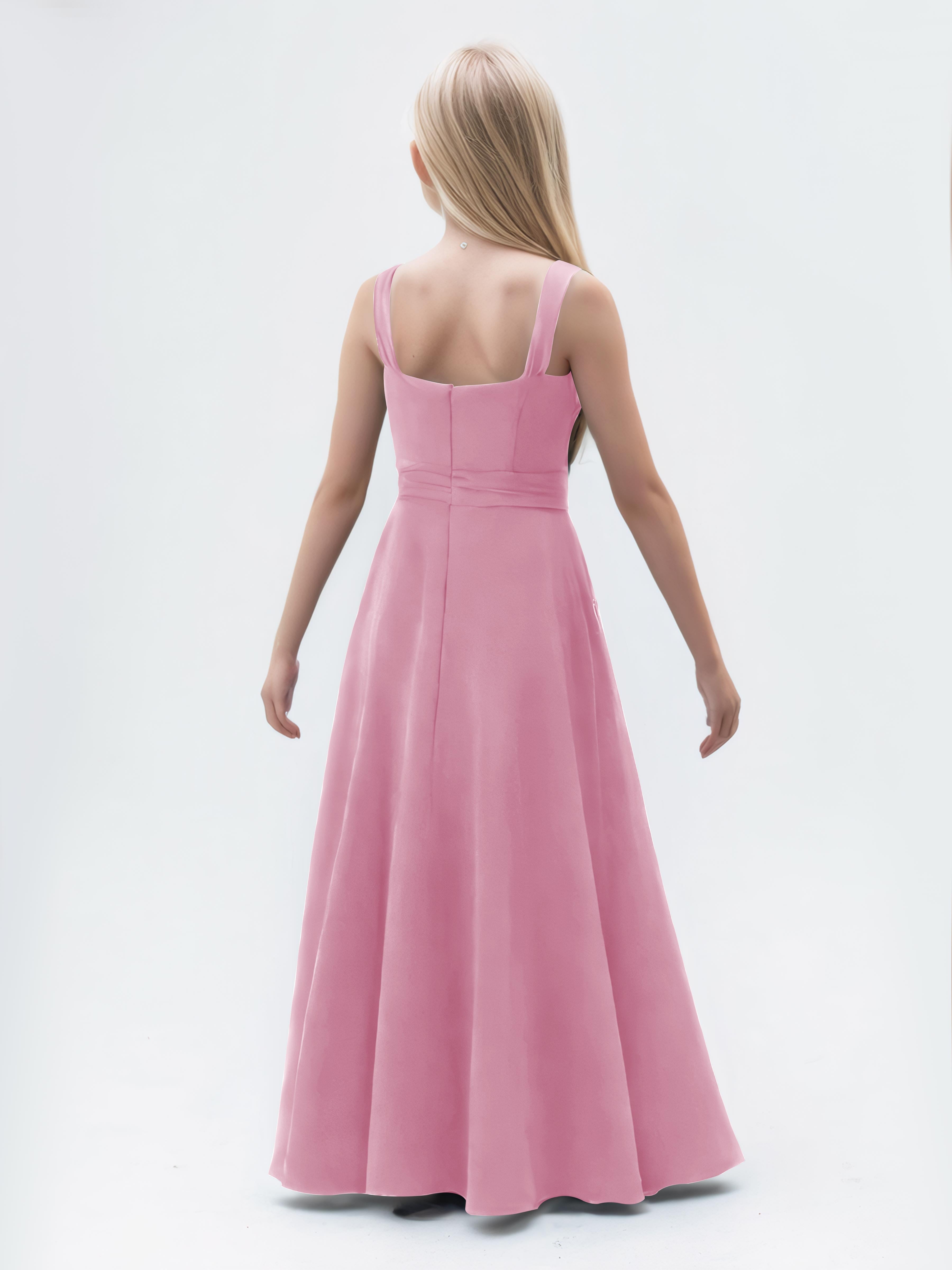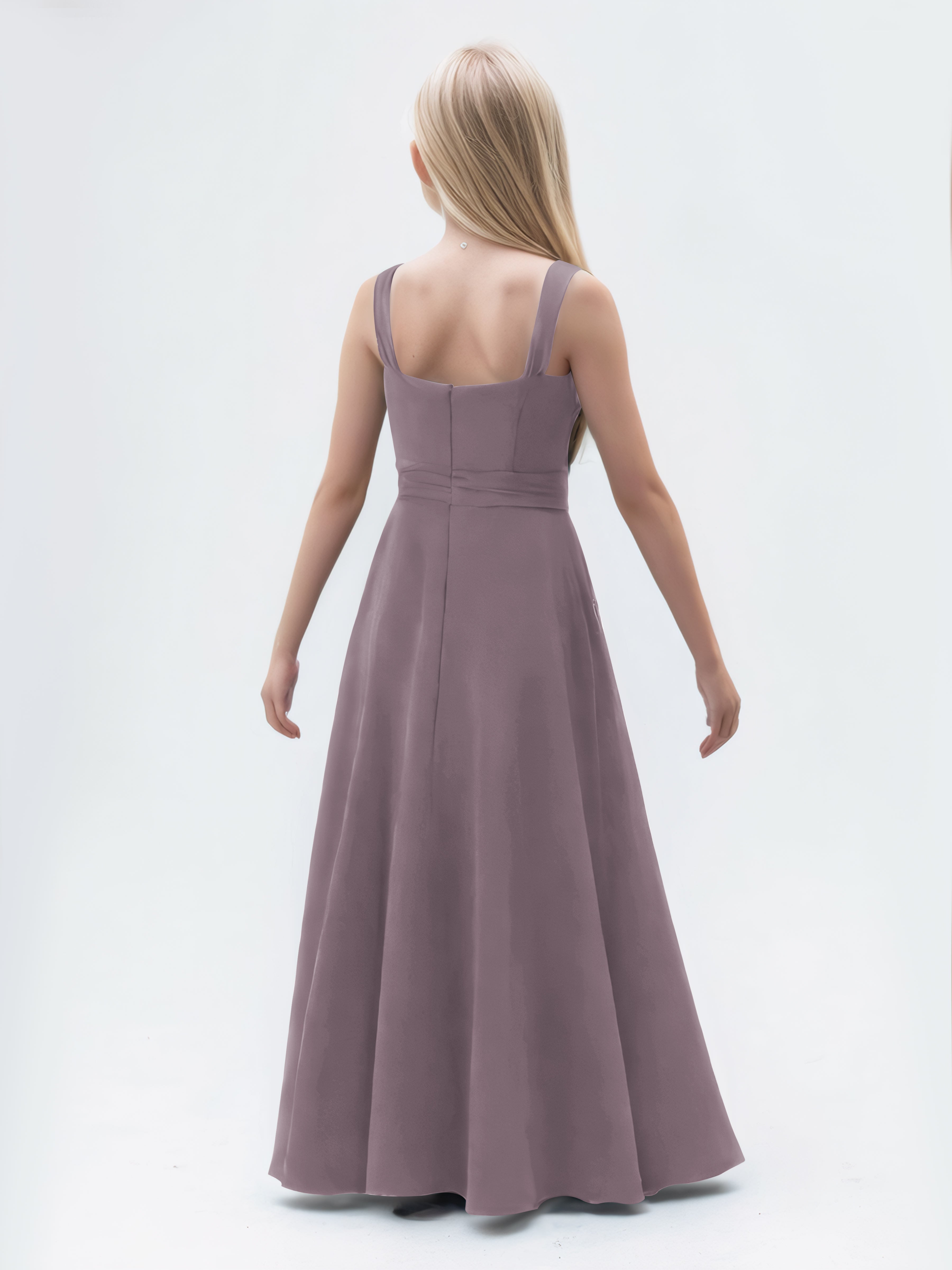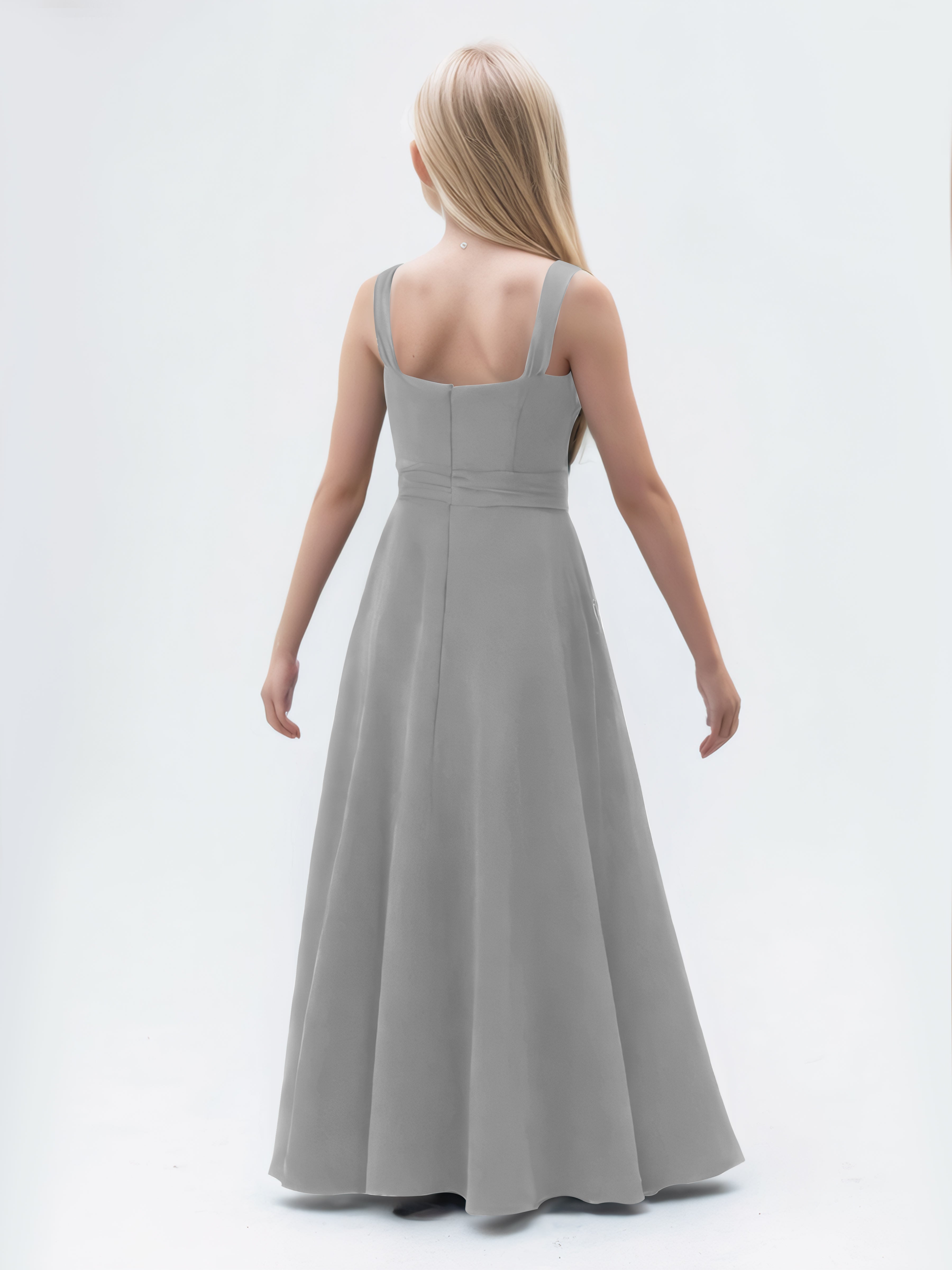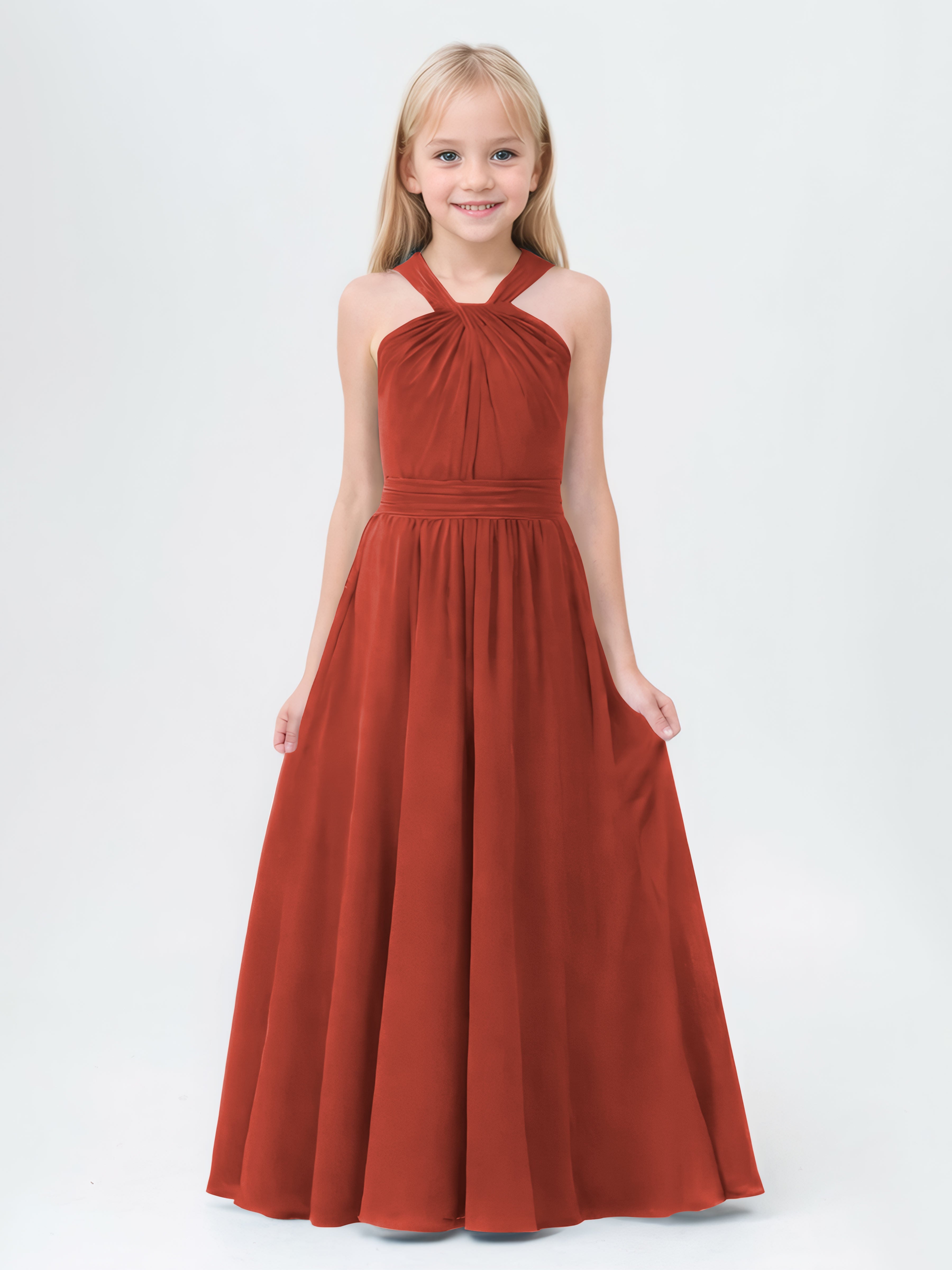 A-Line Halter Back Zip Long Chiffon Junior Bridesmaid Dresses