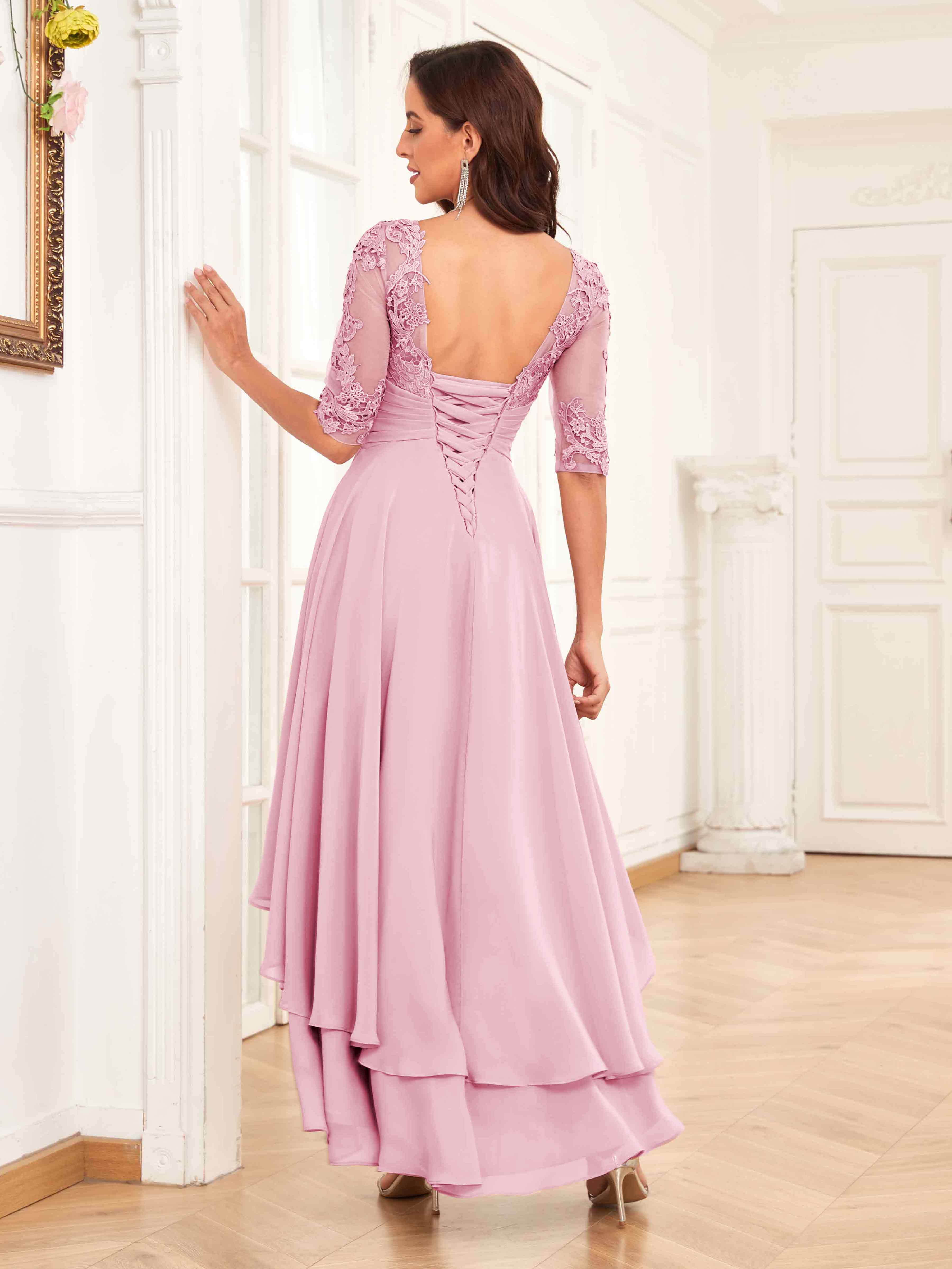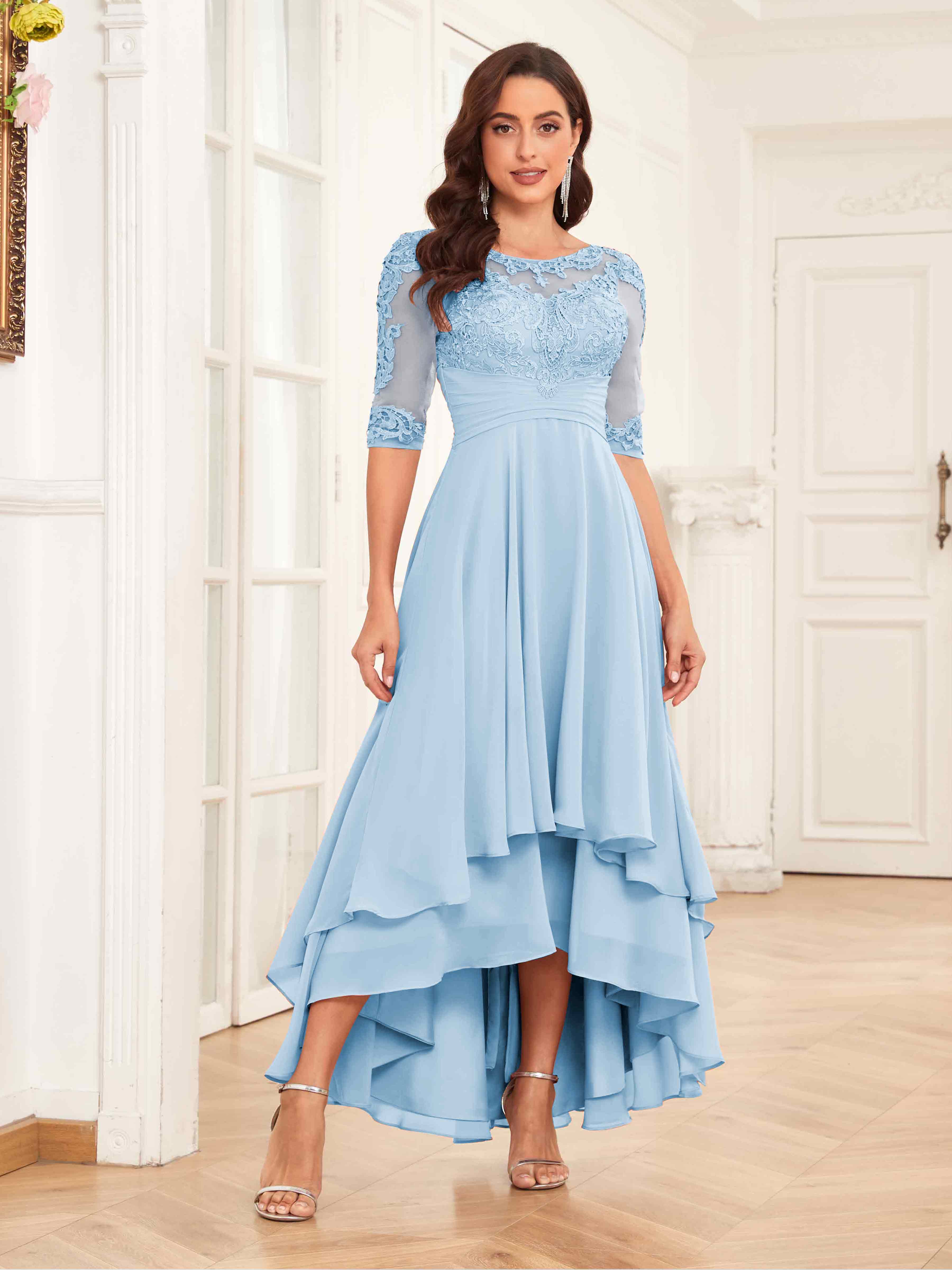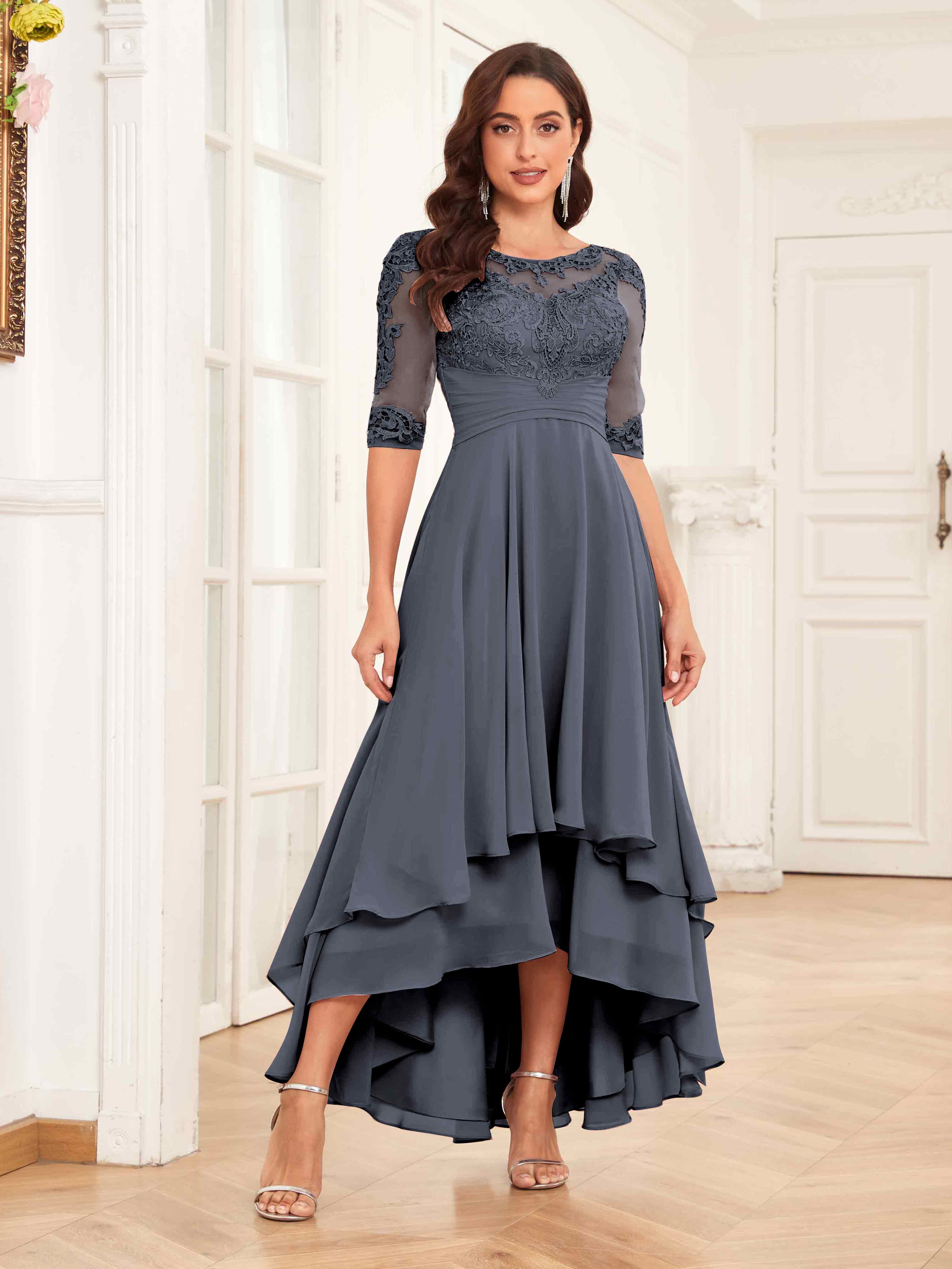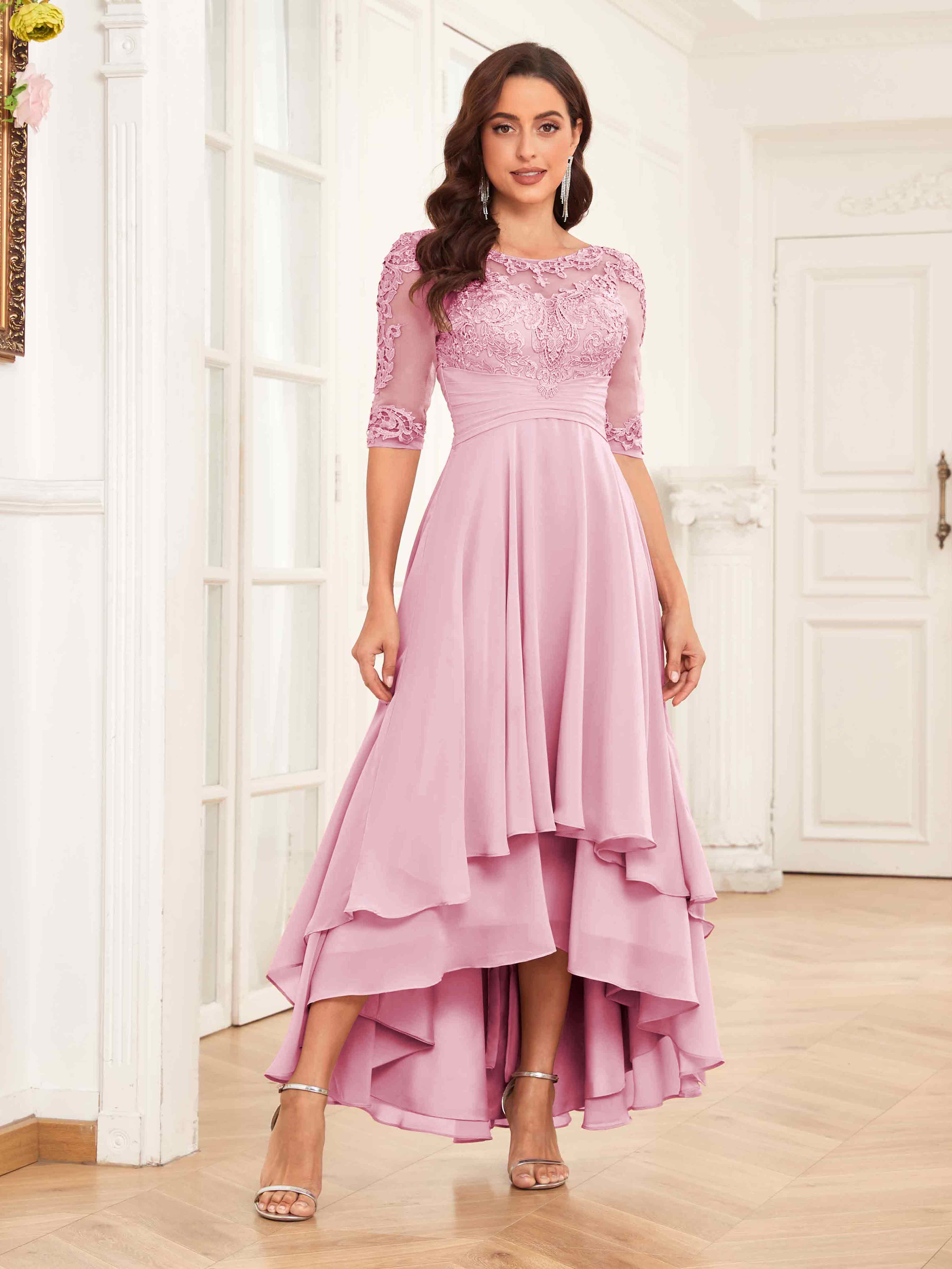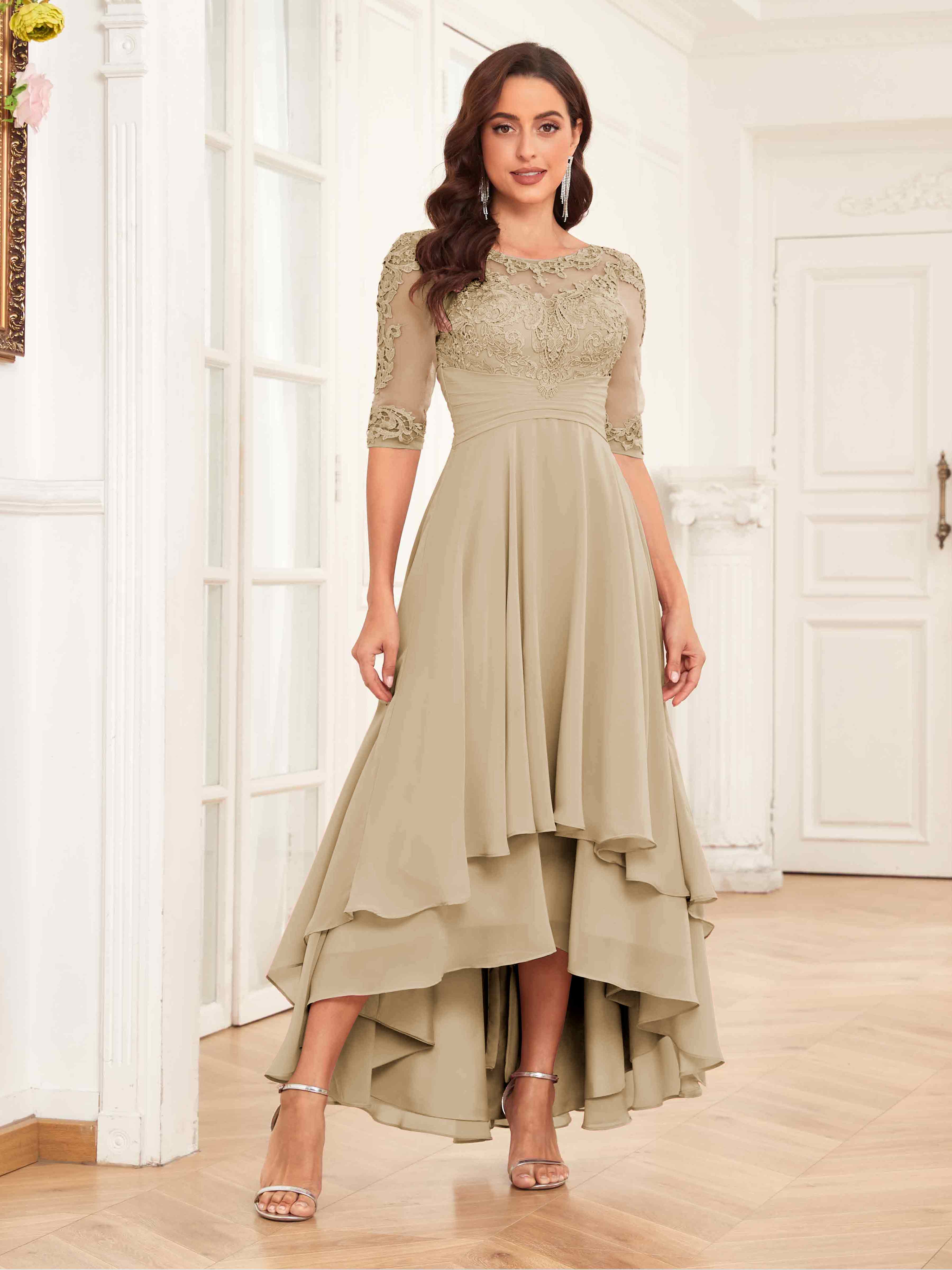 Adelaide Modern Illusion High Low Mother of the Bride & Groom Dresses with Half Sleeves