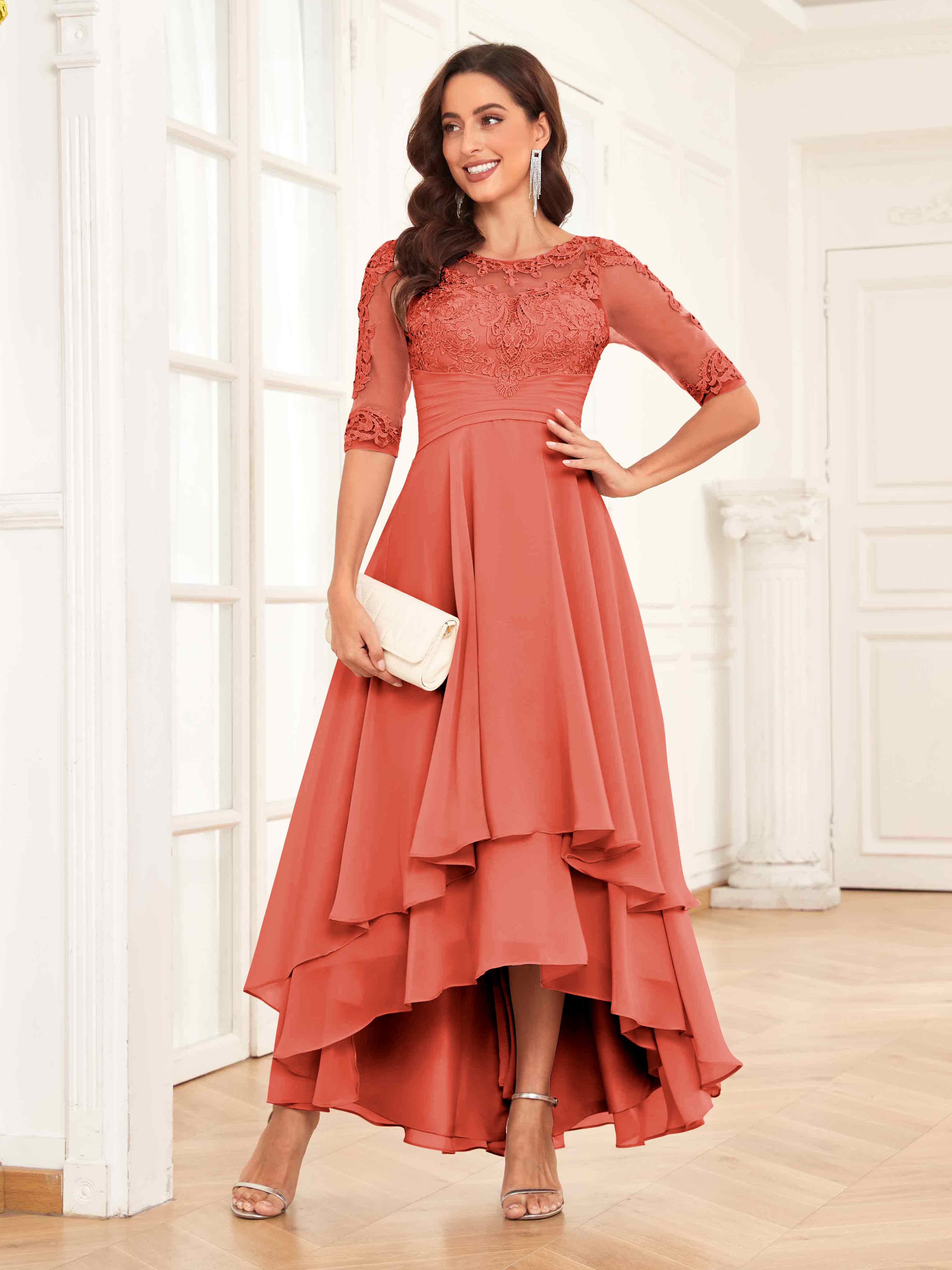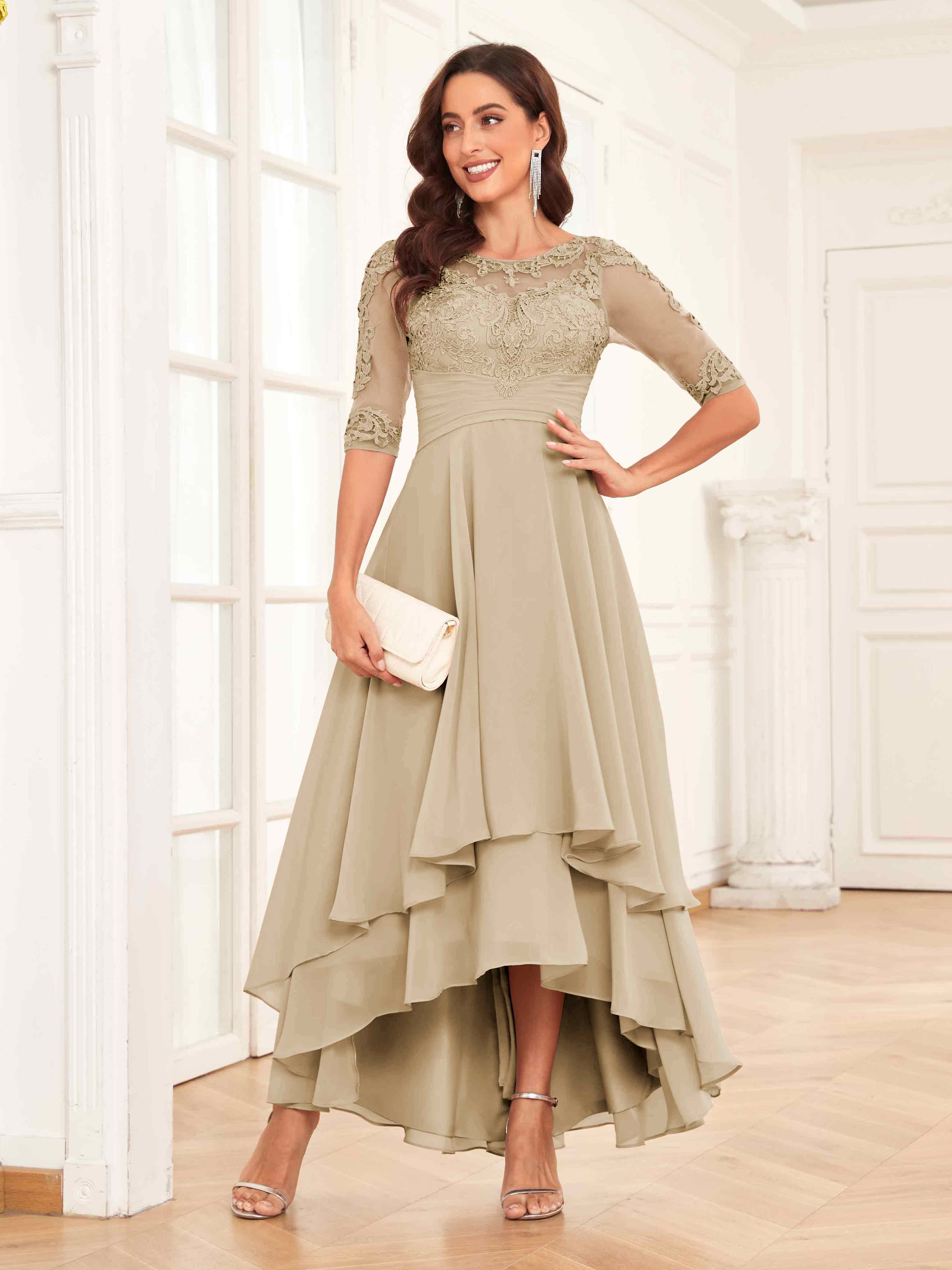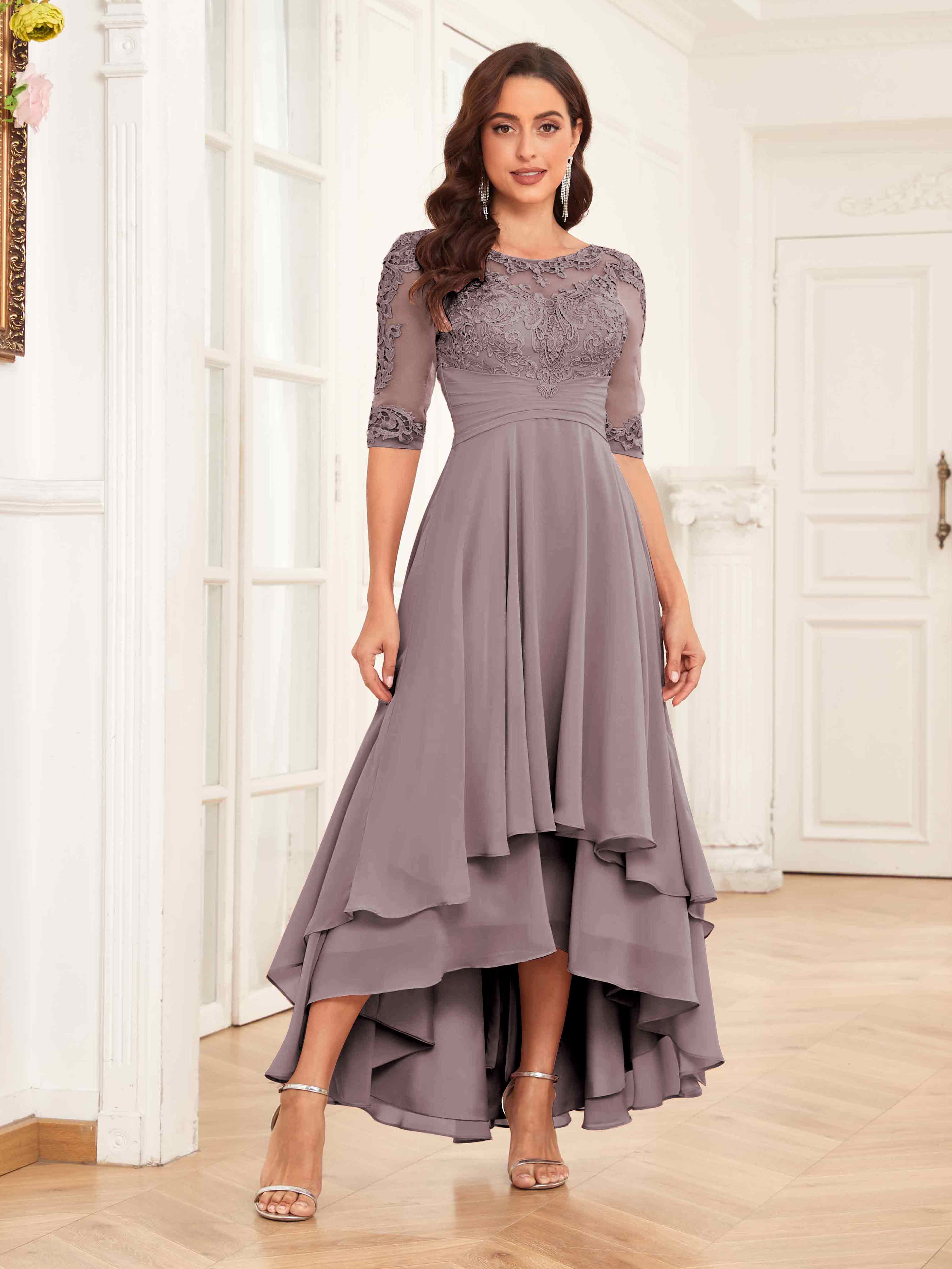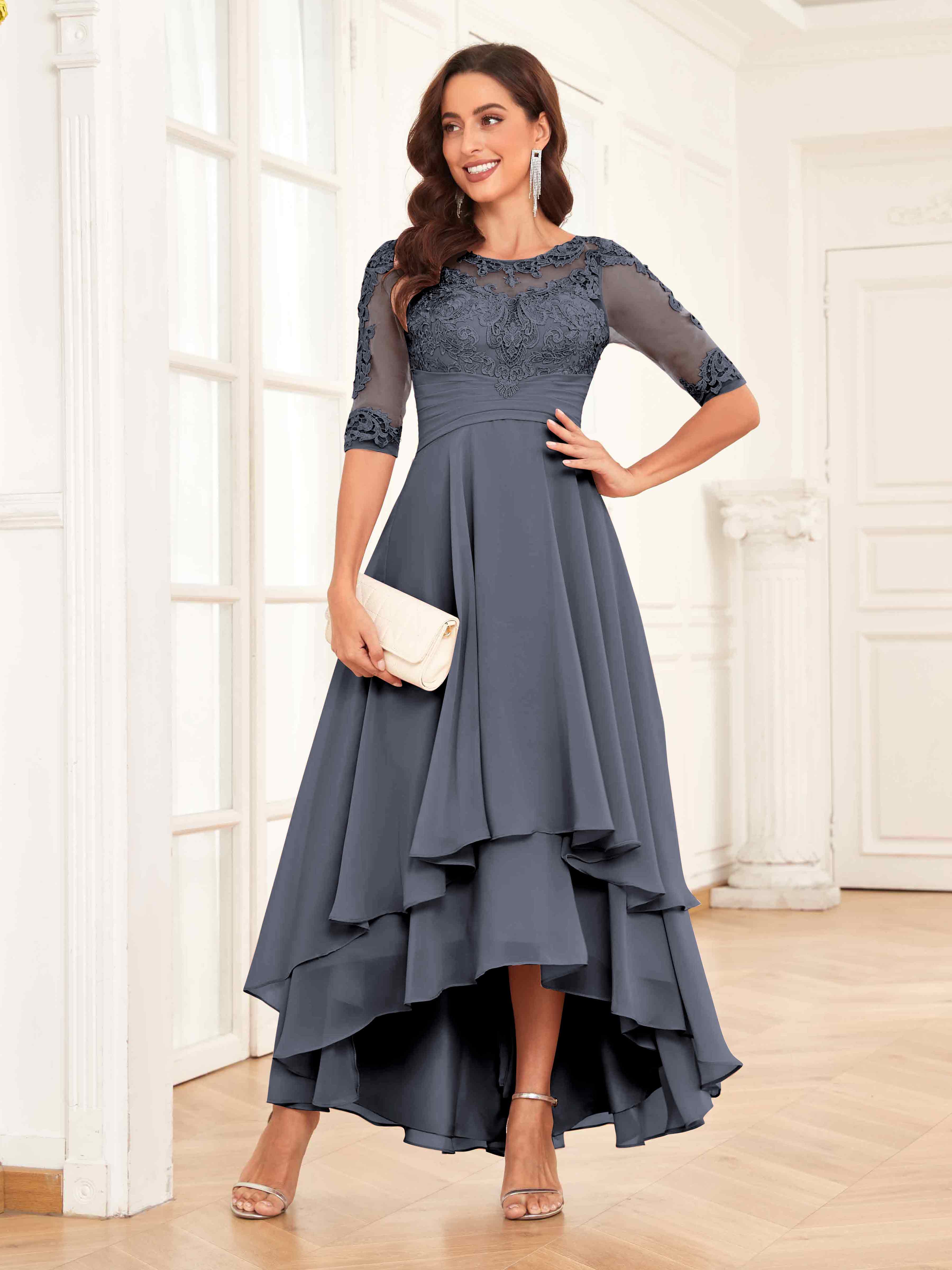 Adelaide Modern Illusion High Low Mother of the Bride & Groom Dresses with Half Sleeves