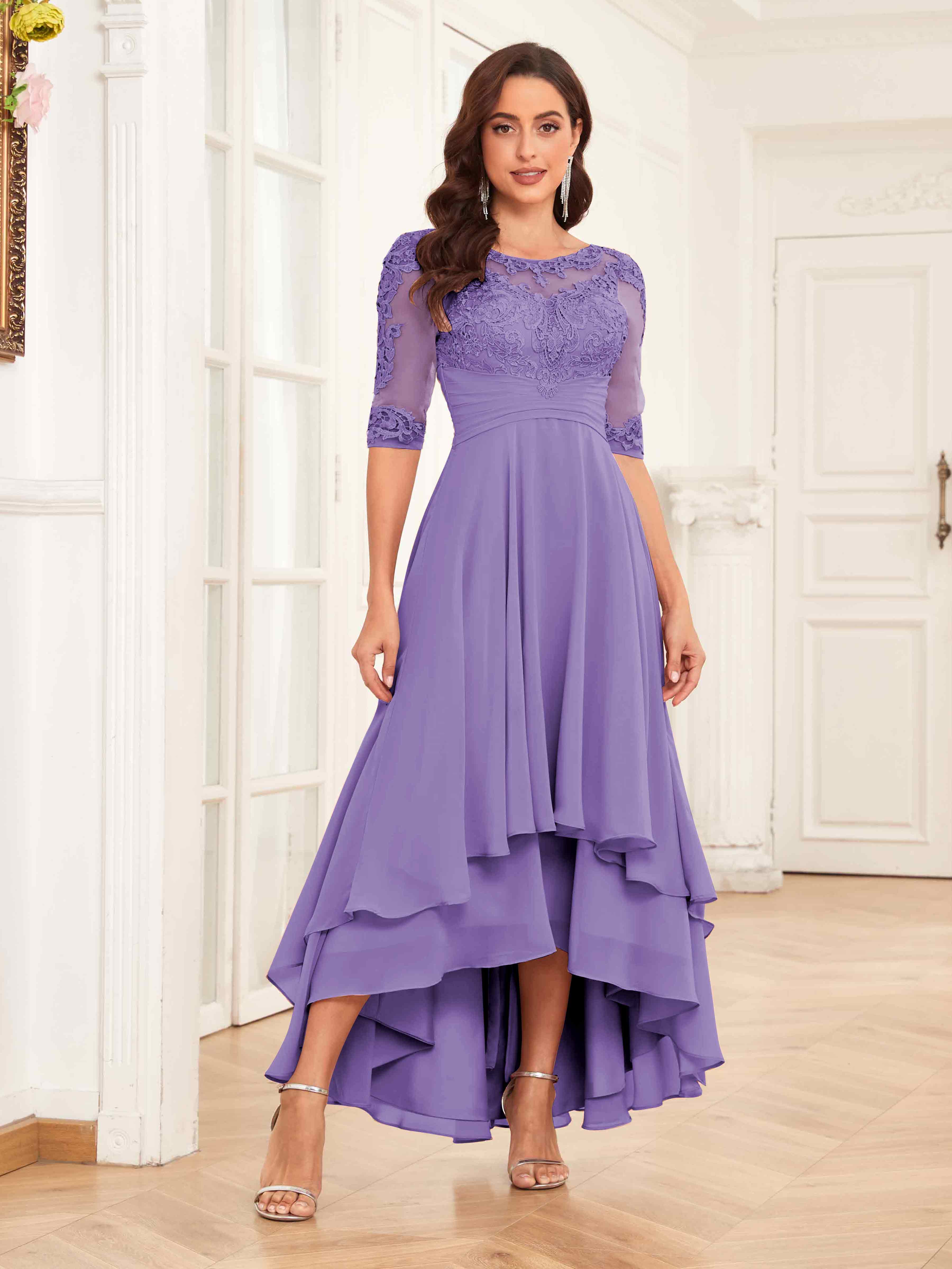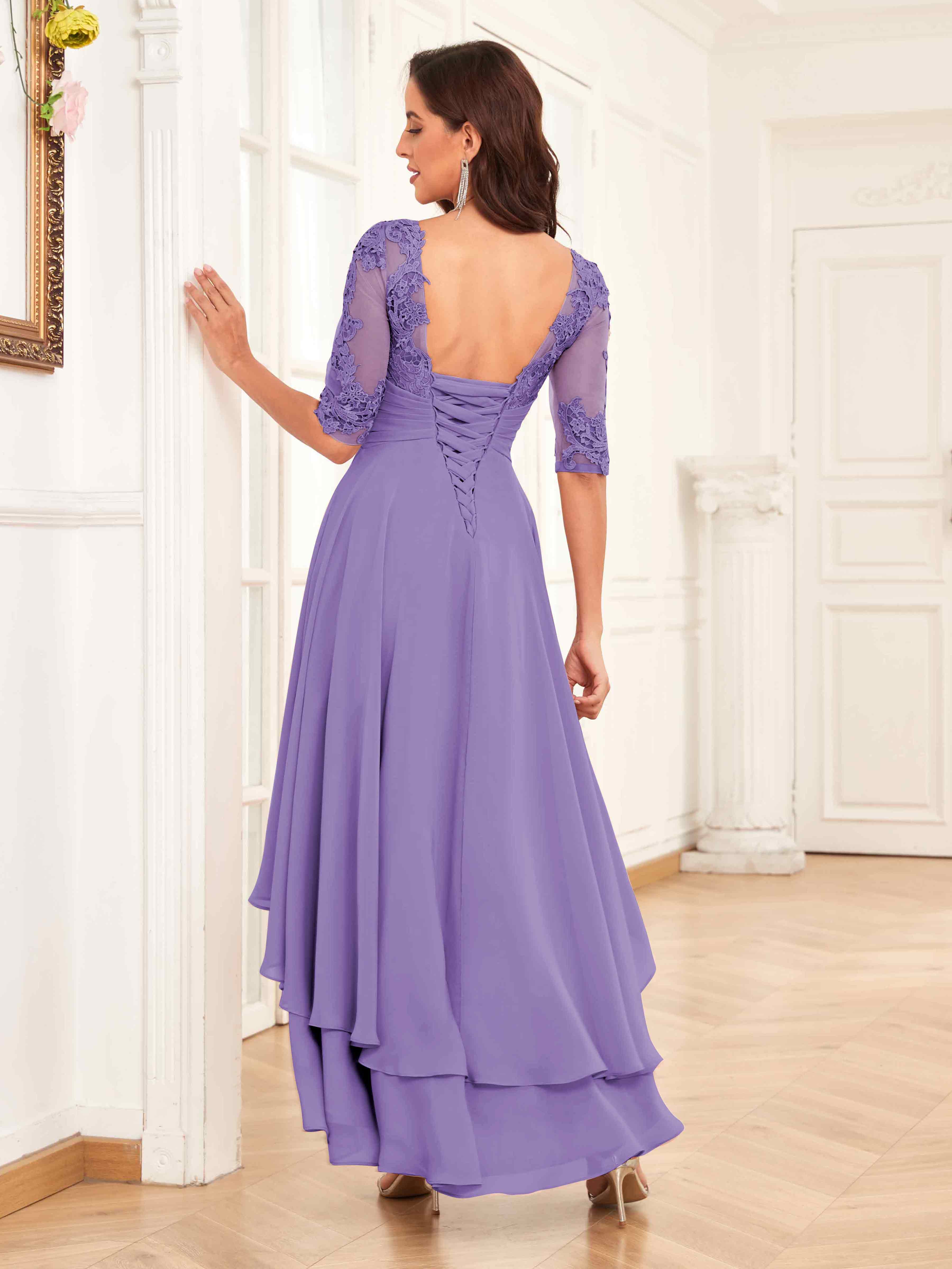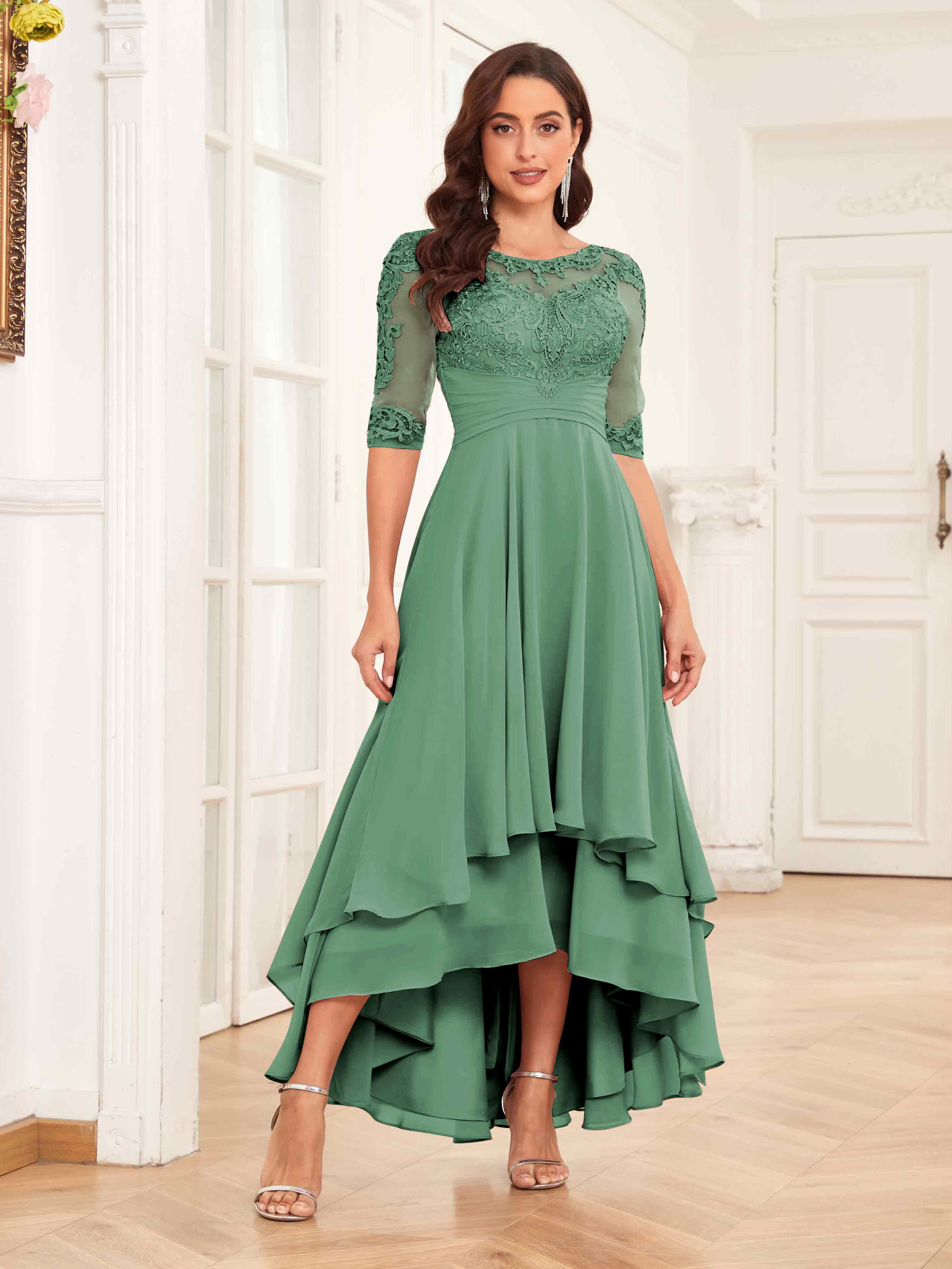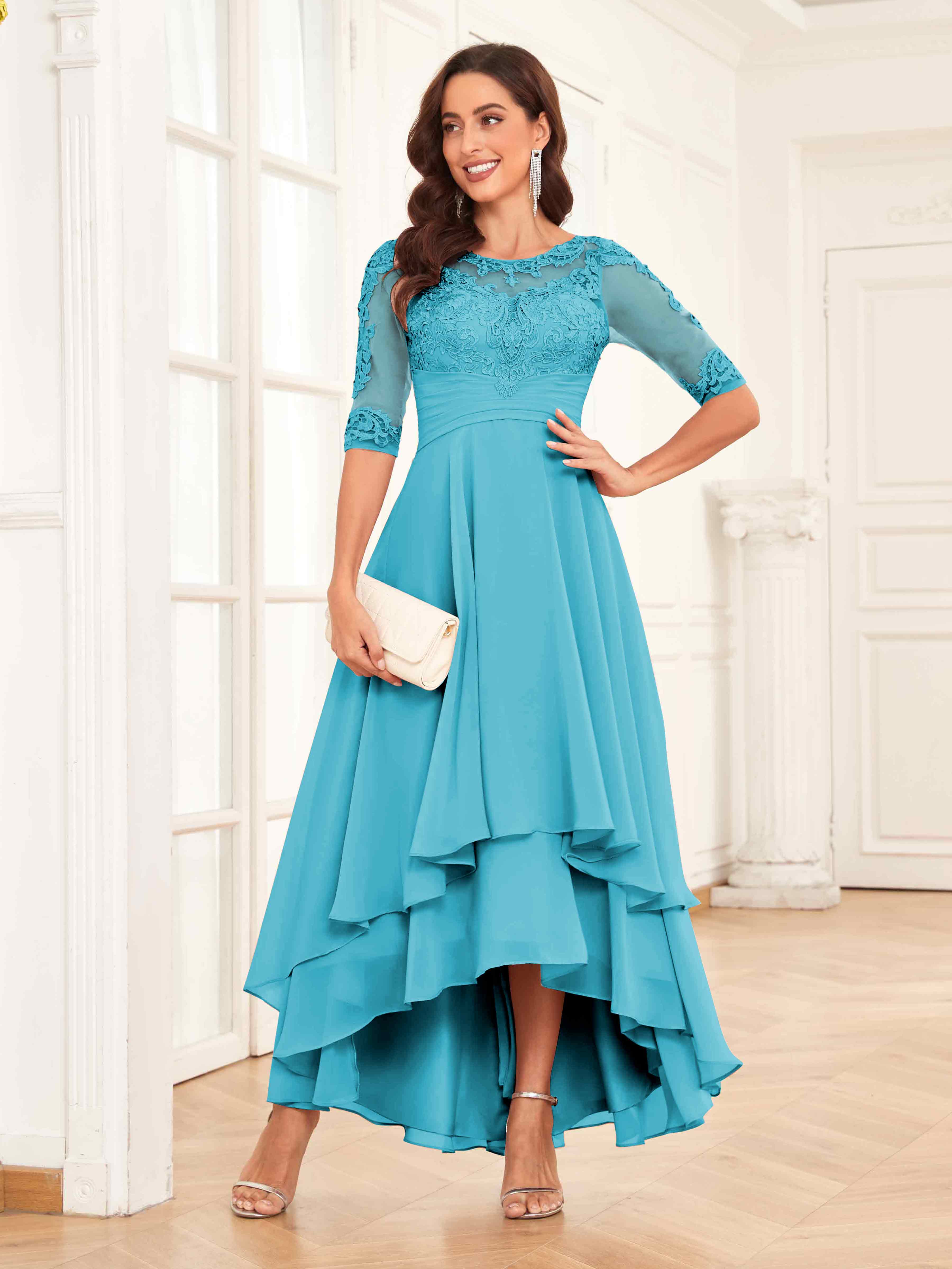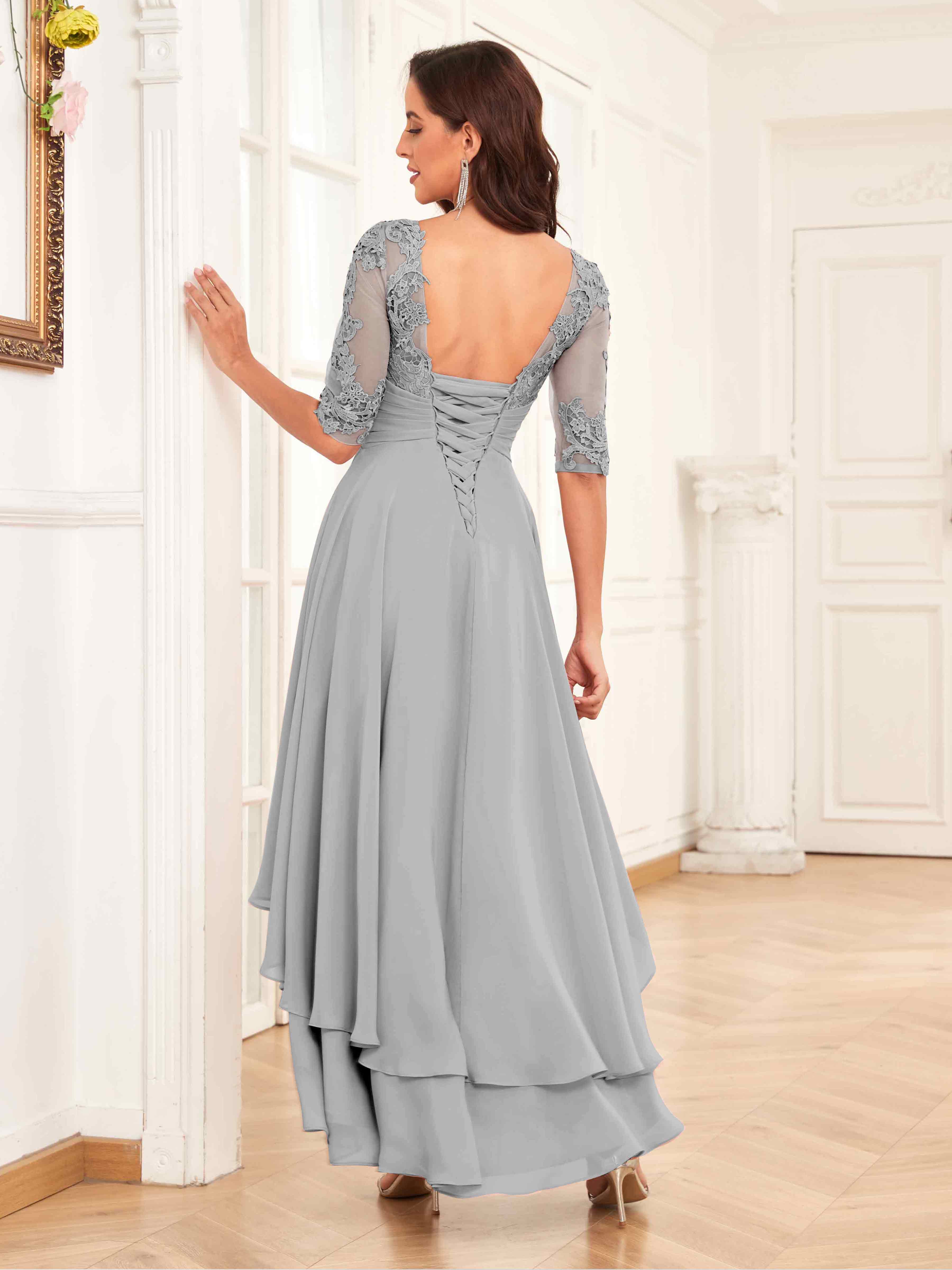 Adelaide Modern Illusion High Low Mother of the Bride & Groom Dresses with Half Sleeves