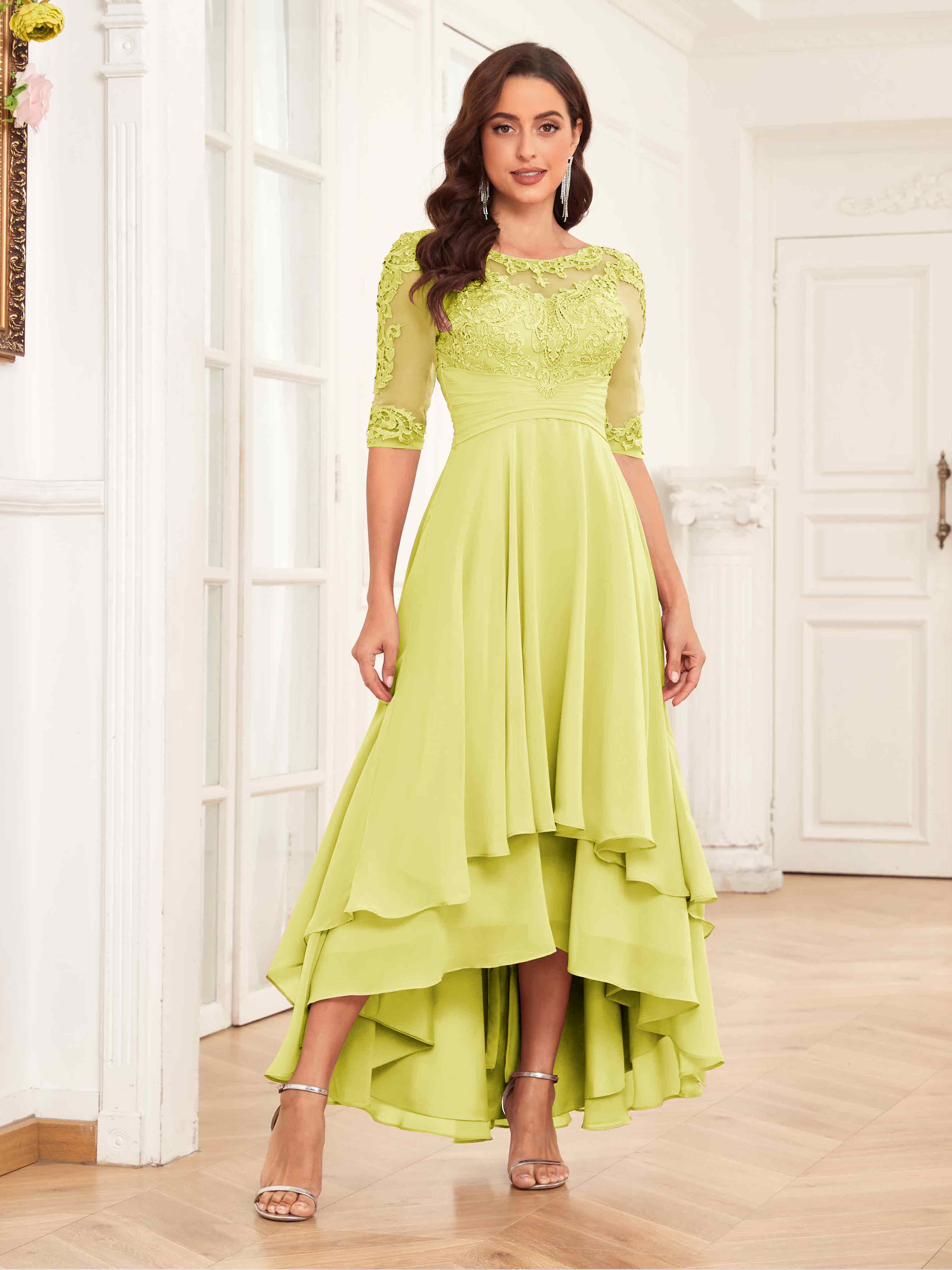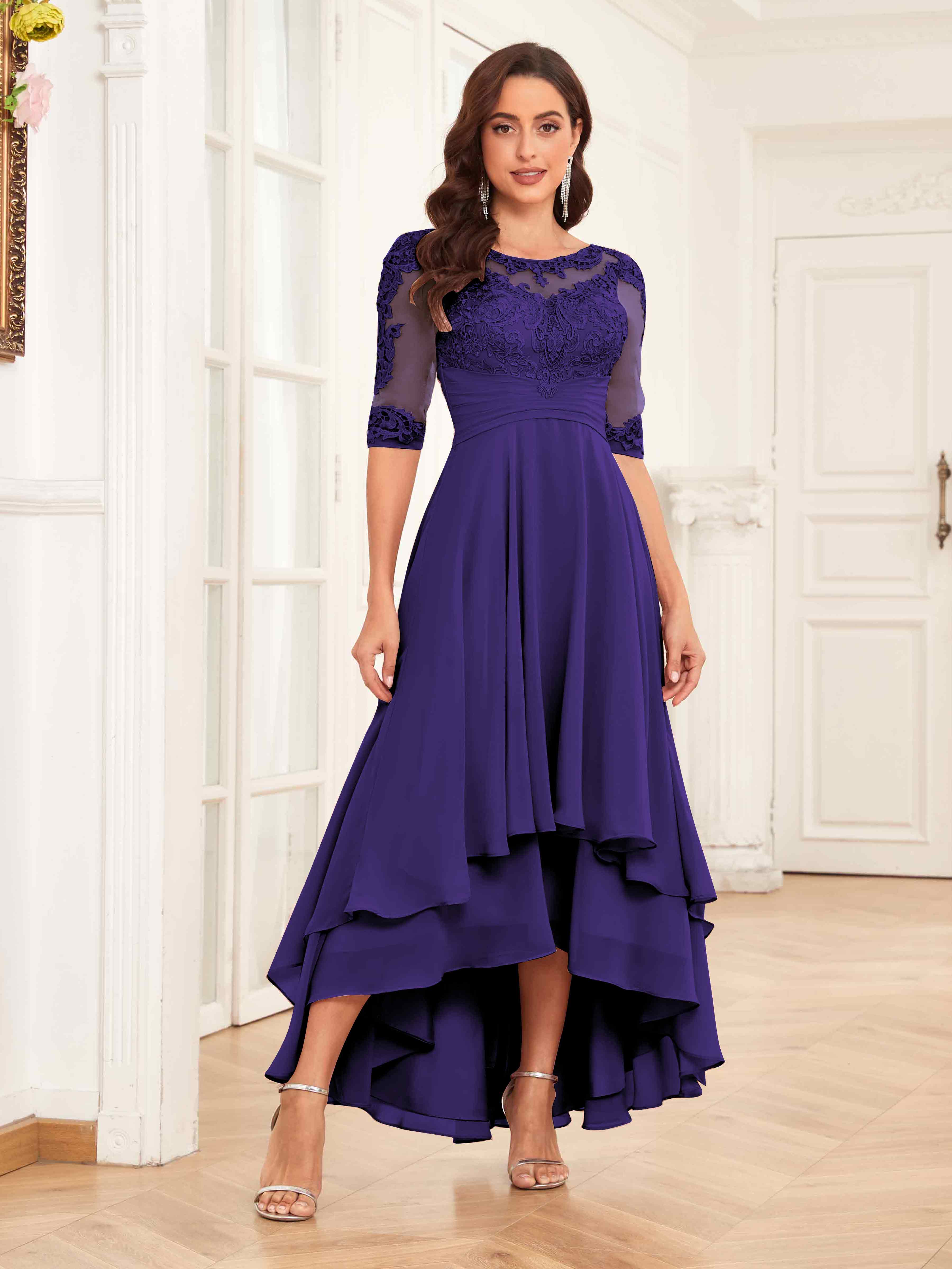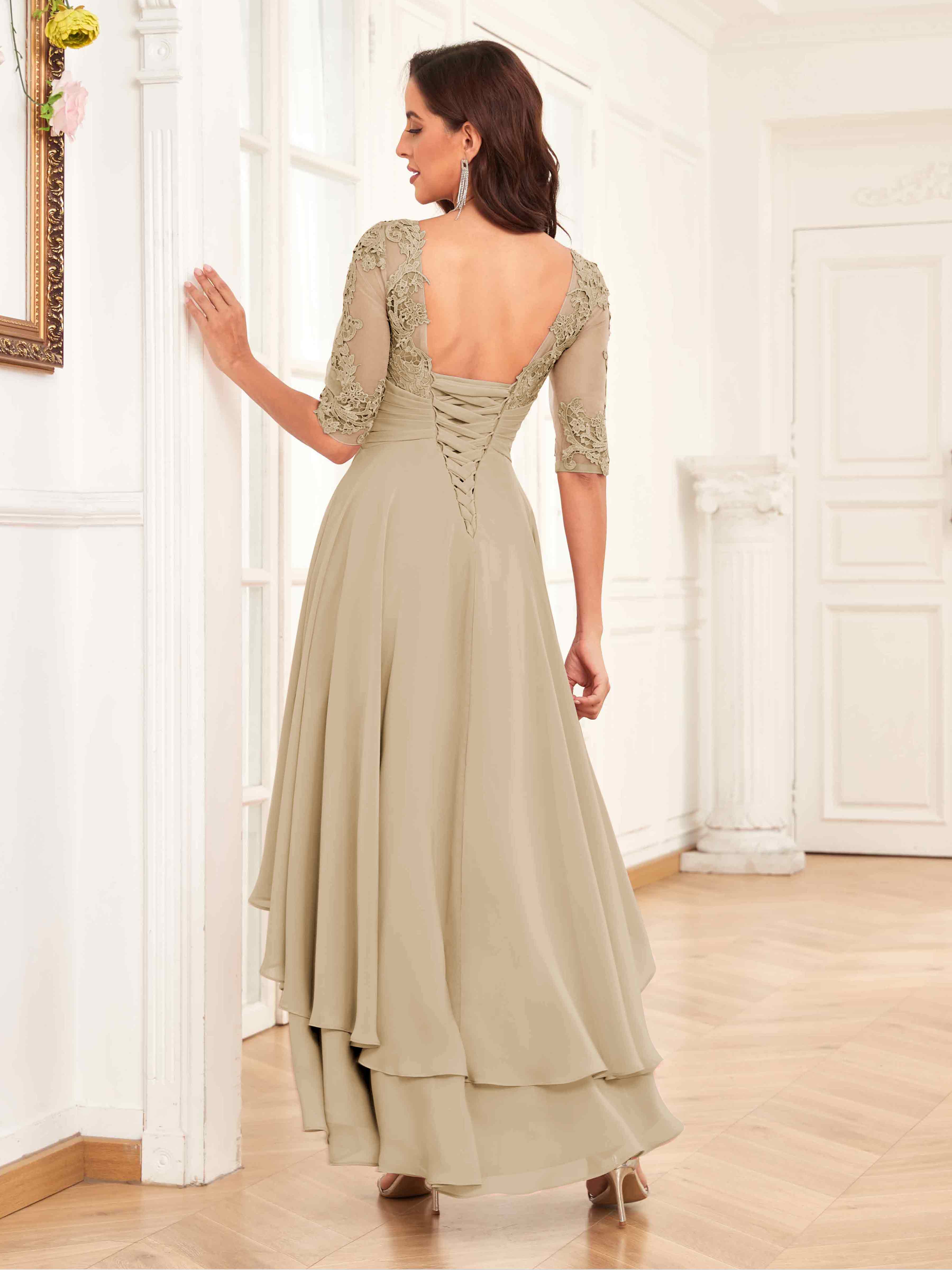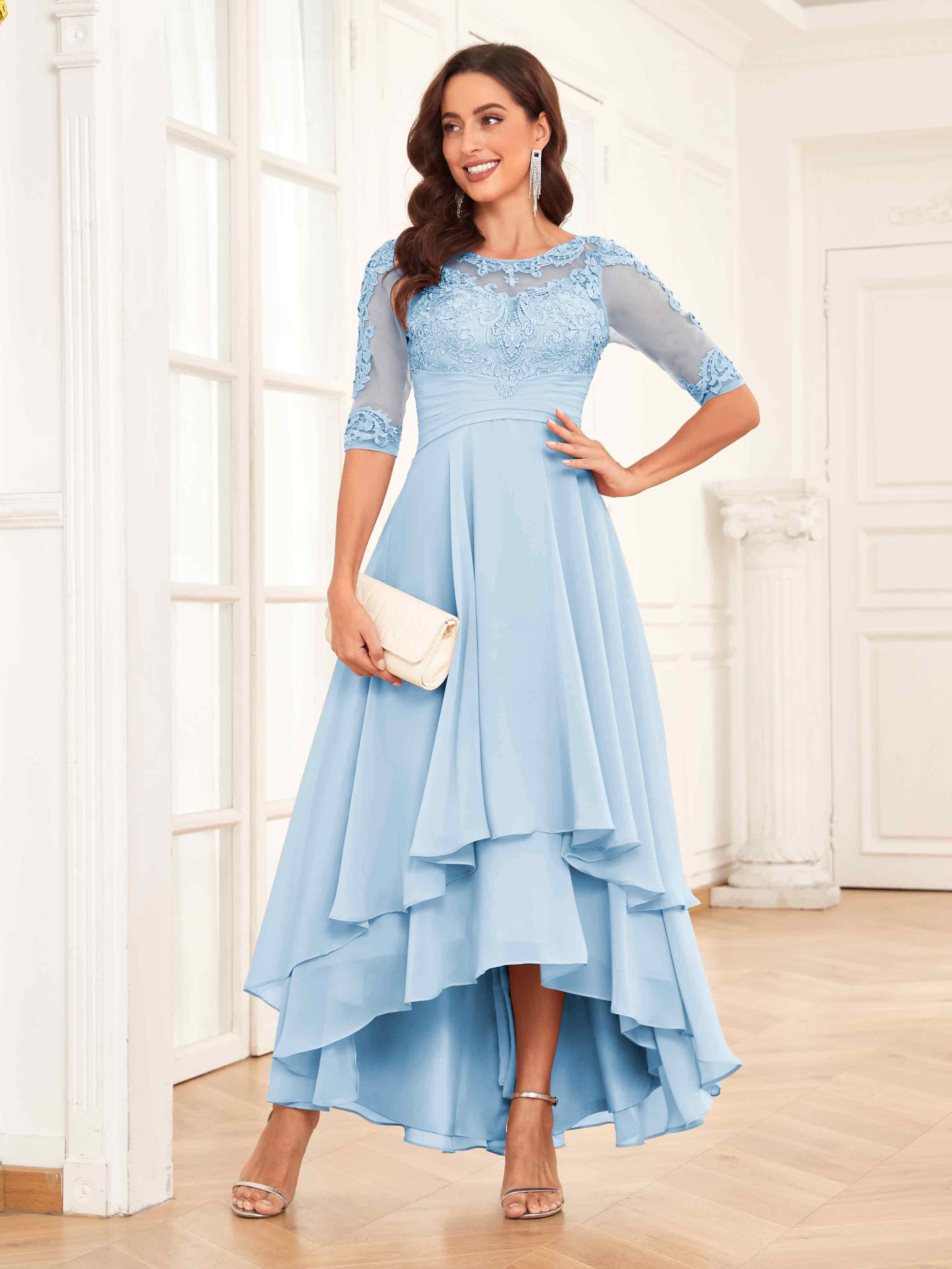 Adelaide Modern Illusion High Low Mother of the Bride & Groom Dresses with Half Sleeves
