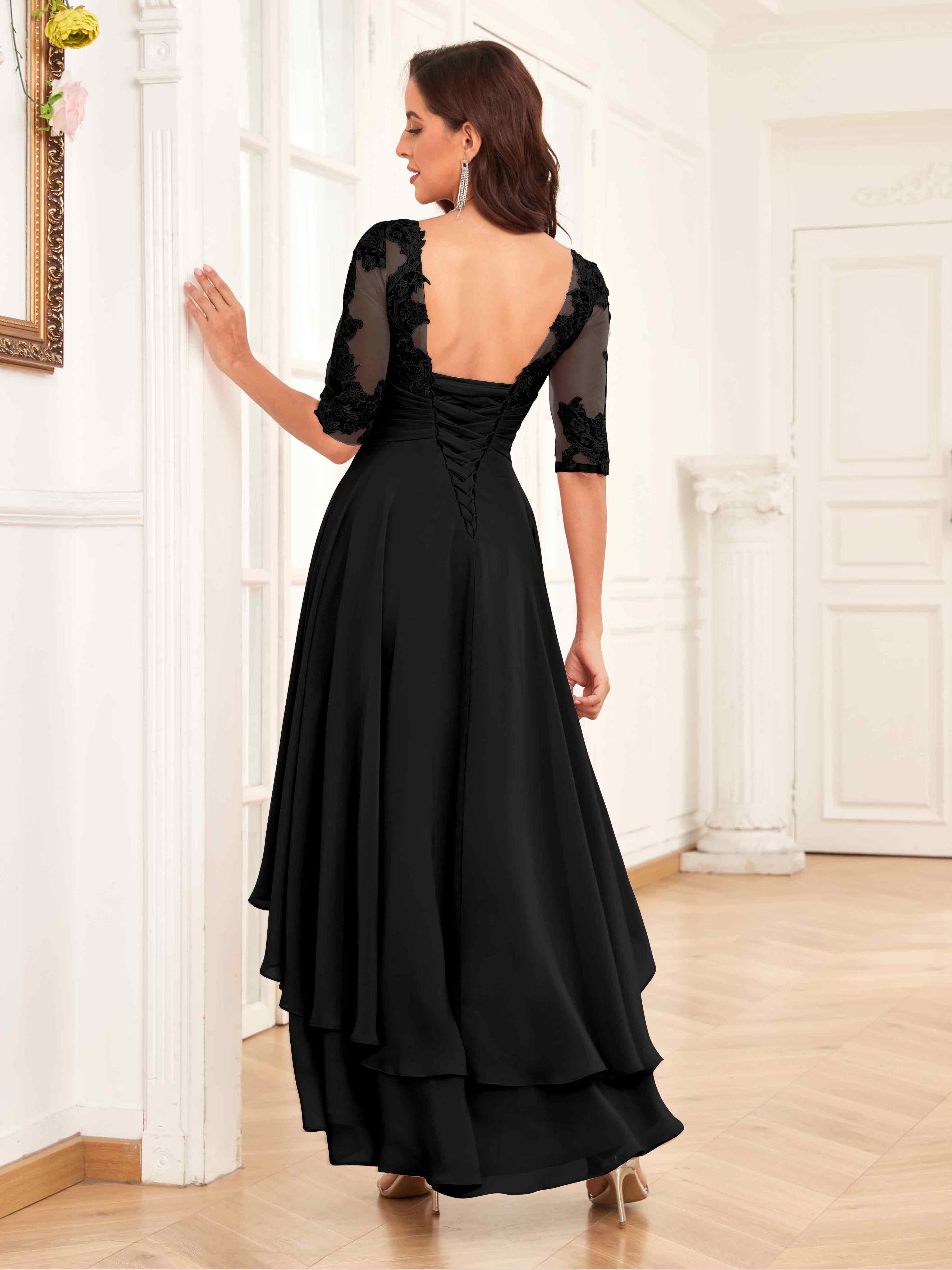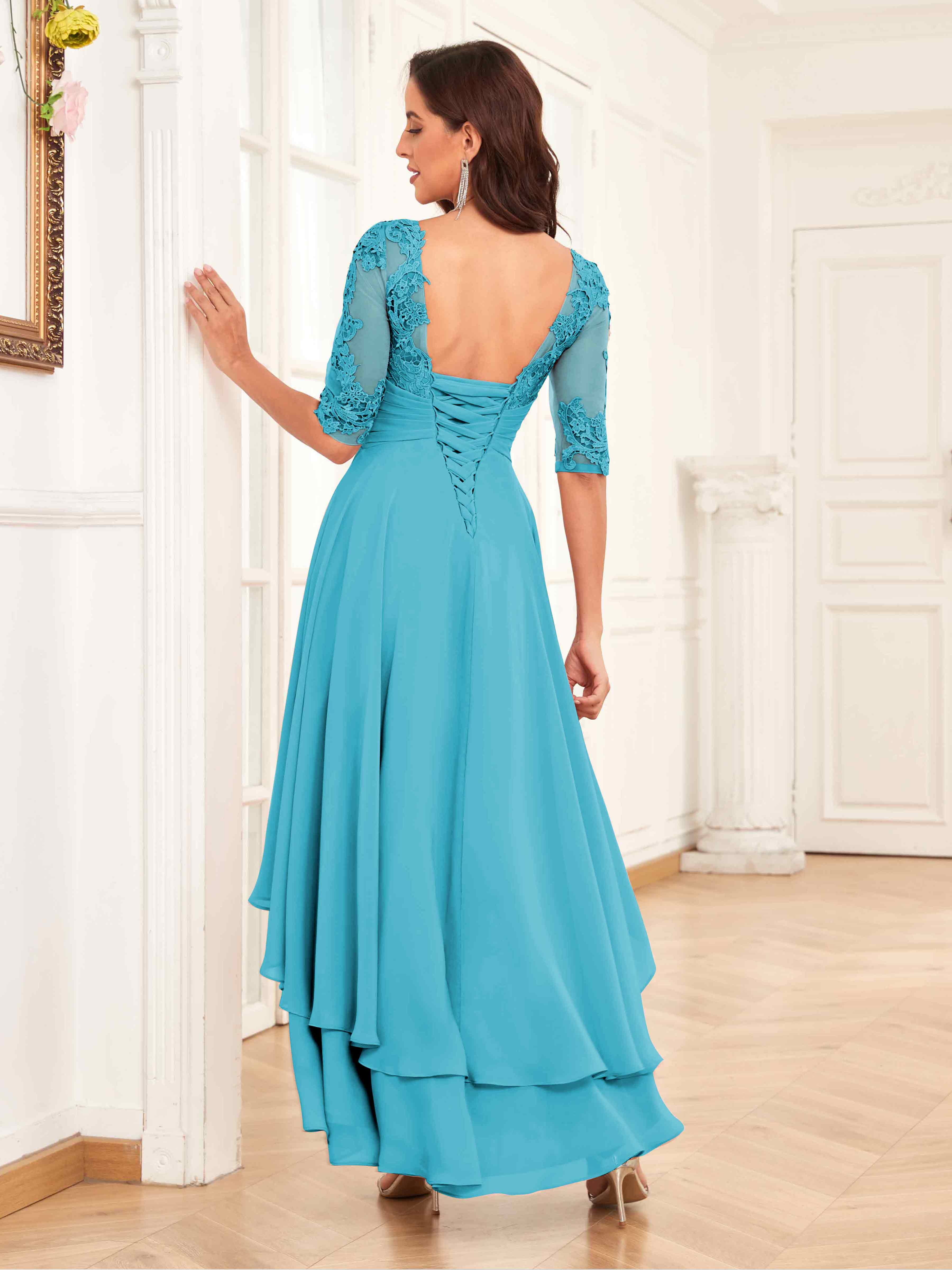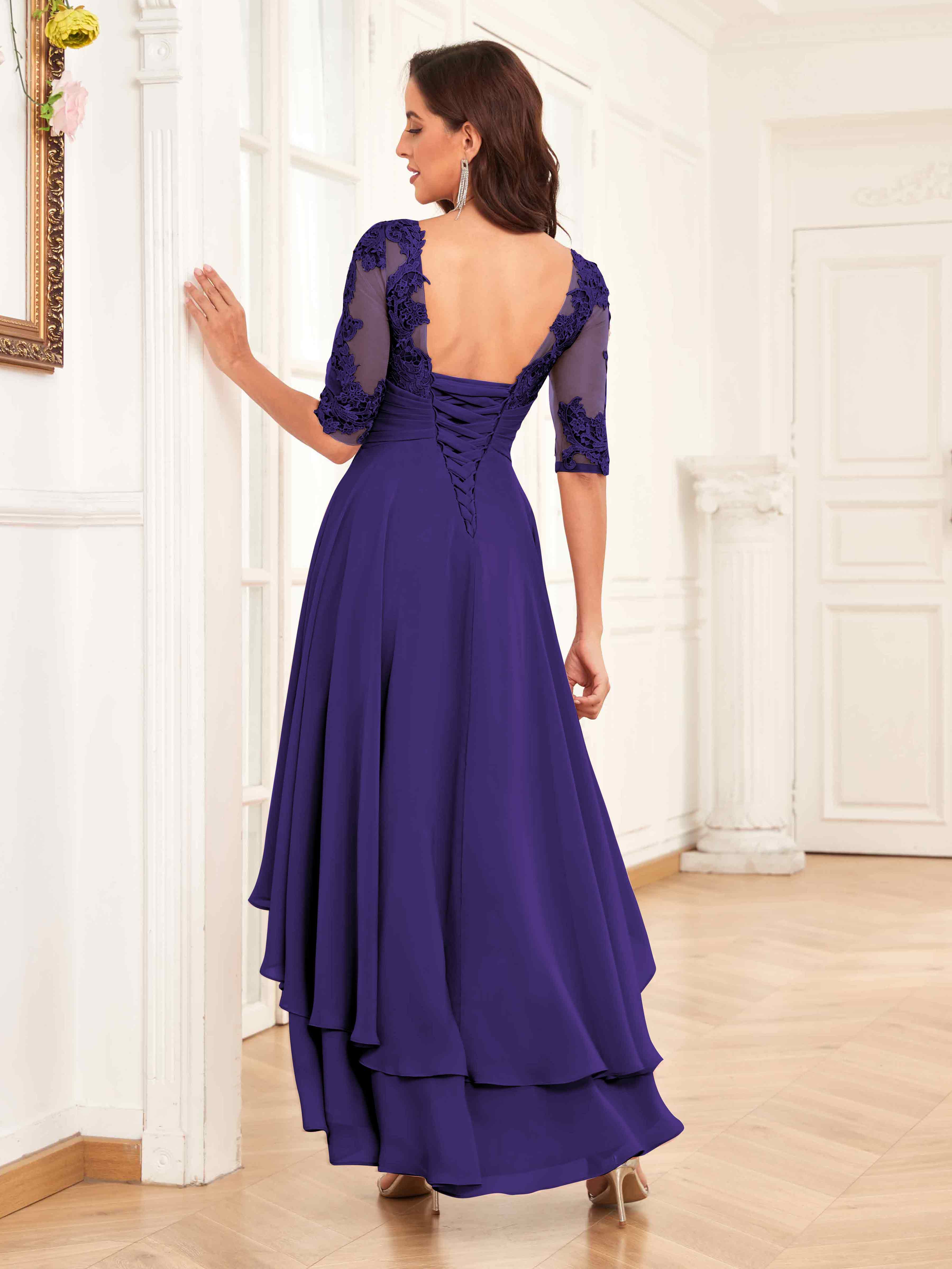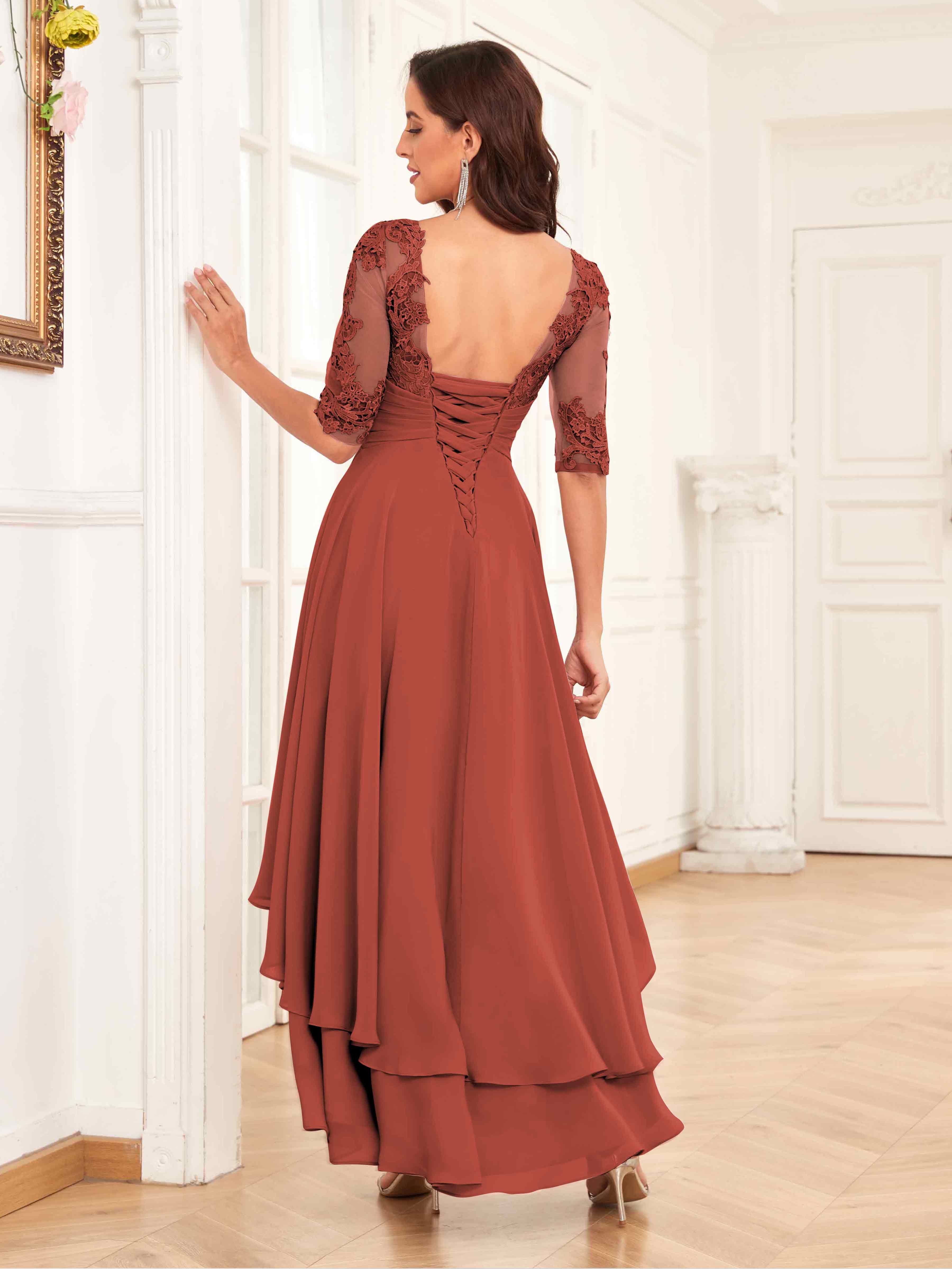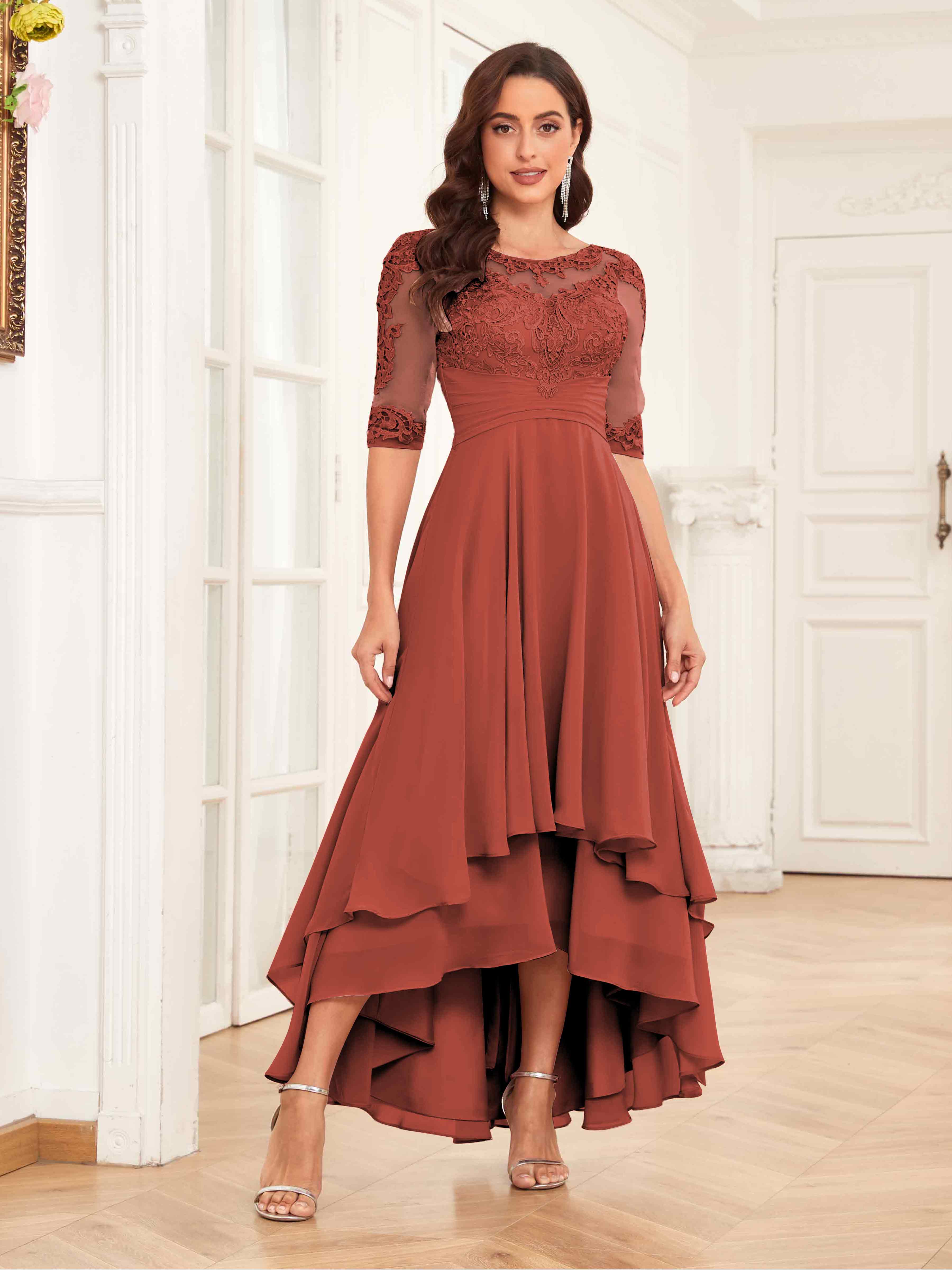 Adelaide Modern Illusion High Low Mother of the Bride & Groom Dresses with Half Sleeves