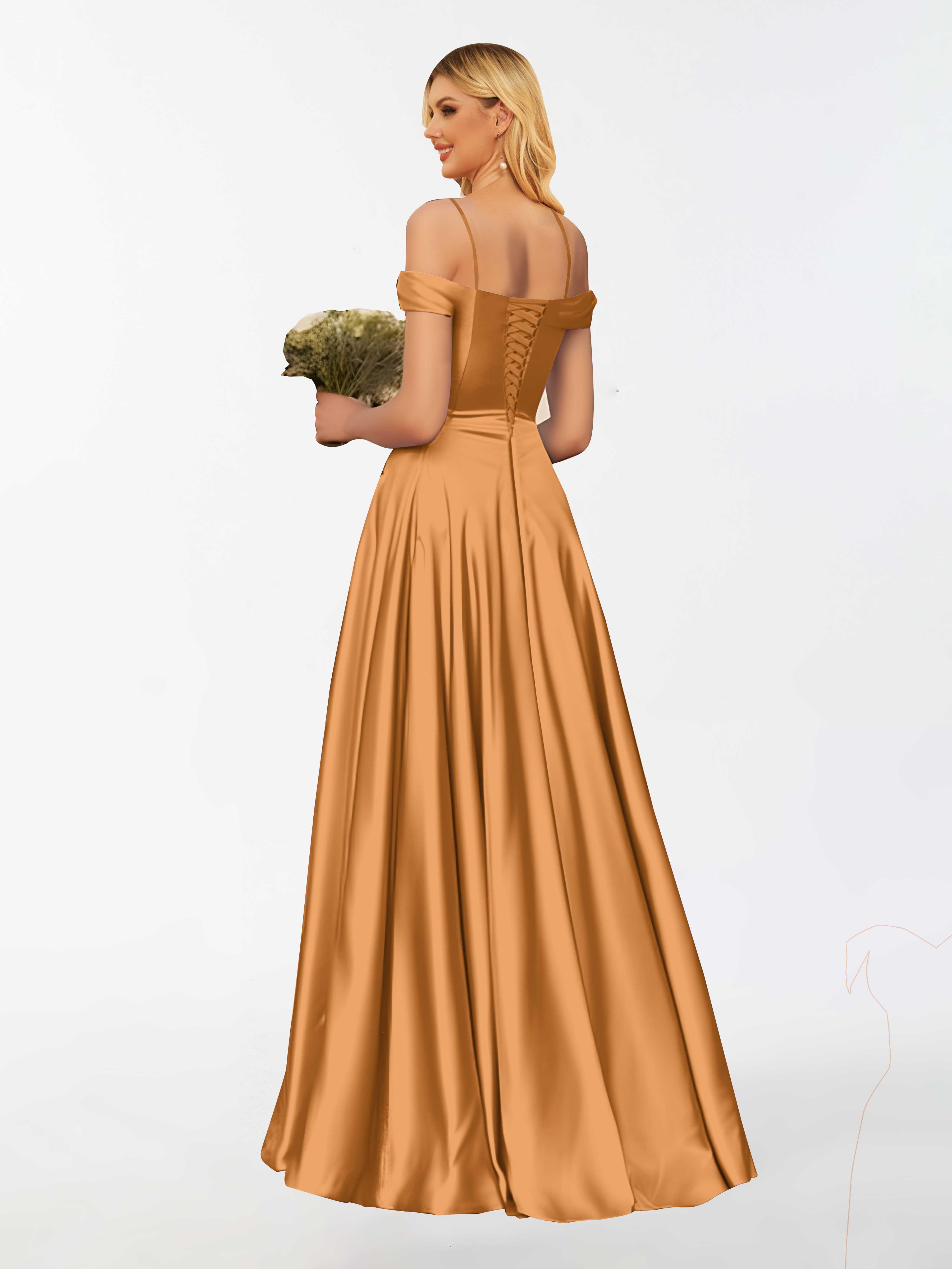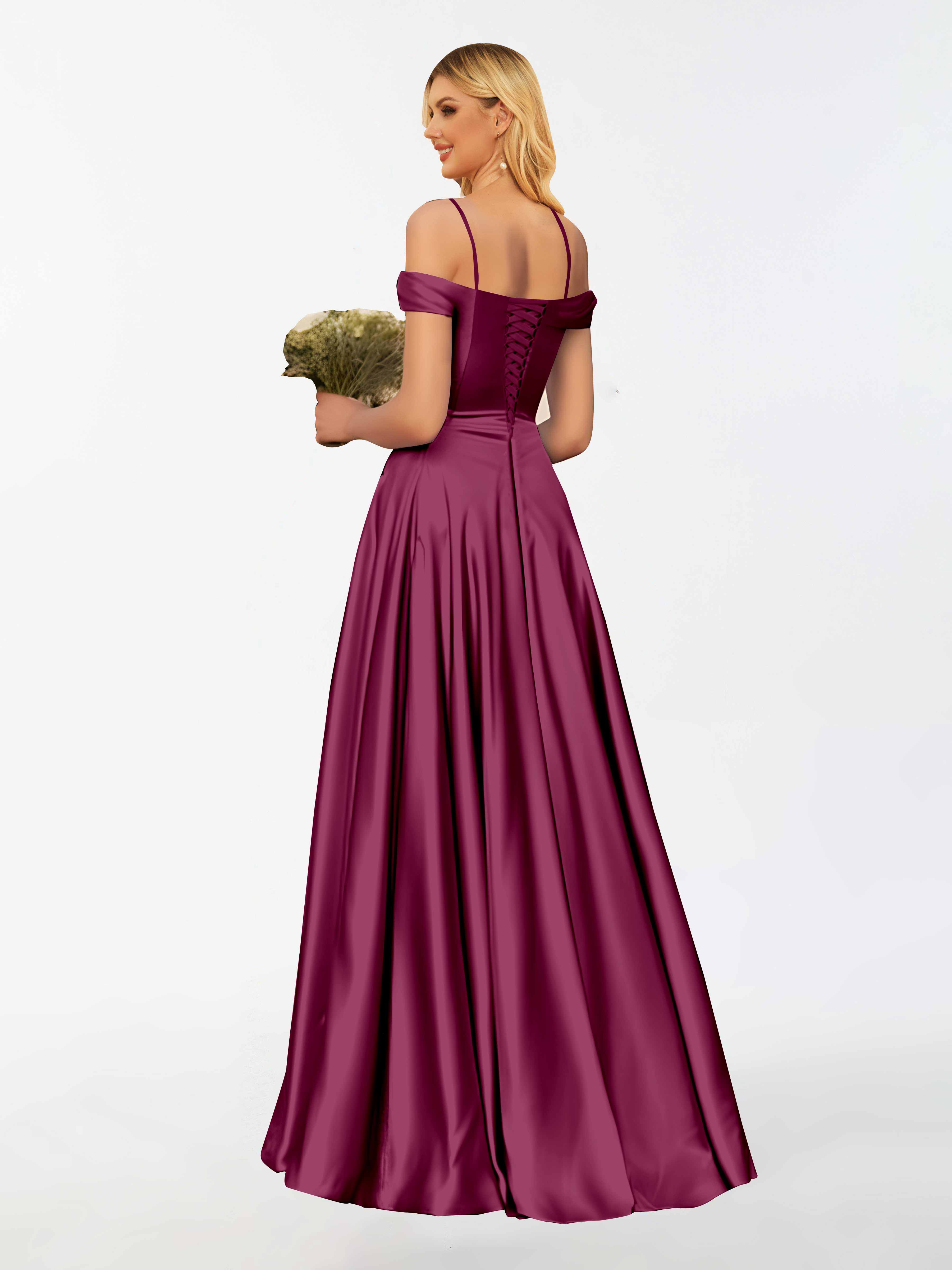Adelyn Classy Spaghetti Straps Pleated Satin Party Bridesmaid Dresses