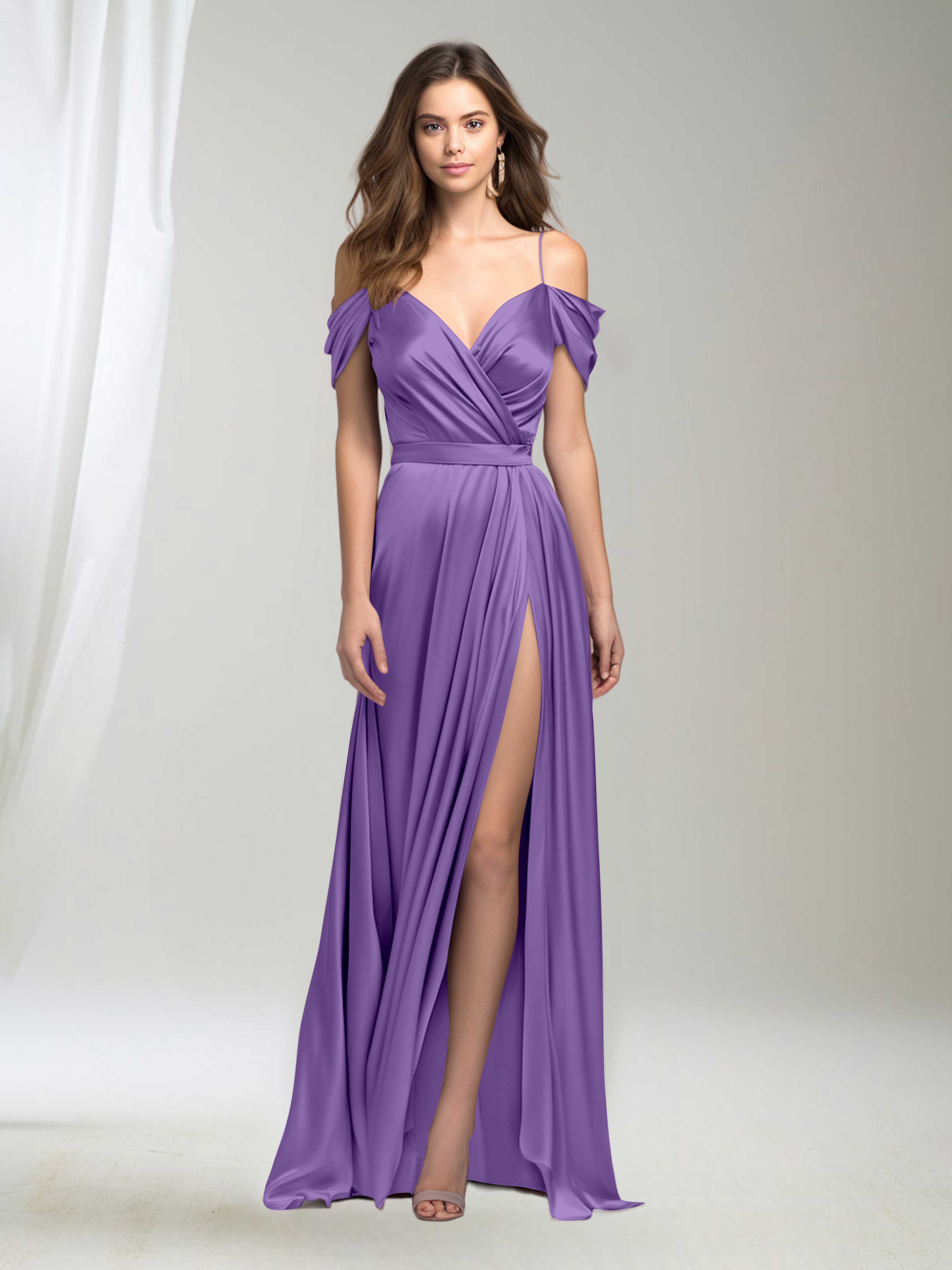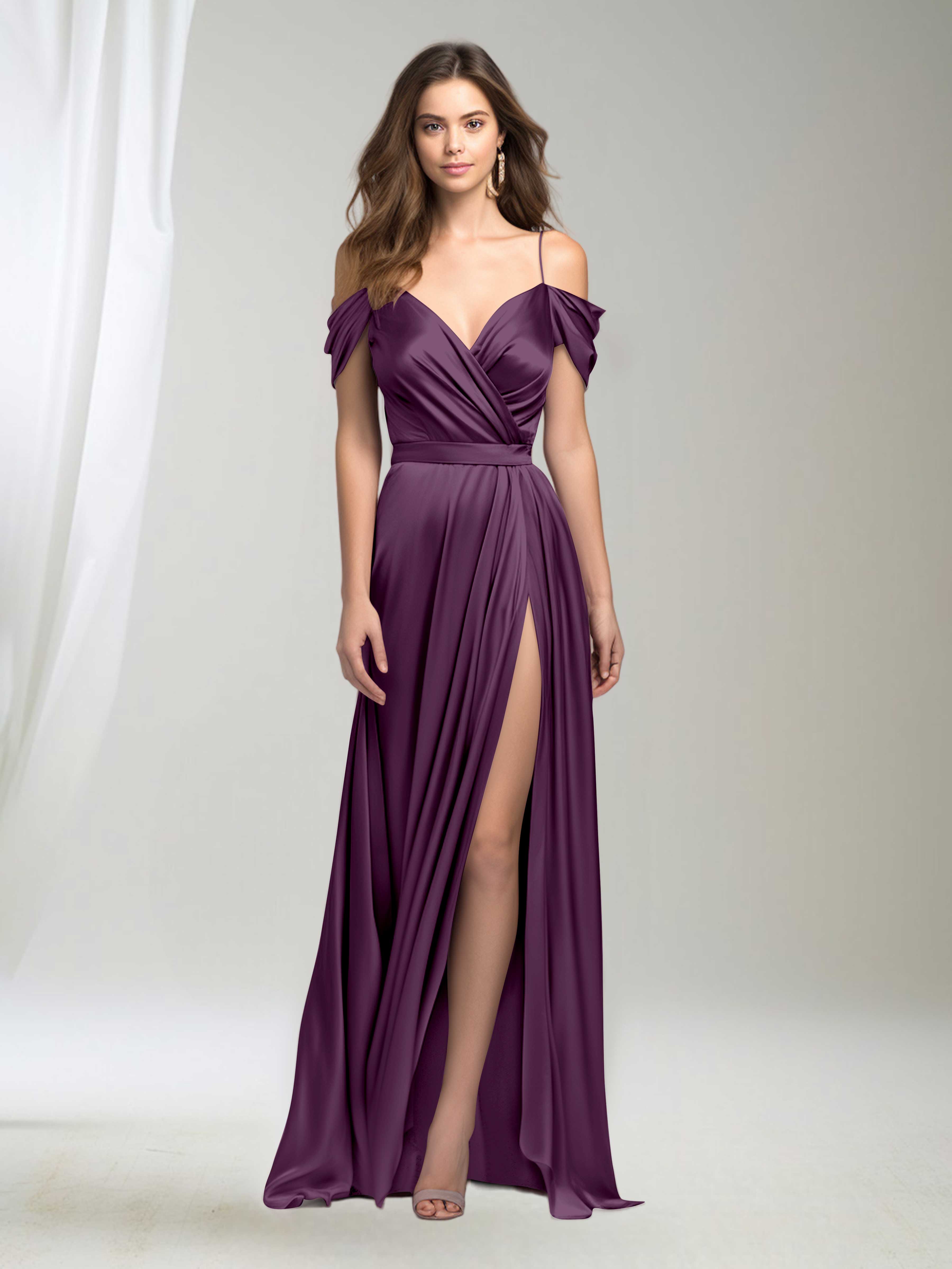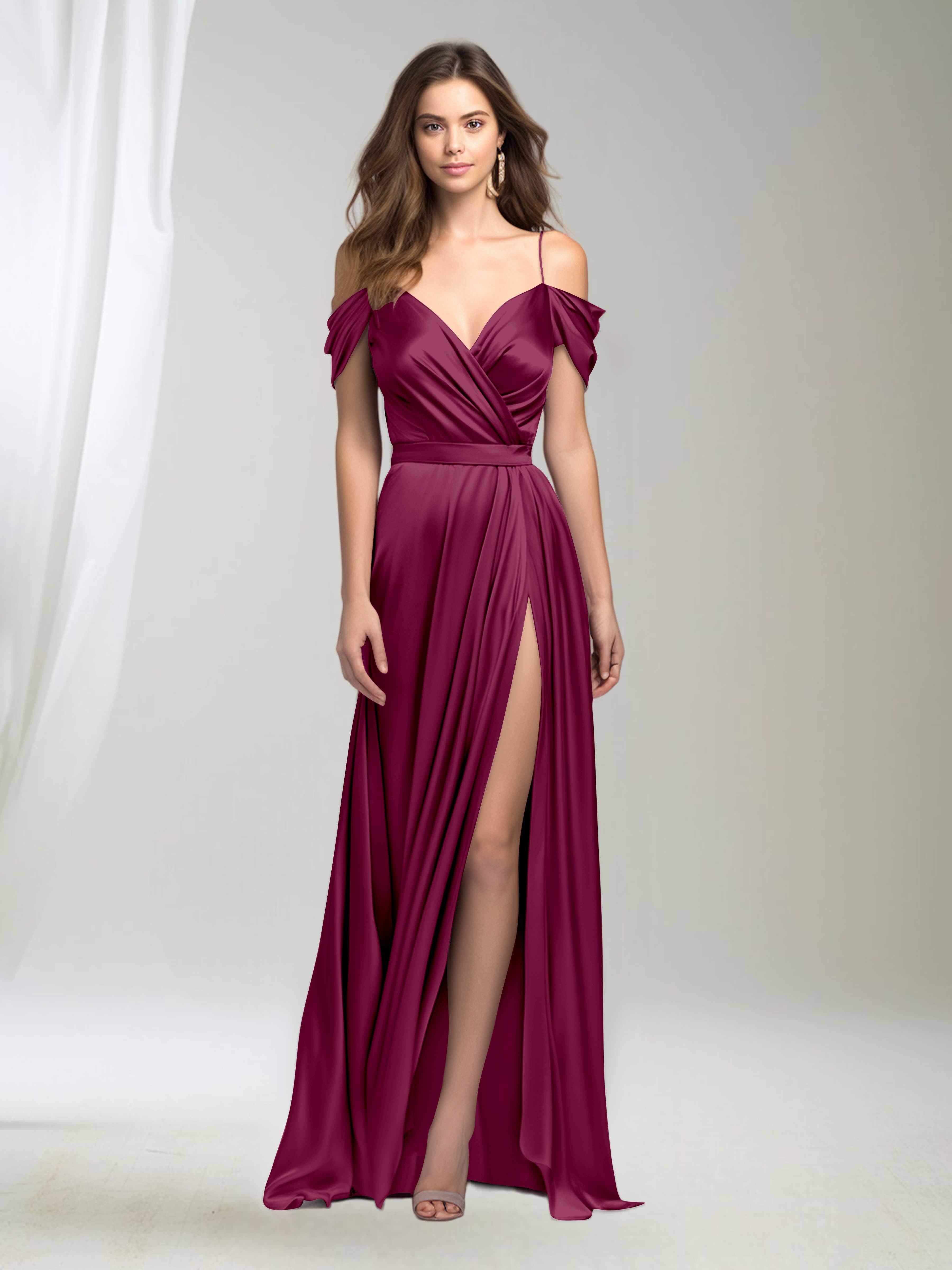 Elevate your bridesmaid style with the Adelyn dress. This classy gown features delicate spaghetti straps, elegant pleating, and luxurious satin fabric. Embrace timeless beauty and make a statement at any party or special occasion. Shop now and exude grace and sophistication with this stunning dress!