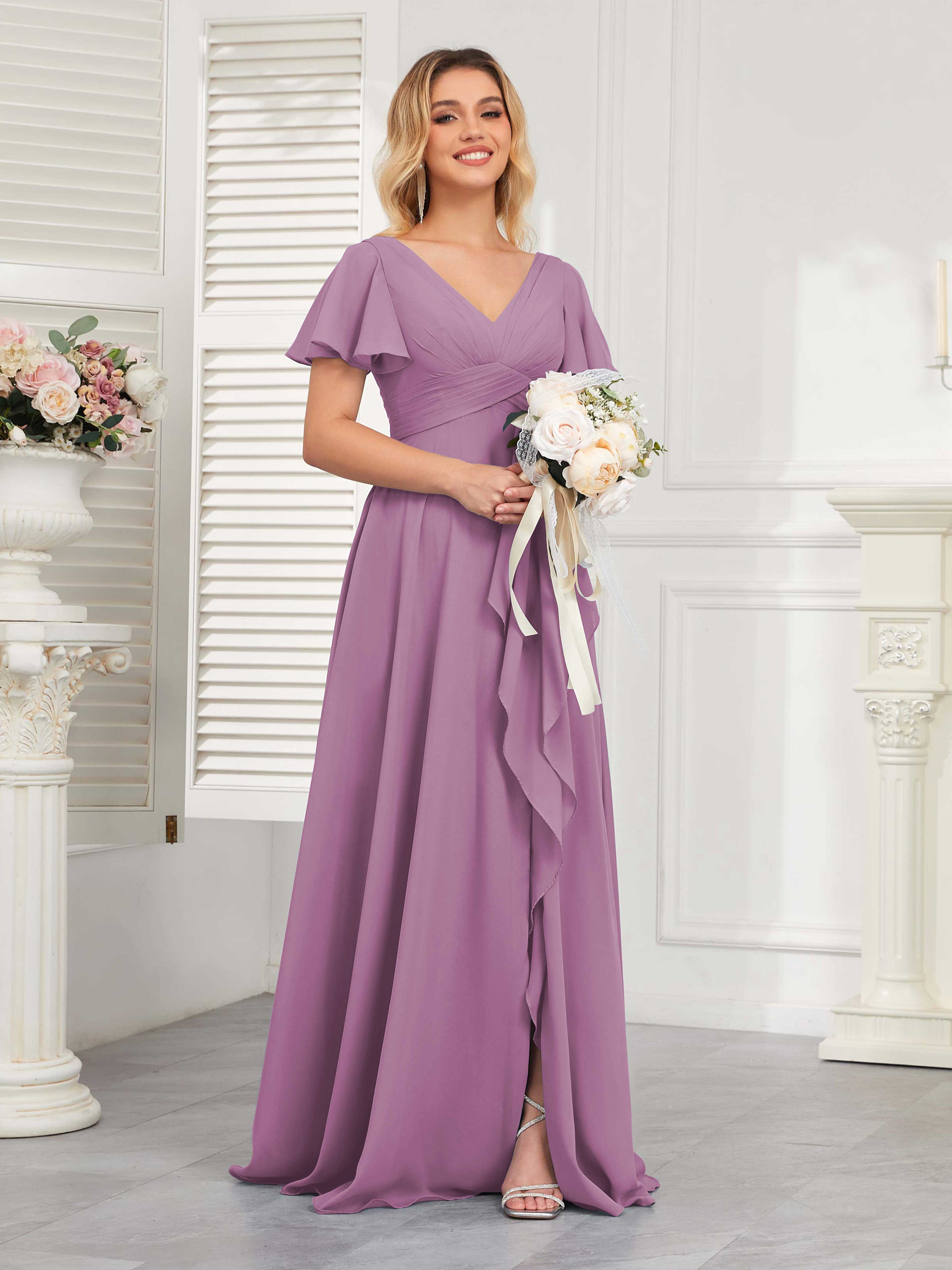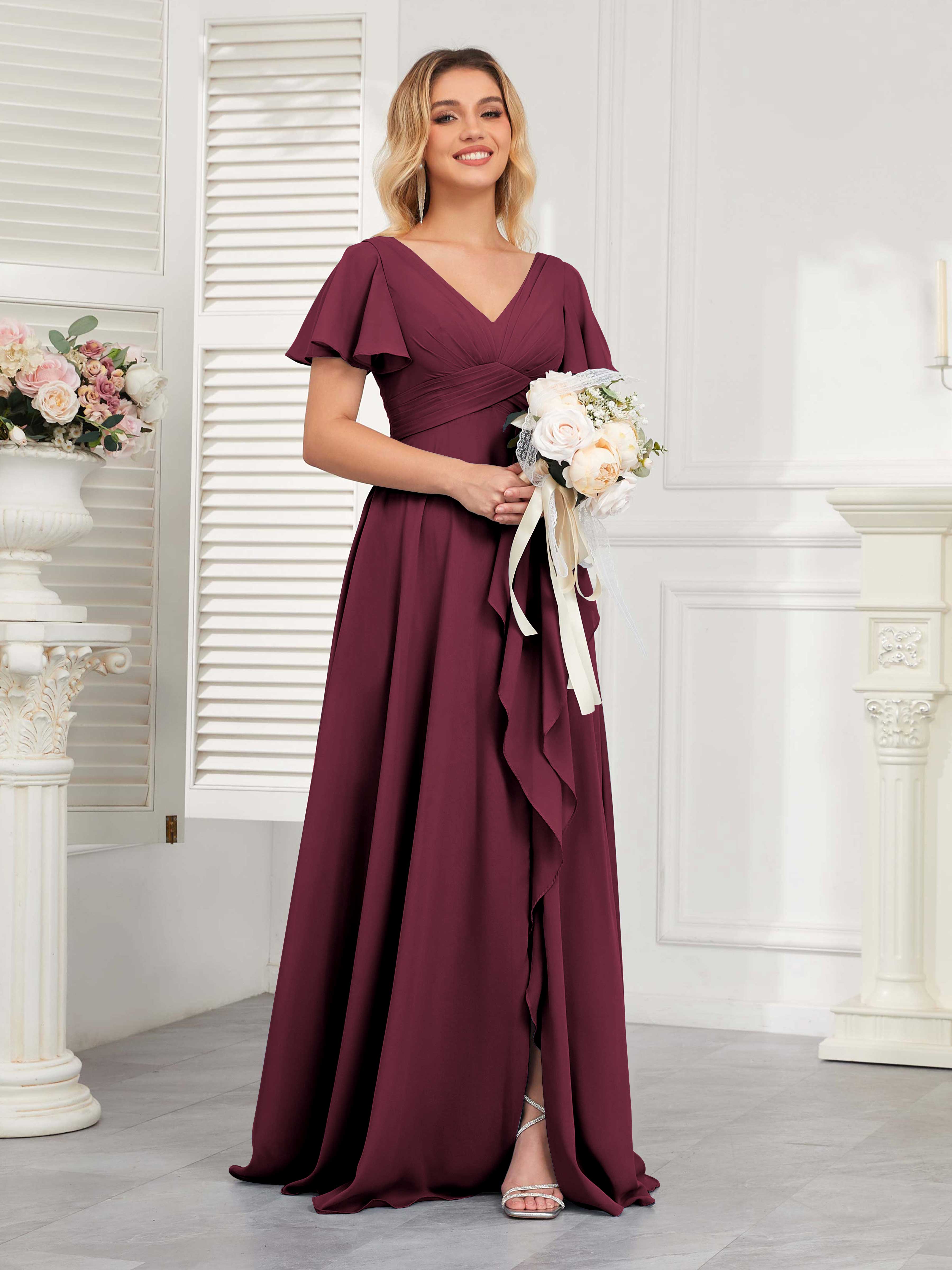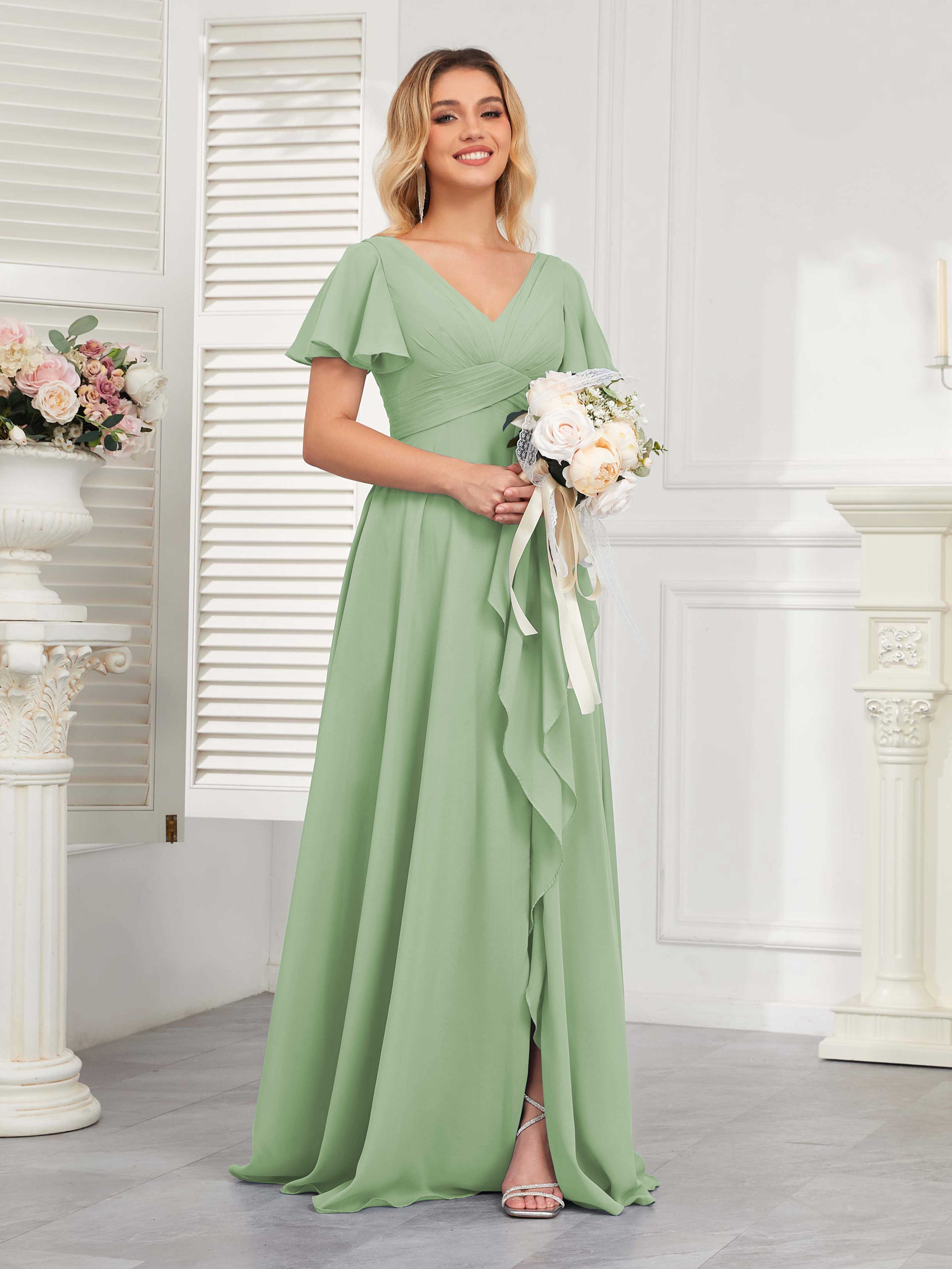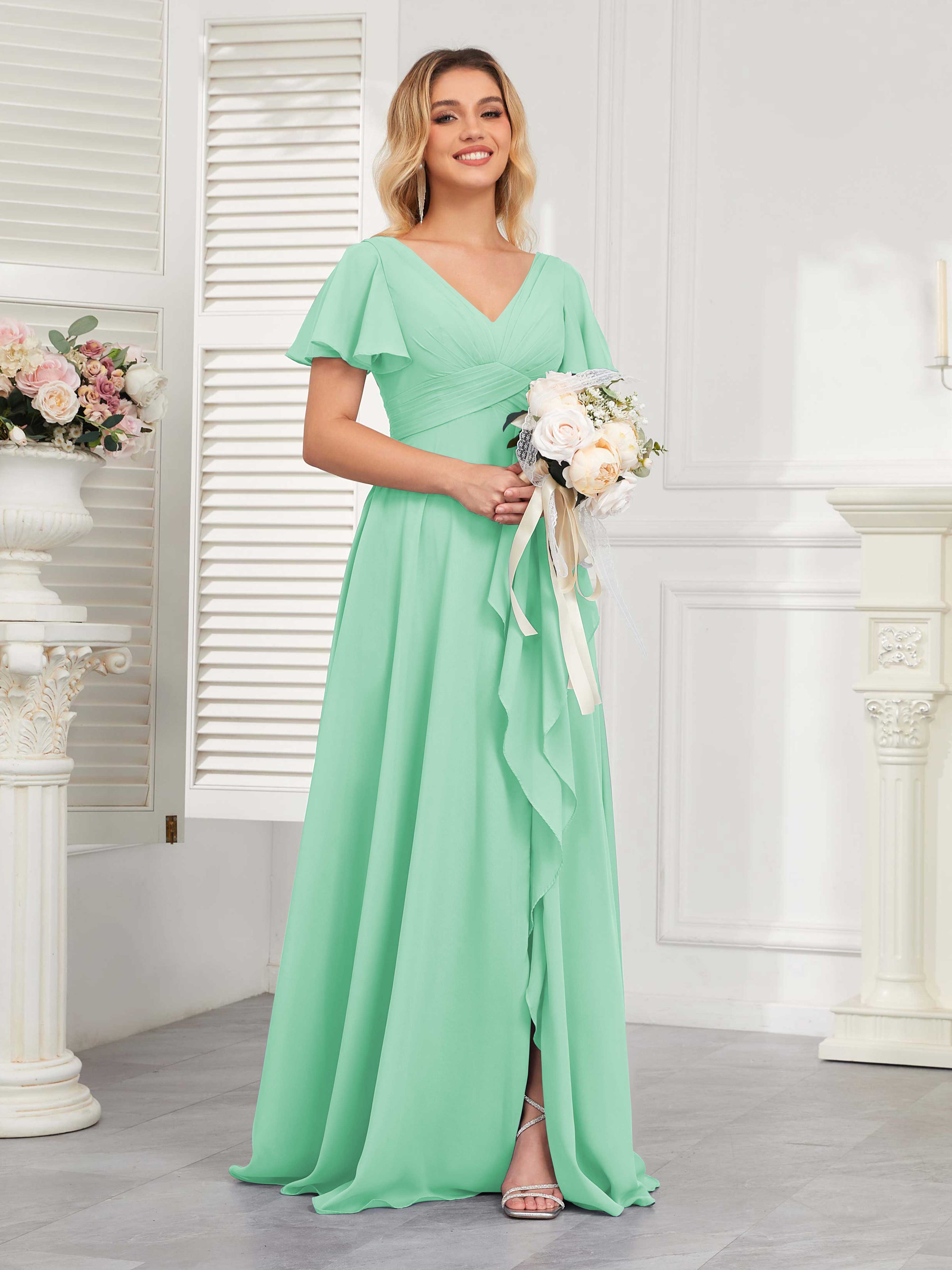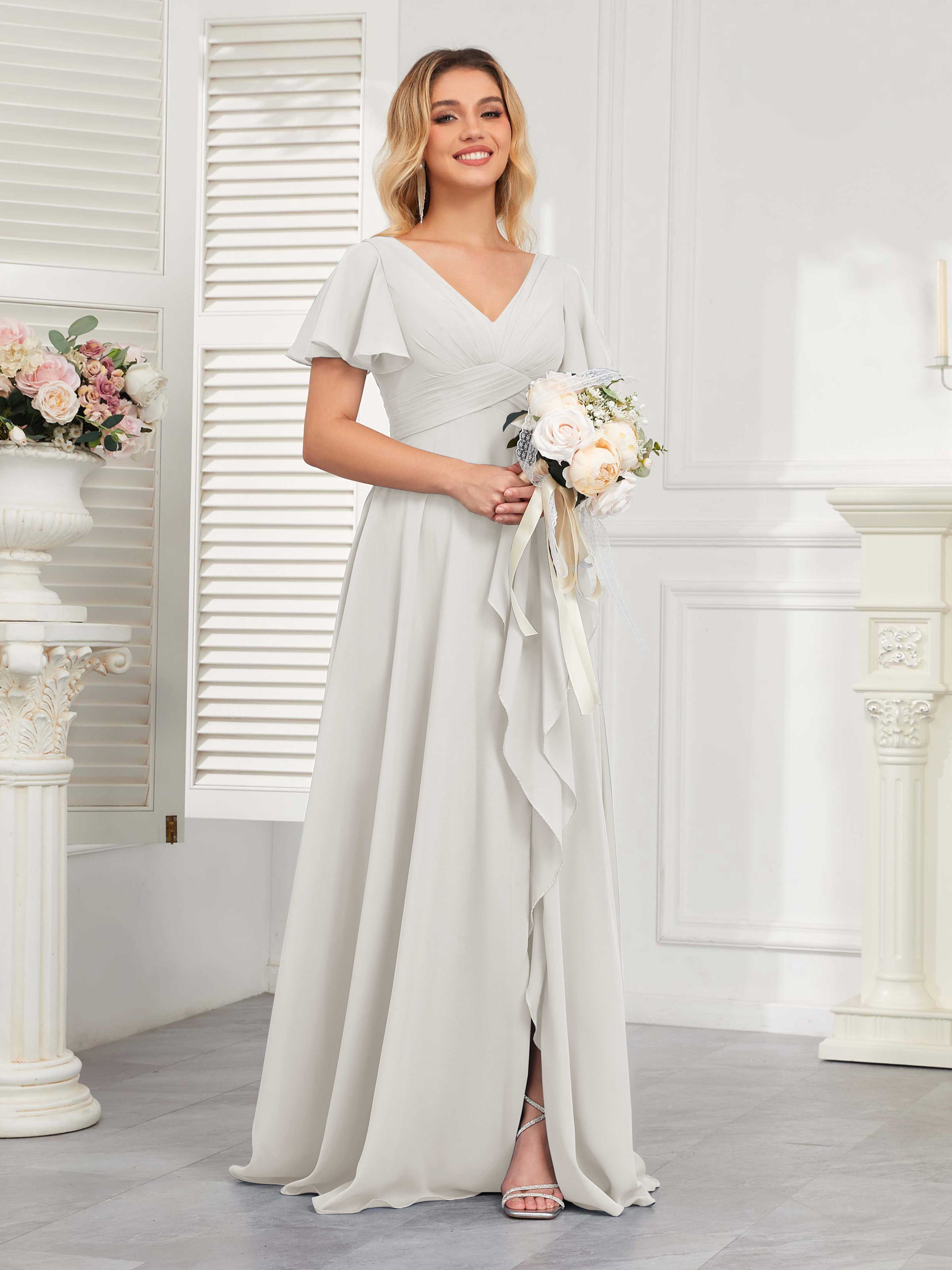 Ainsley Dreamy Short Sleeves Long Chiffon Bridesmaid Dresses
