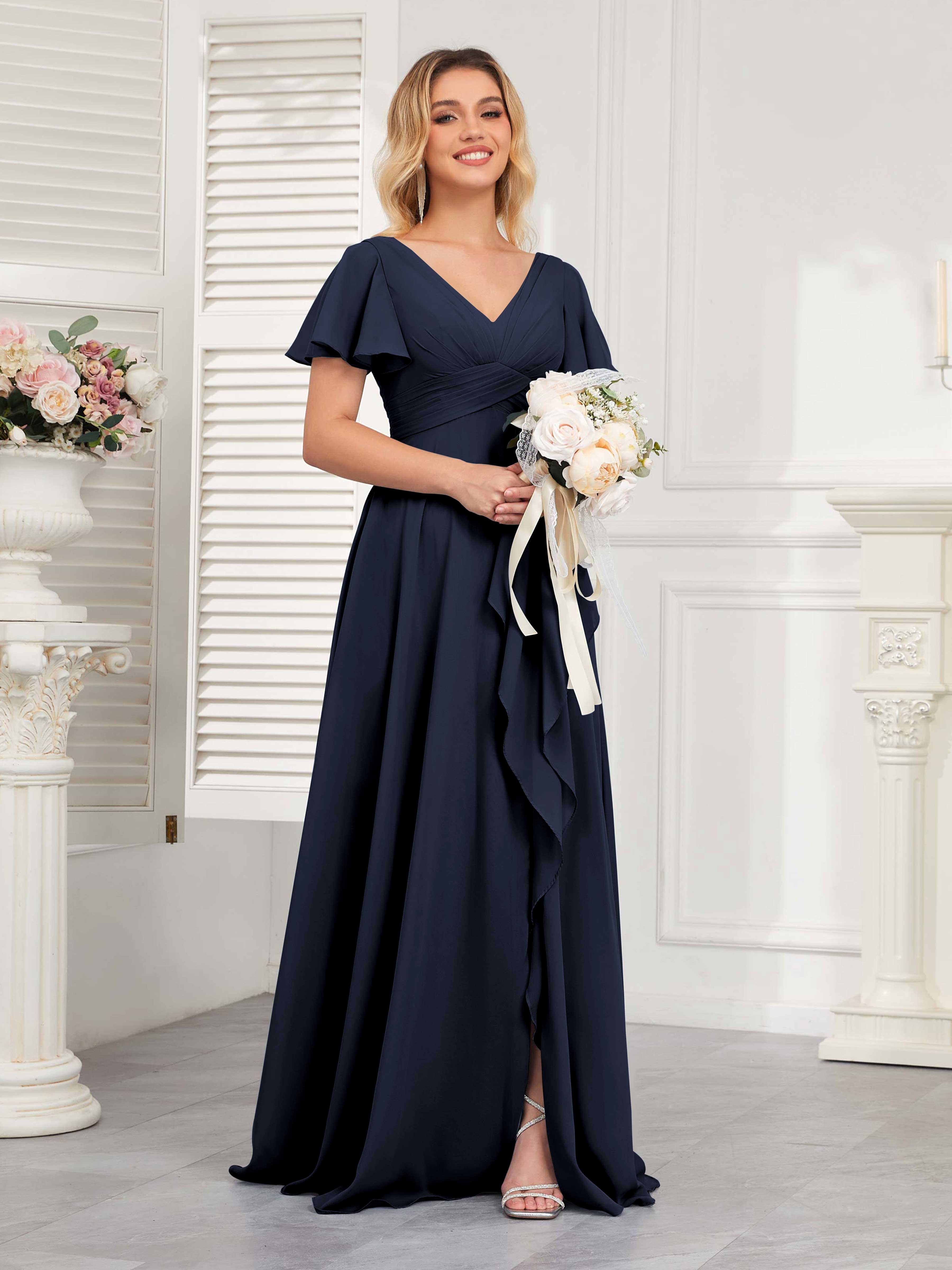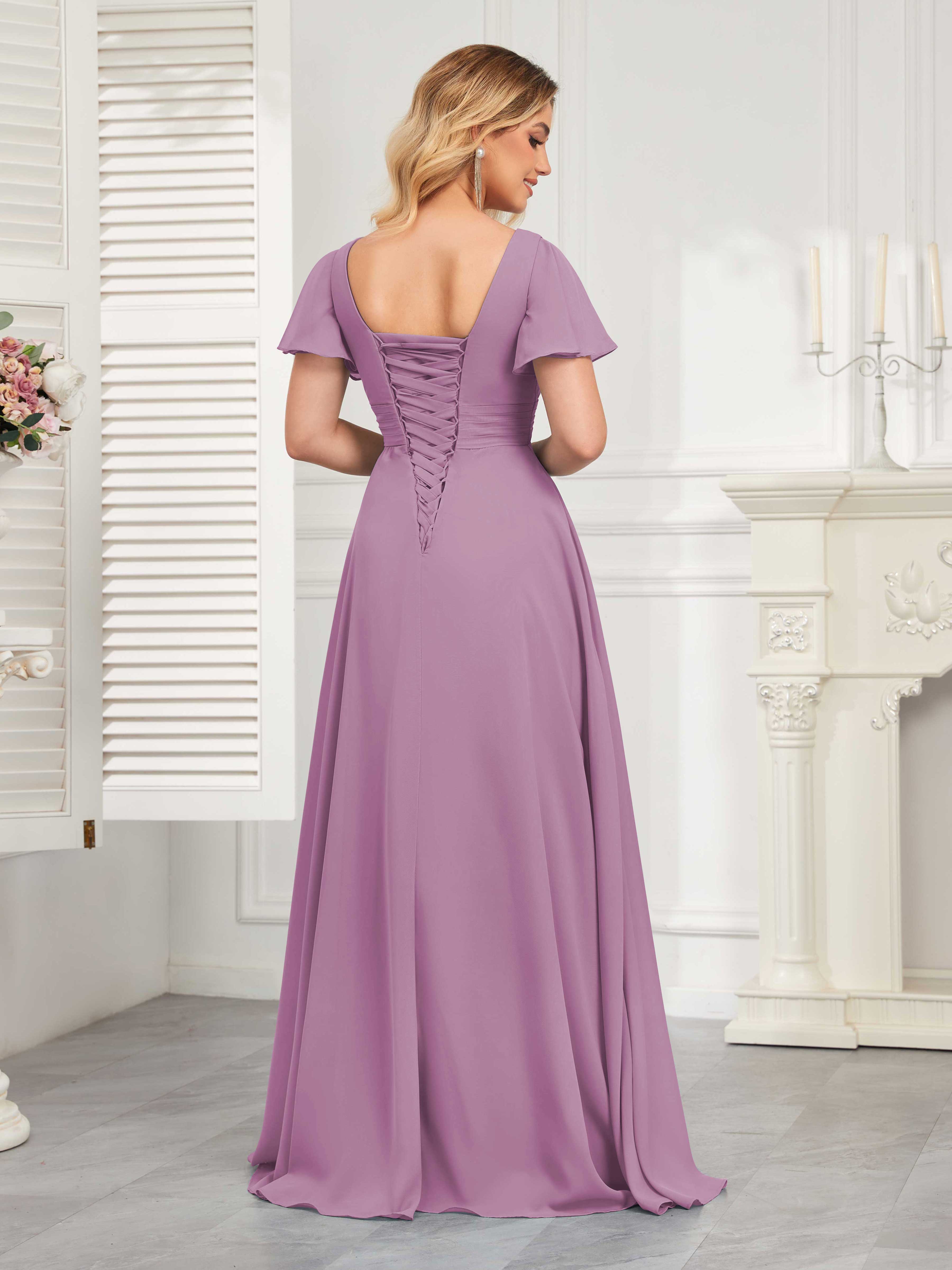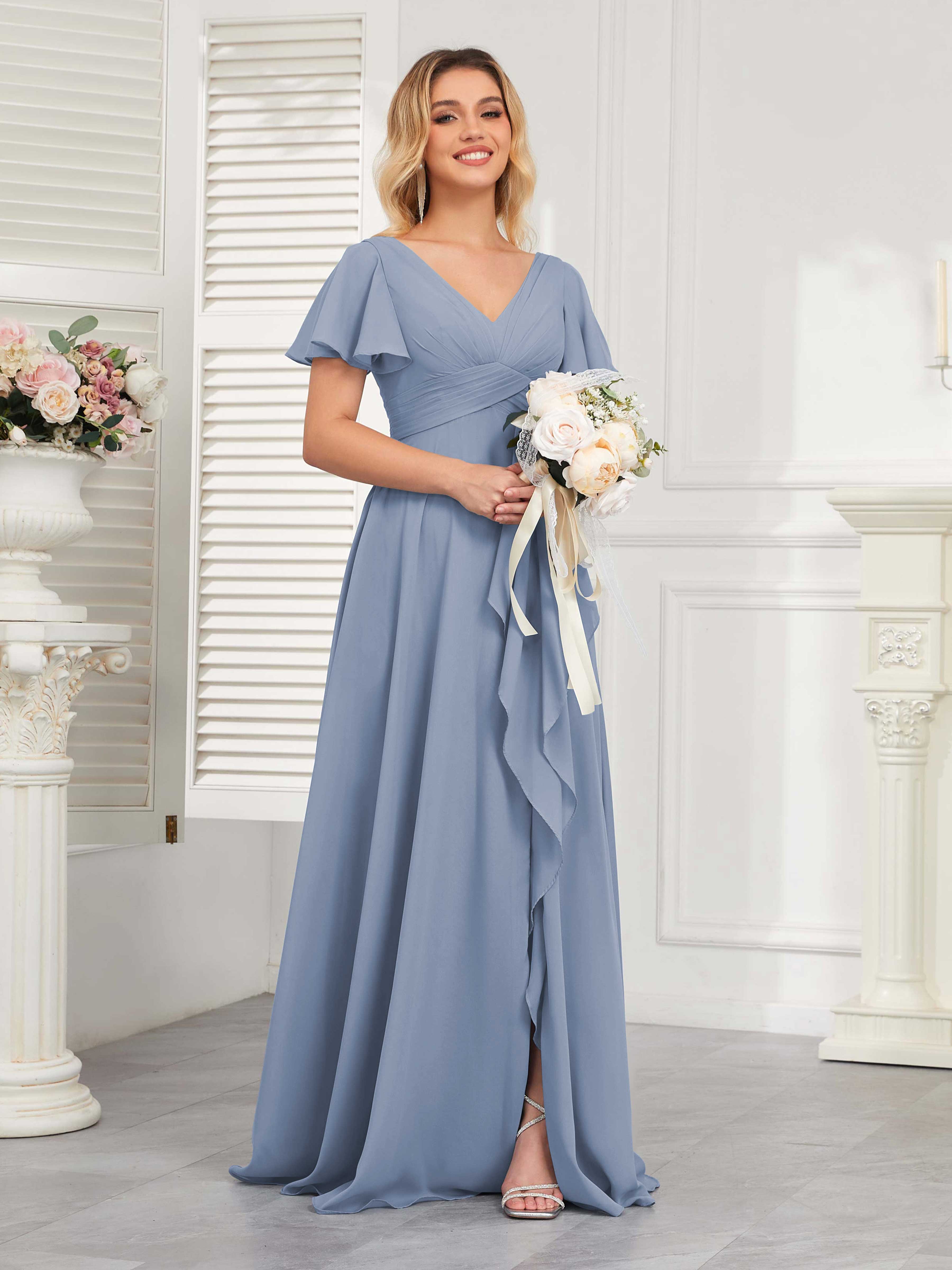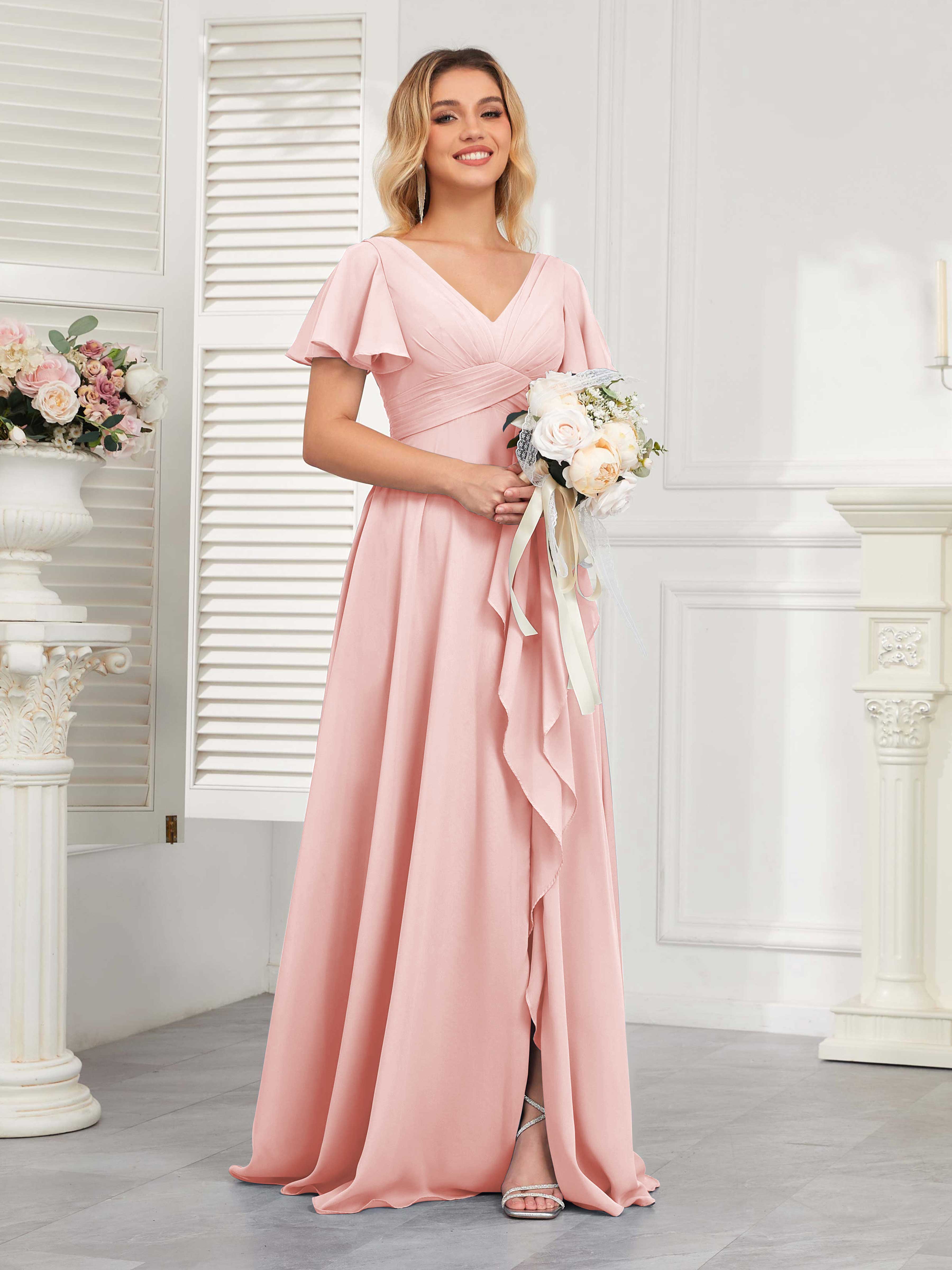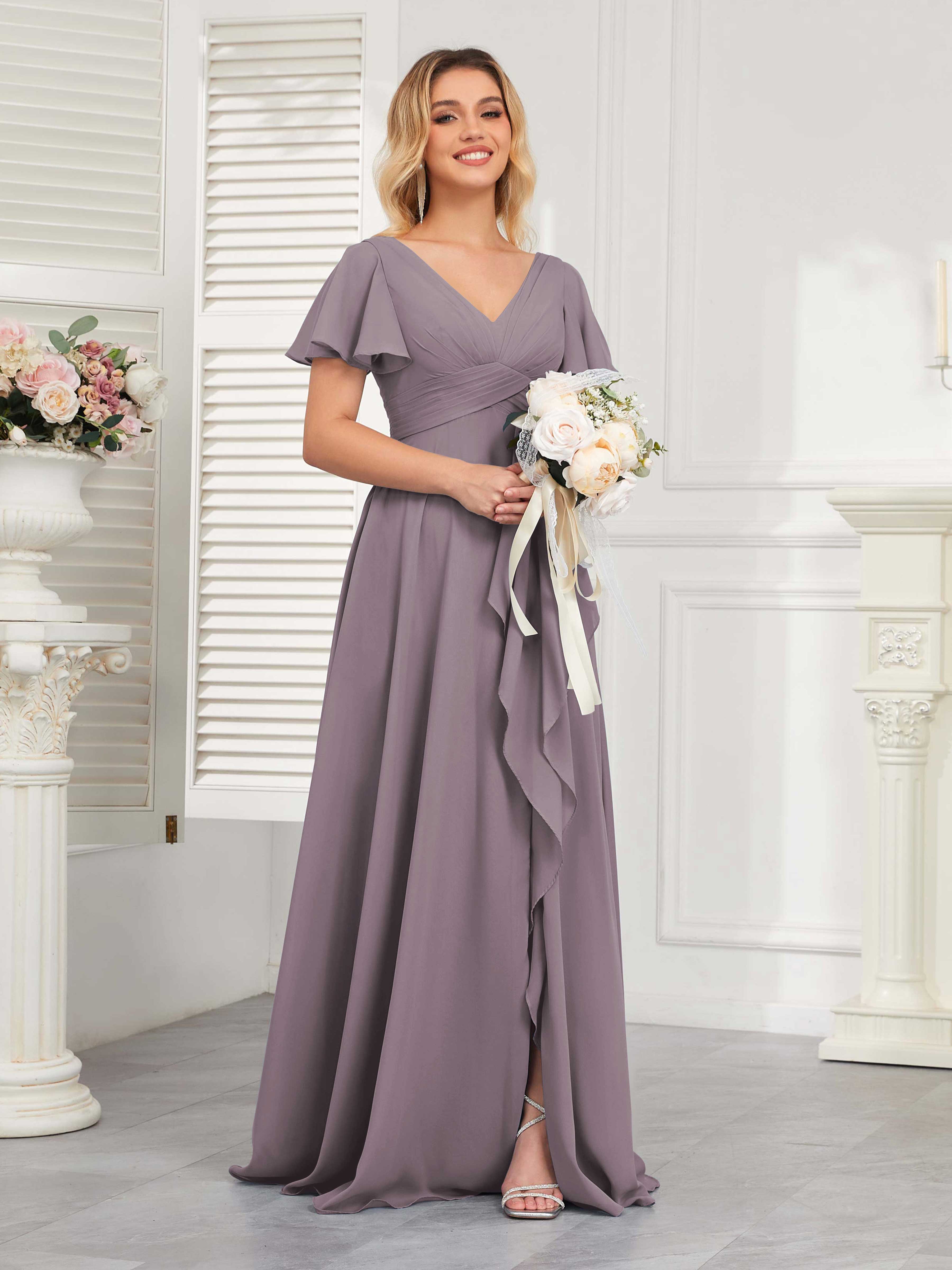 Ainsley Dreamy Short Sleeves Long Chiffon Bridesmaid Dresses
