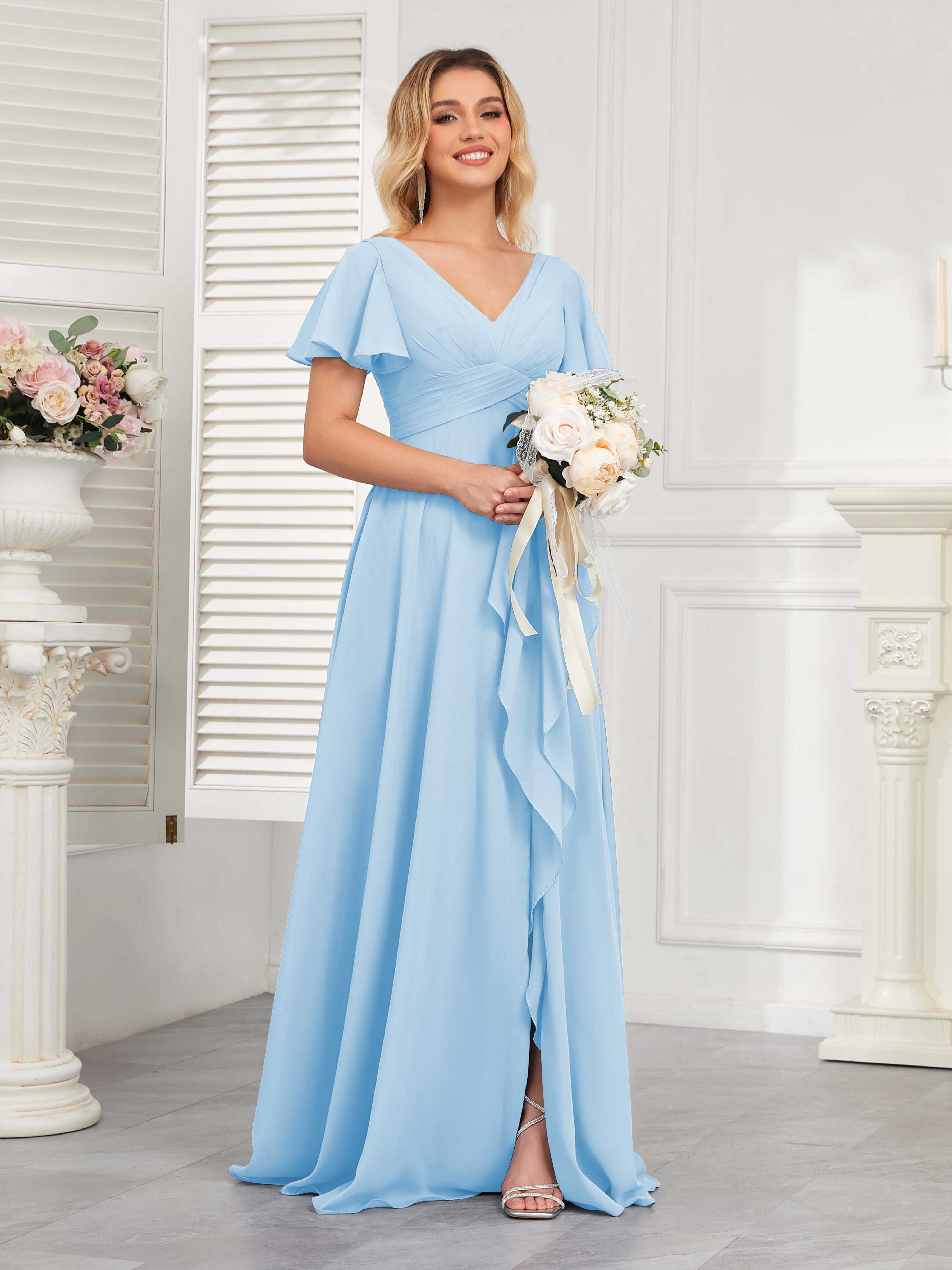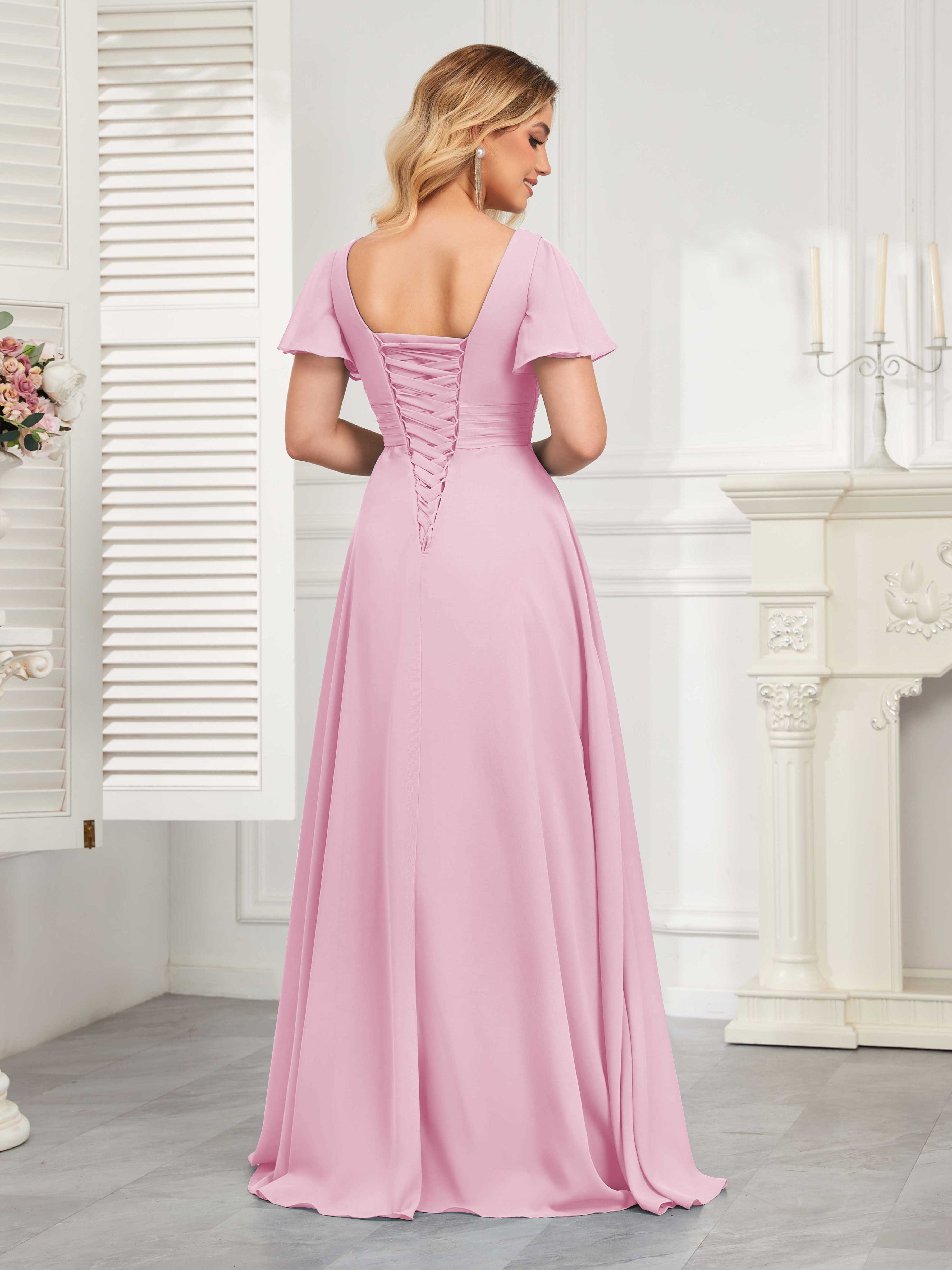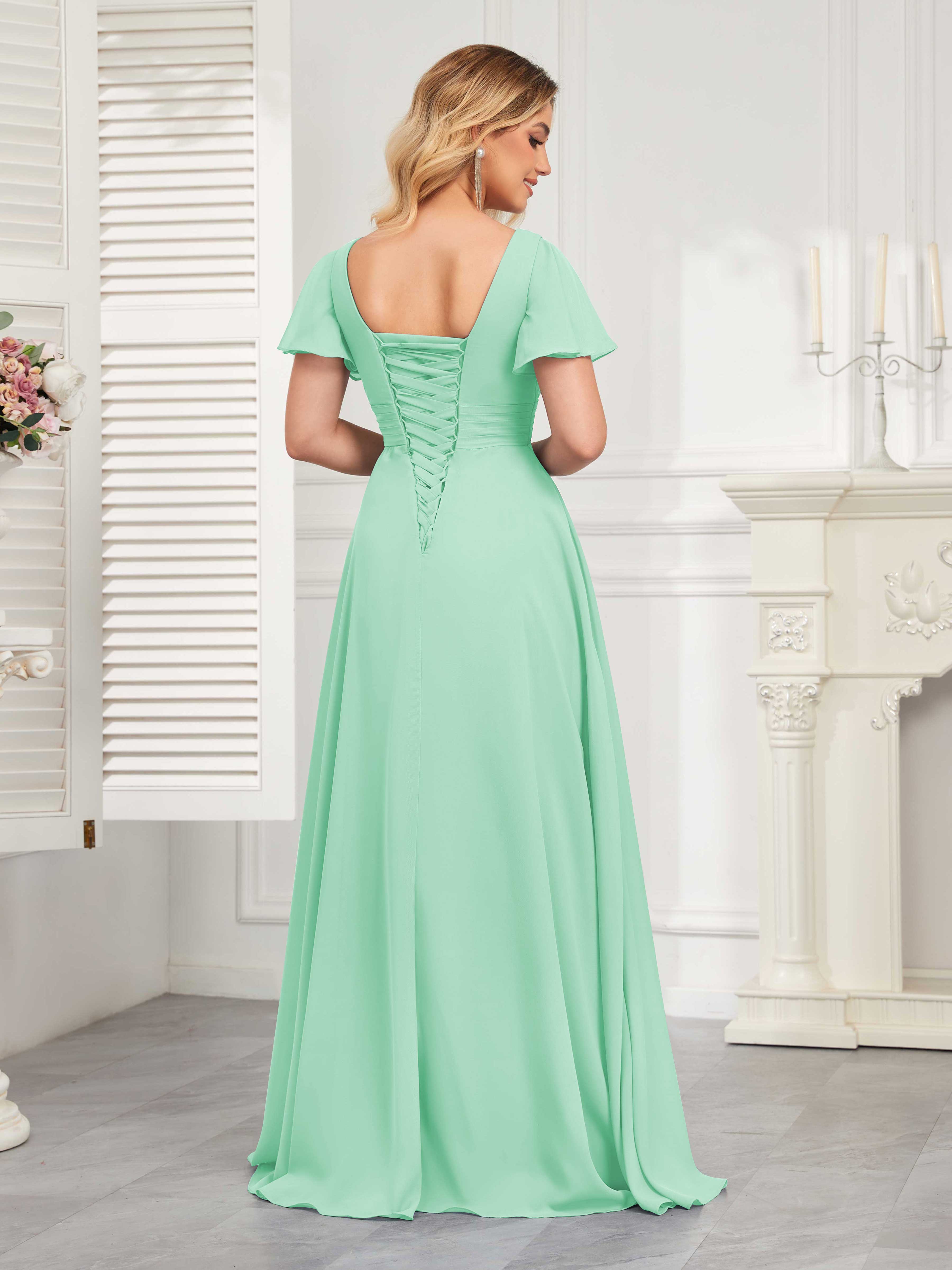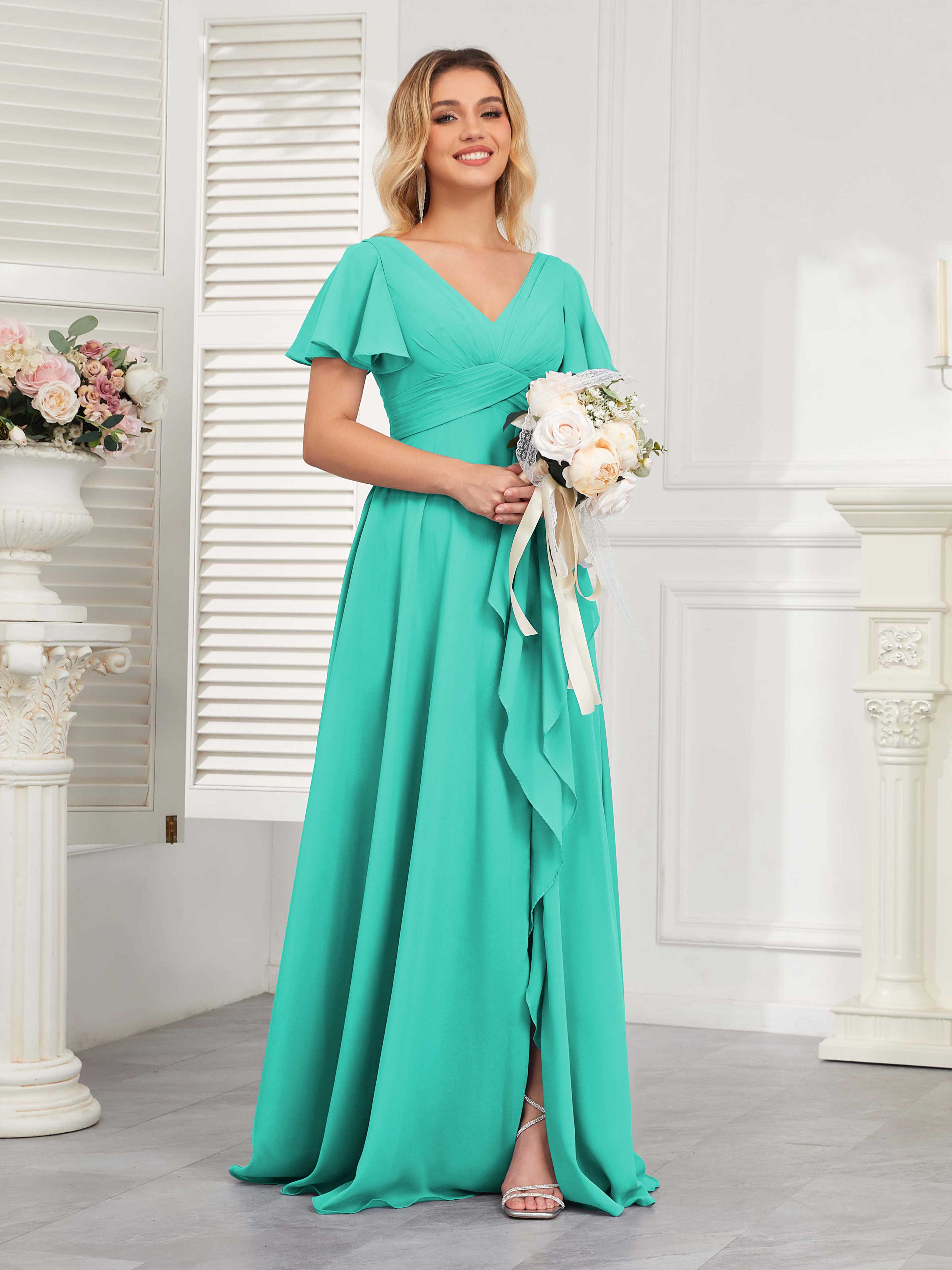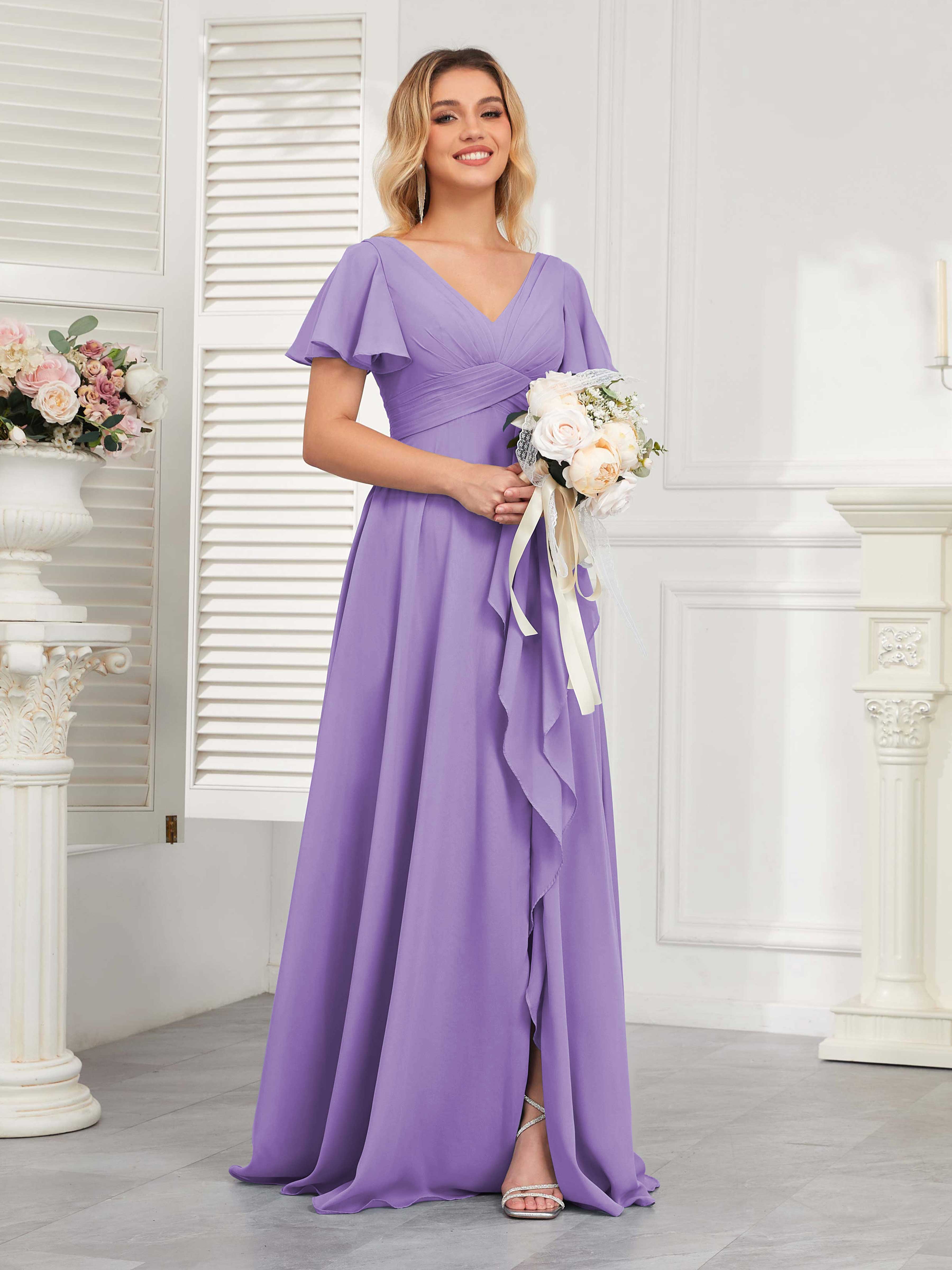 Ainsley Dreamy Short Sleeves Long Chiffon Bridesmaid Dresses