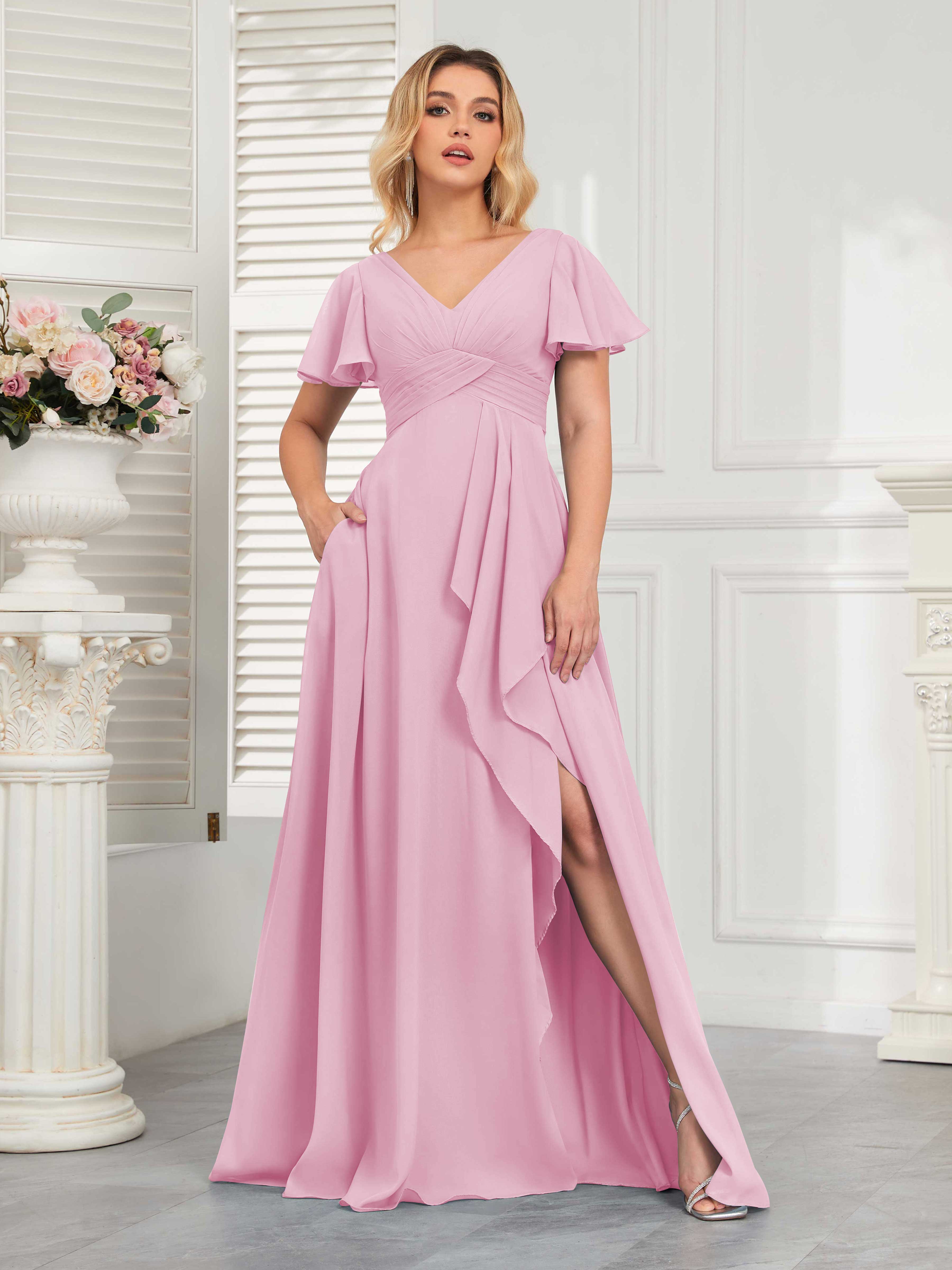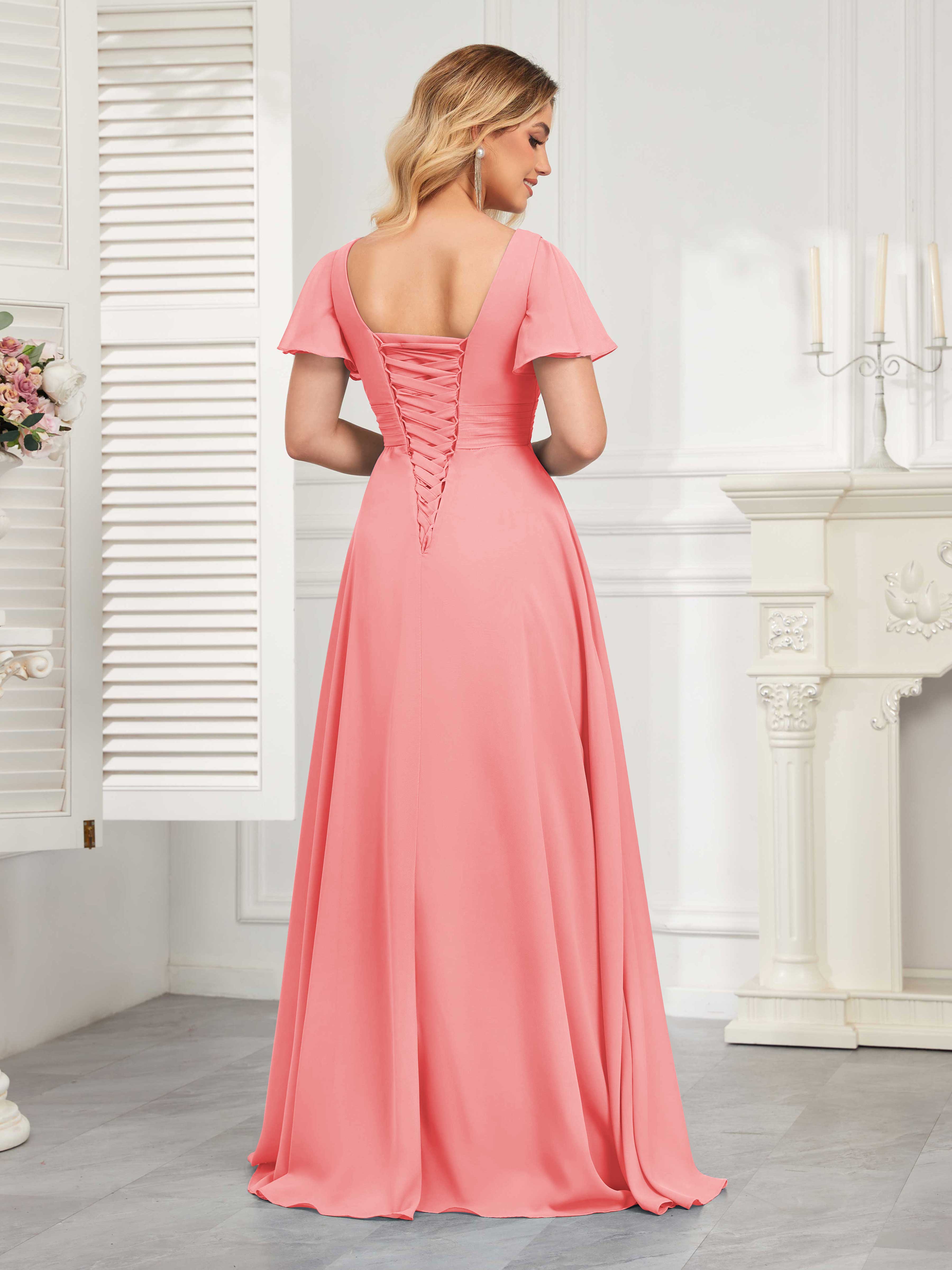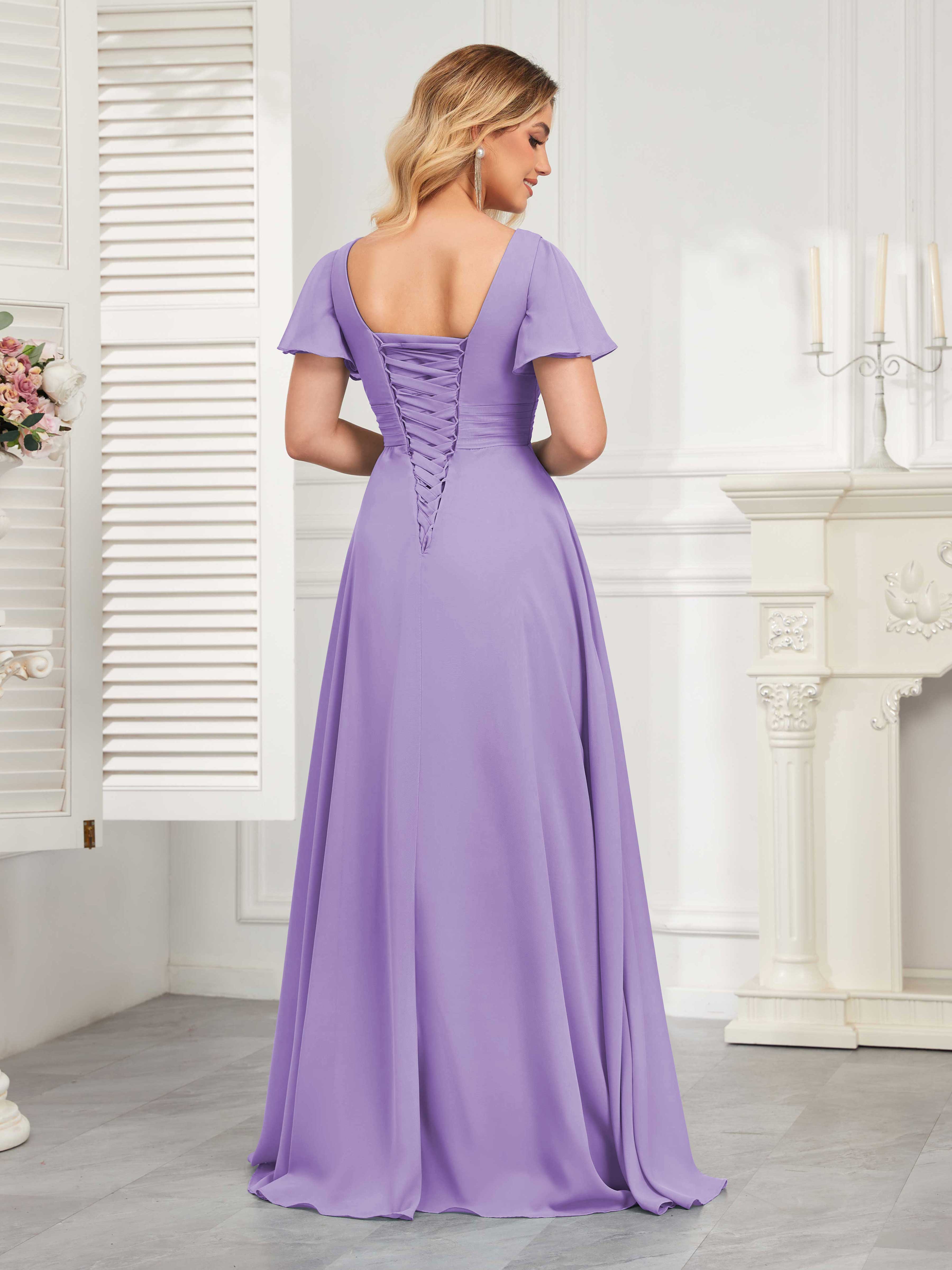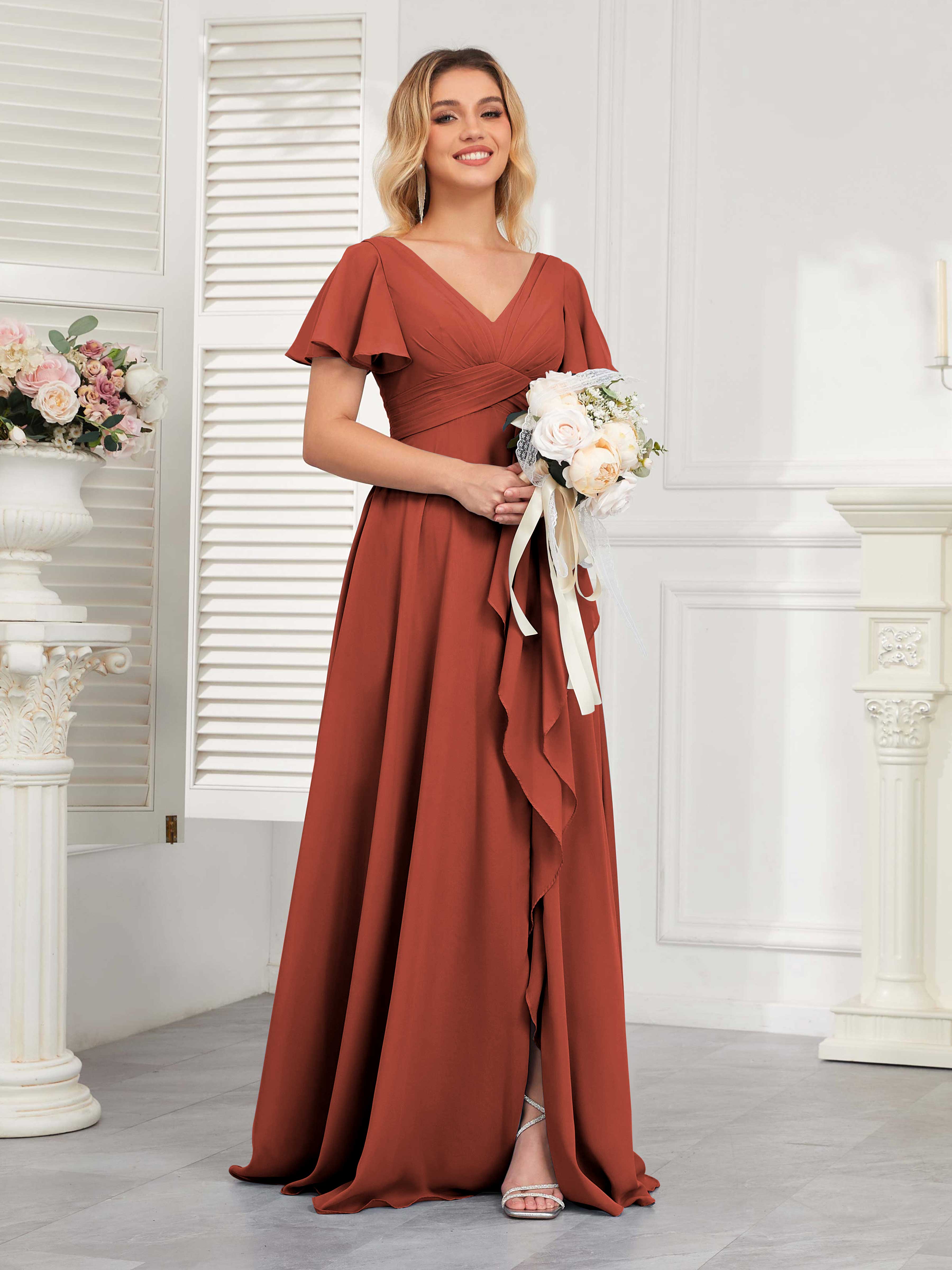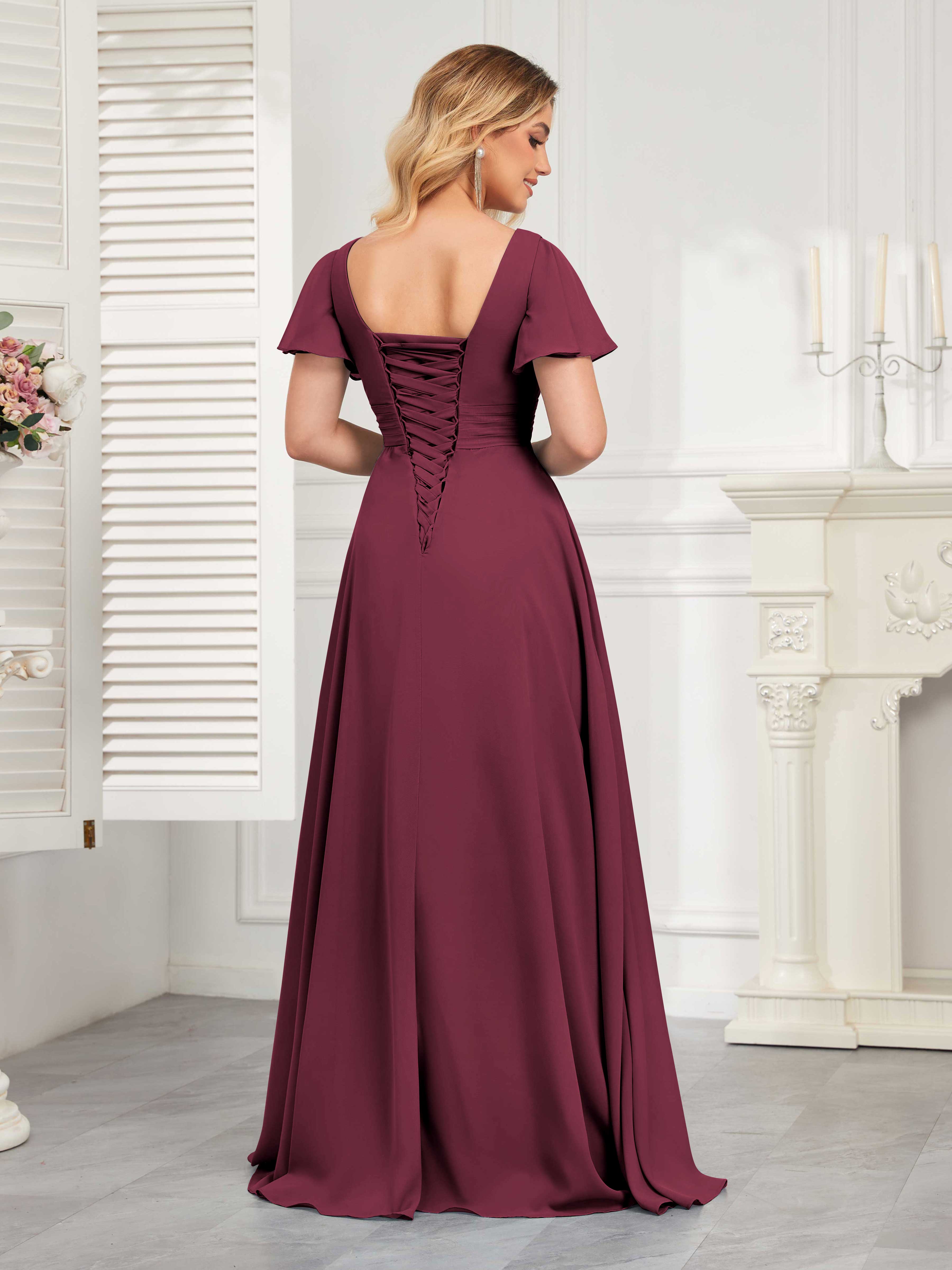 Ainsley Dreamy Short Sleeves Long Chiffon Bridesmaid Dresses