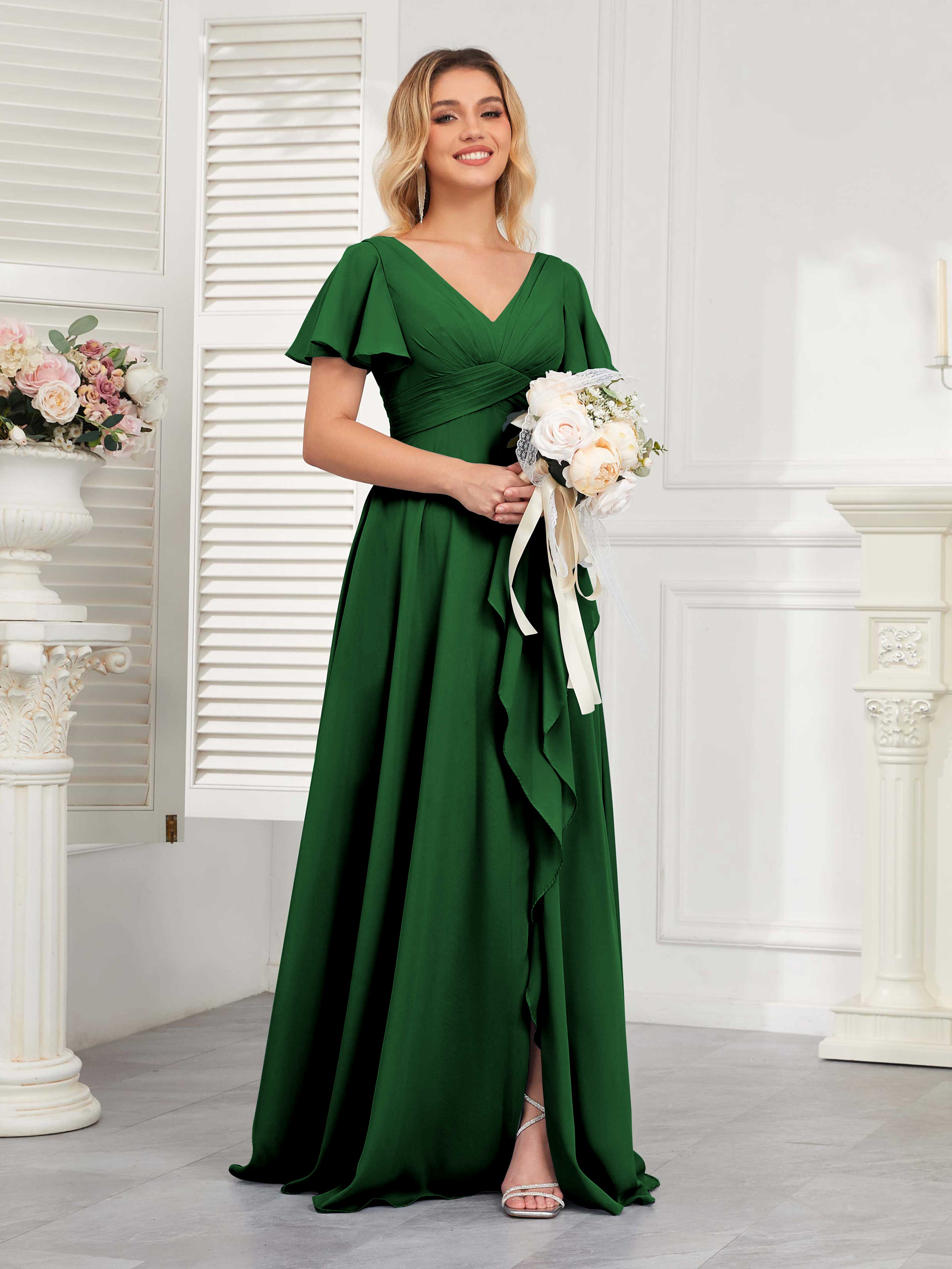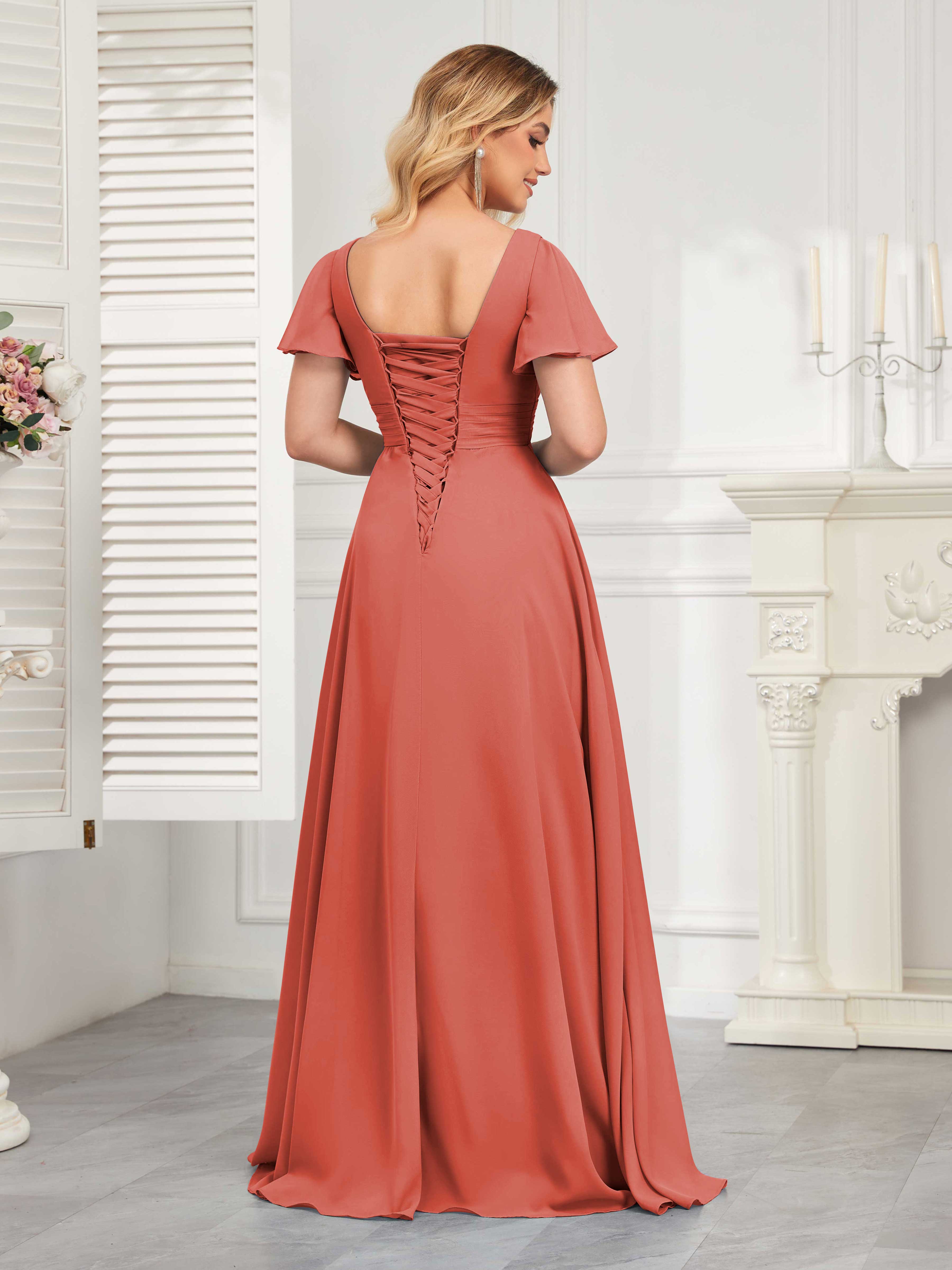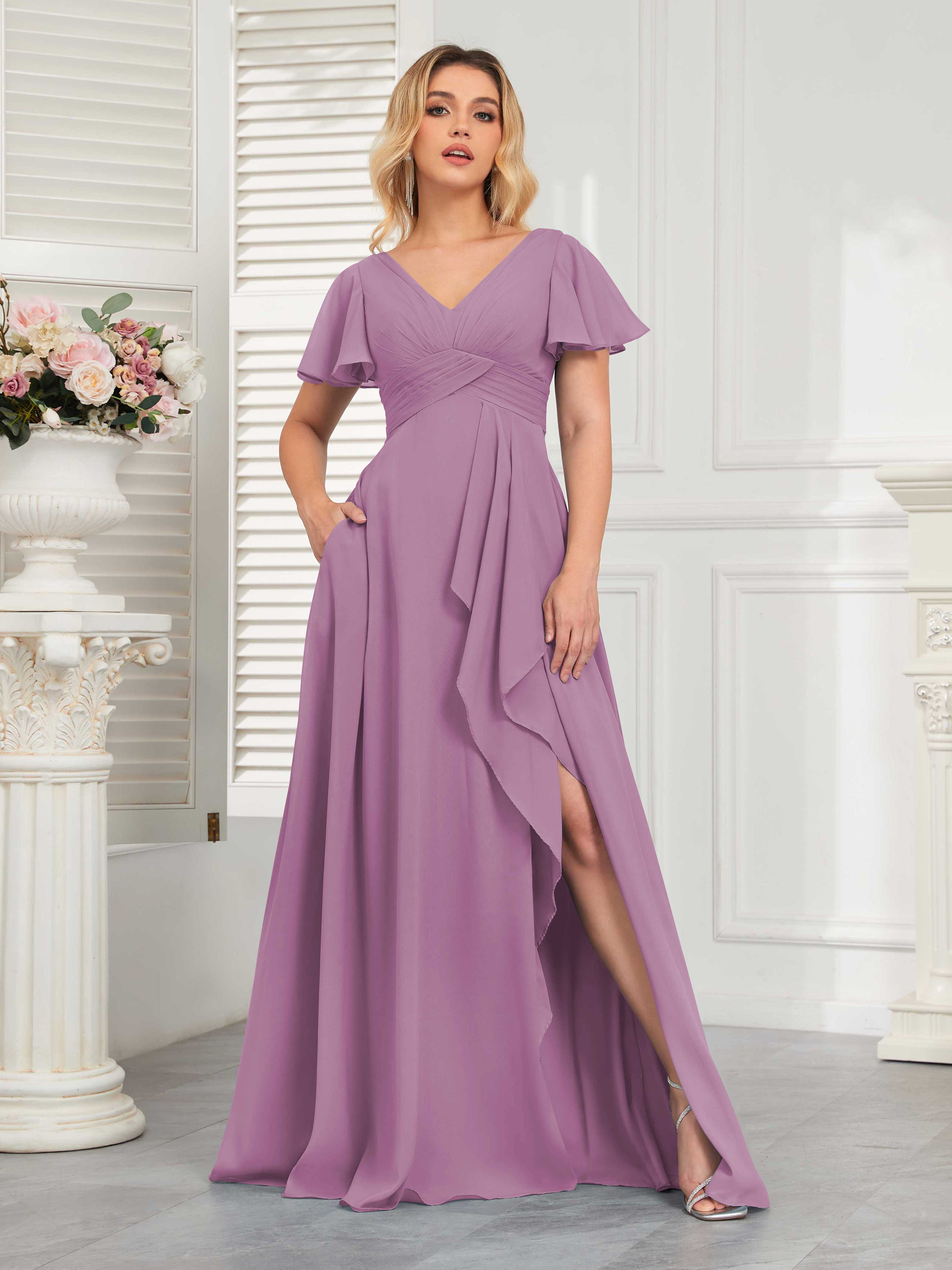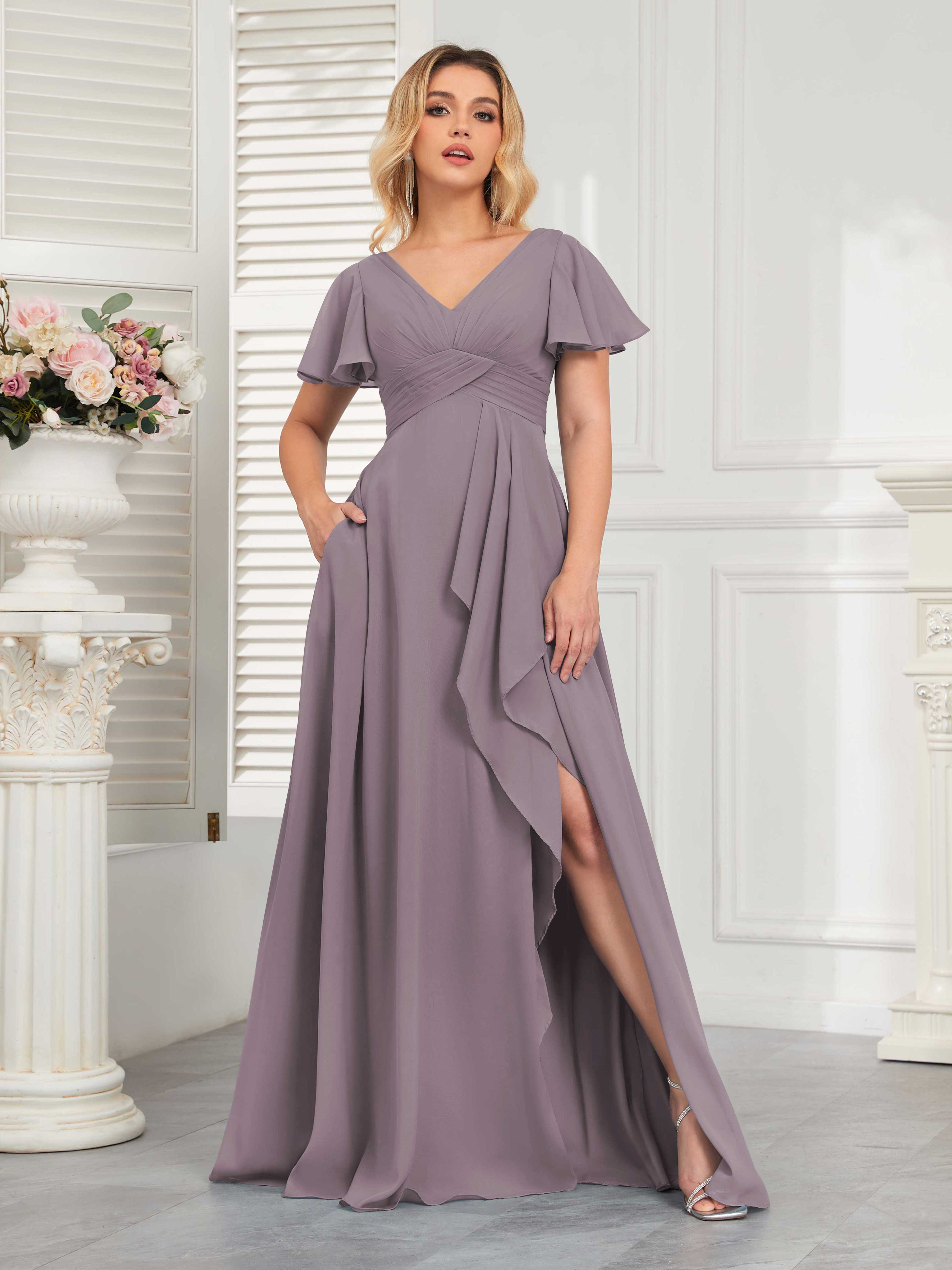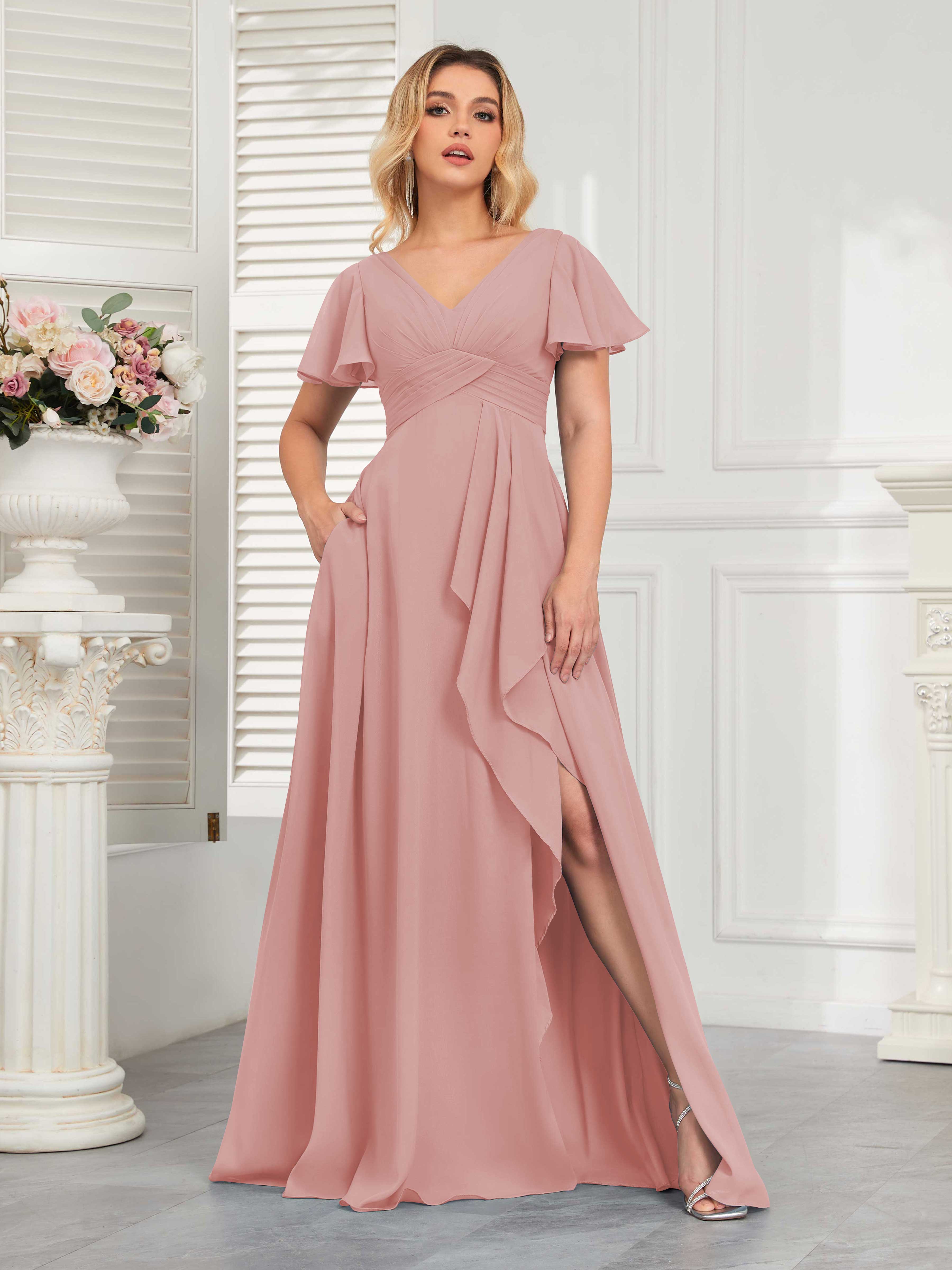 Ainsley Dreamy Short Sleeves Long Chiffon Bridesmaid Dresses