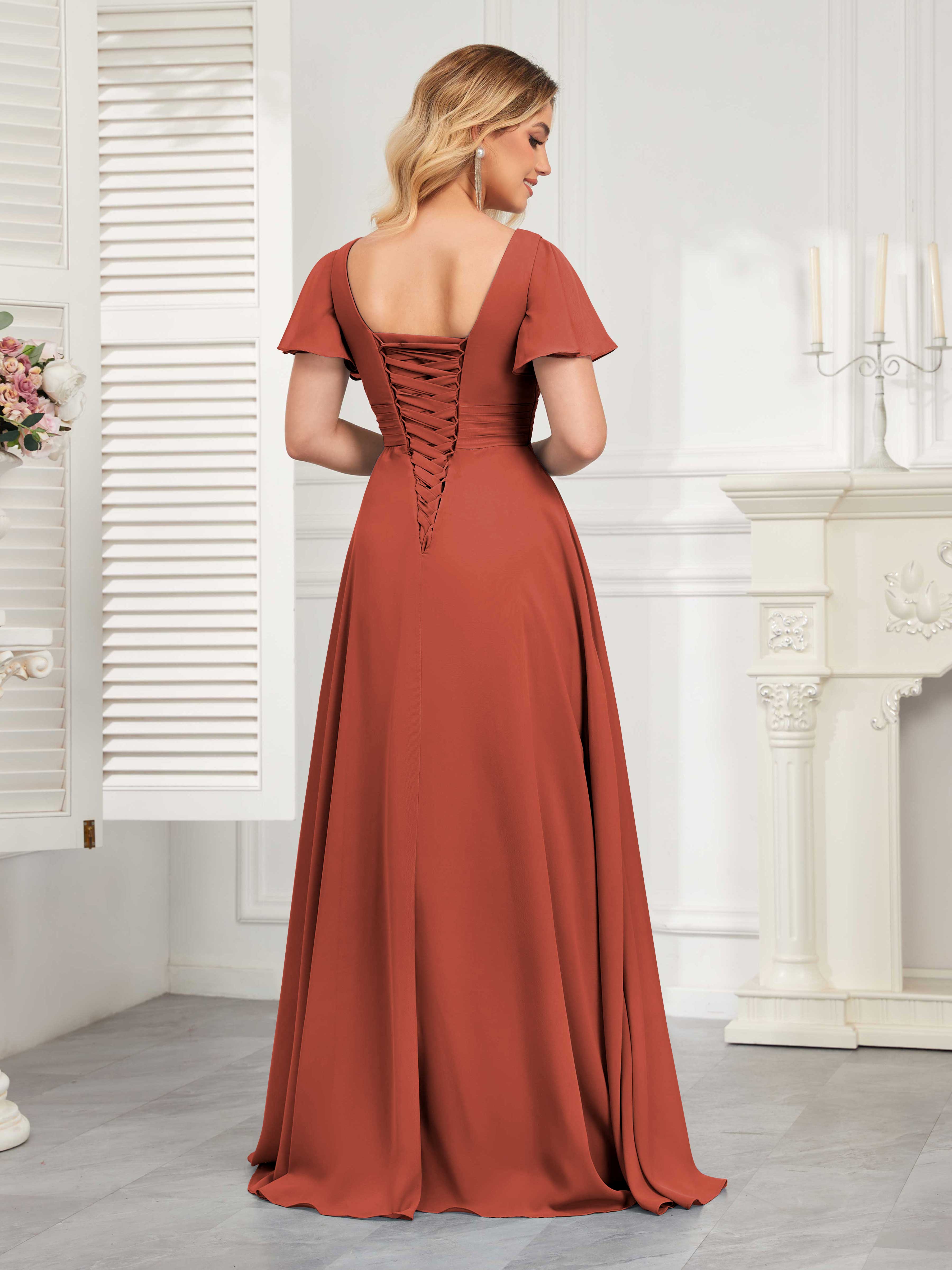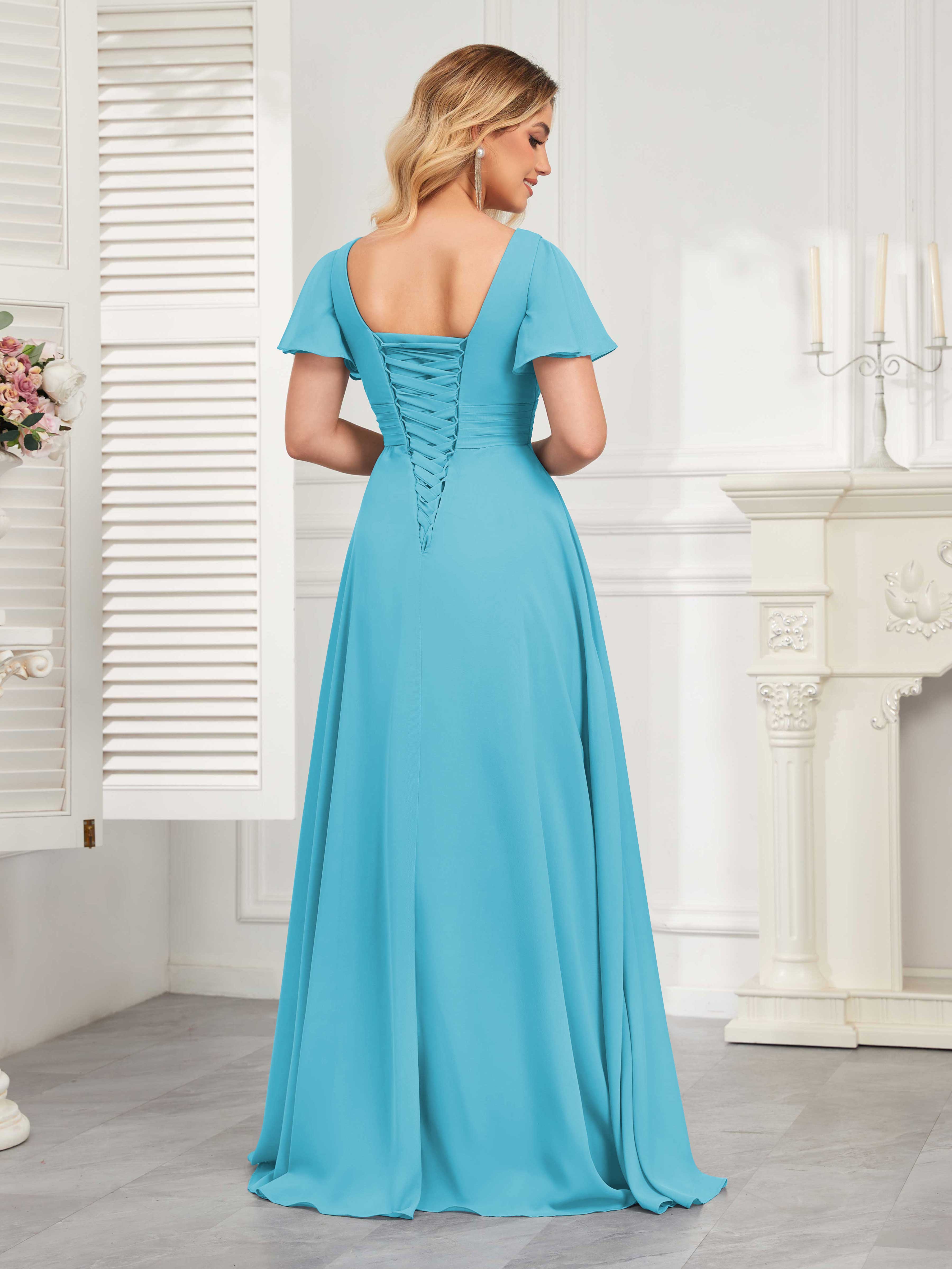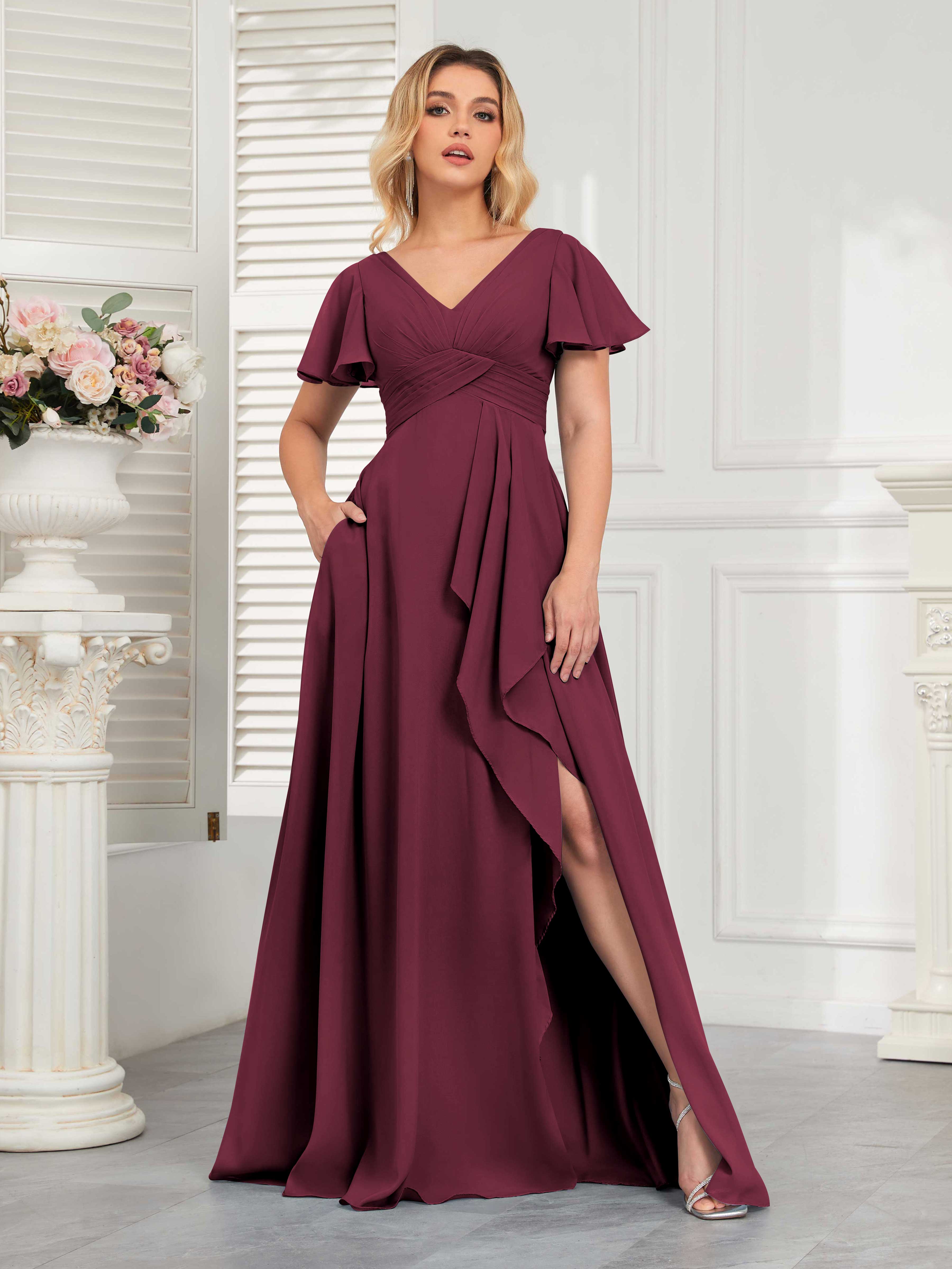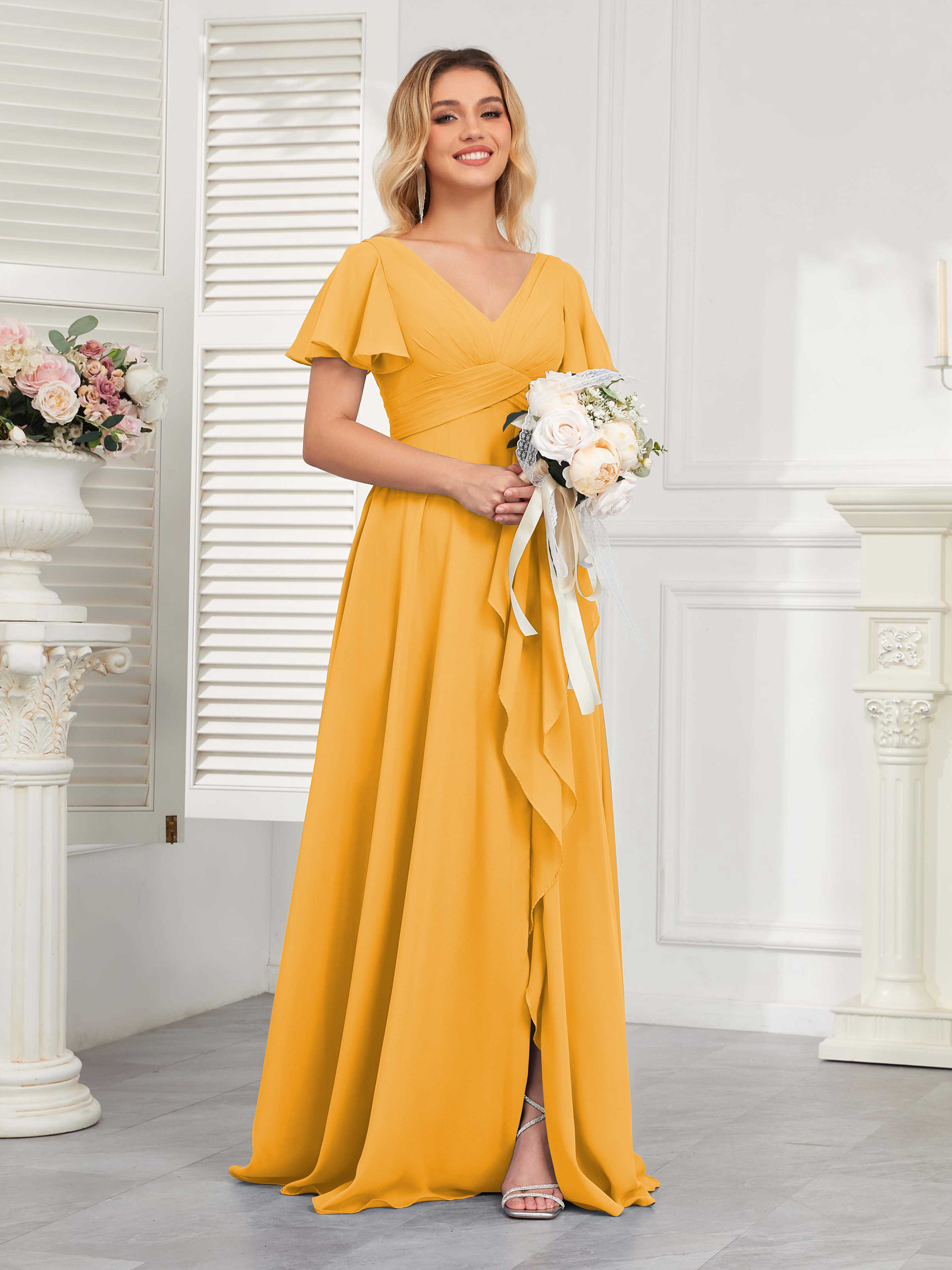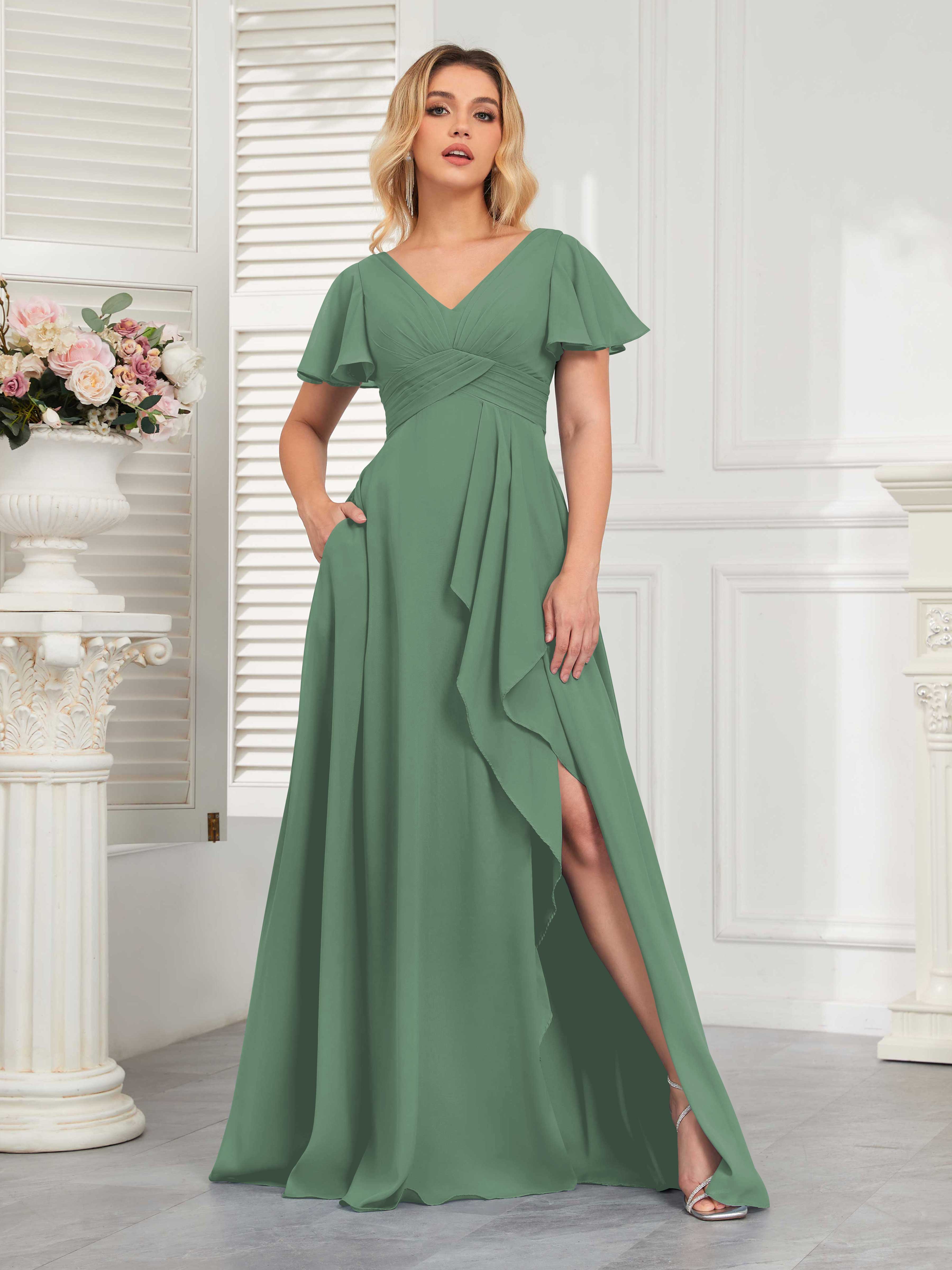 Ainsley Dreamy Short Sleeves Long Chiffon Bridesmaid Dresses
