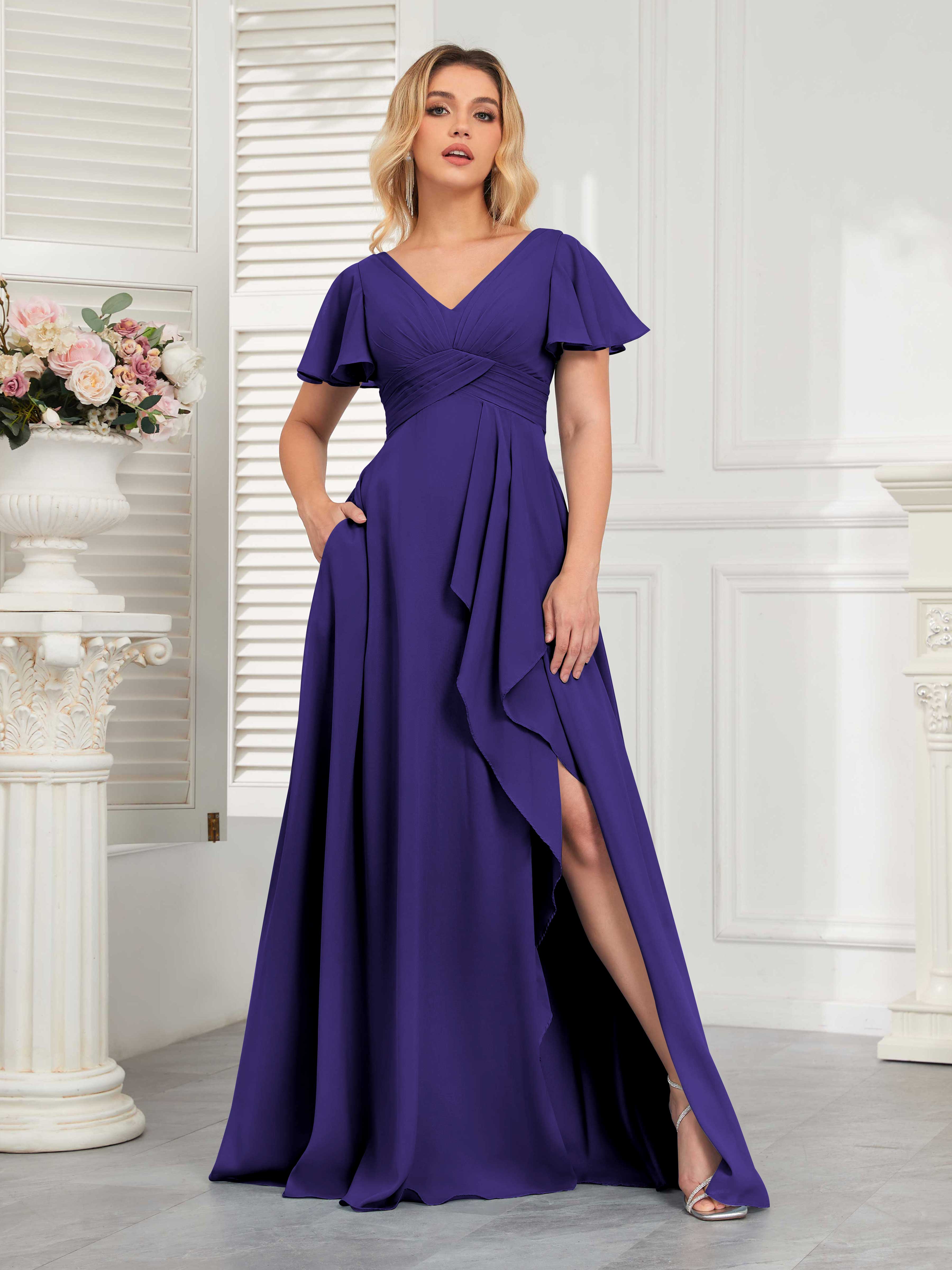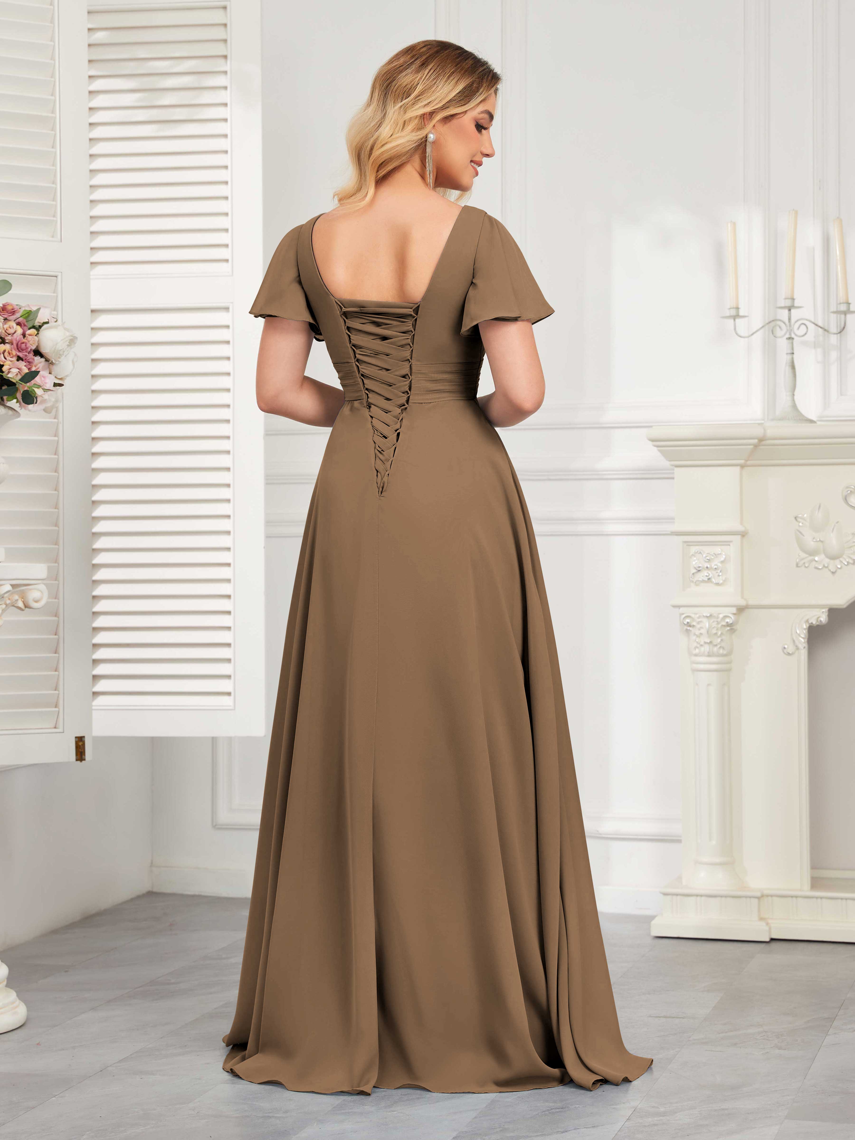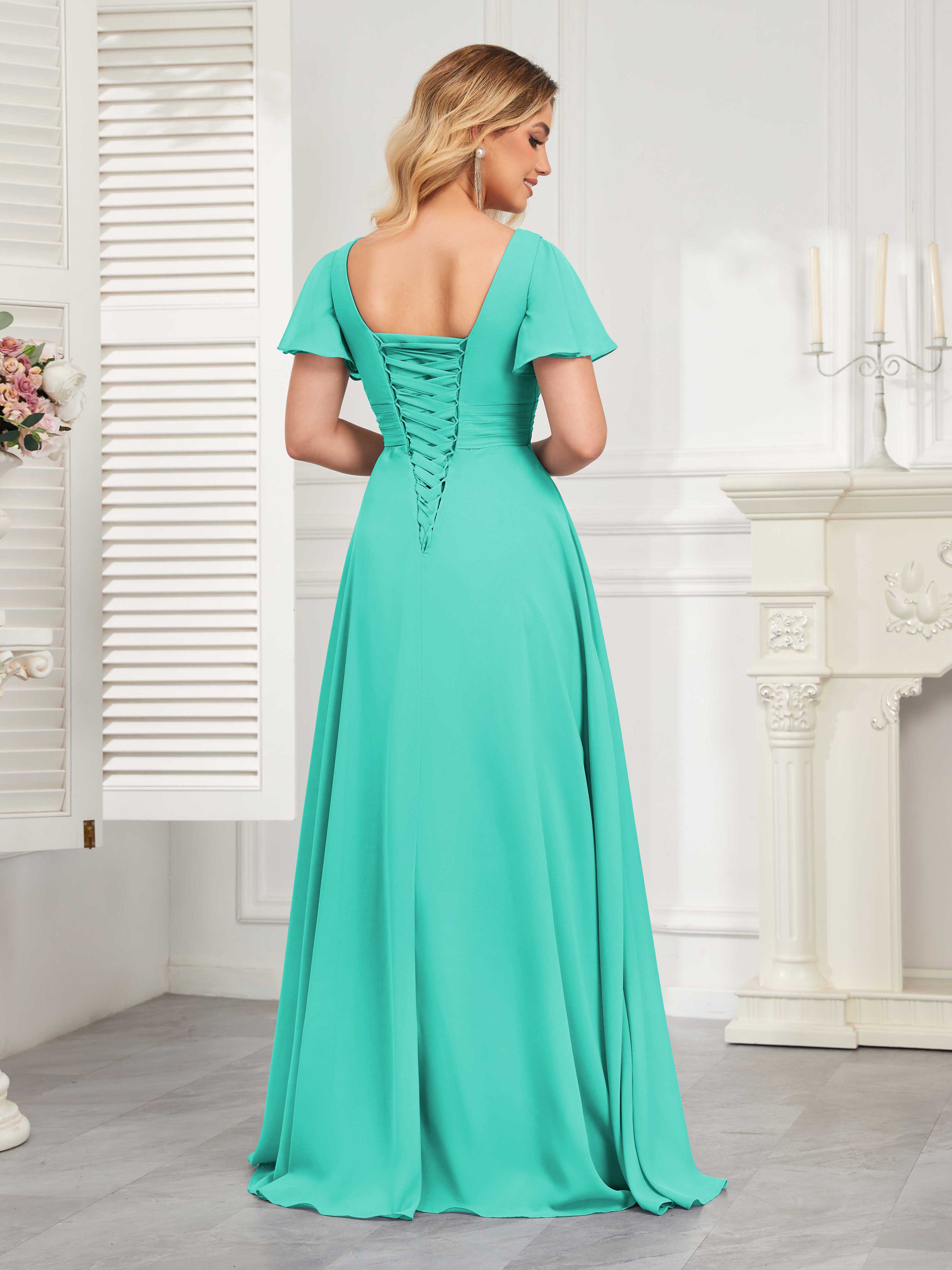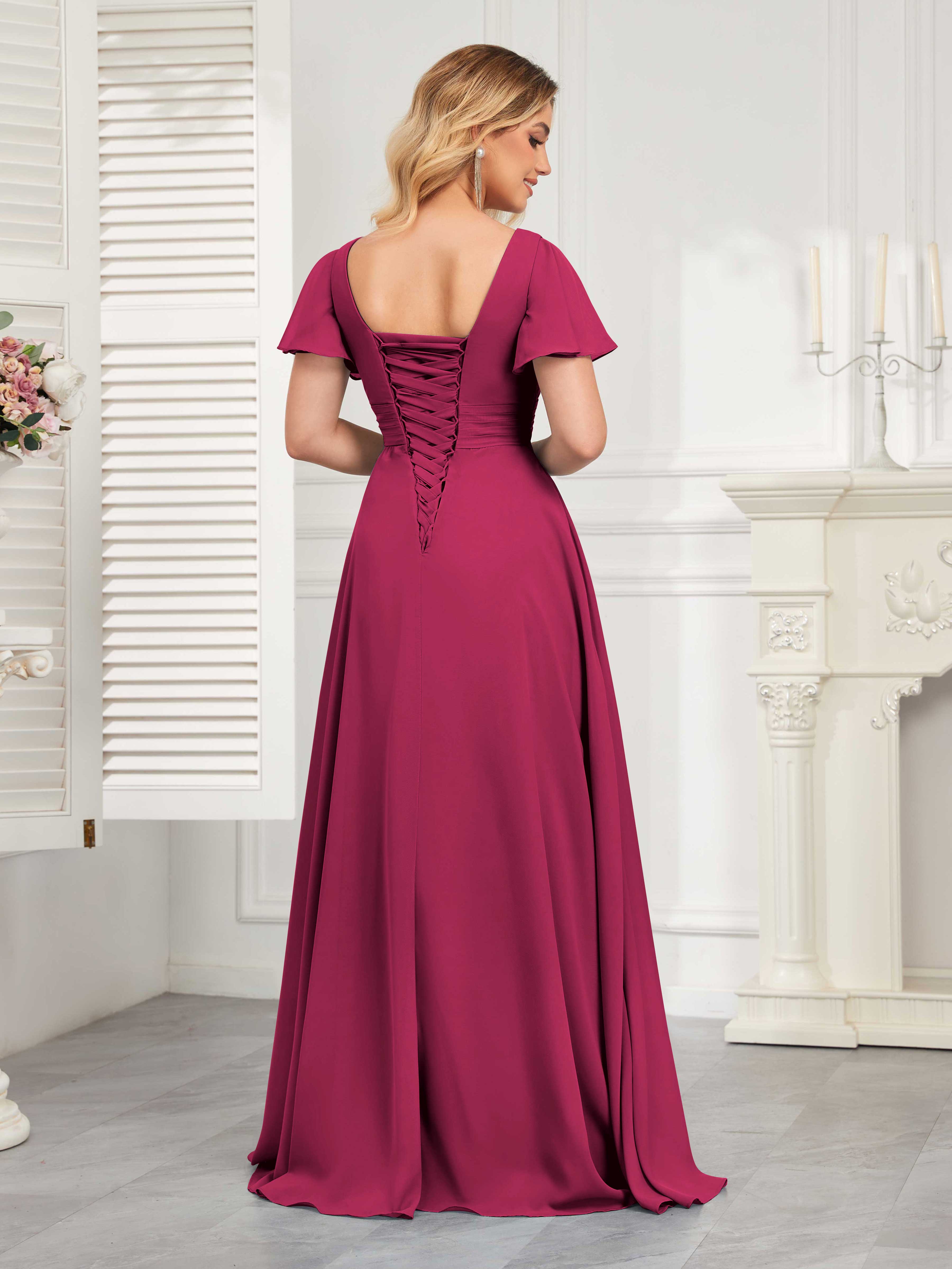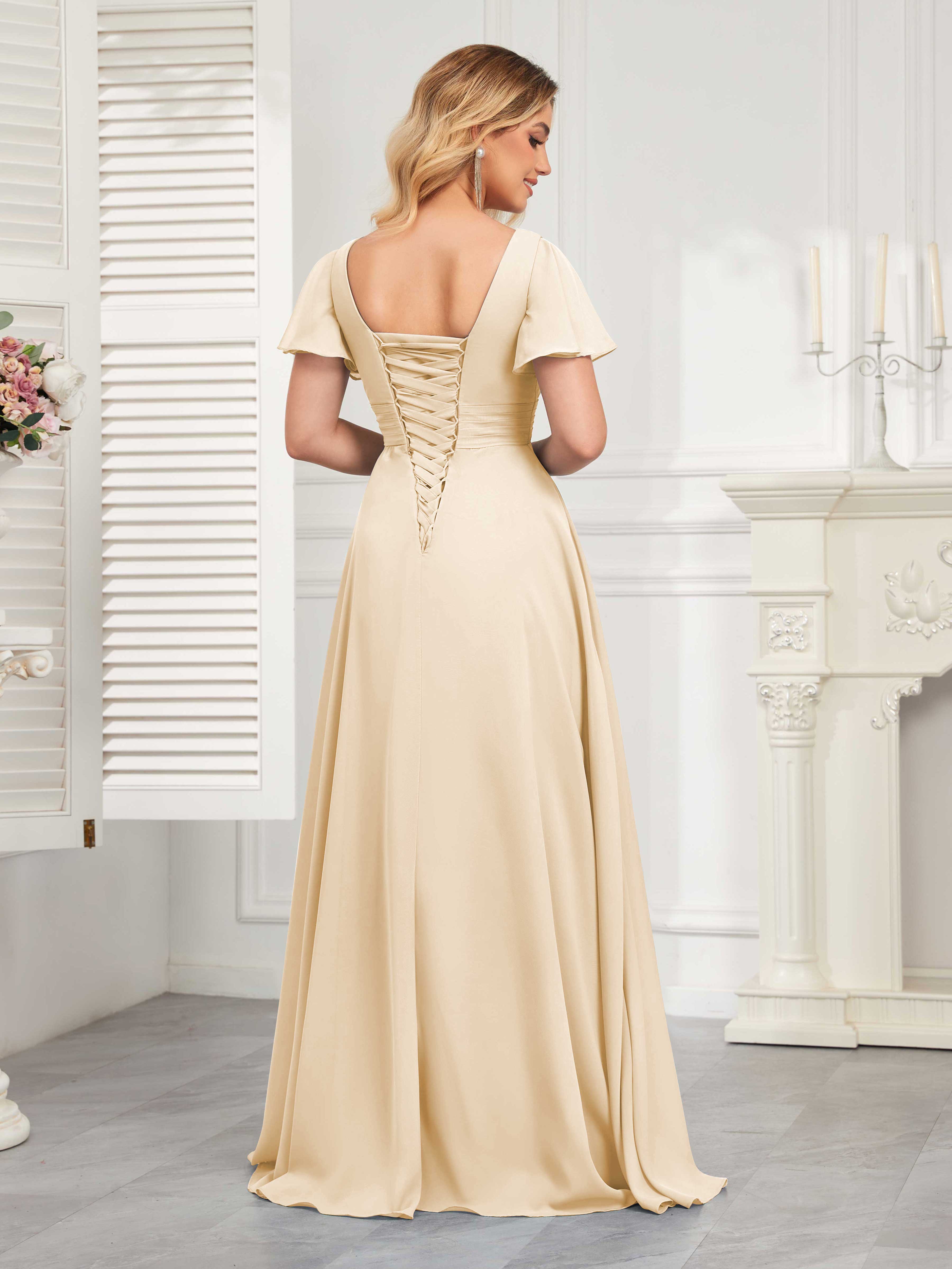 Ainsley Dreamy Short Sleeves Long Chiffon Bridesmaid Dresses
