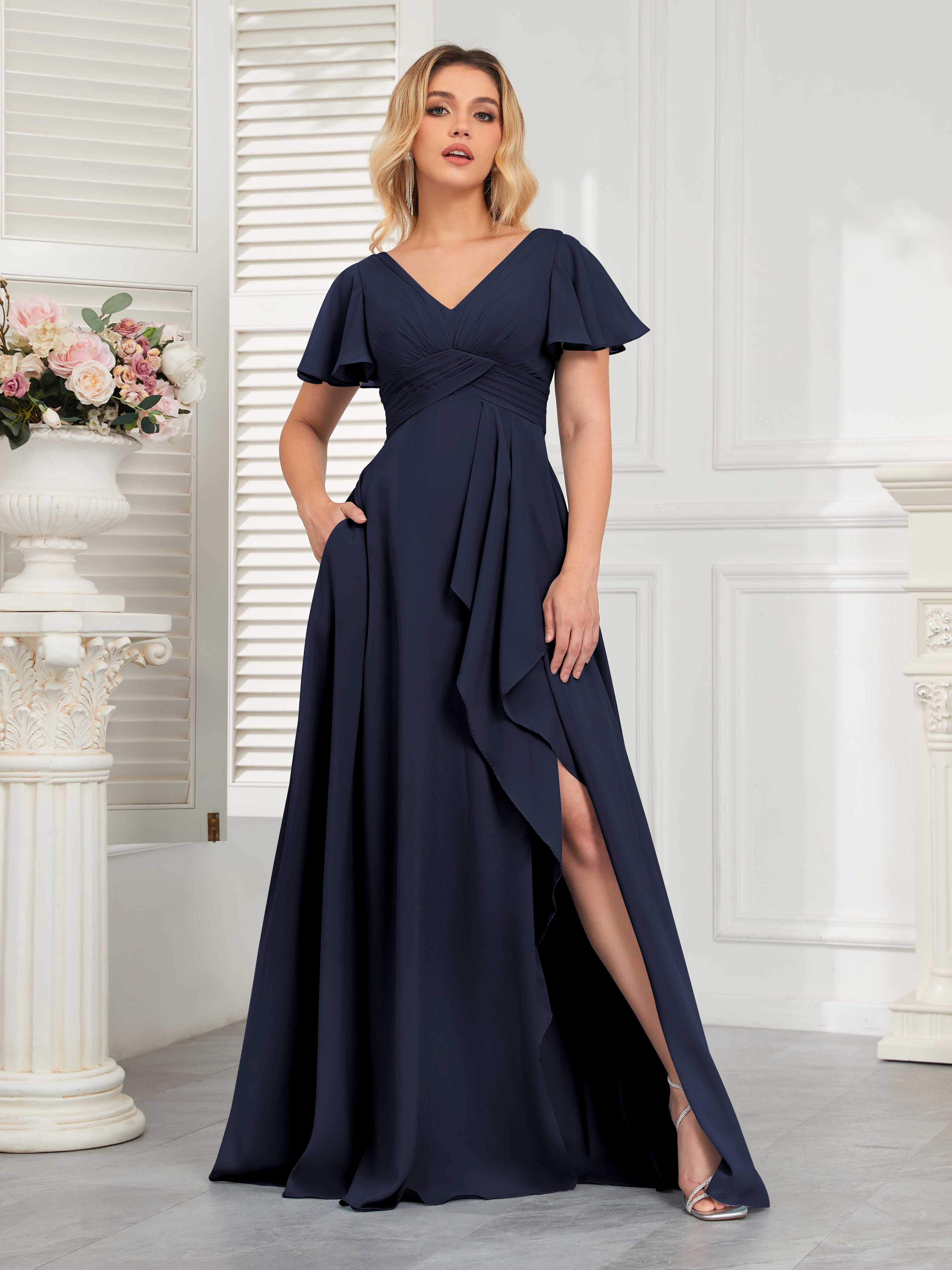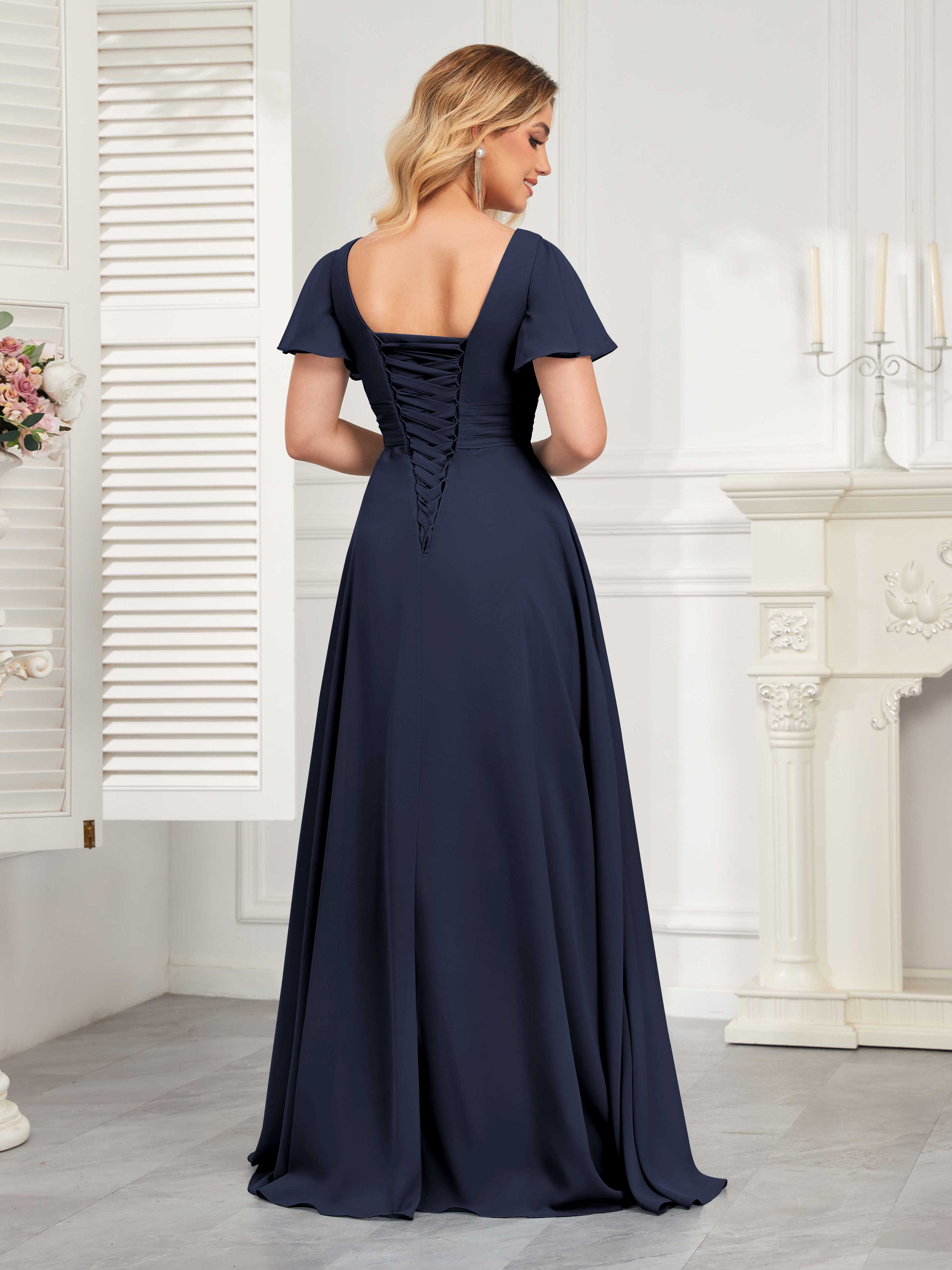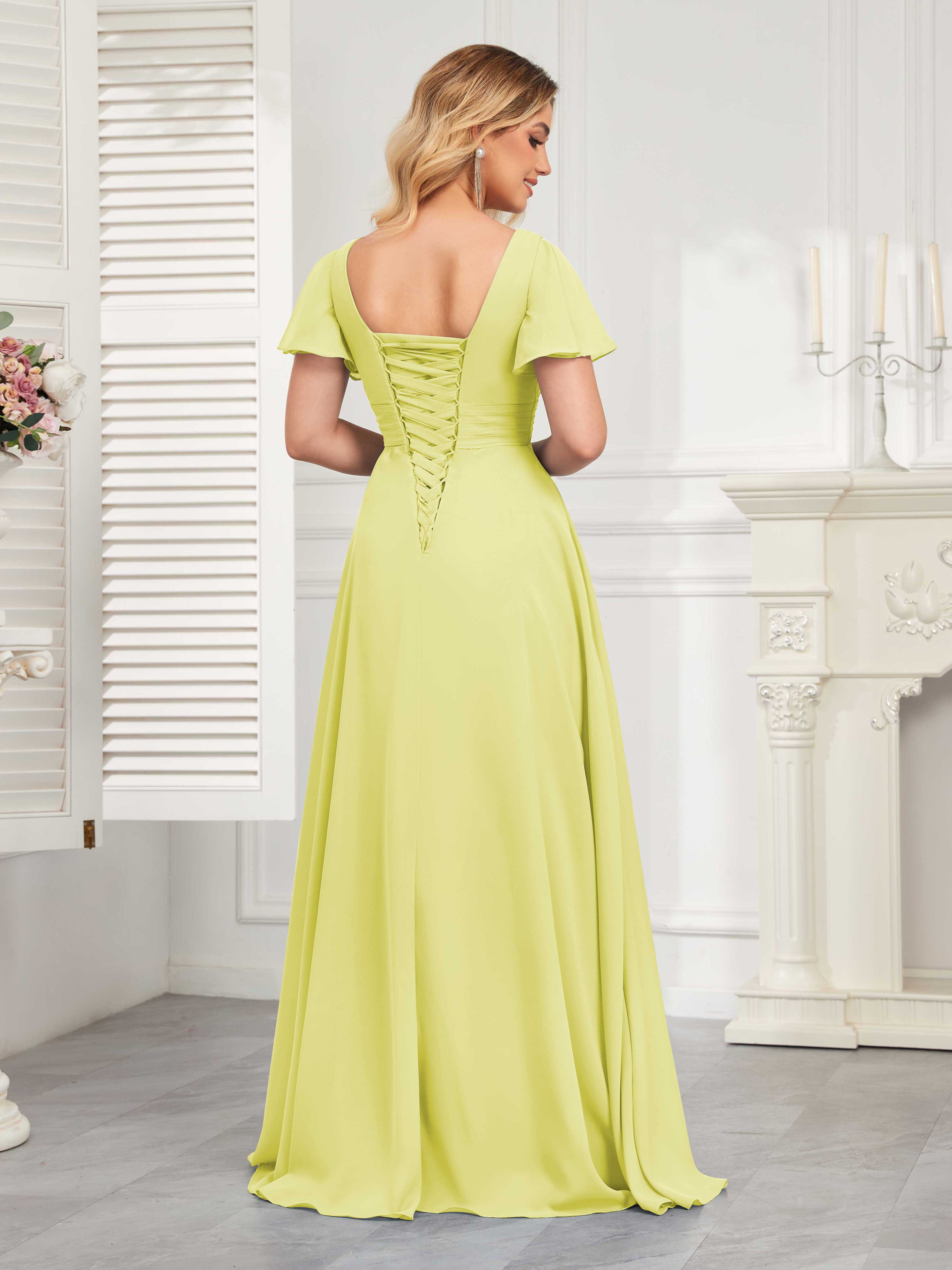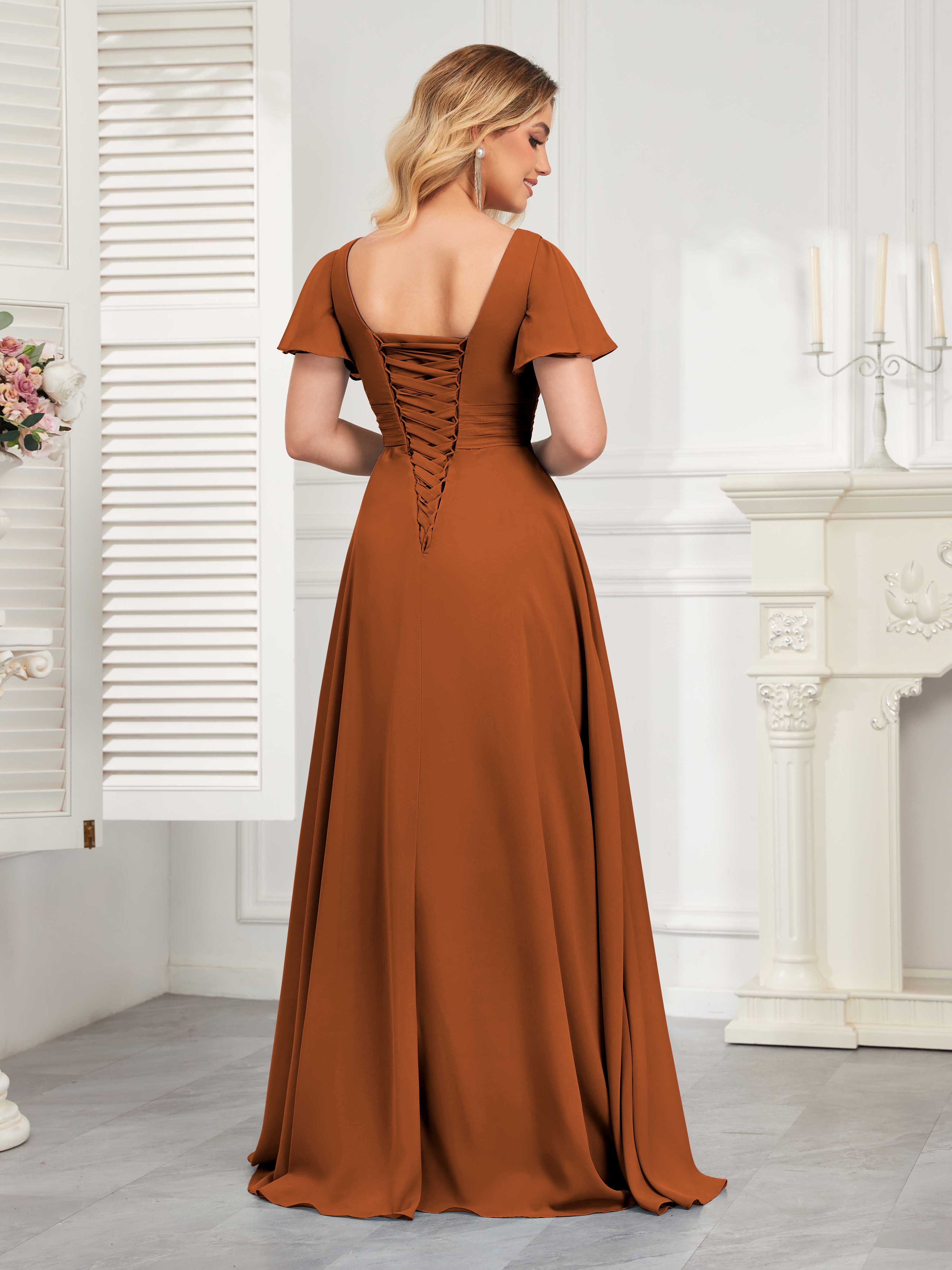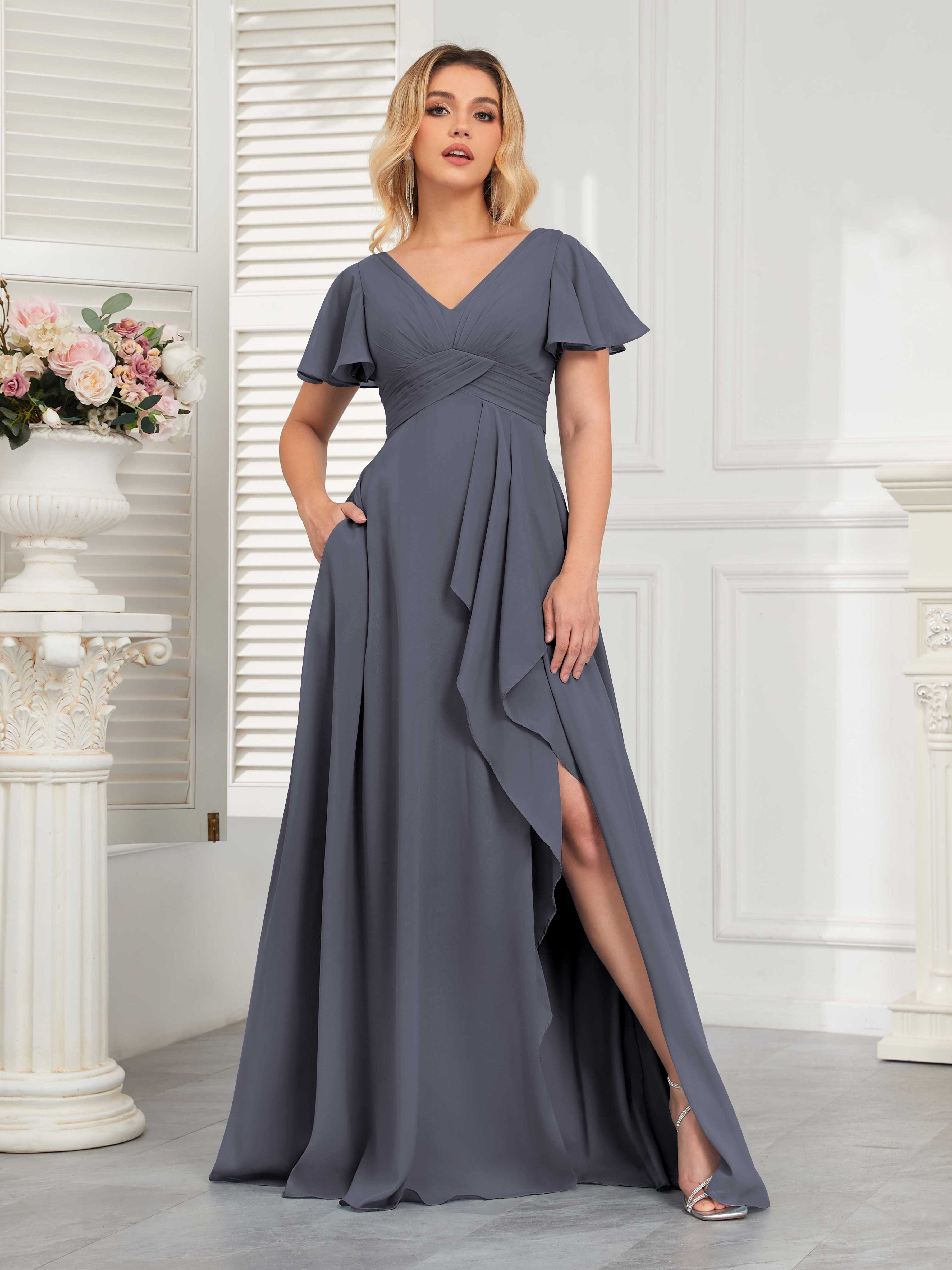 Ainsley Dreamy Short Sleeves Long Chiffon Bridesmaid Dresses