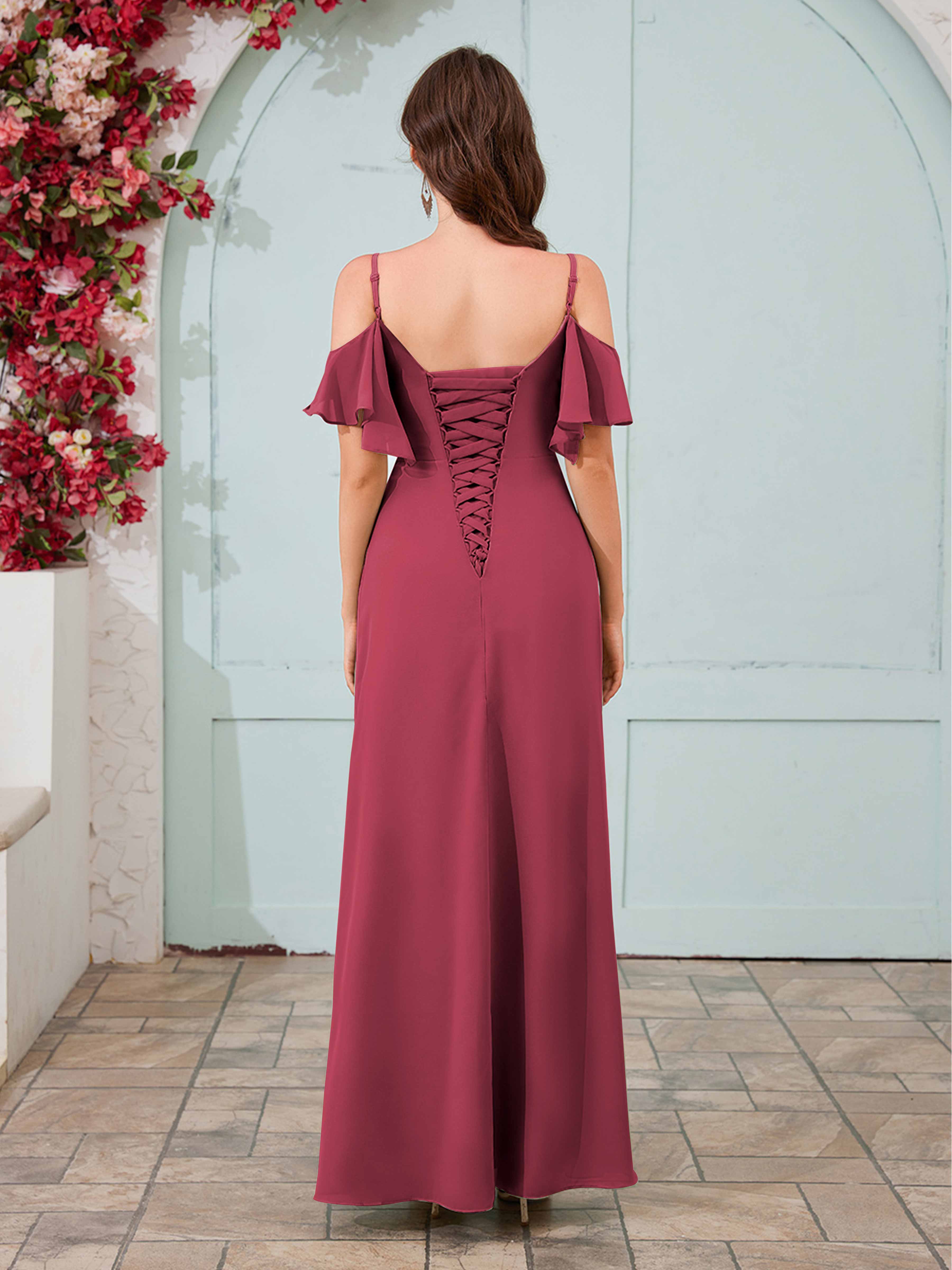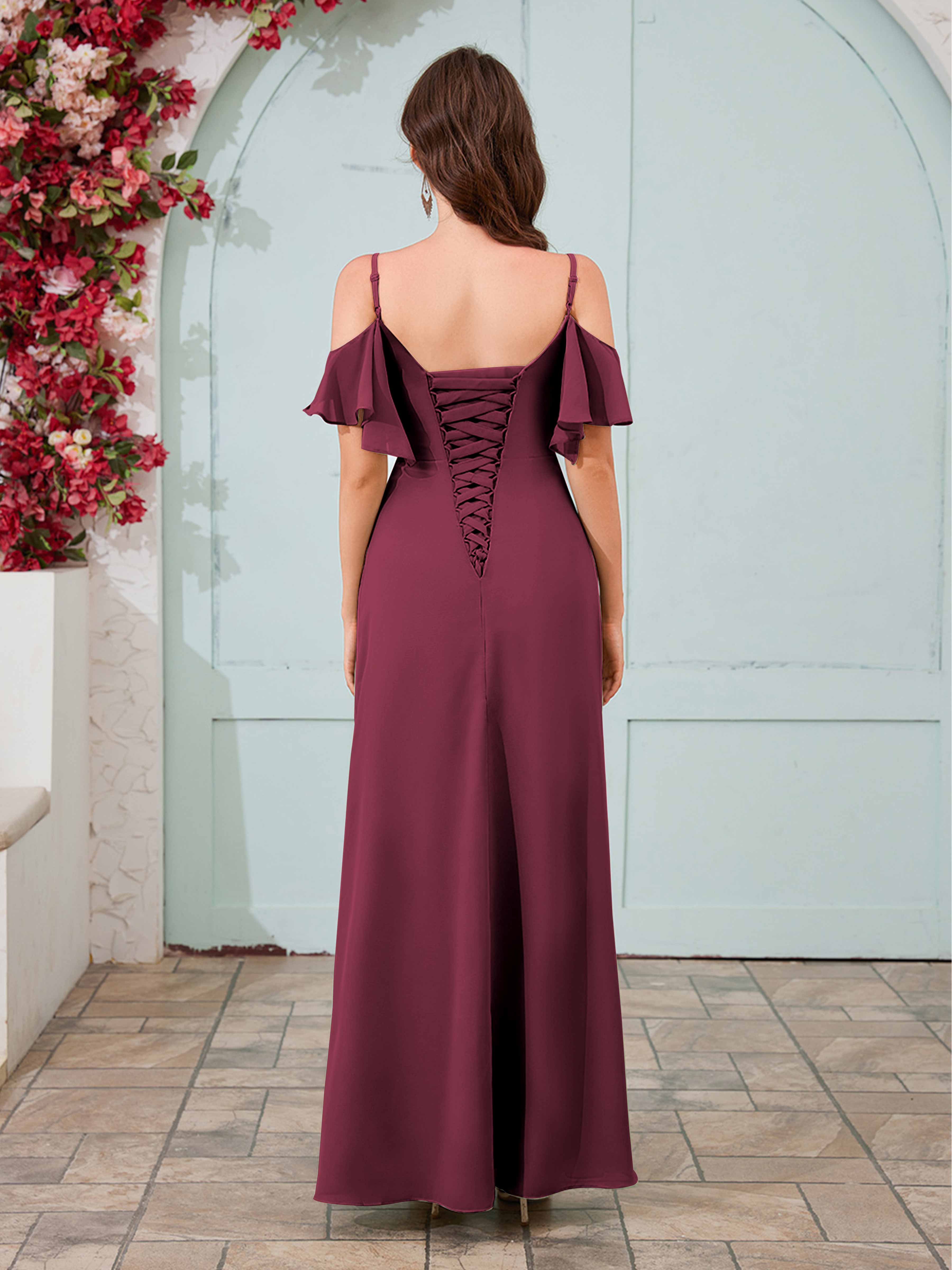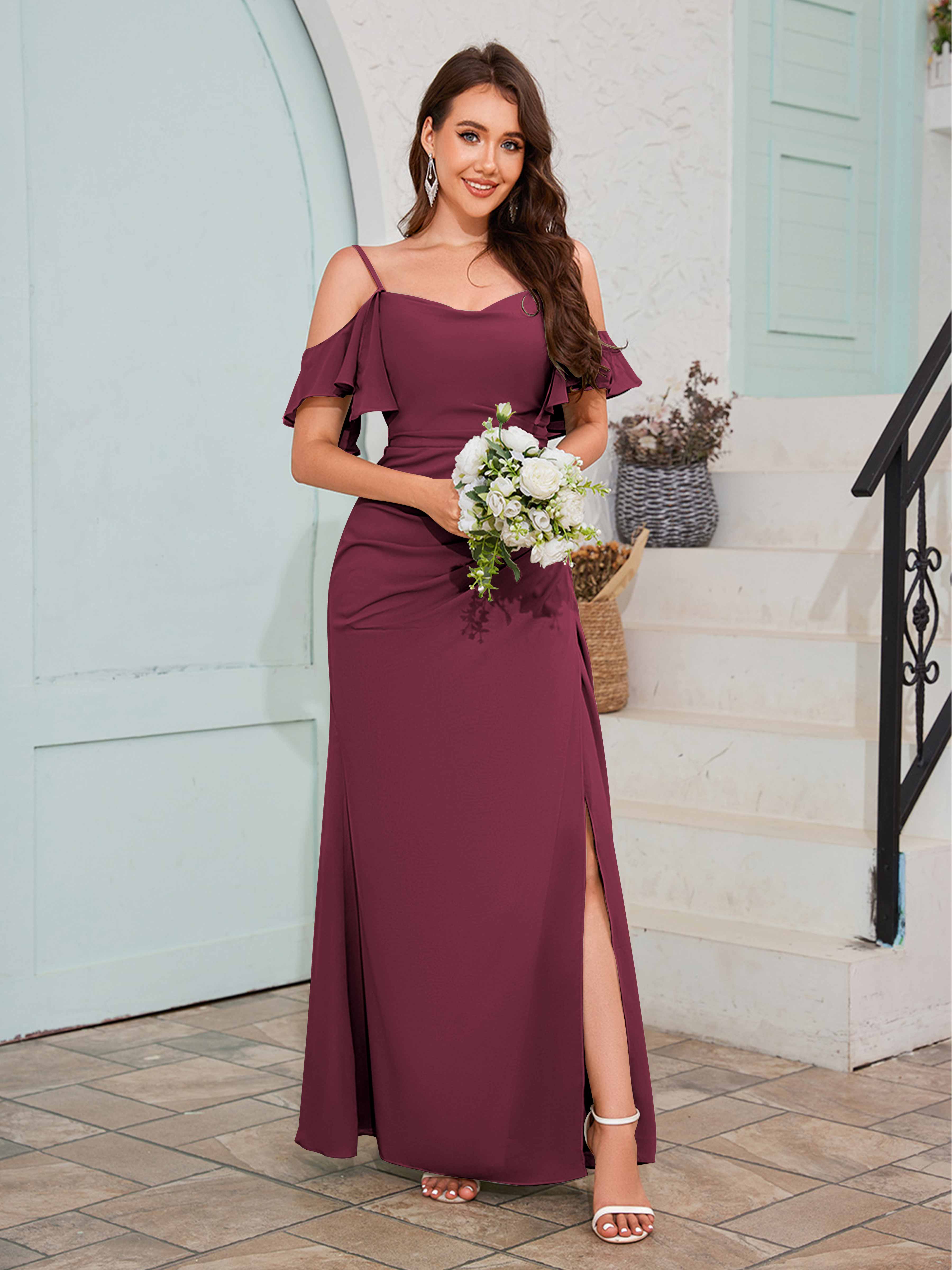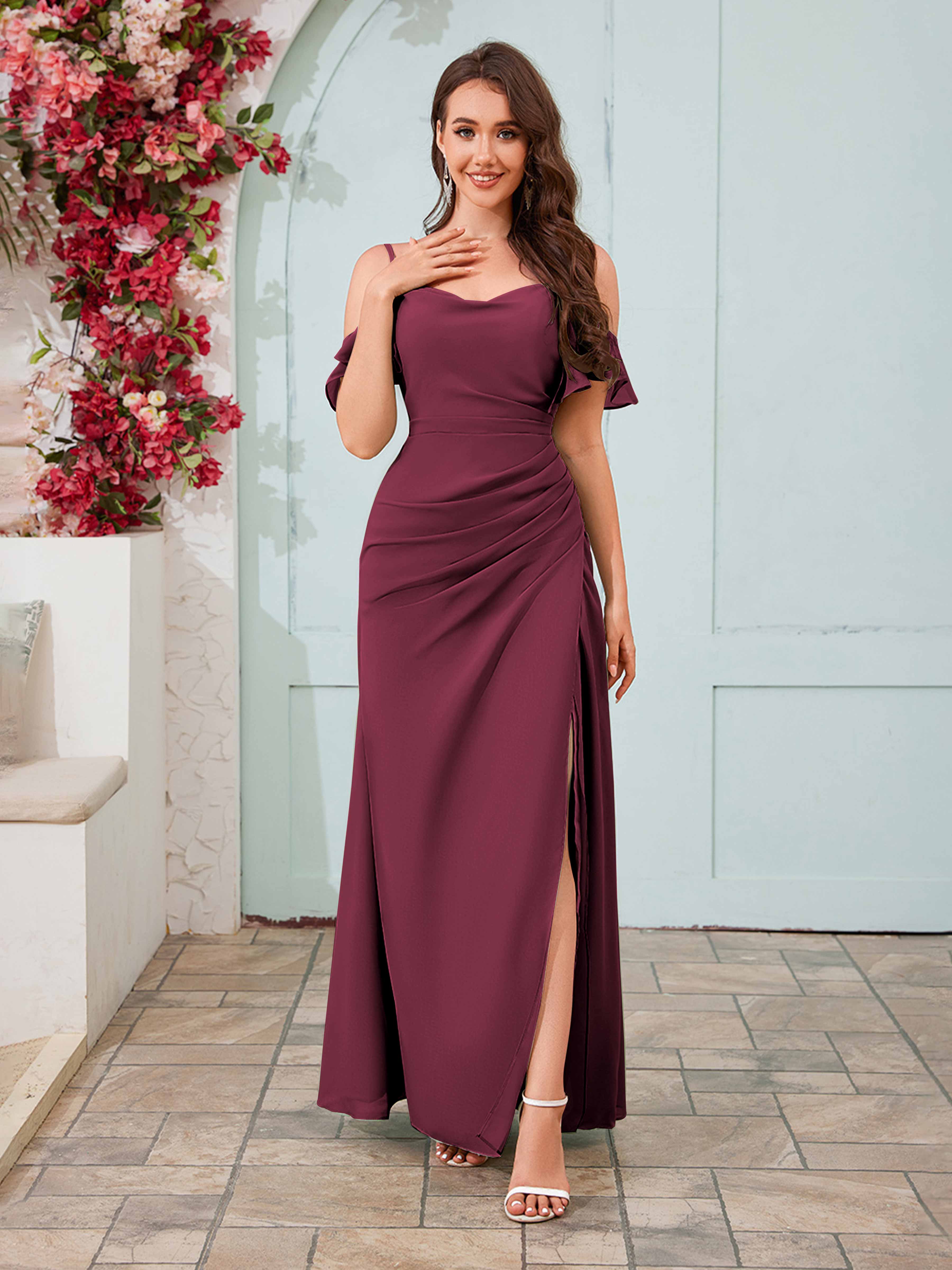 Alessia Chic Cowl Draped Sleeves Pleated Long Chiffon Bridesmaid Dresses