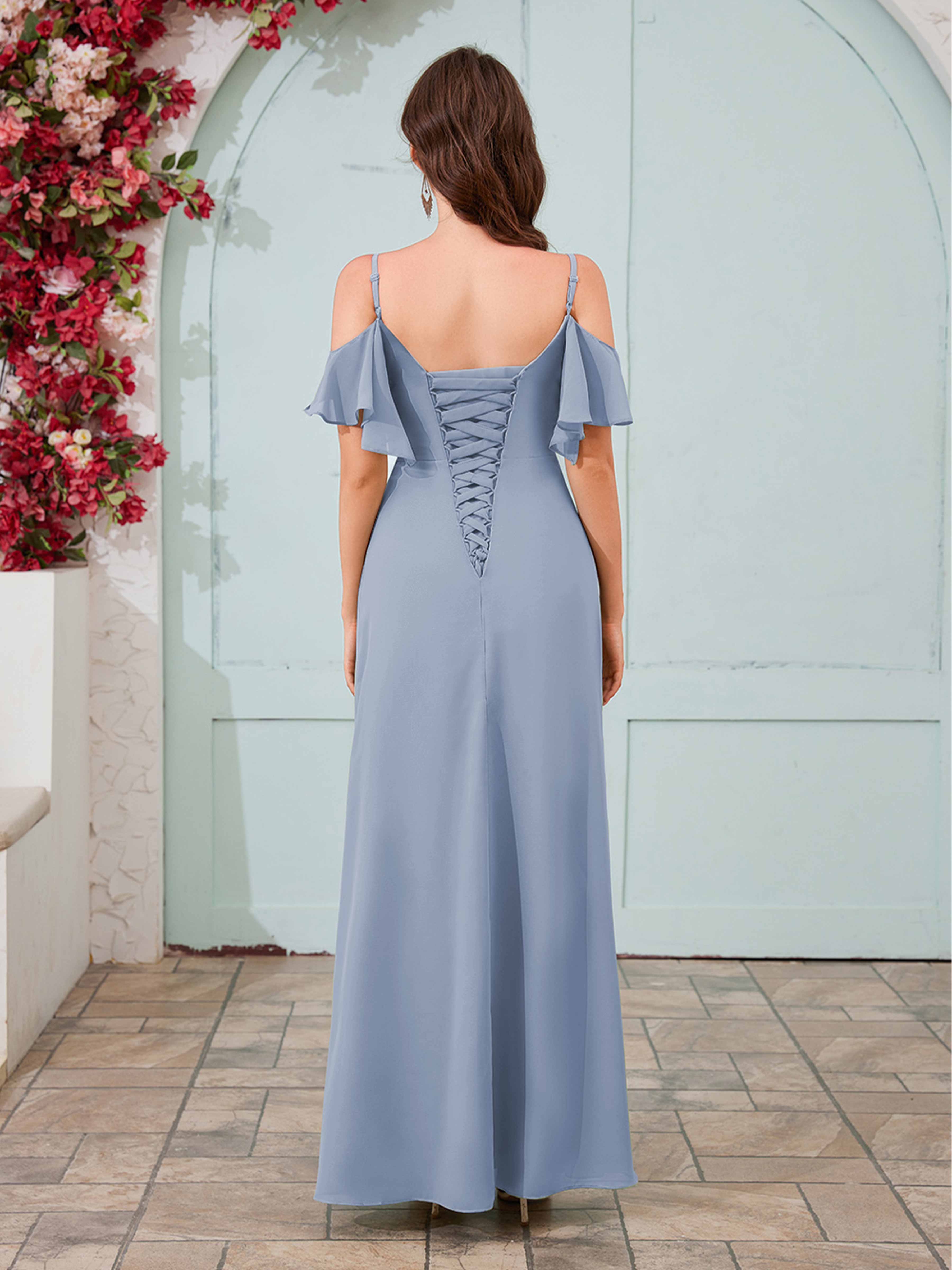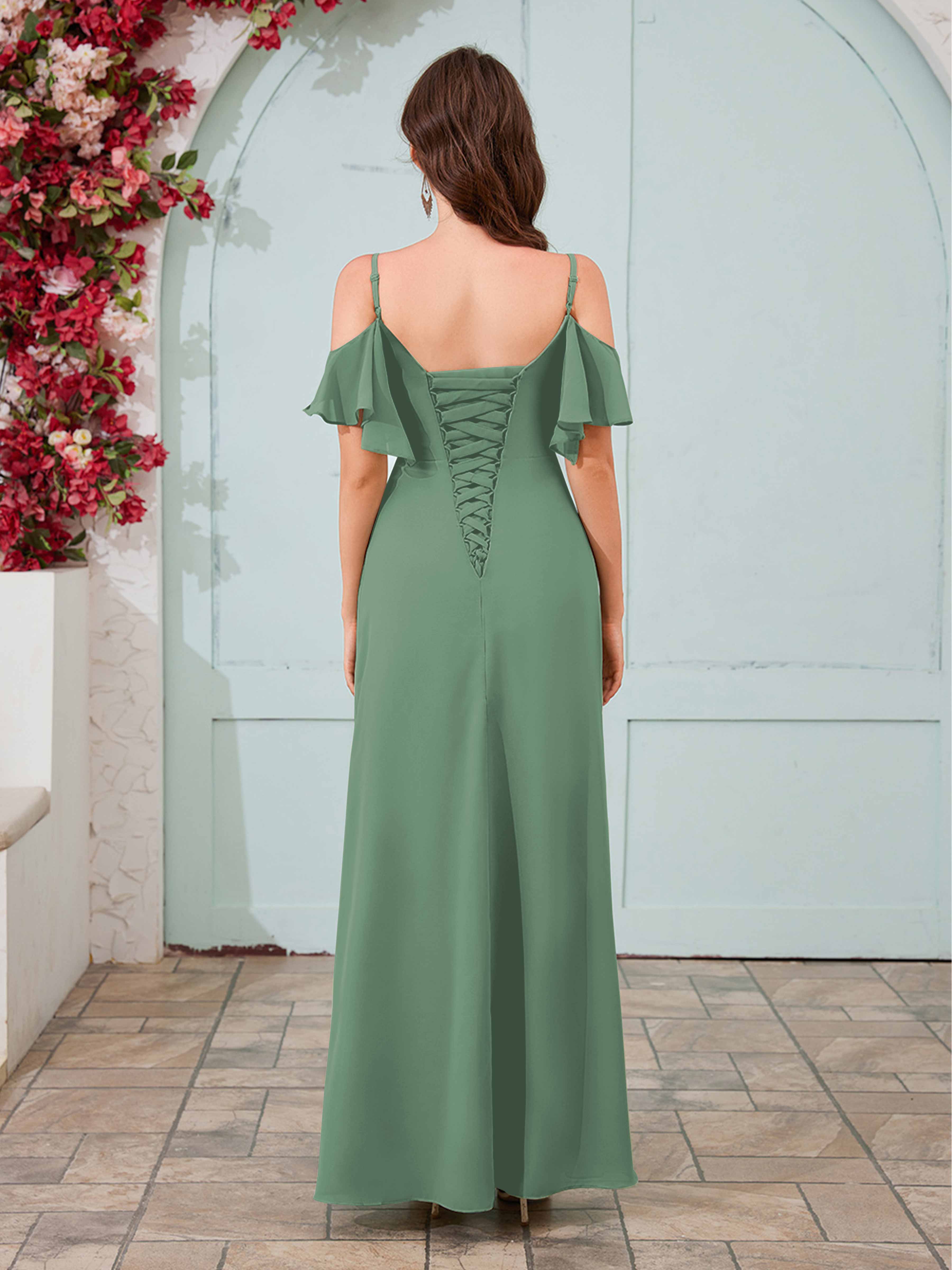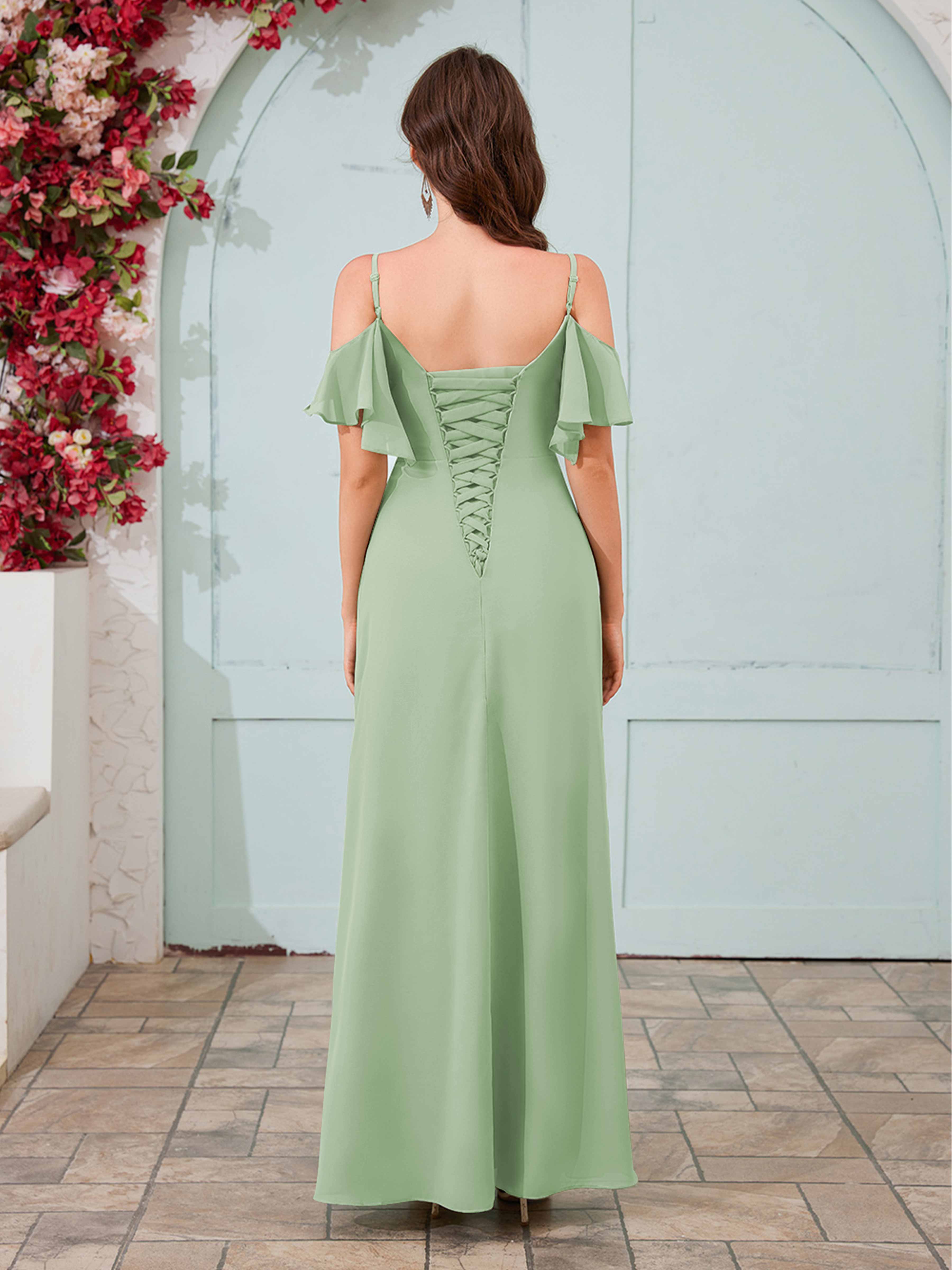 Alessia Chic Cowl Draped Sleeves Pleated Long Chiffon Bridesmaid Dresses