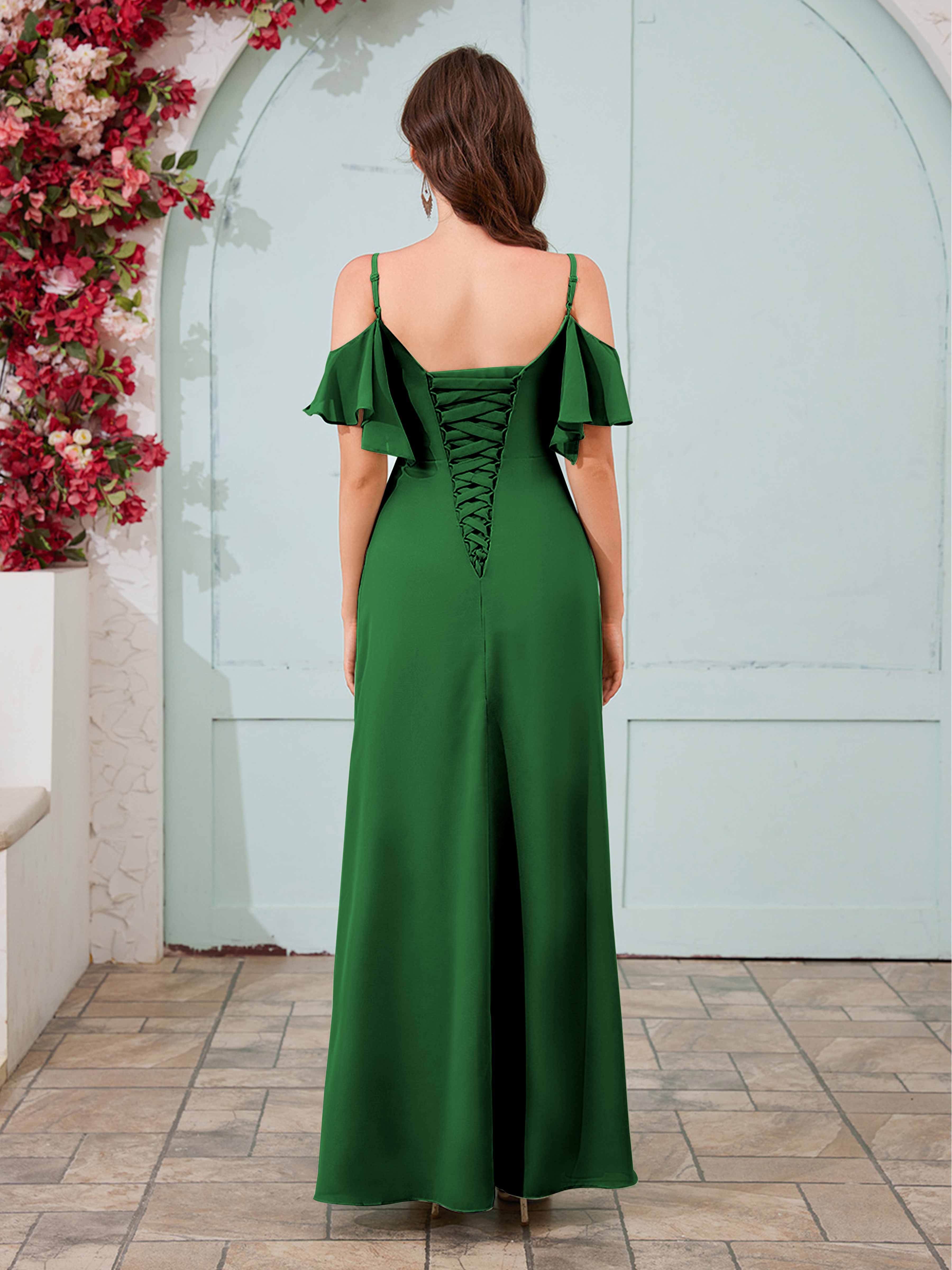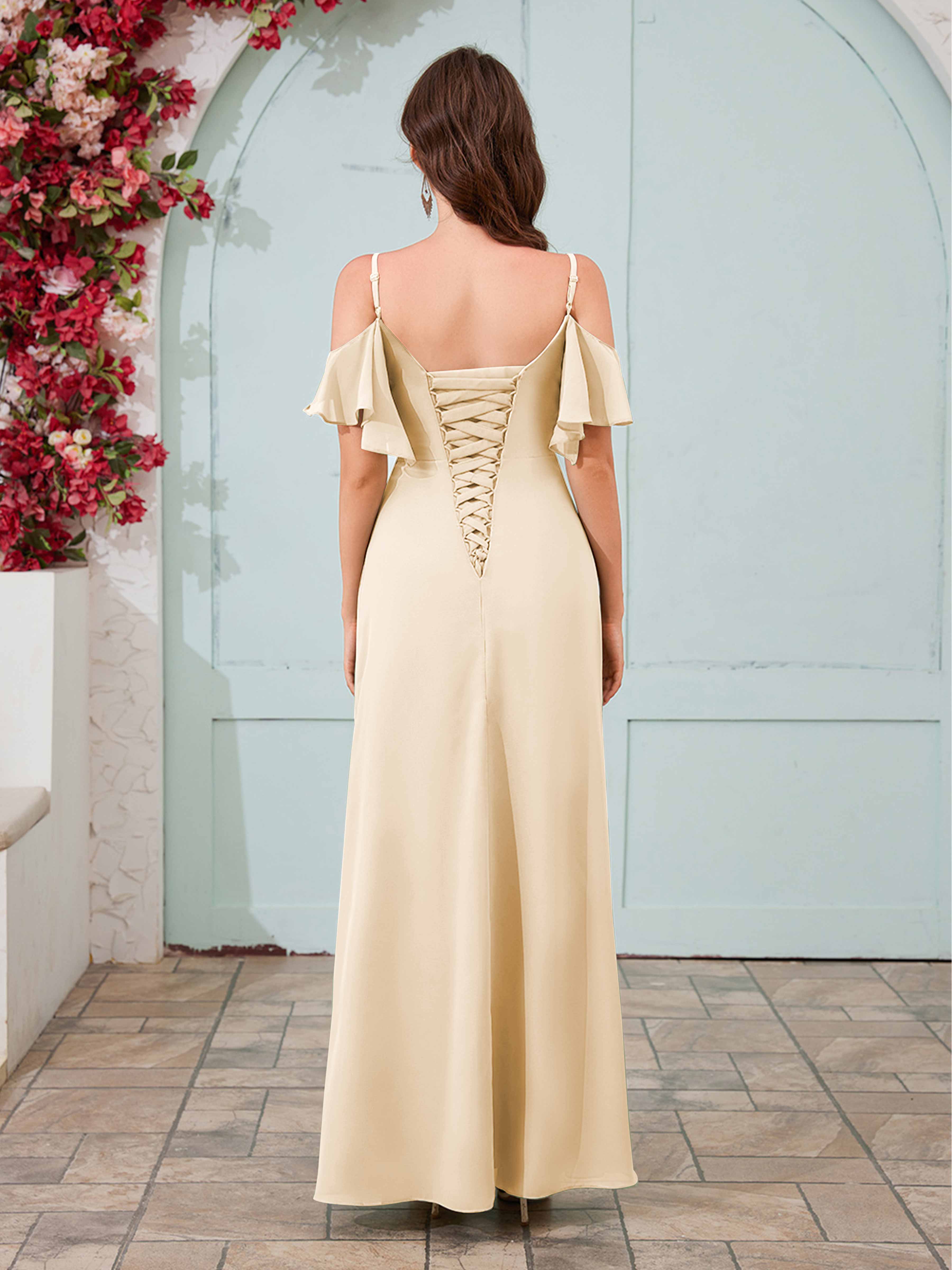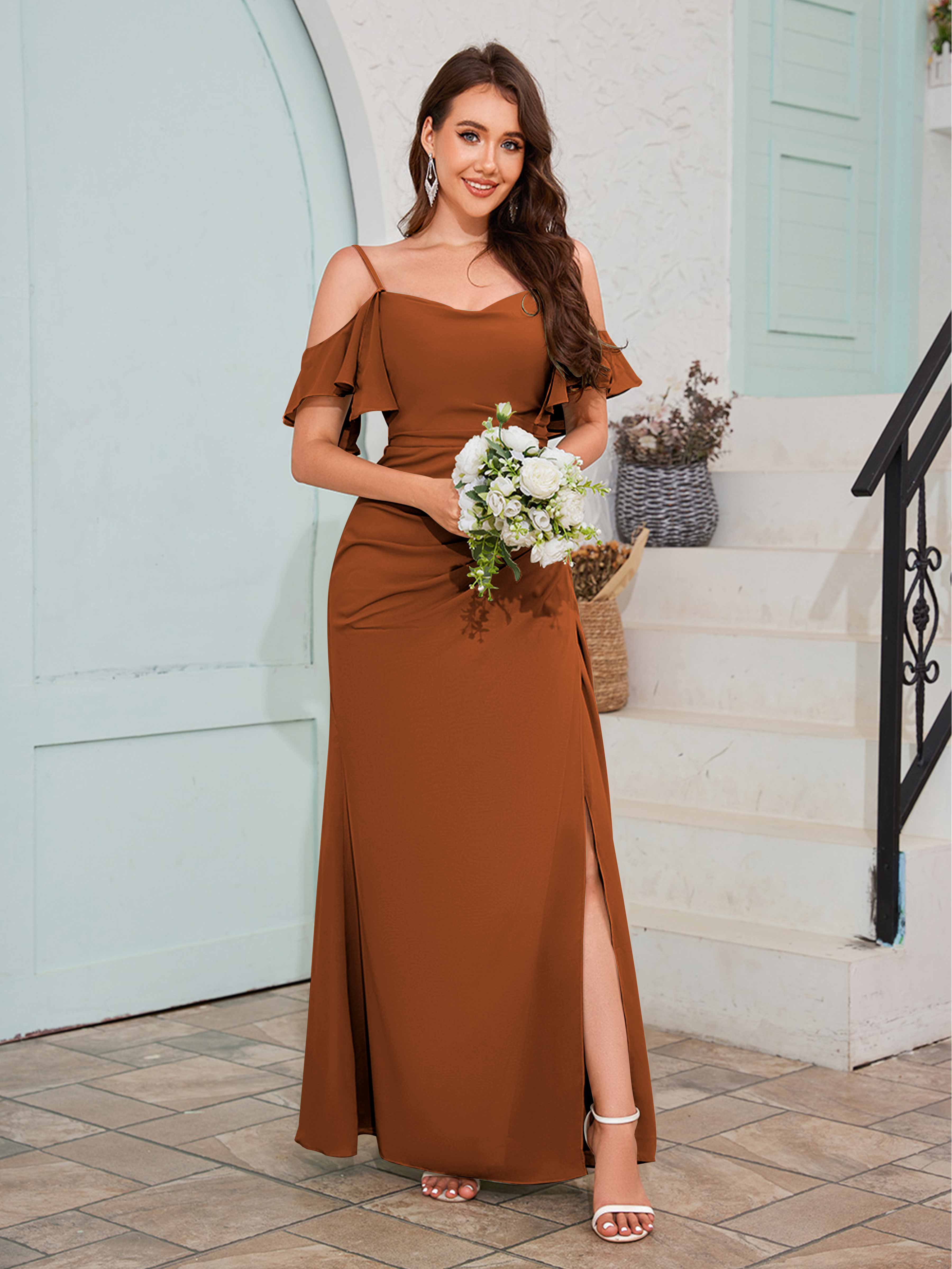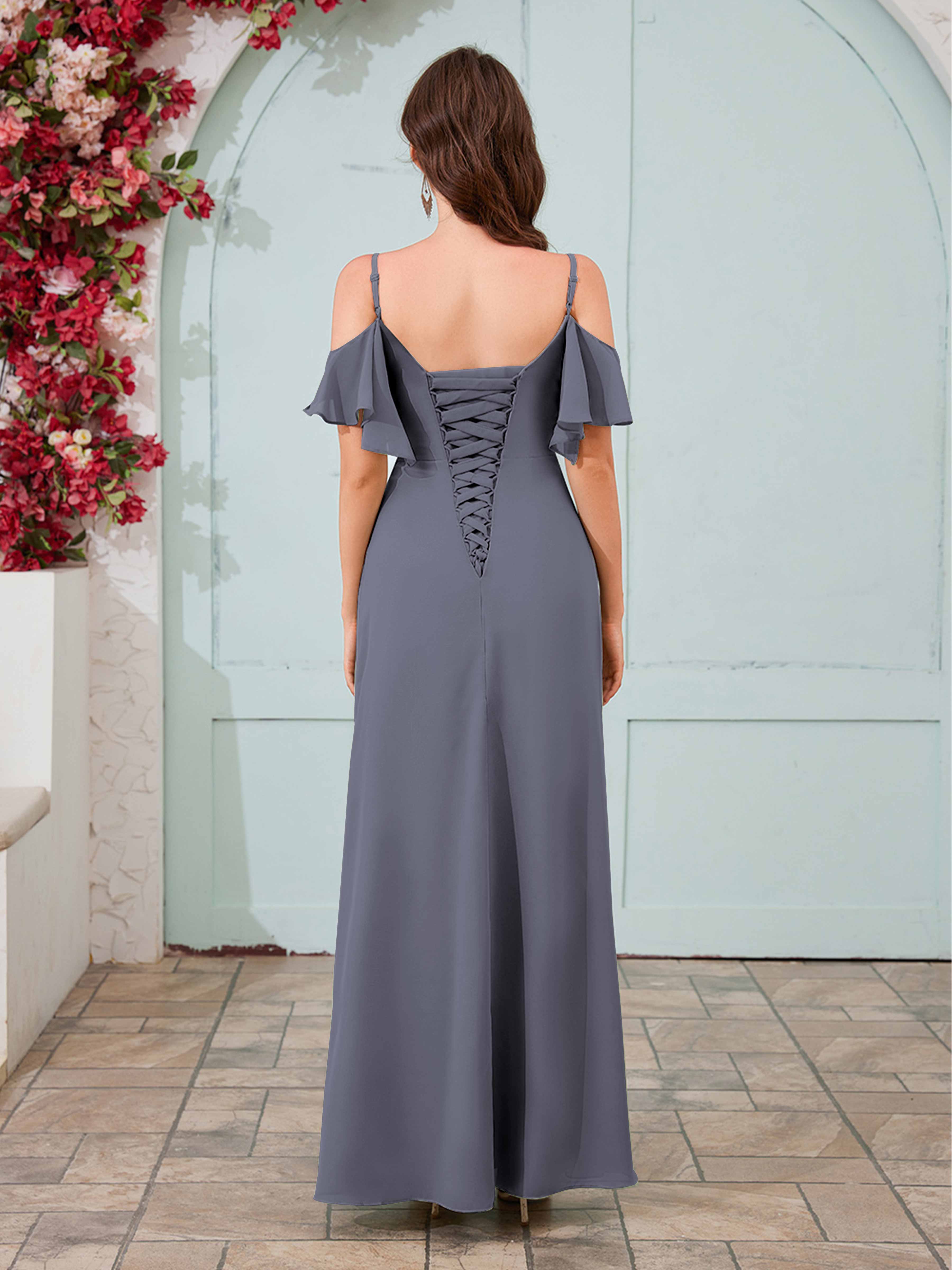 Alessia Chic Cowl Draped Sleeves Pleated Long Chiffon Bridesmaid Dresses