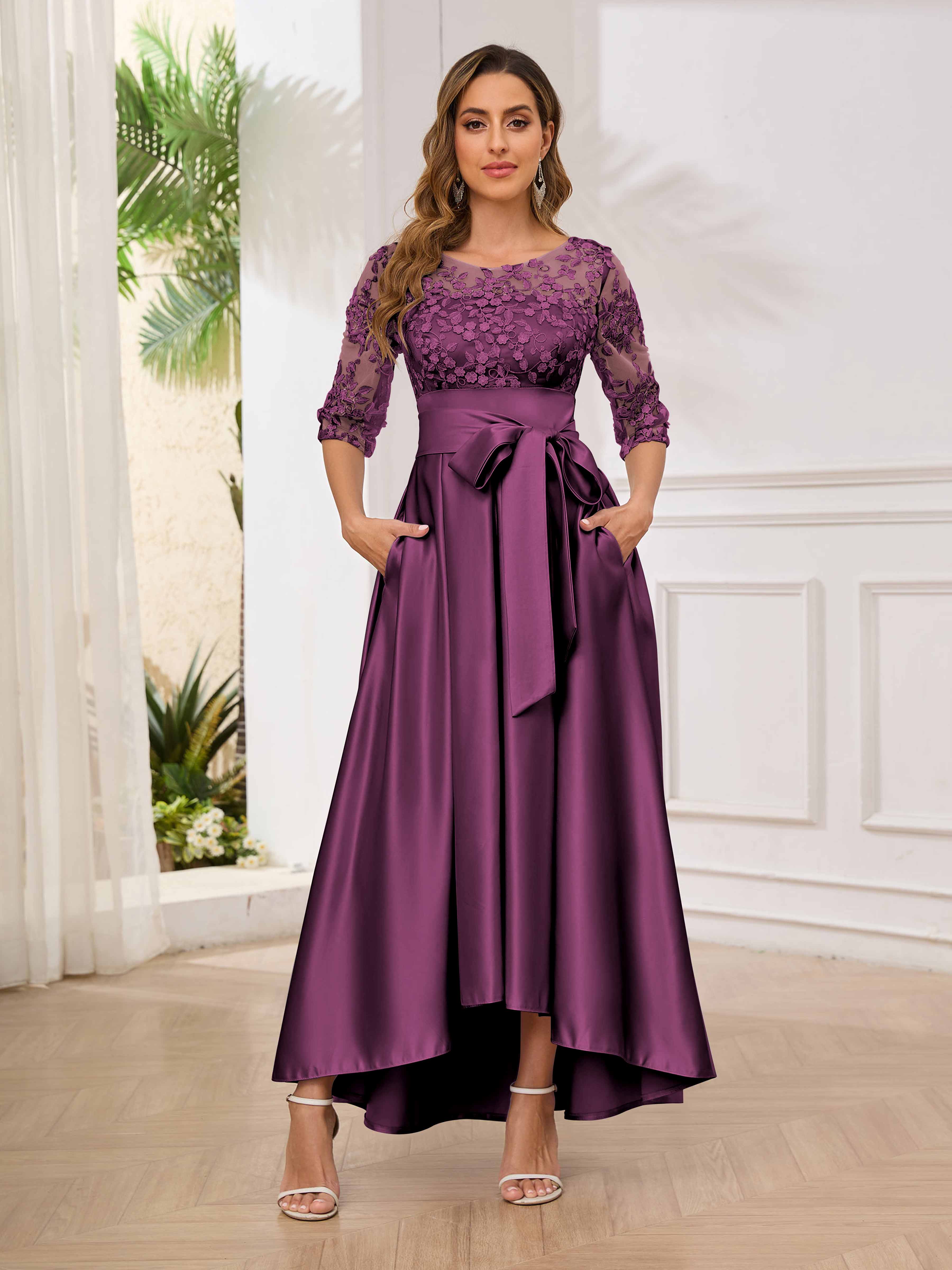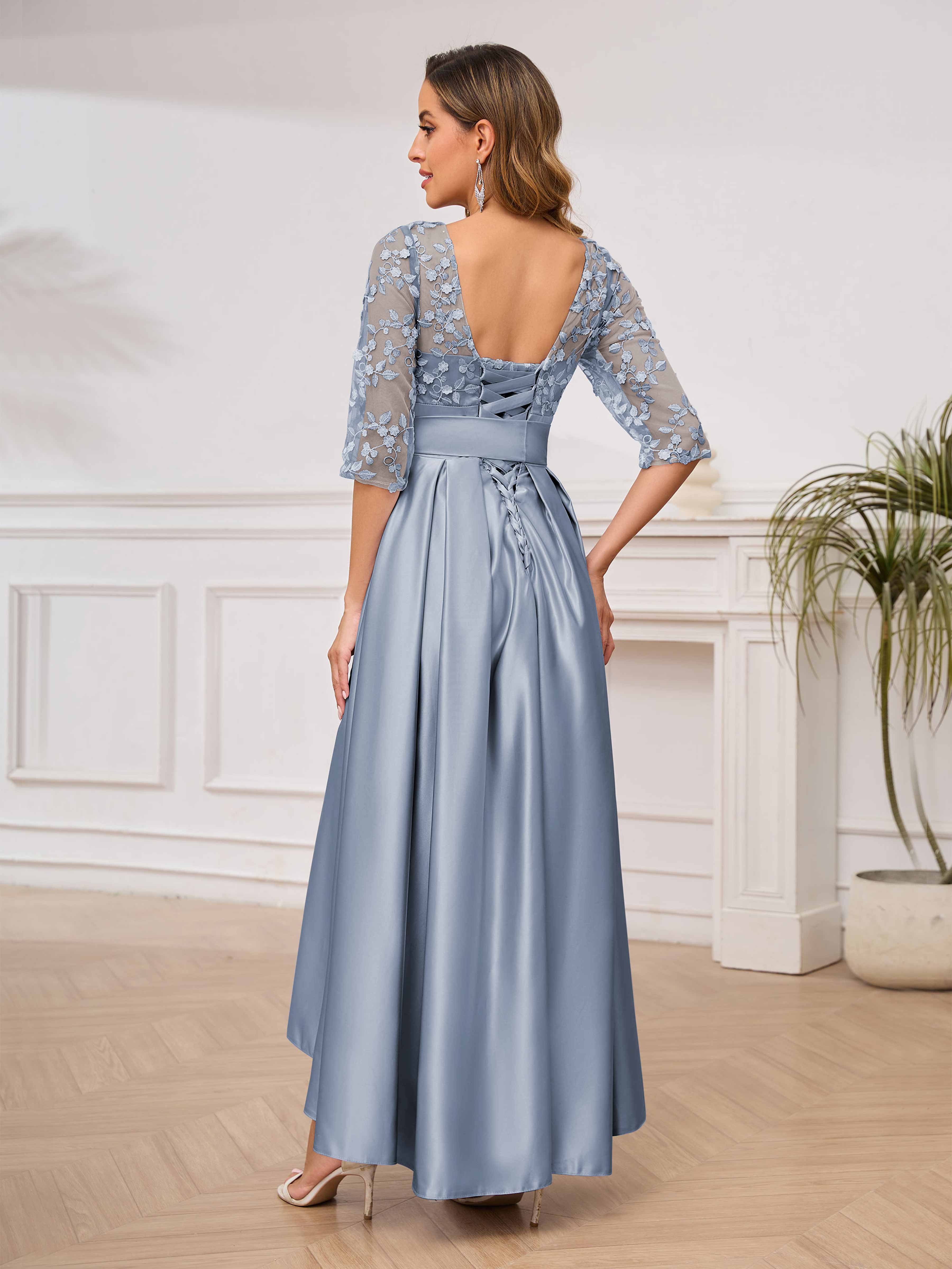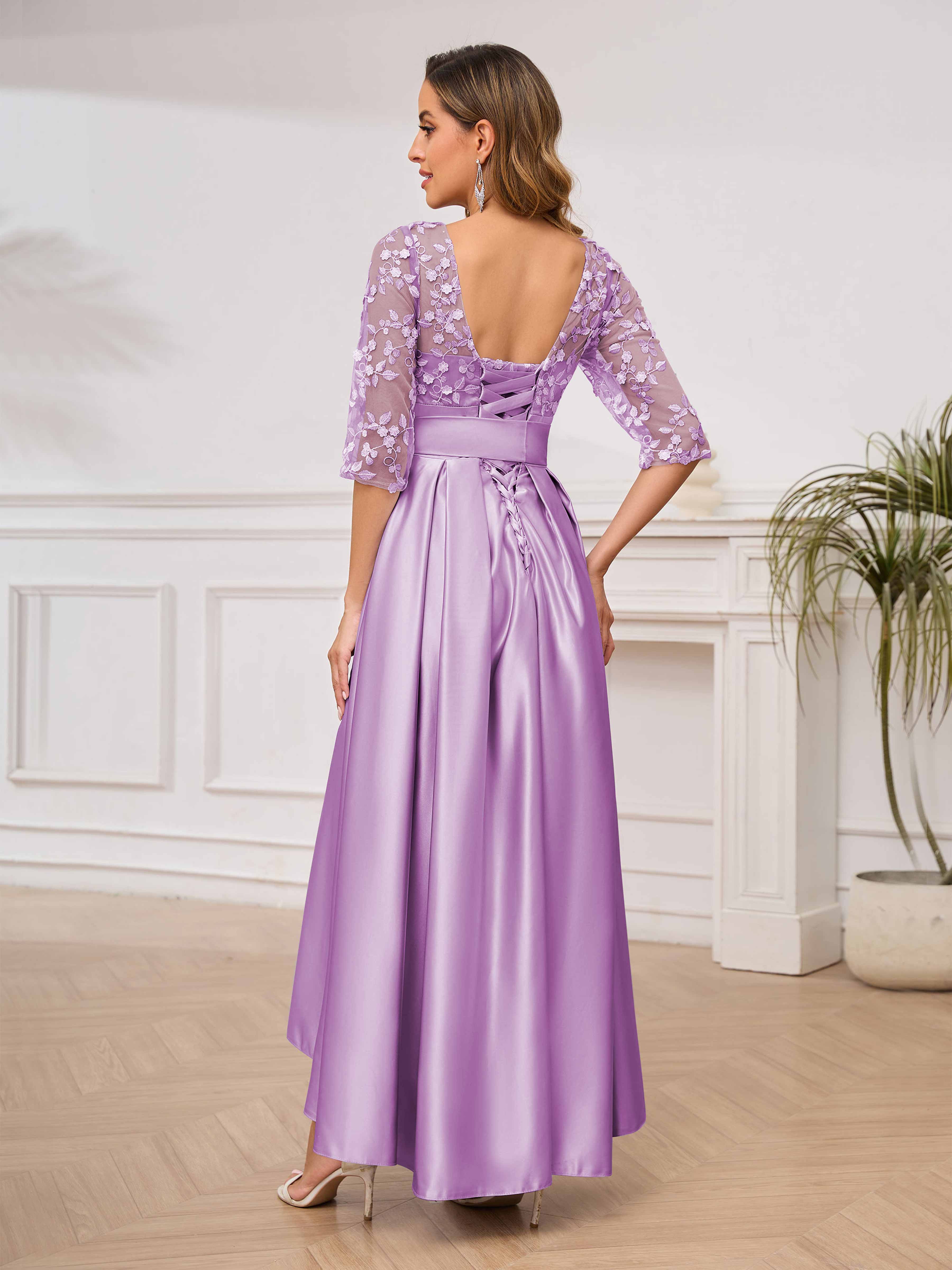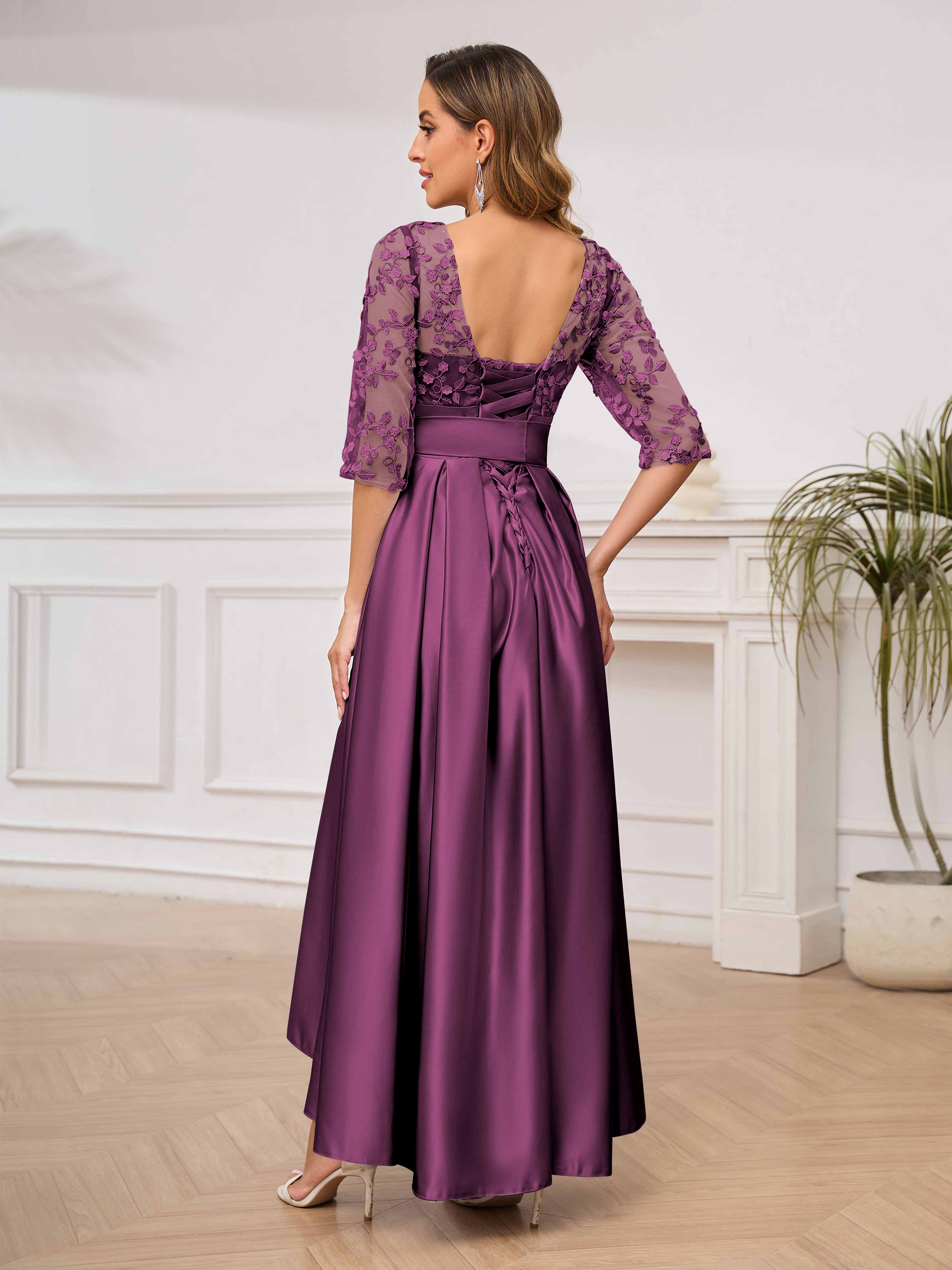 Amaia Graceful Appliques High Low Satin Mother of the Bride Dresses