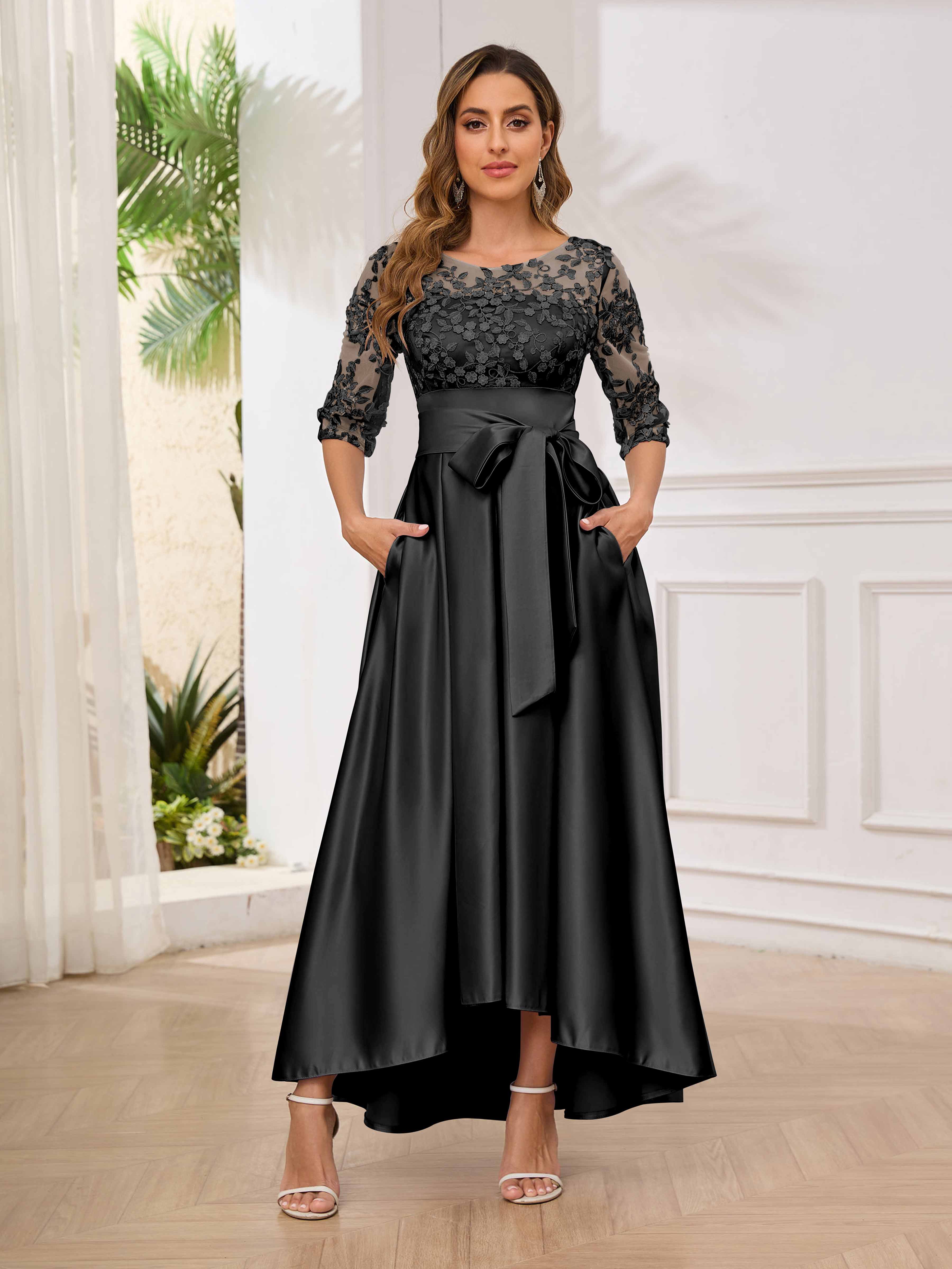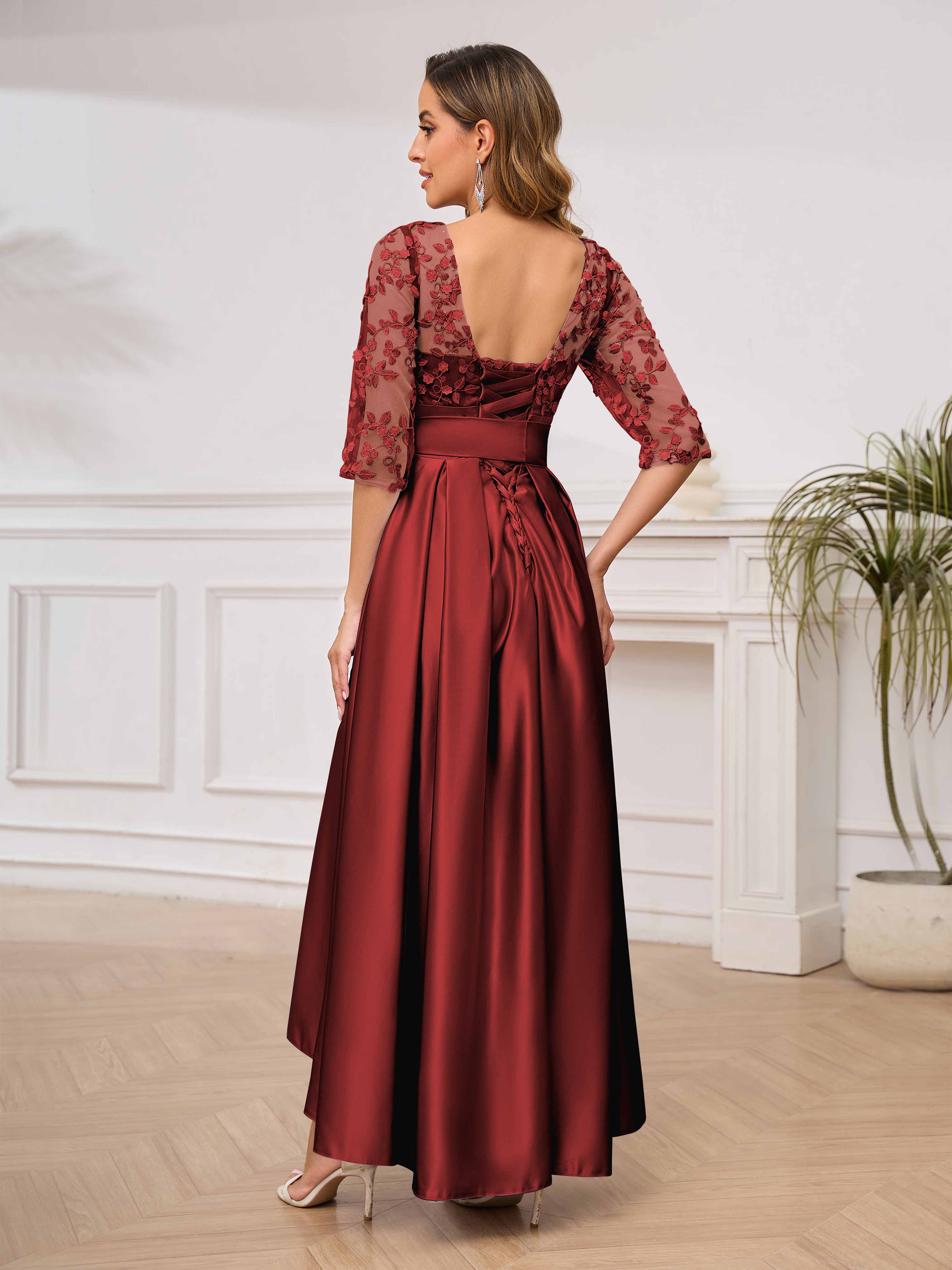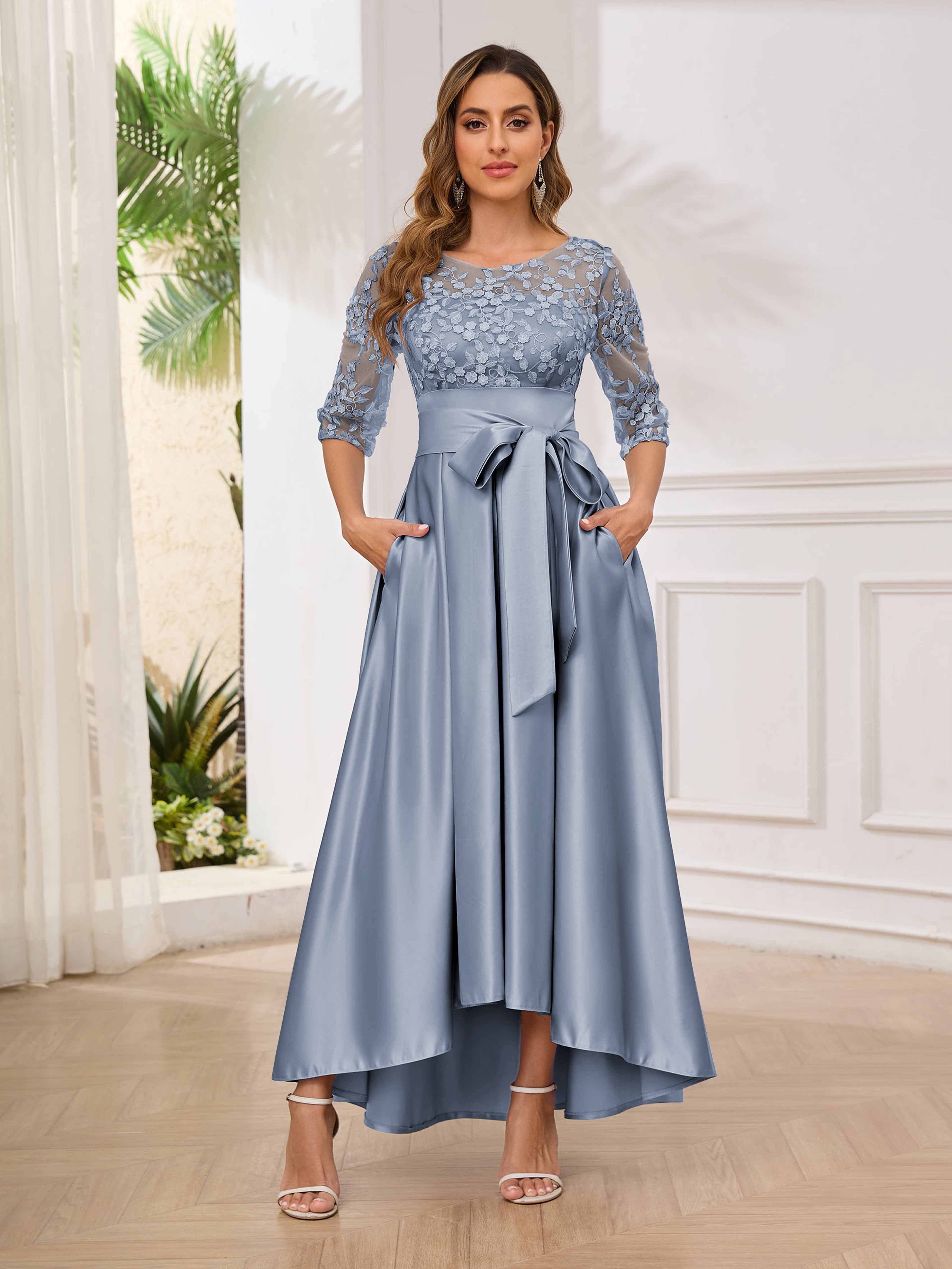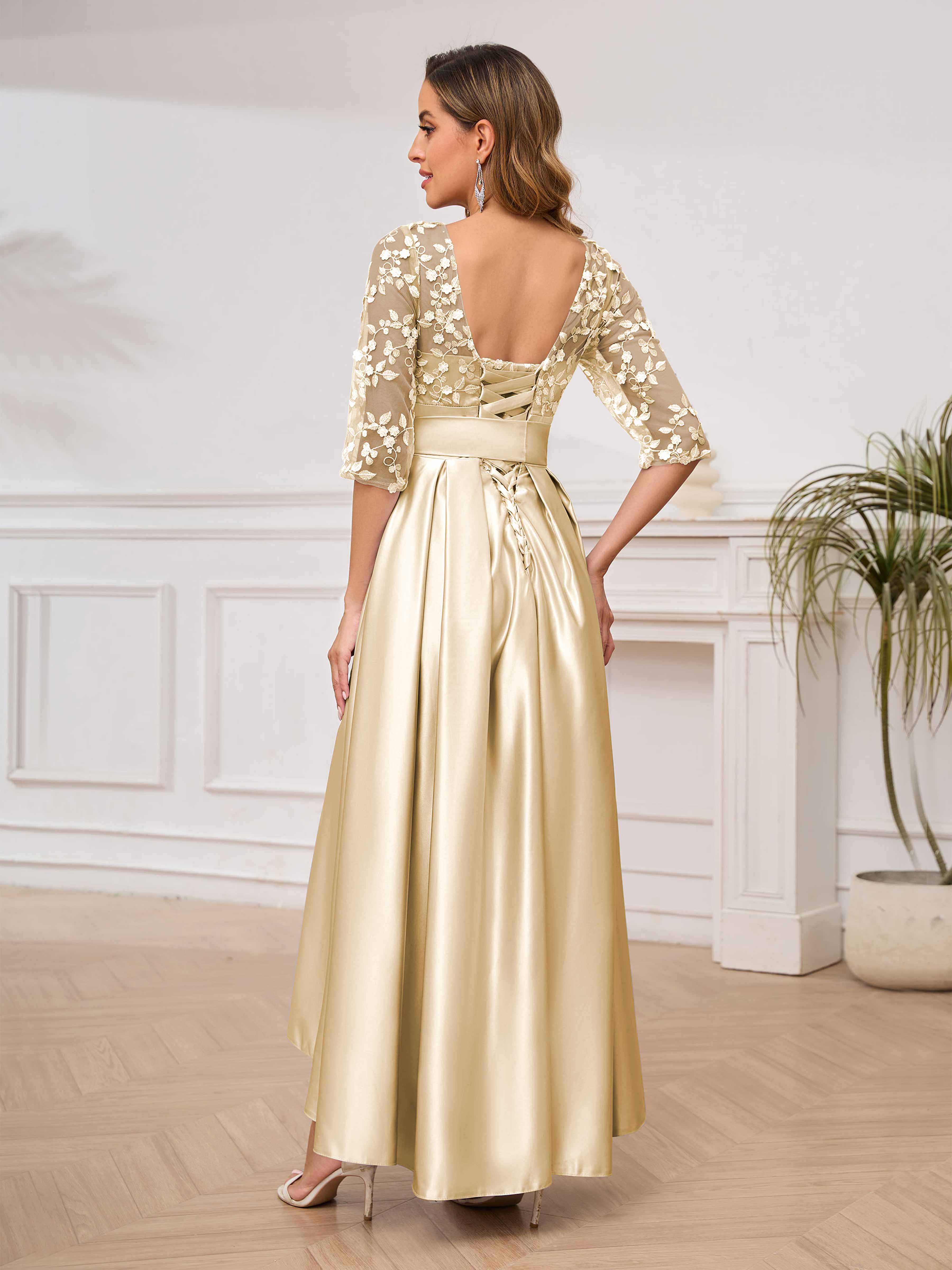 Amaia Graceful Appliques High Low Satin Mother of the Bride Dresses