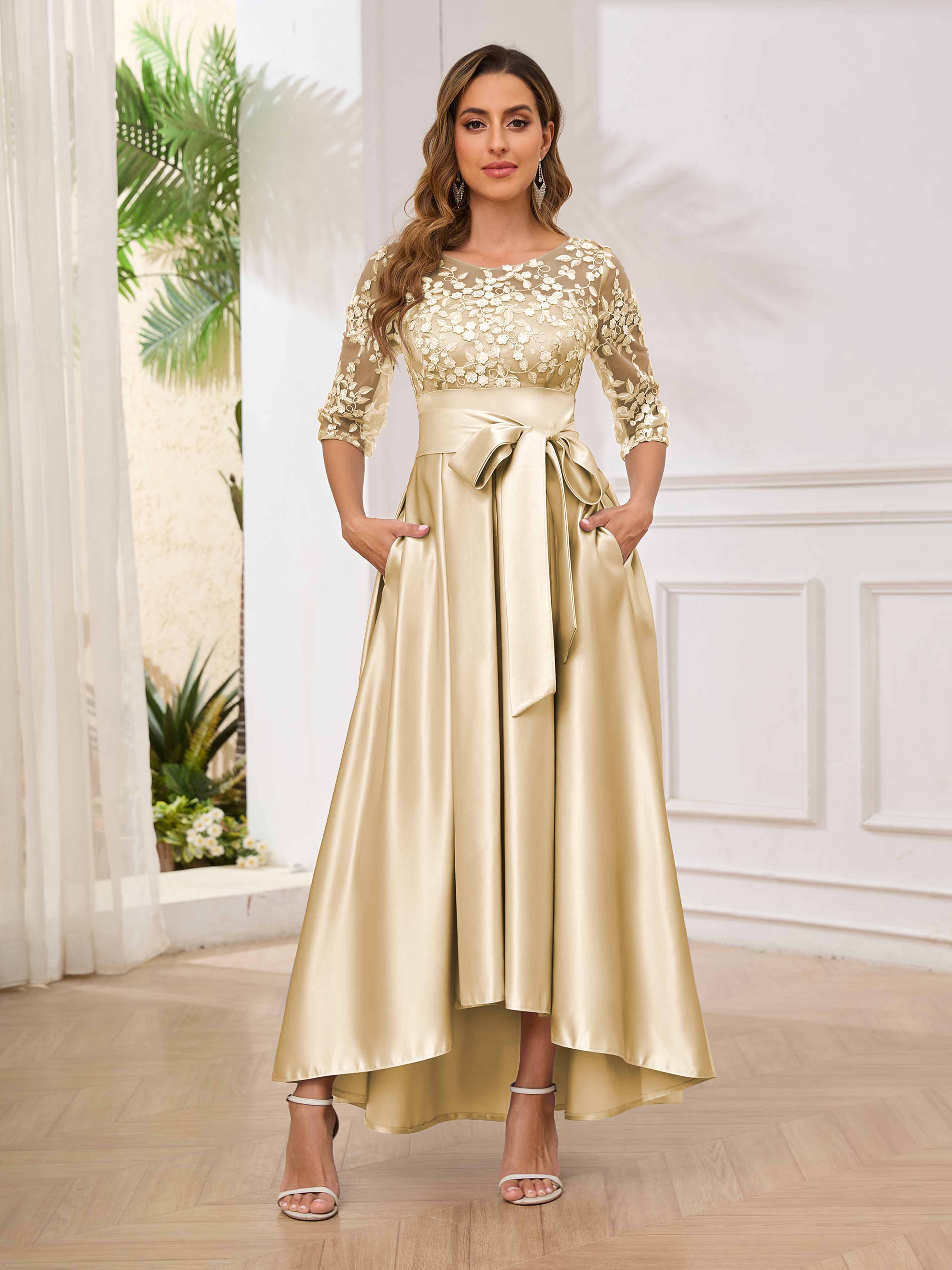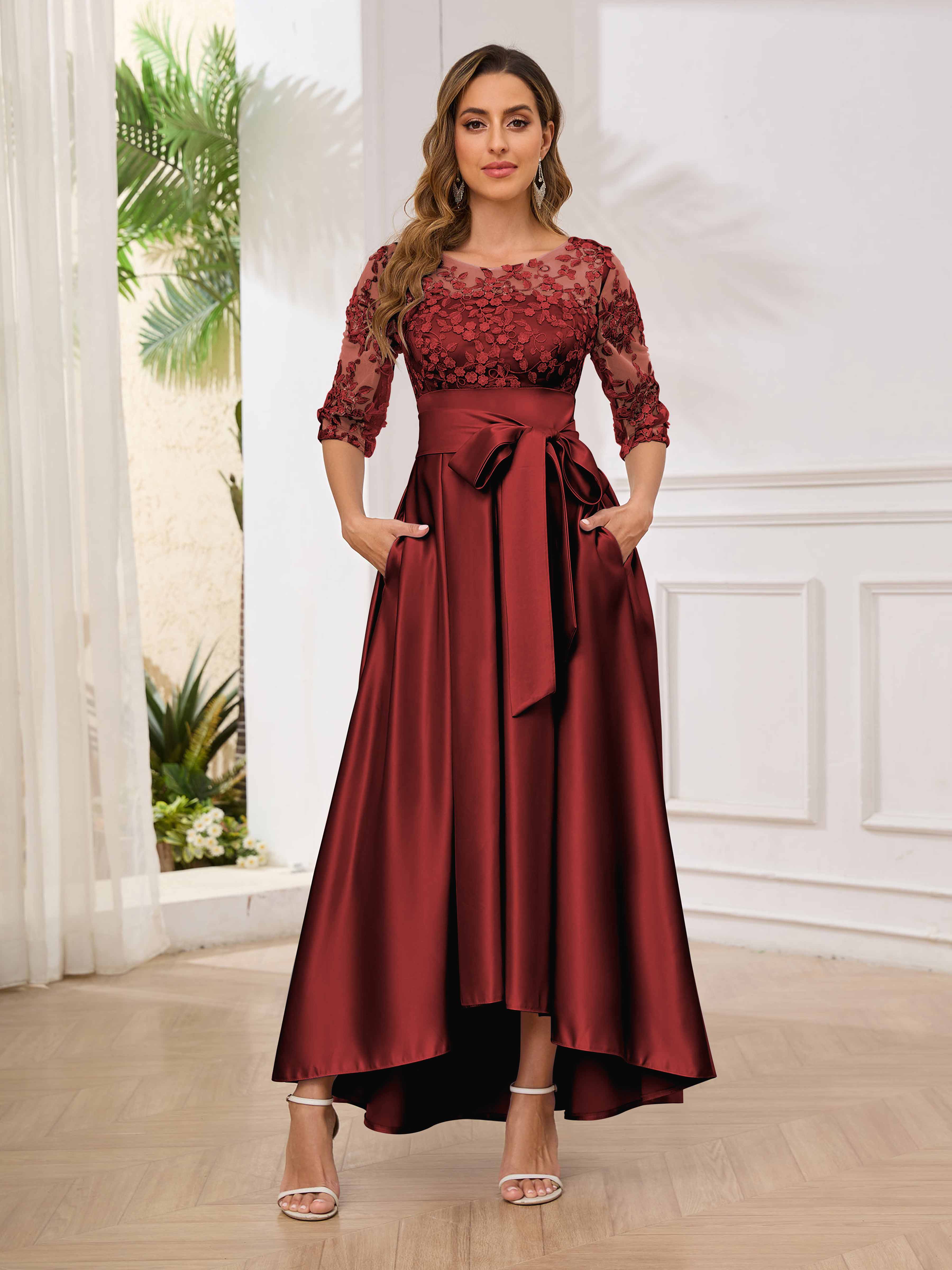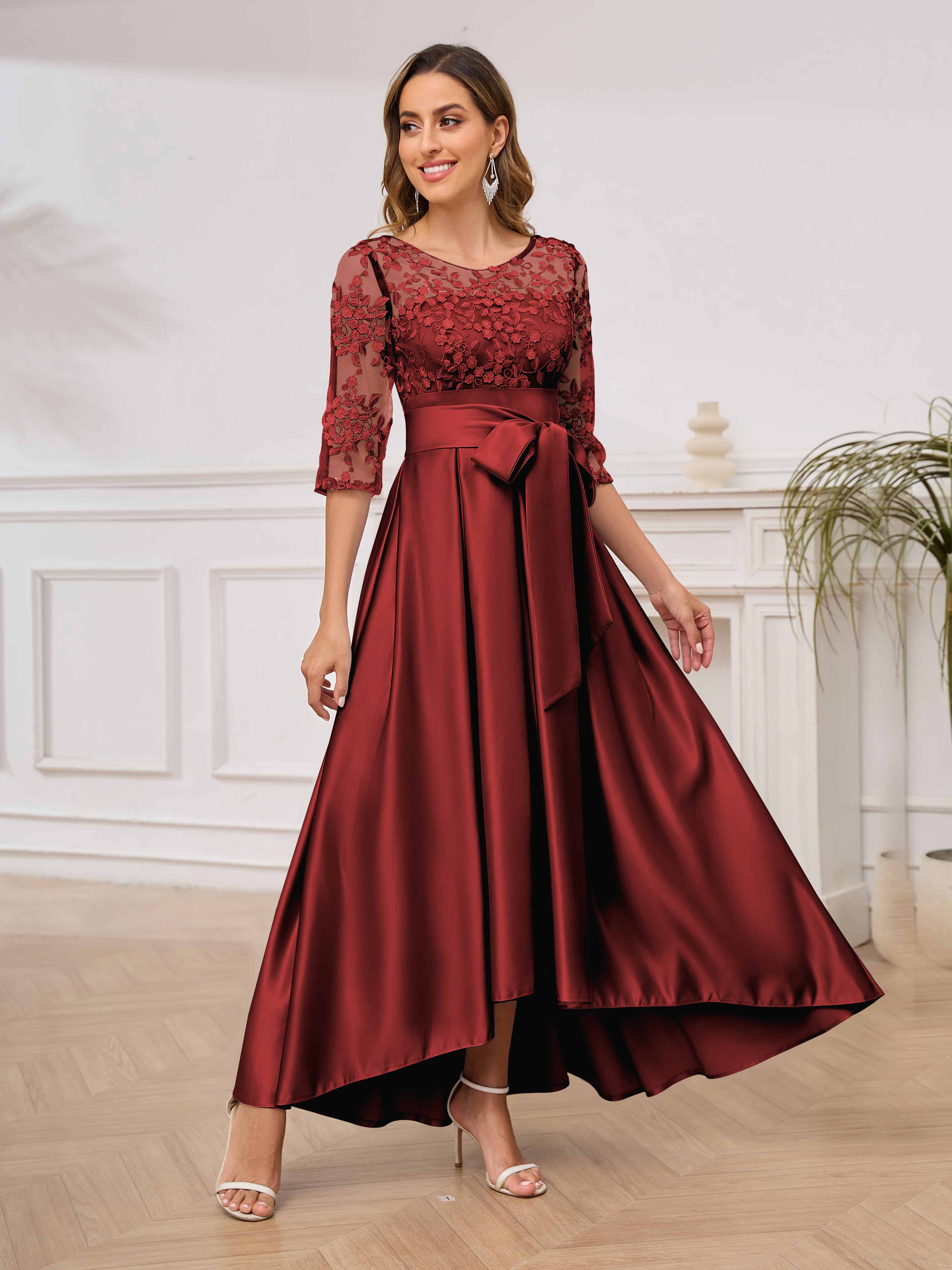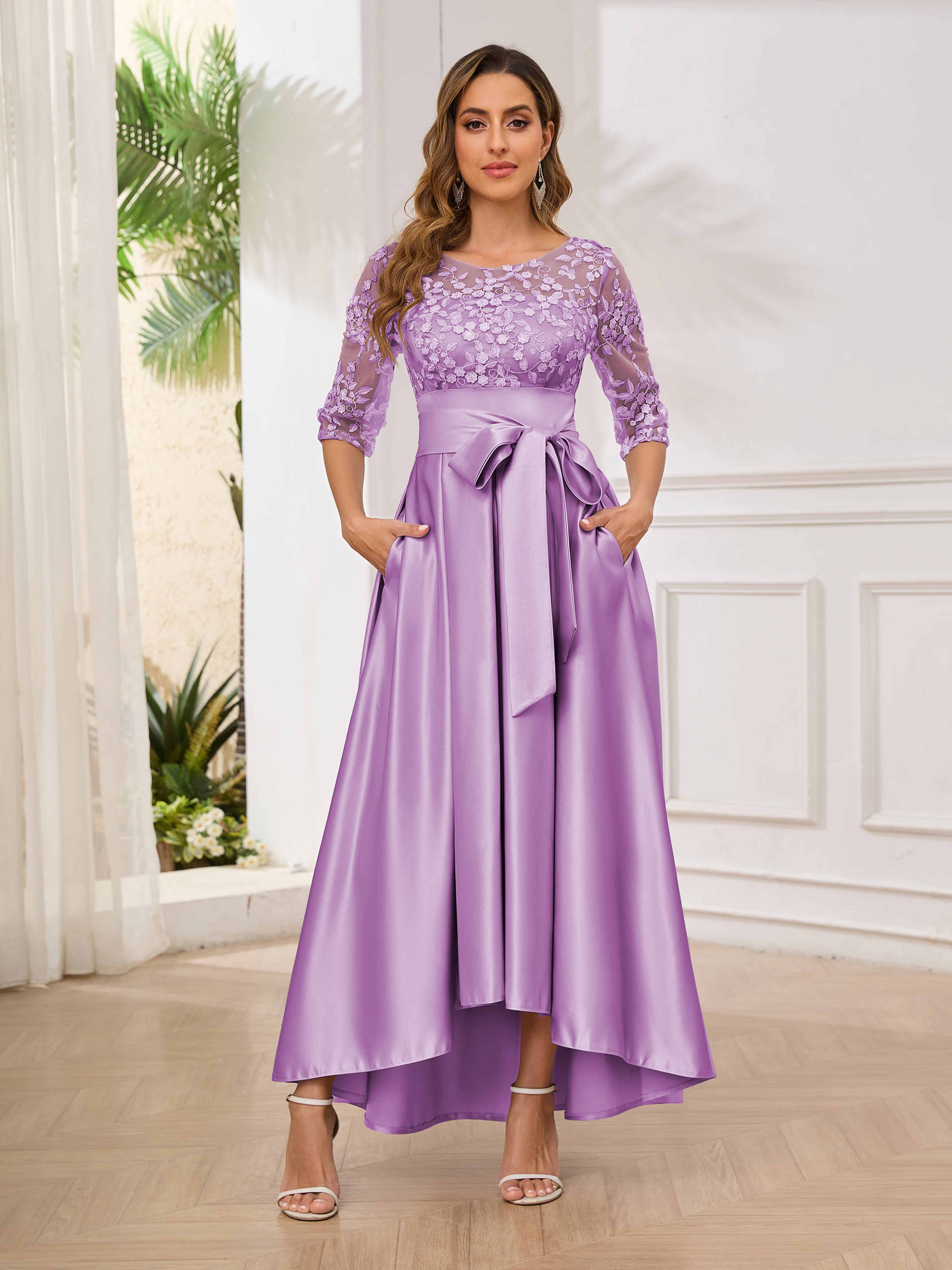 Amaia Graceful Appliques High Low Satin Mother of the Bride Dresses