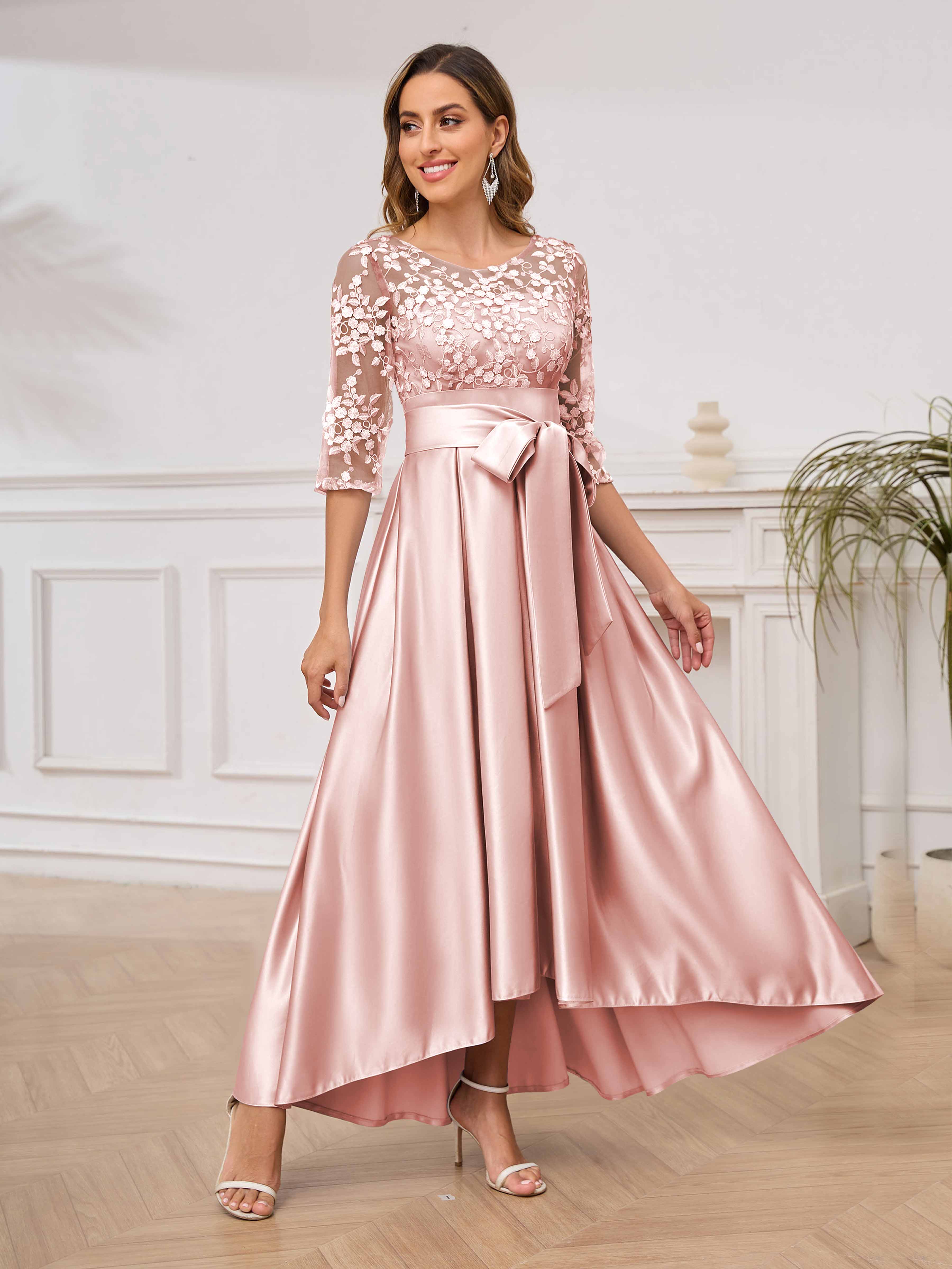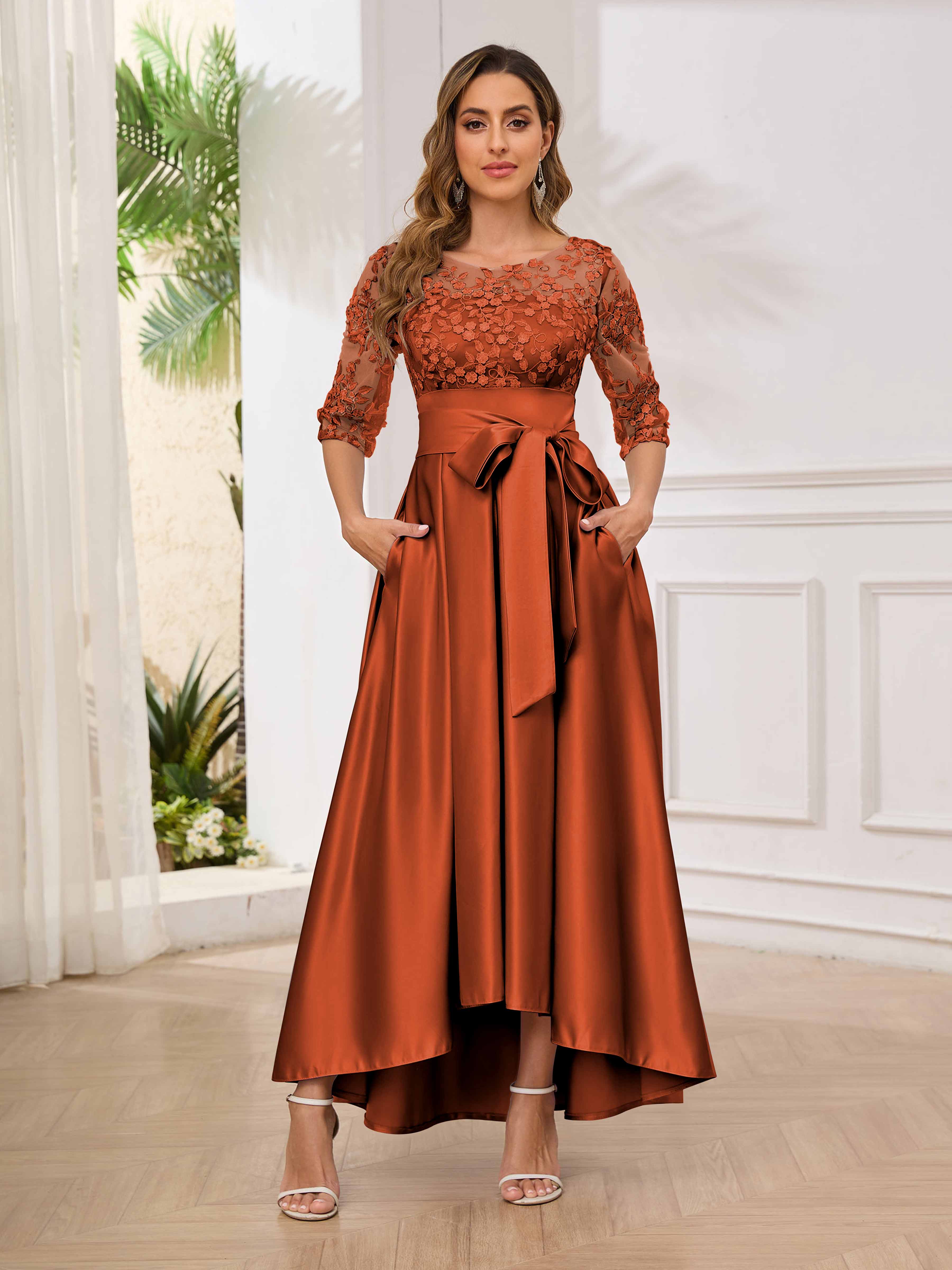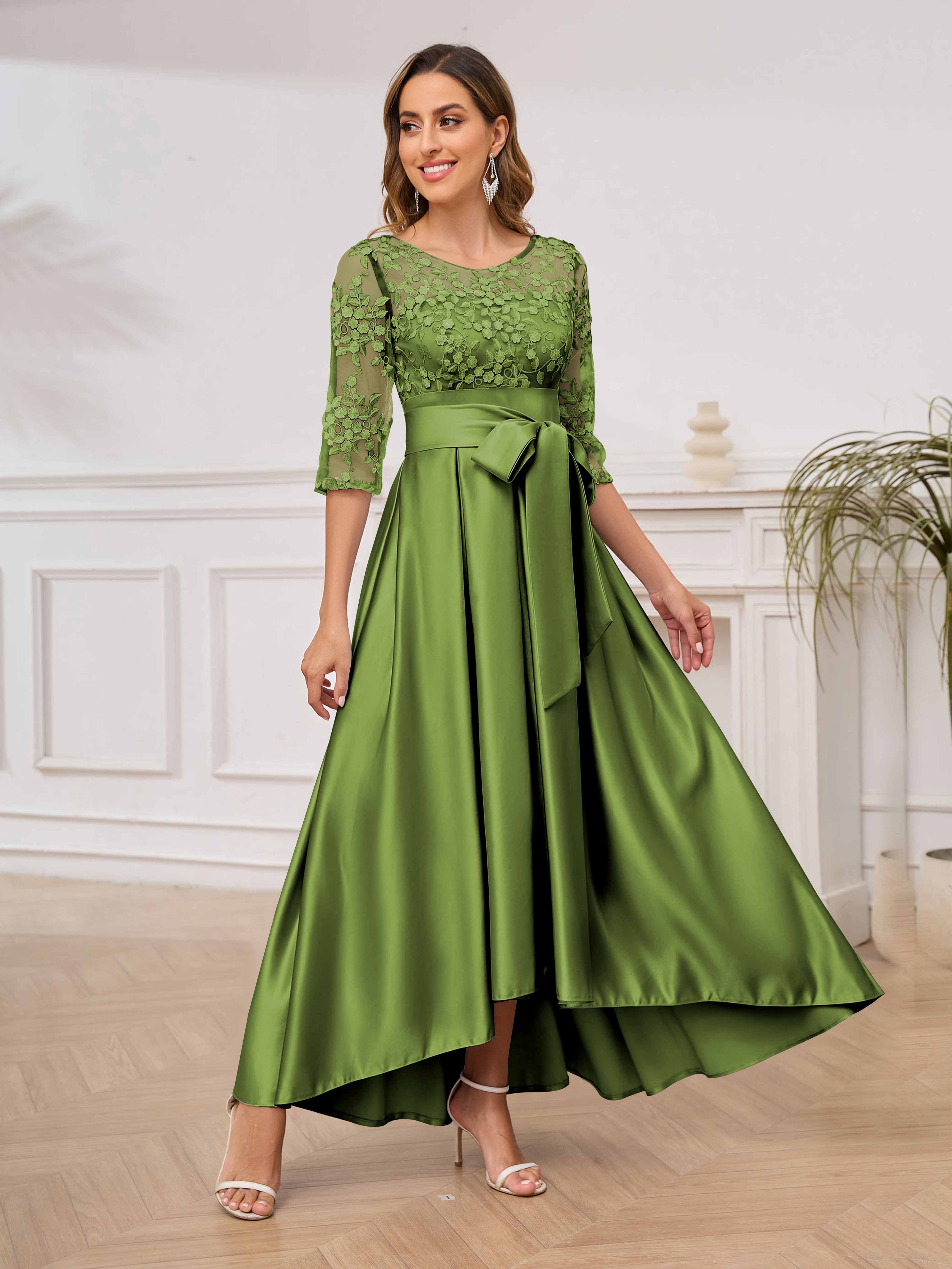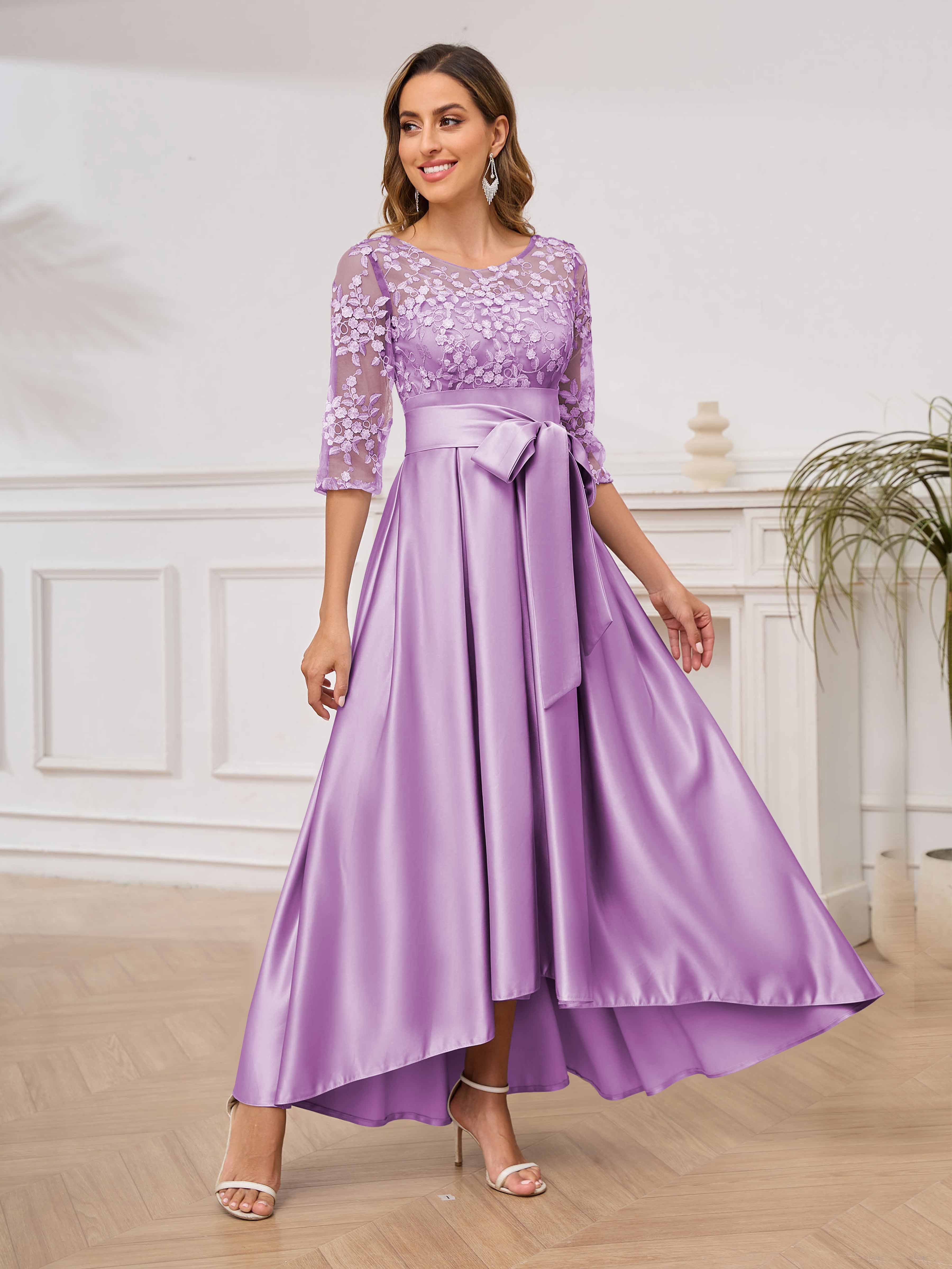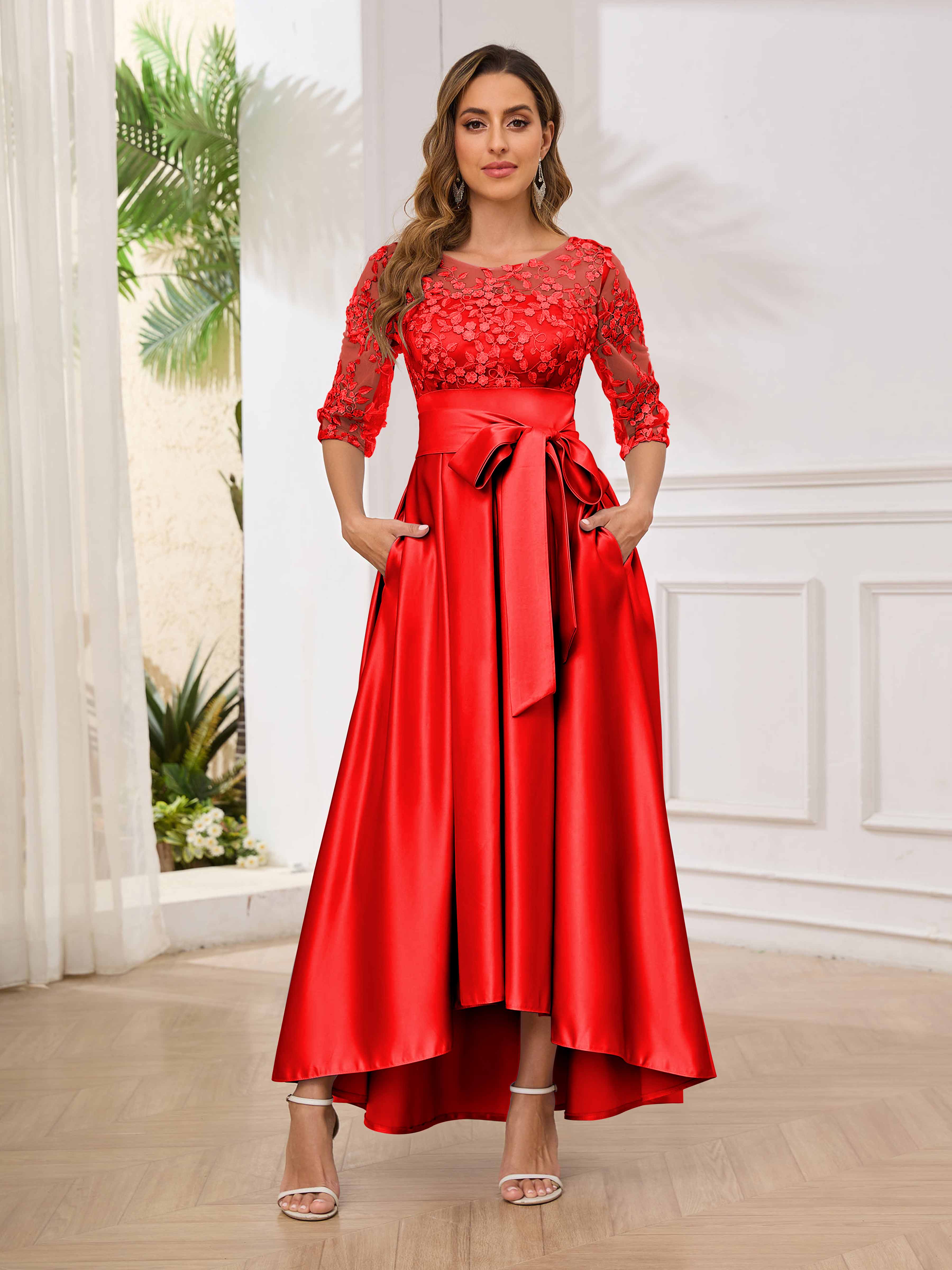 The dress I purchased was fantastic! It's not only comfortable and visually appealing with its vibrant color, but also boasts soft satin and tastefully placed lace details, notably the bow at the waist. This dress is ideal for a mother of the bride.