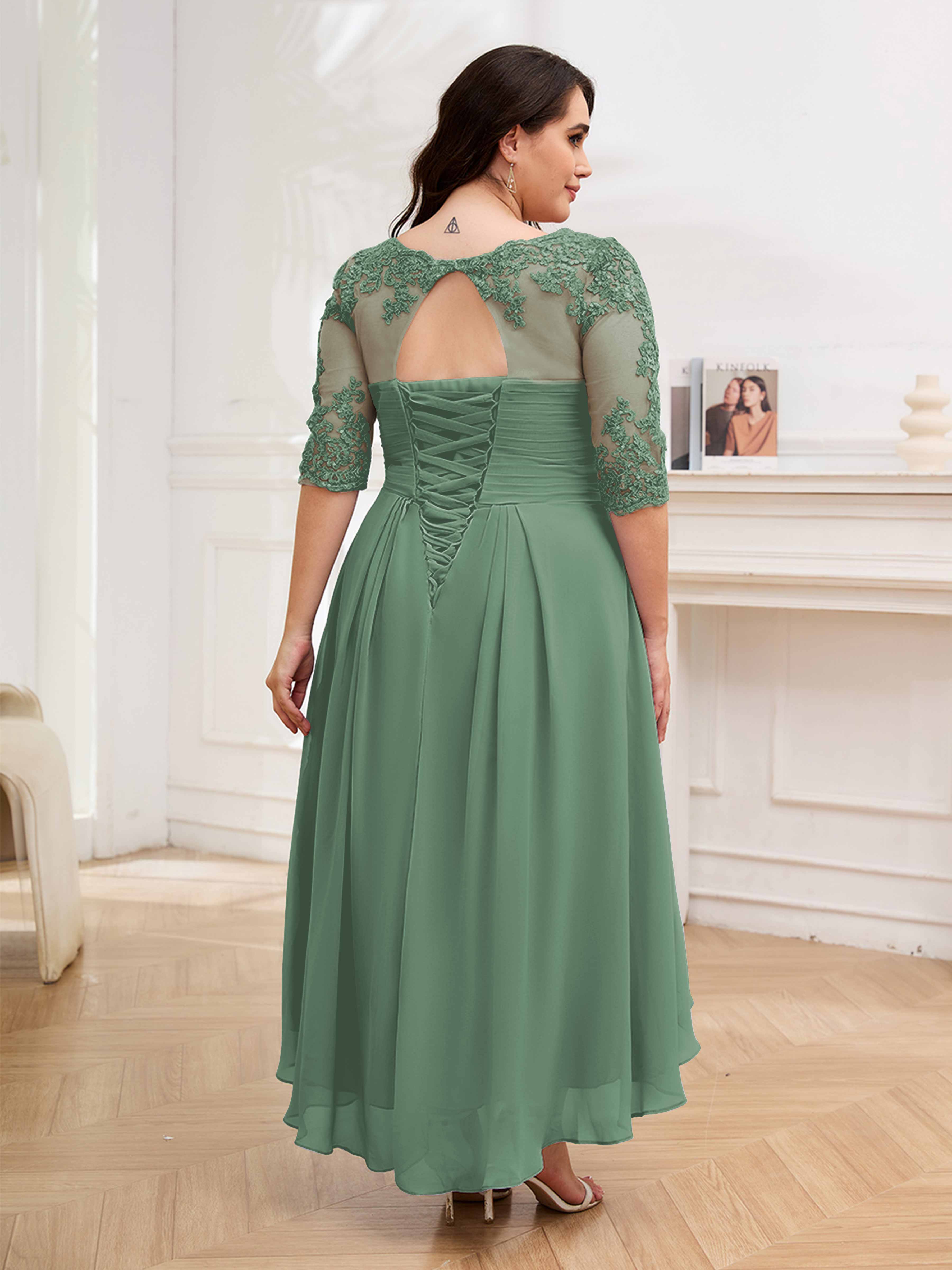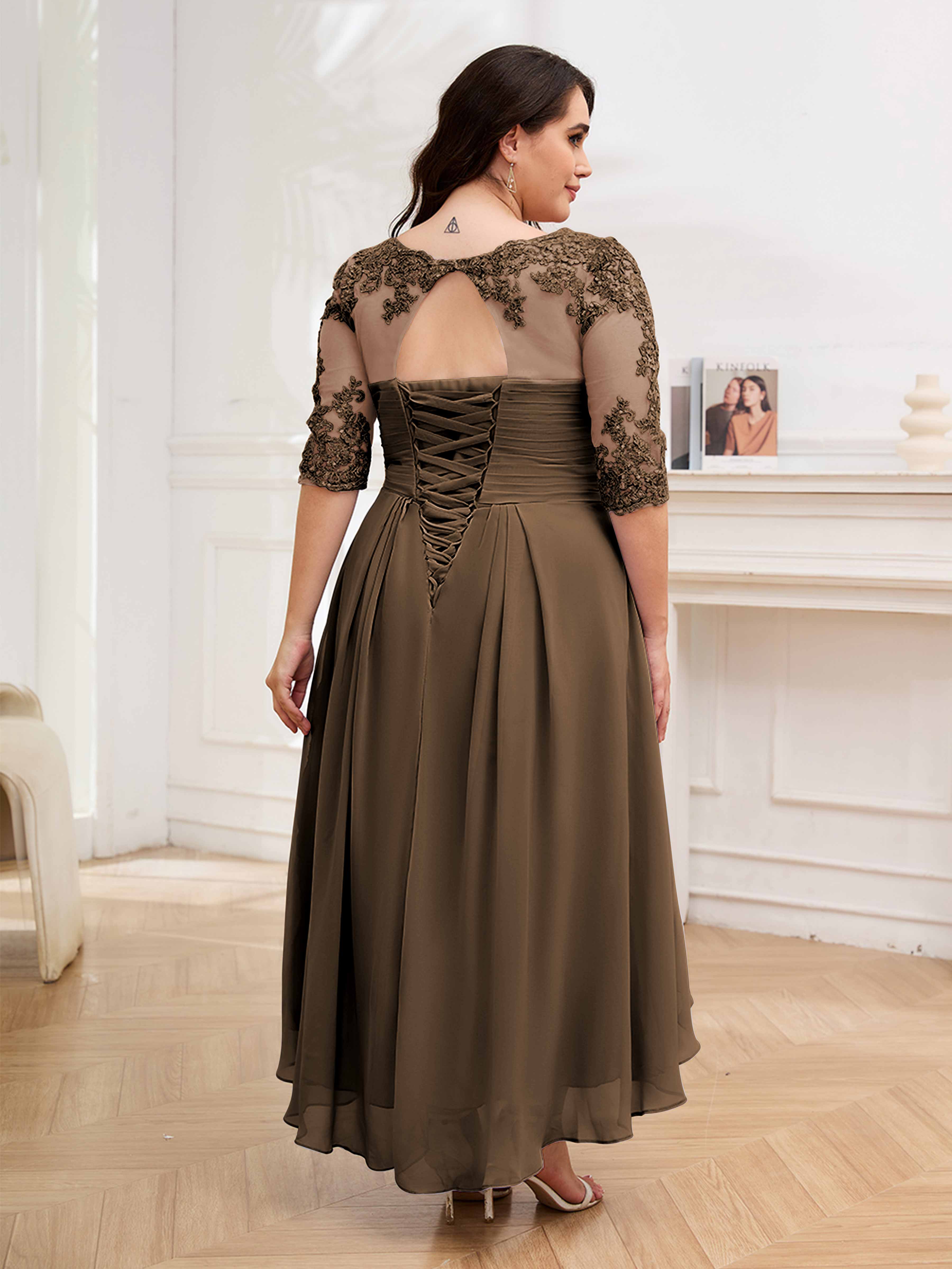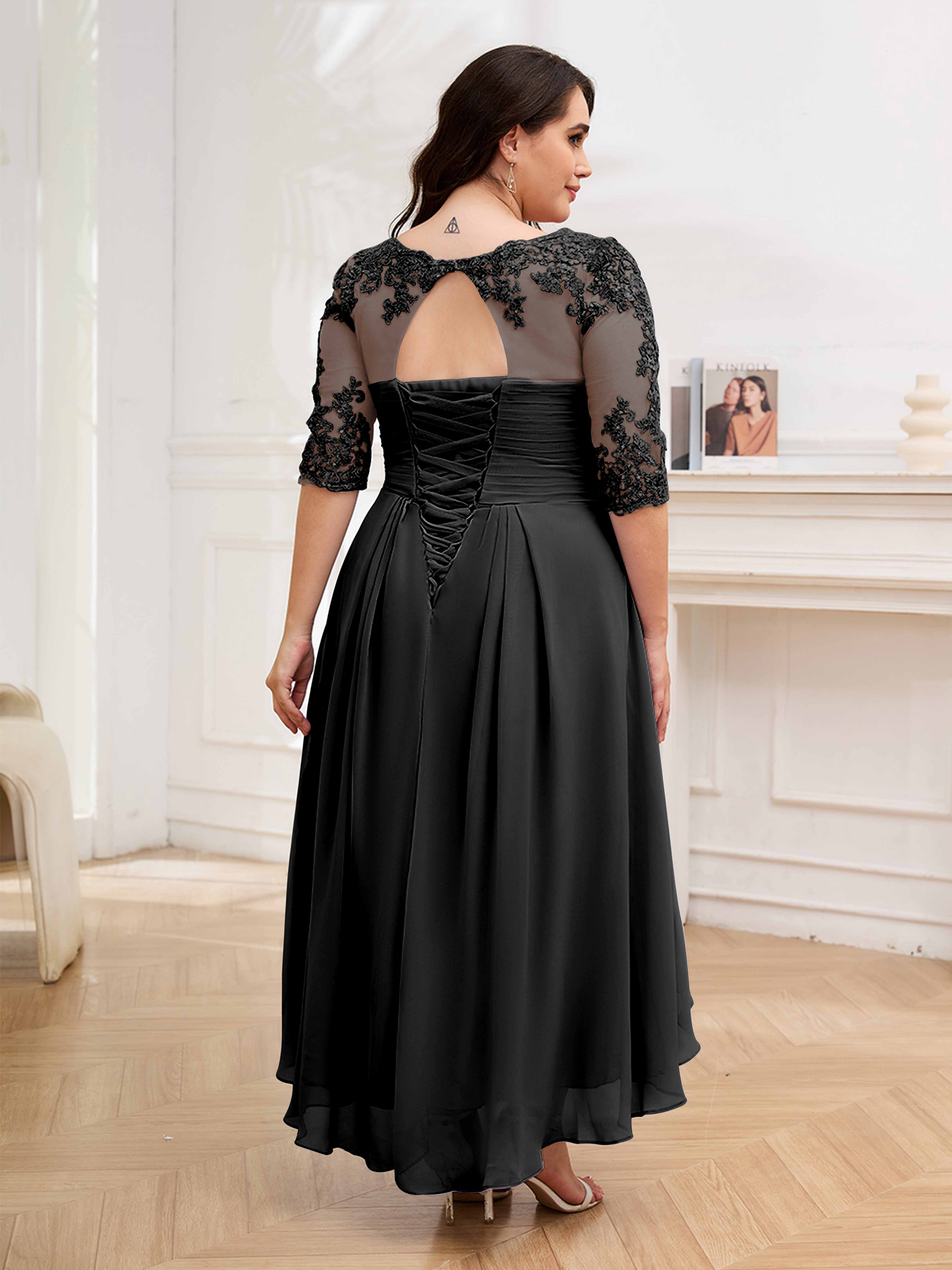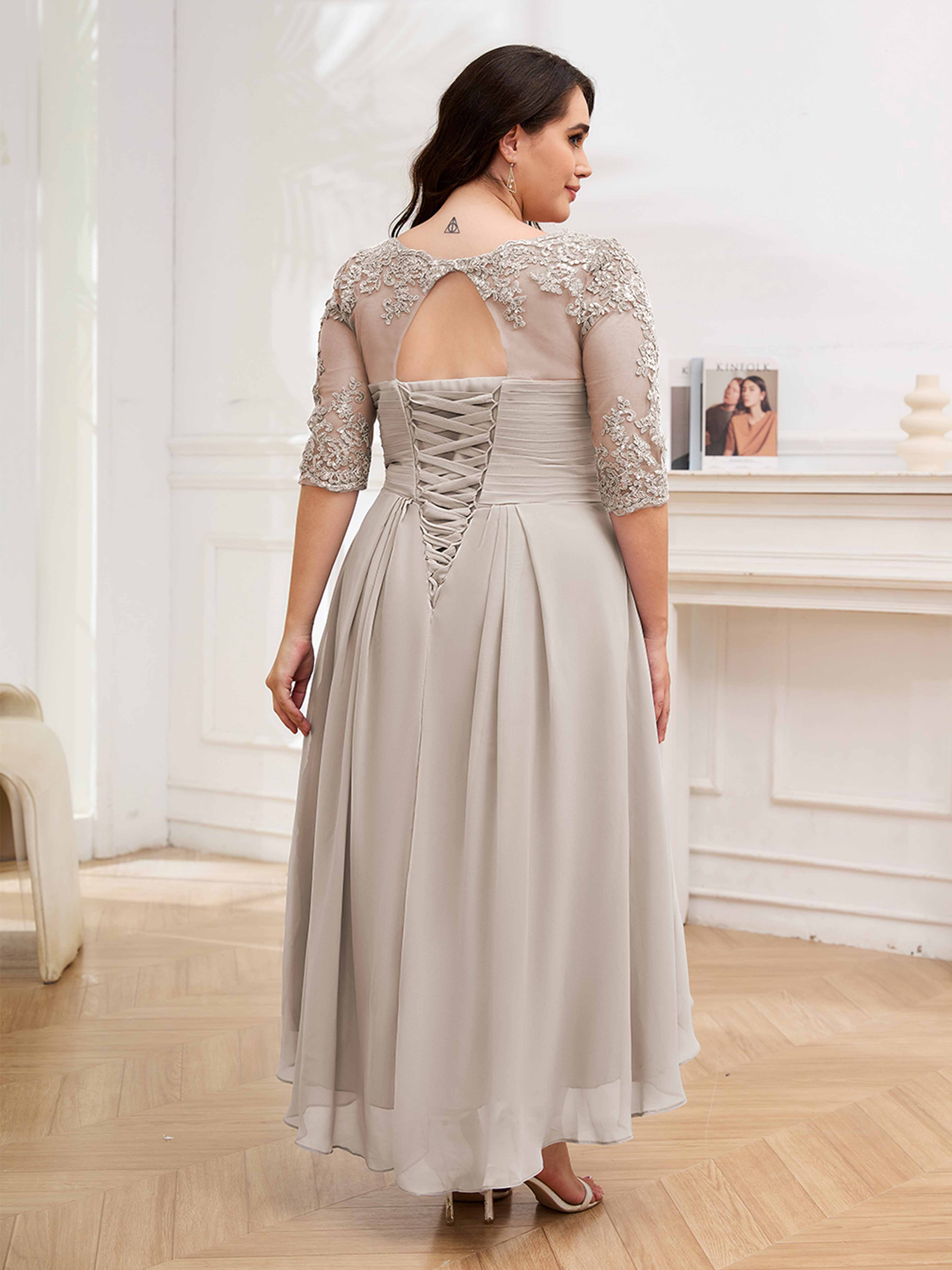 Amalia Elegant Ruched Keyhole Appliques Chiffon Plus Size Mother of the Bride Dresses