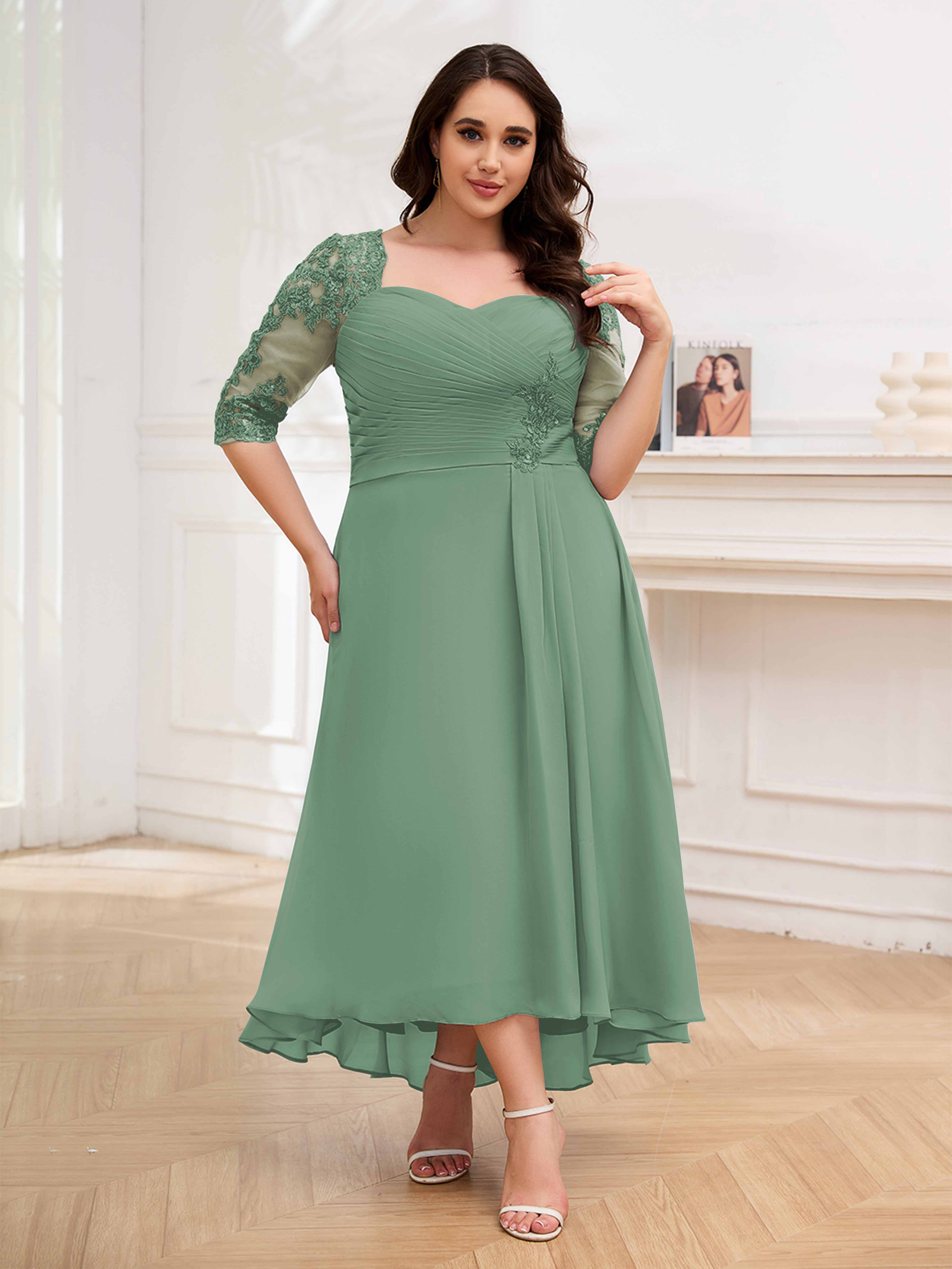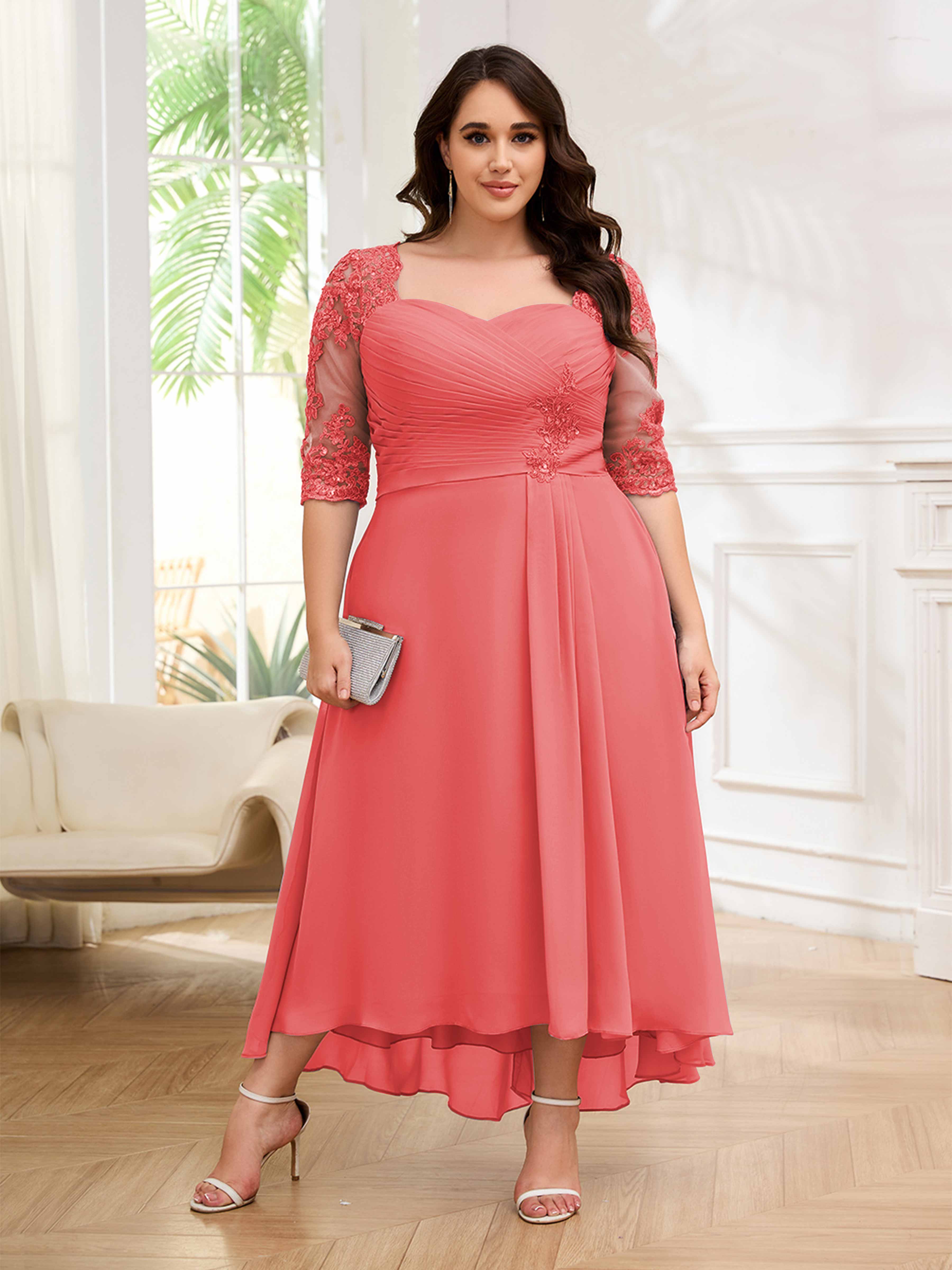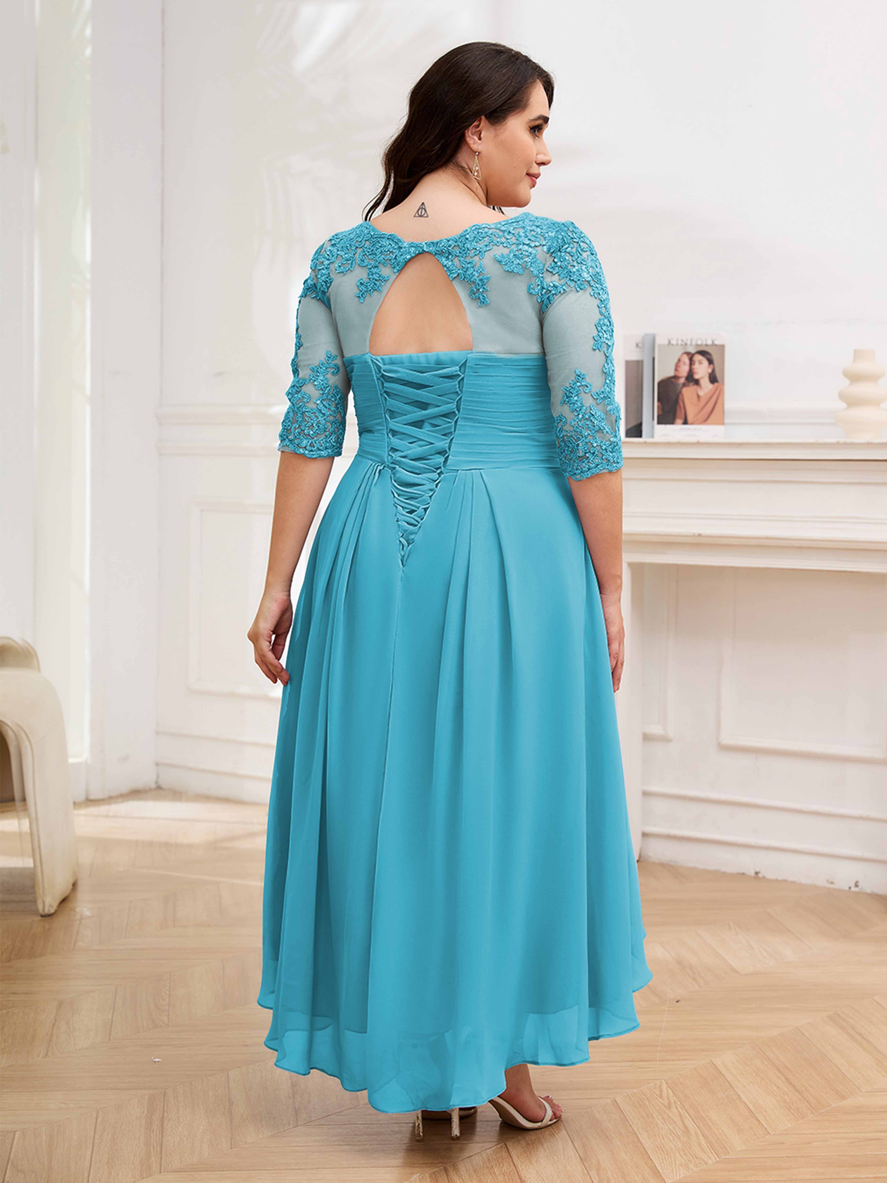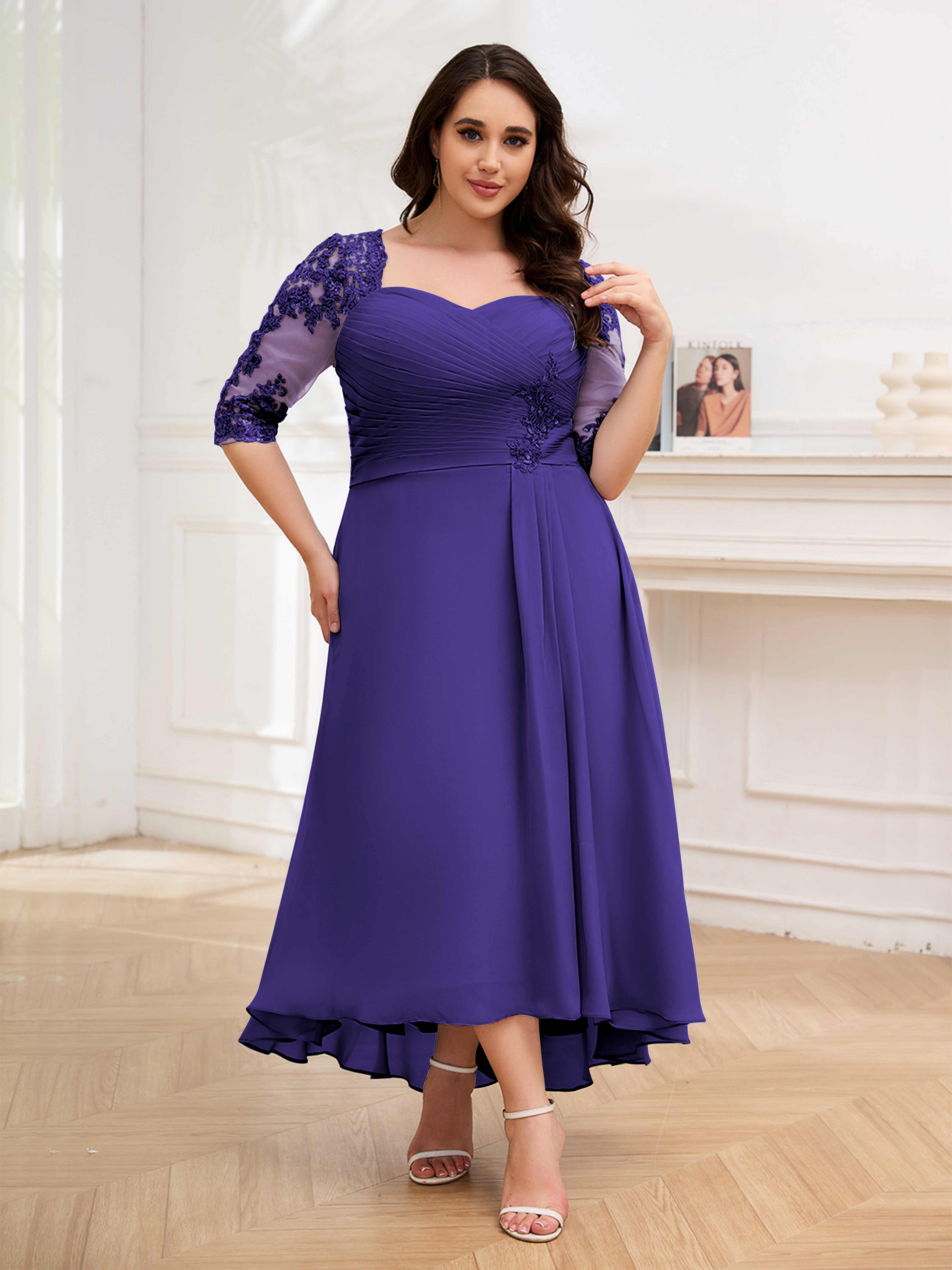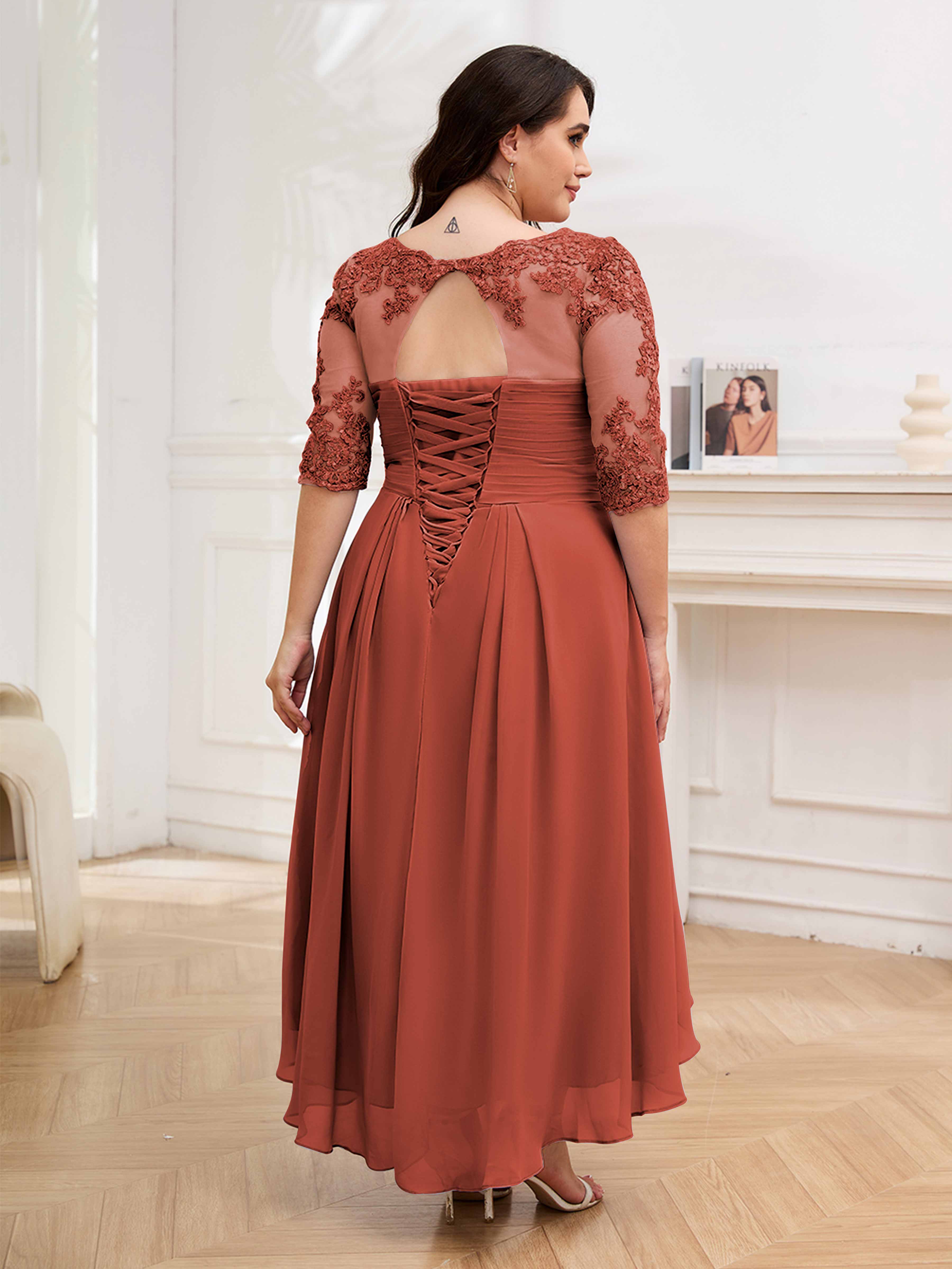 Amalia Elegant Ruched Keyhole Appliques Chiffon Plus Size Mother of the Bride Dresses