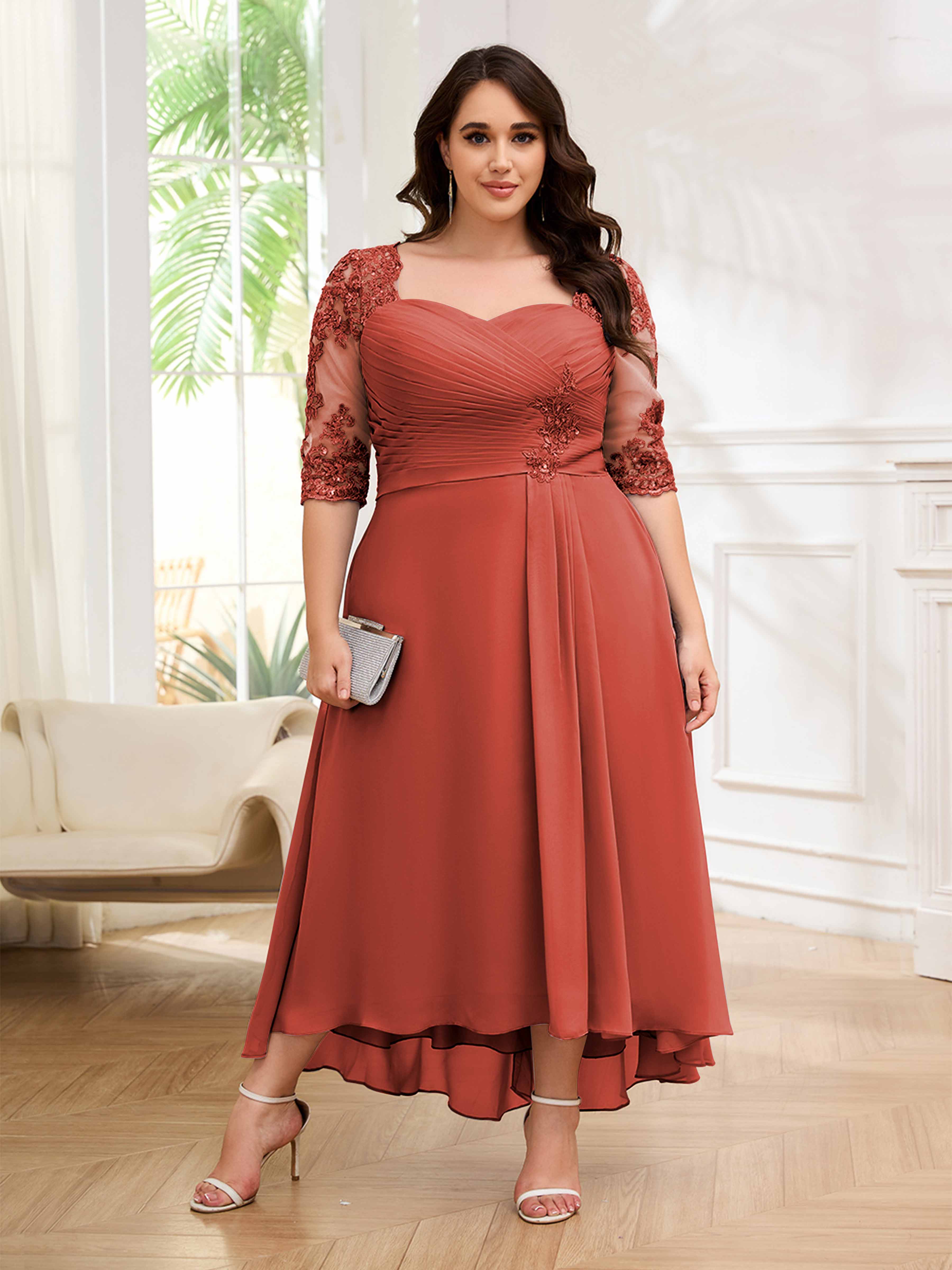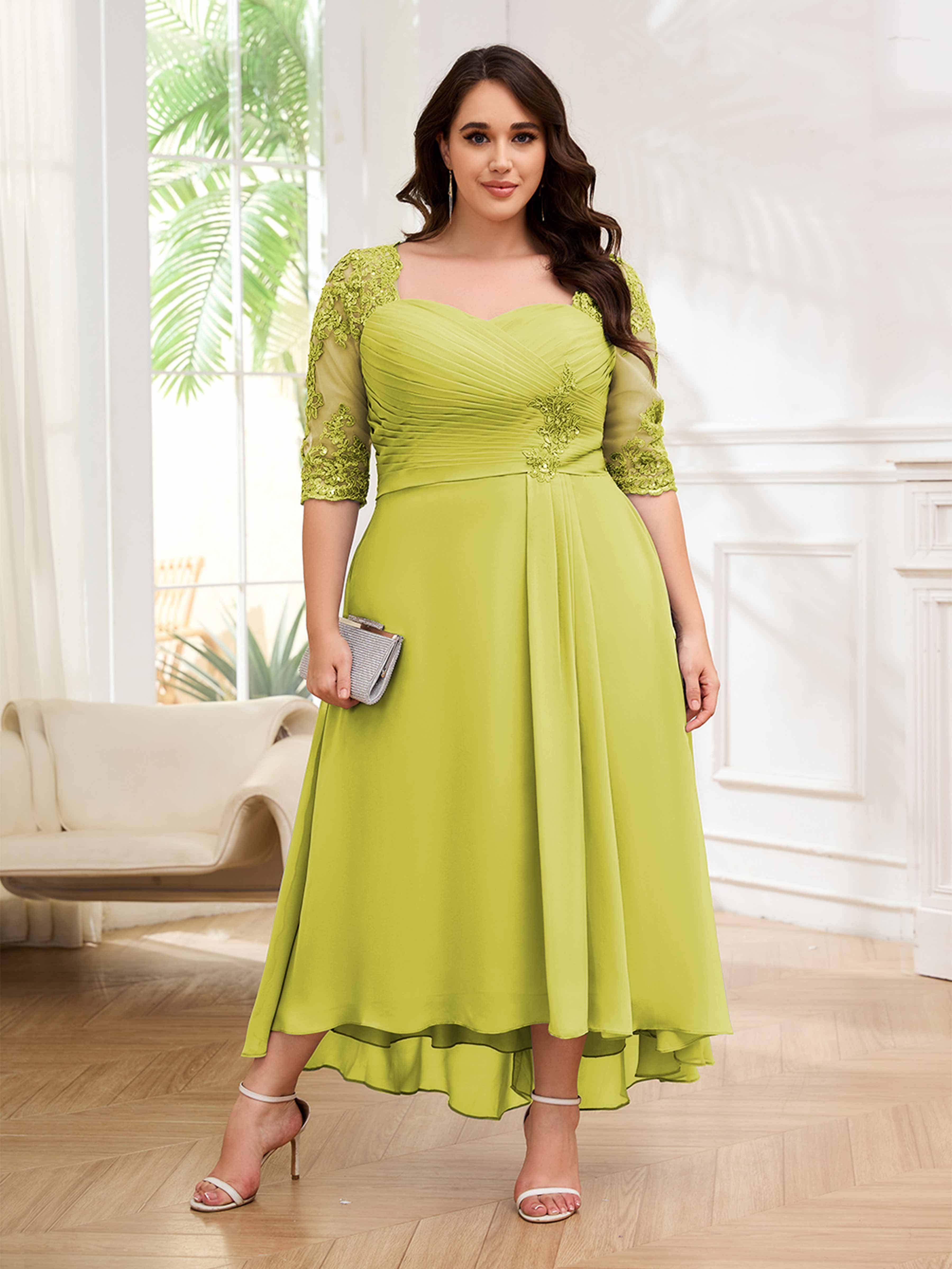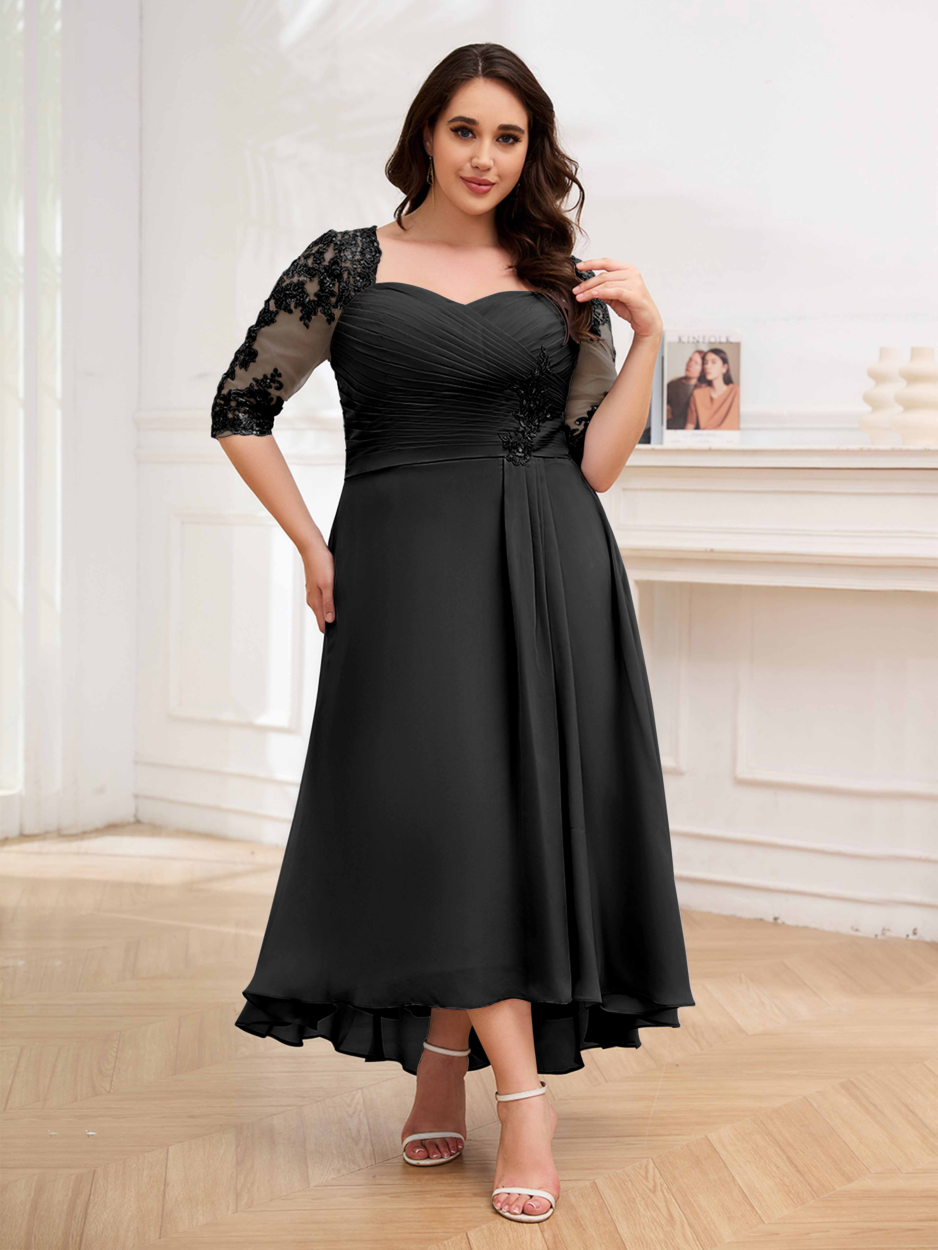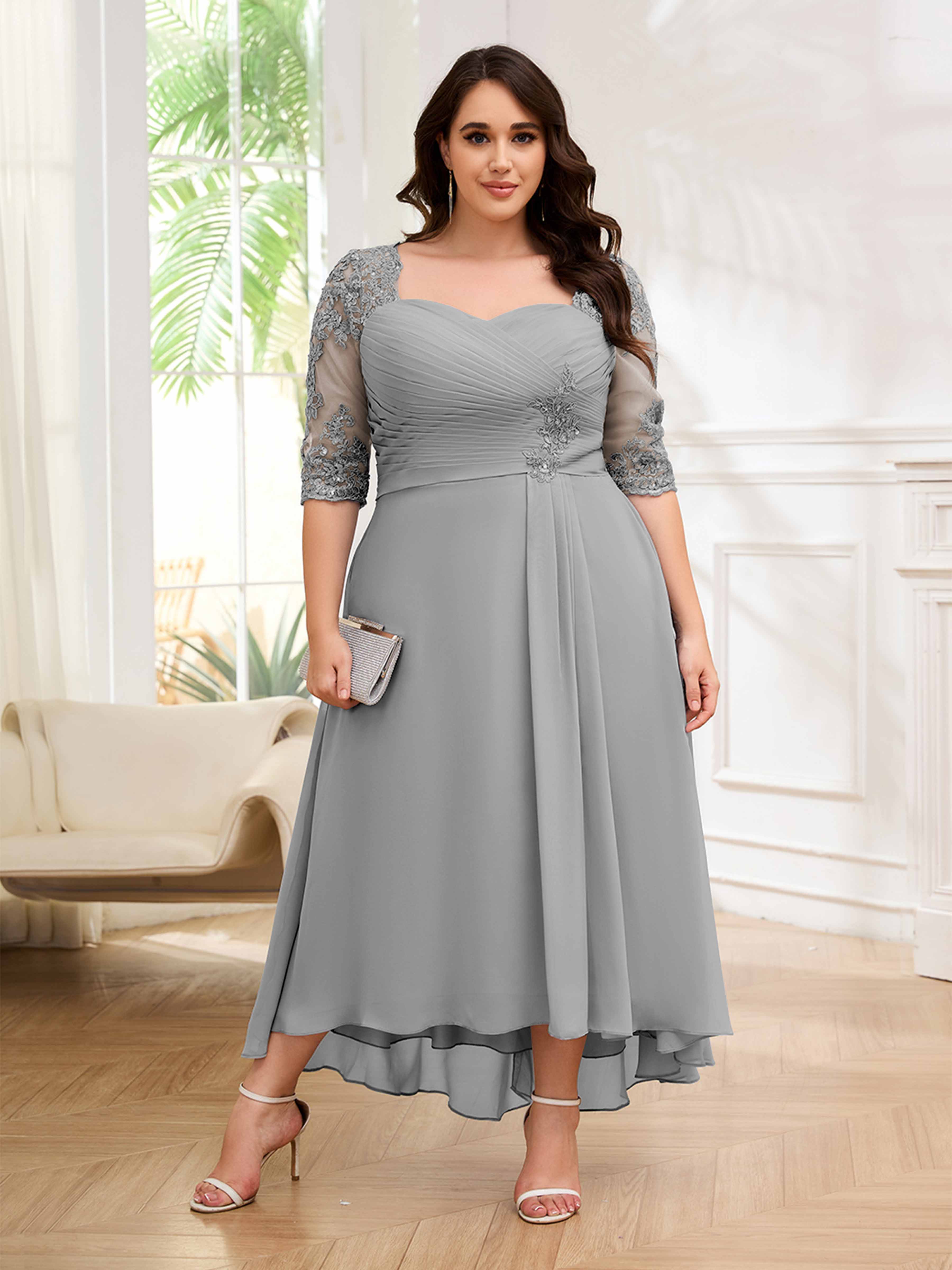 Amalia Elegant Ruched Keyhole Appliques Chiffon Plus Size Mother of the Bride Dresses