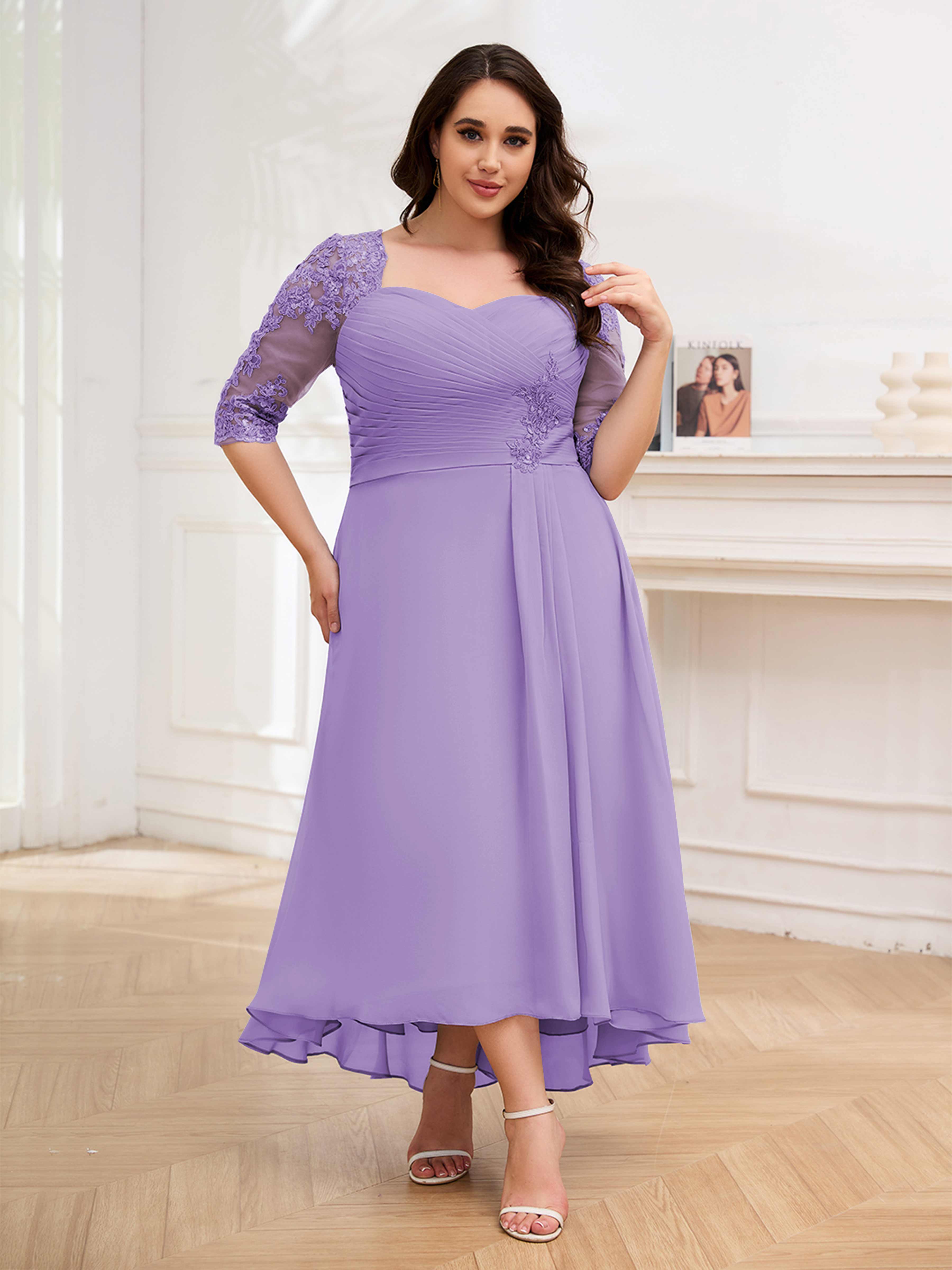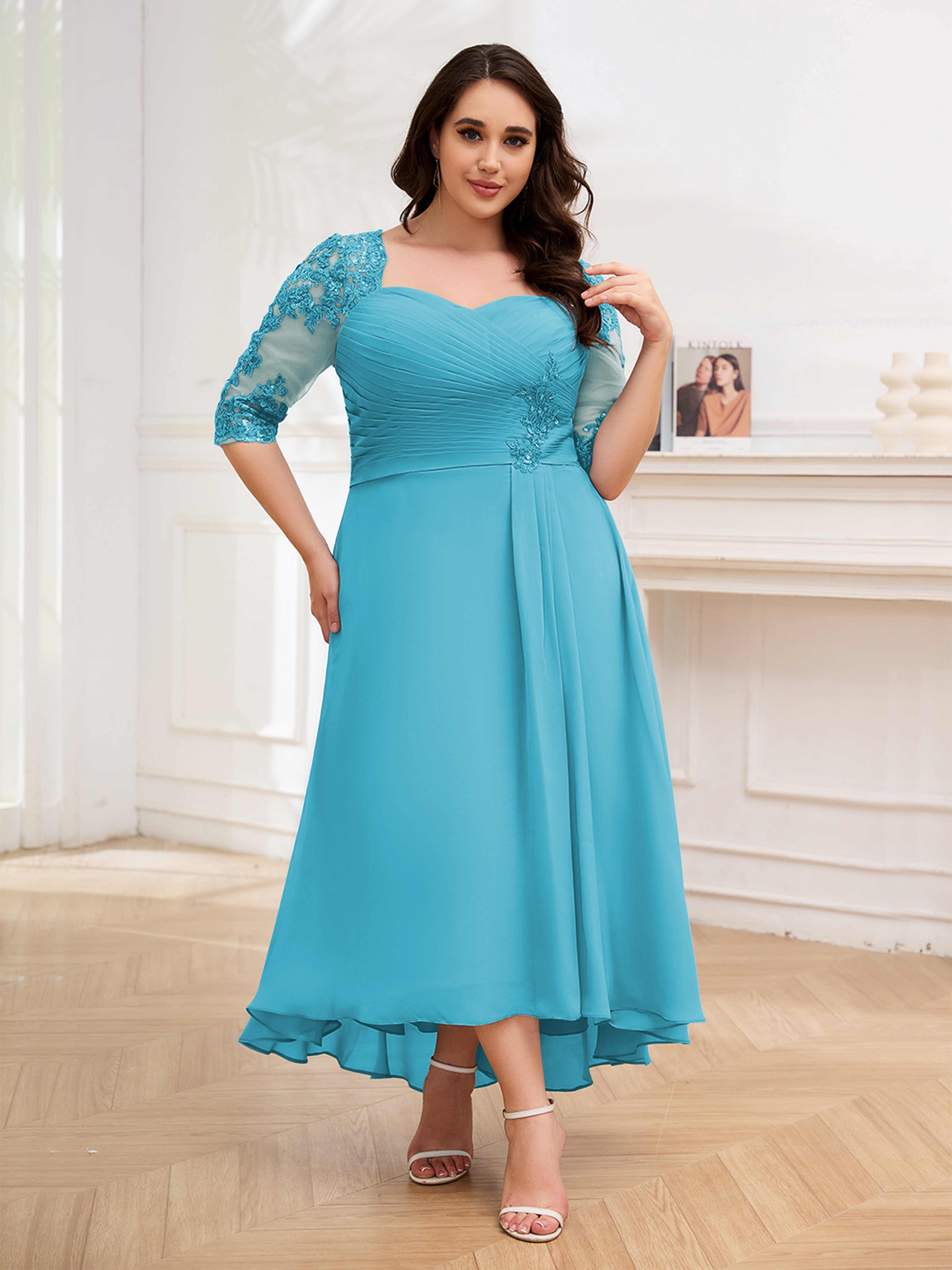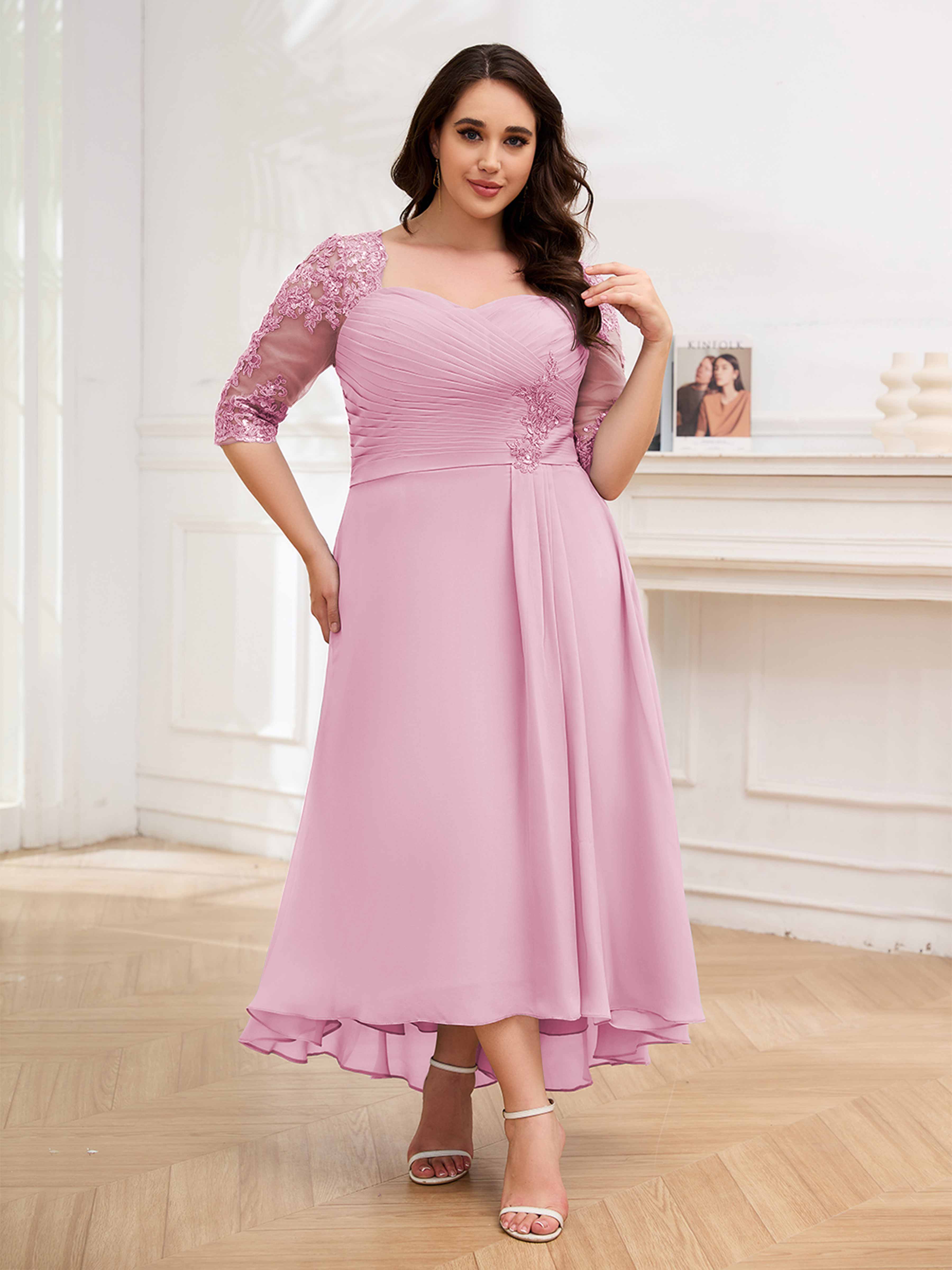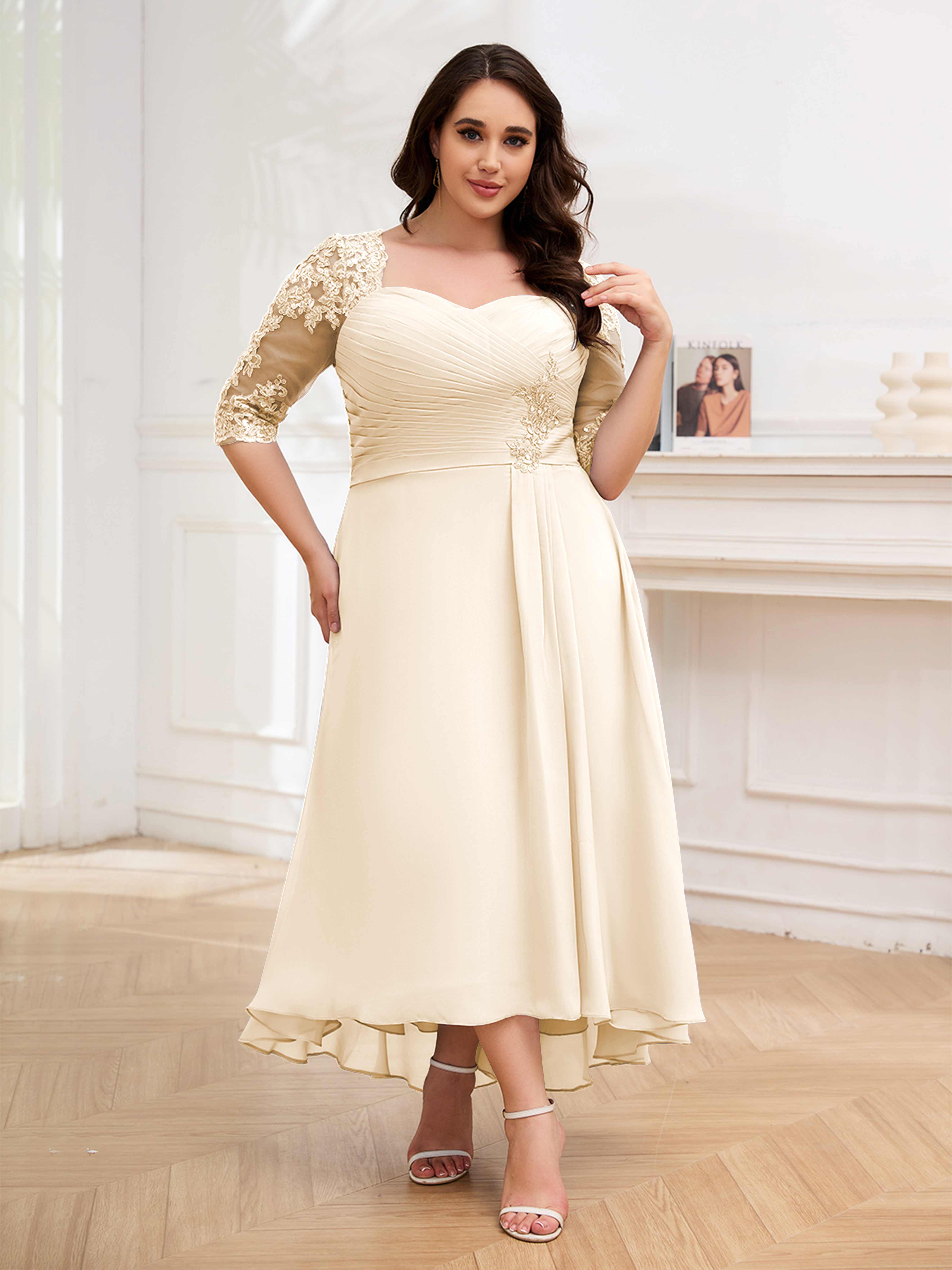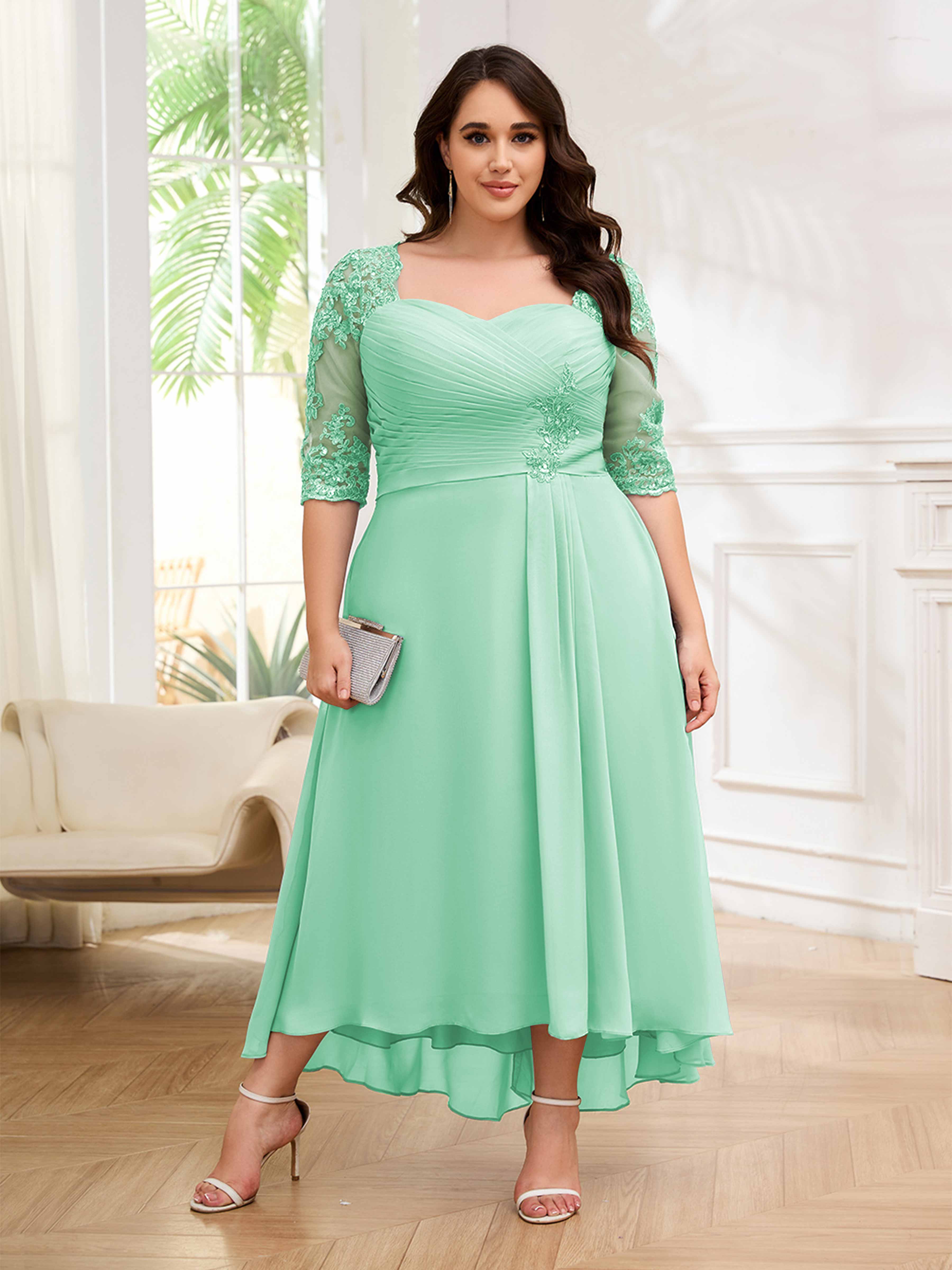 Amalia Elegant Ruched Keyhole Appliques Chiffon Plus Size Mother of the Bride Dresses