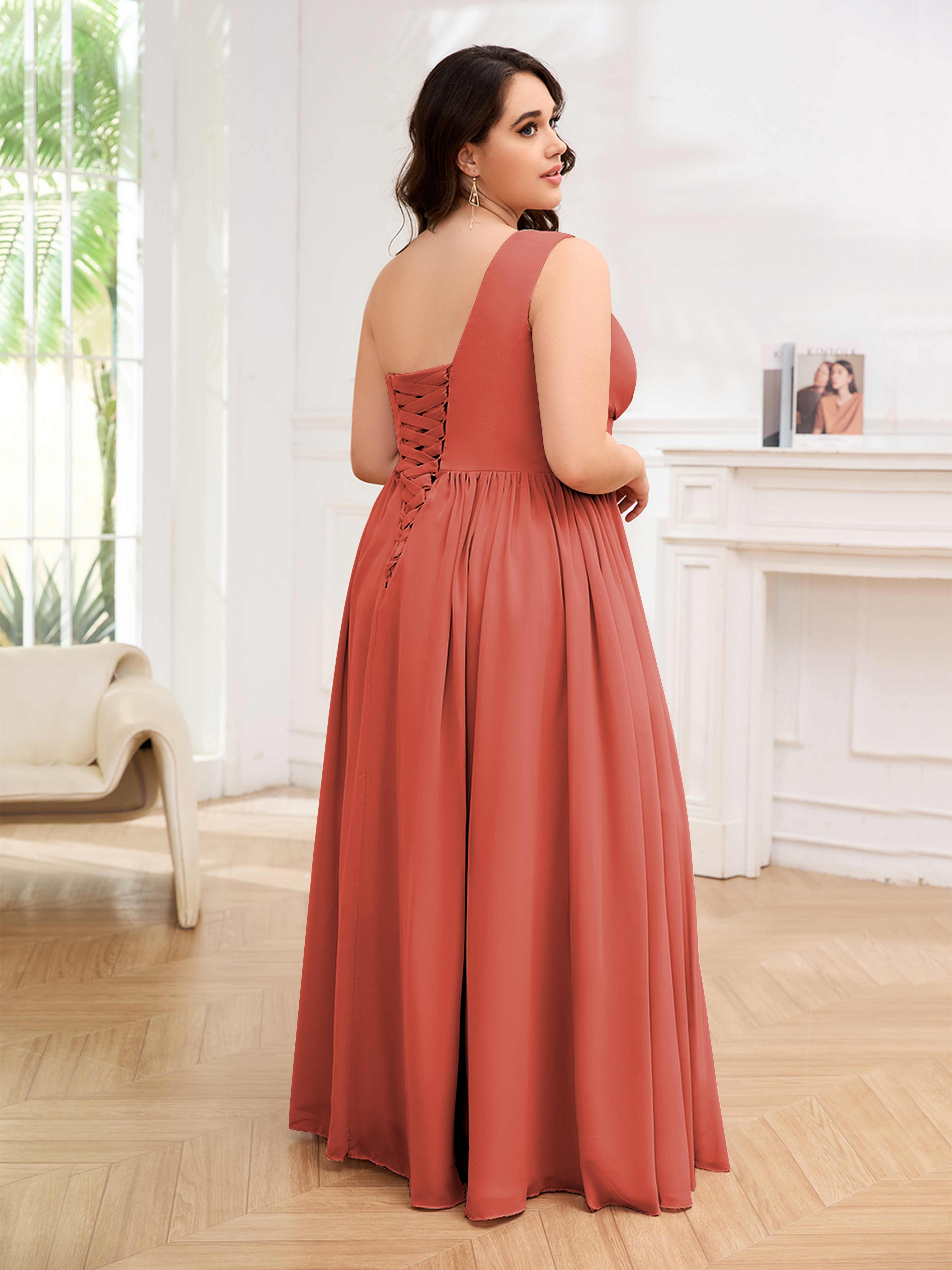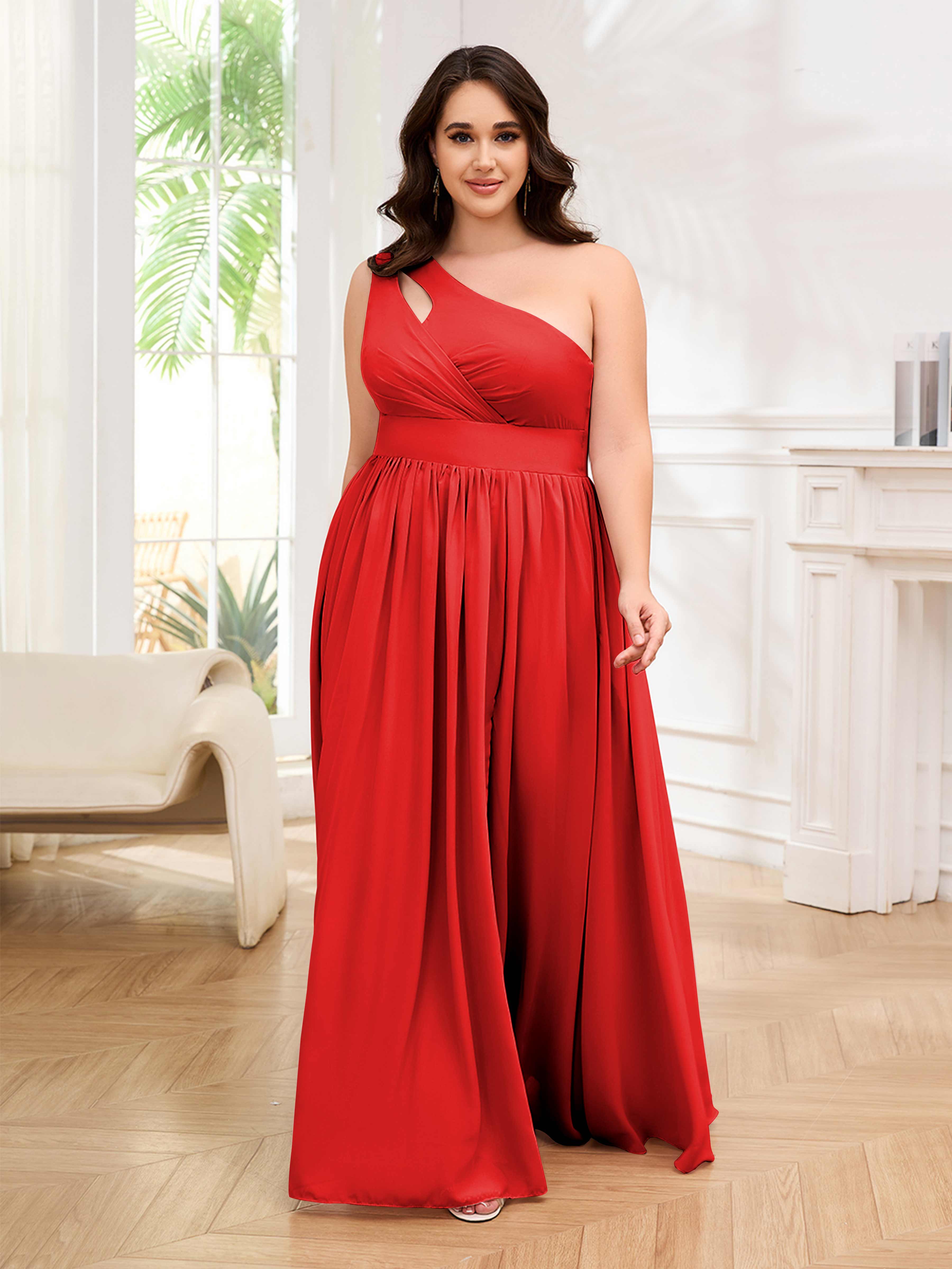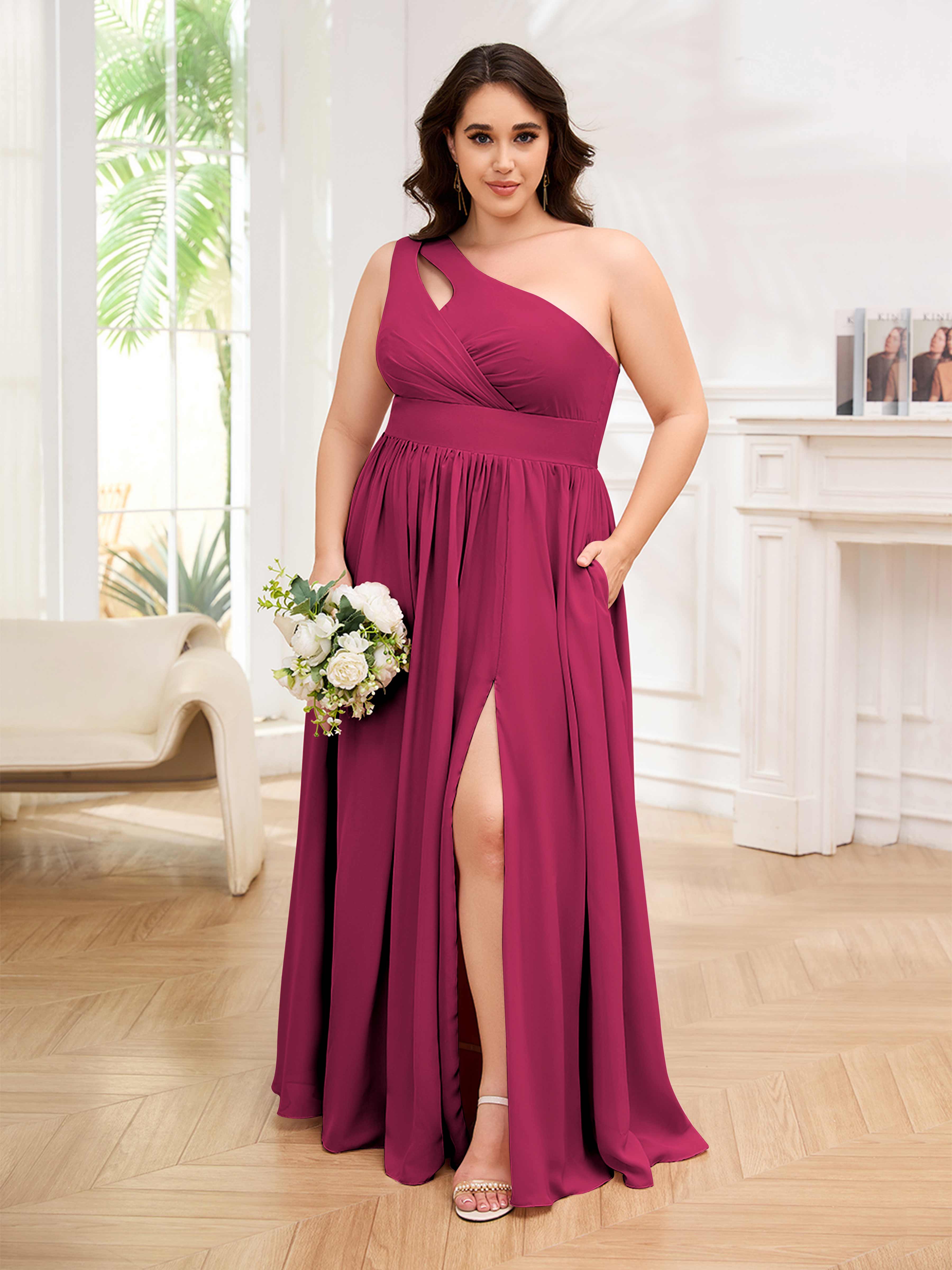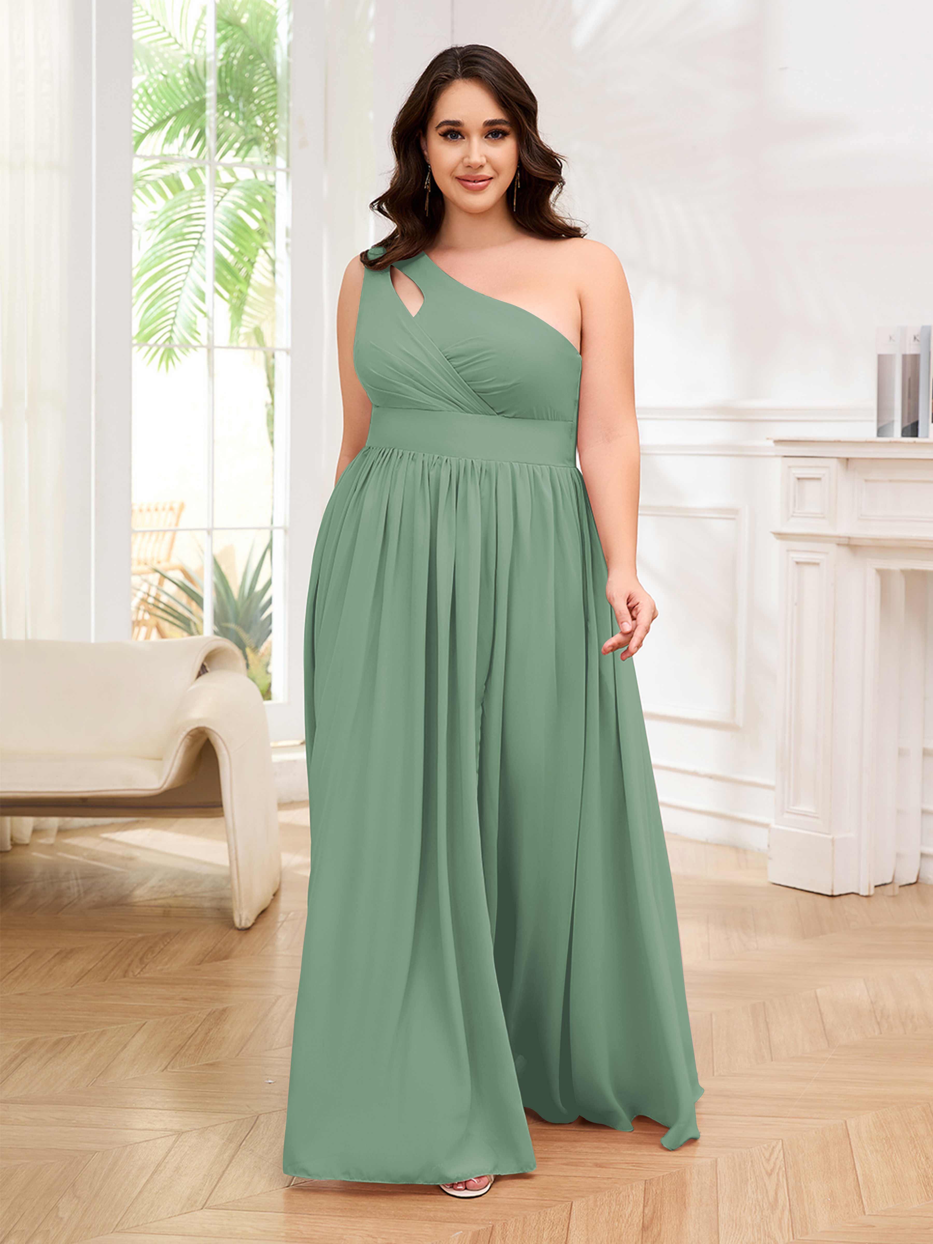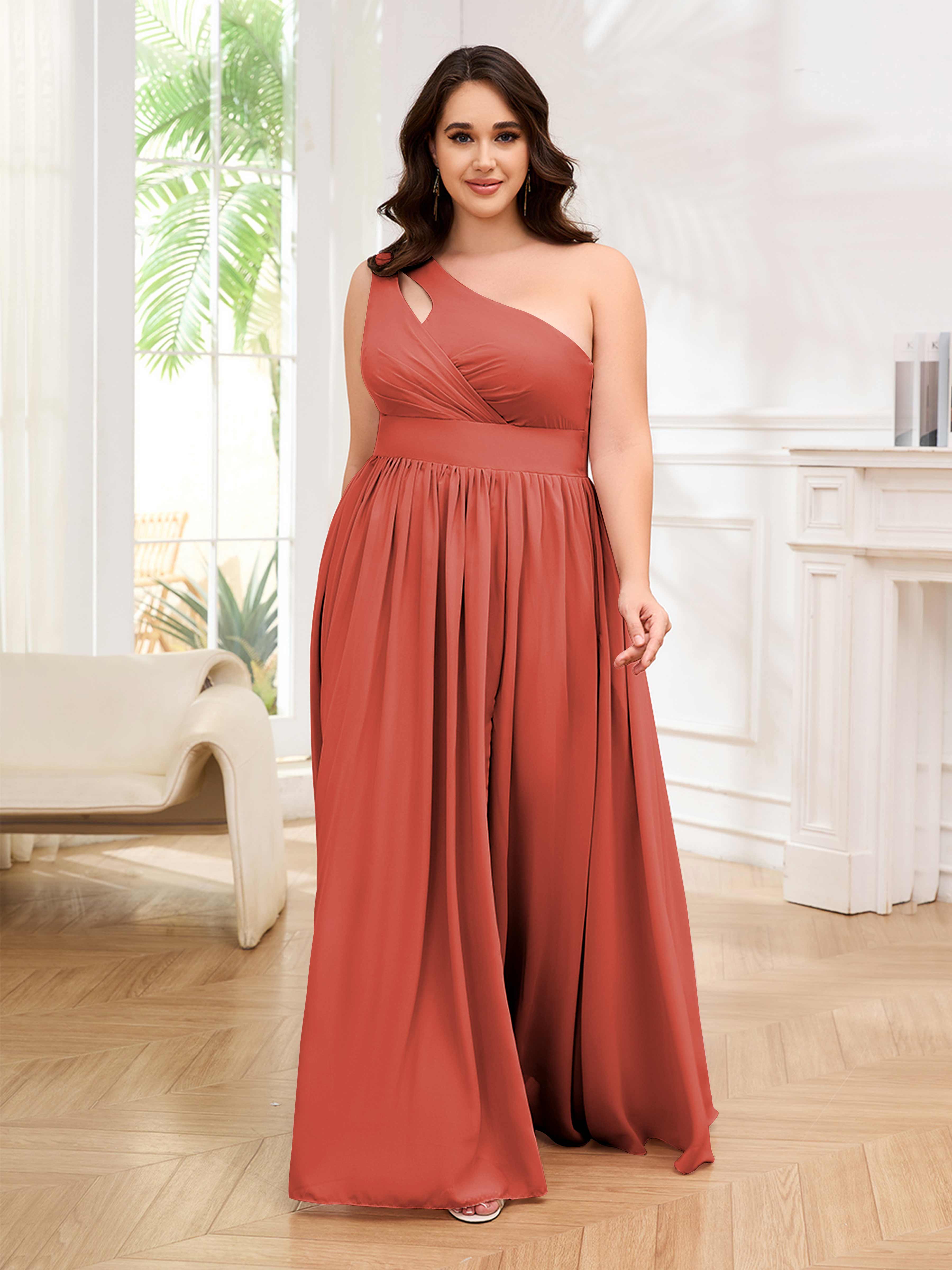 Amber Stylish One Shoulder Pleated Long Plus Size Bridesmaid Dresses