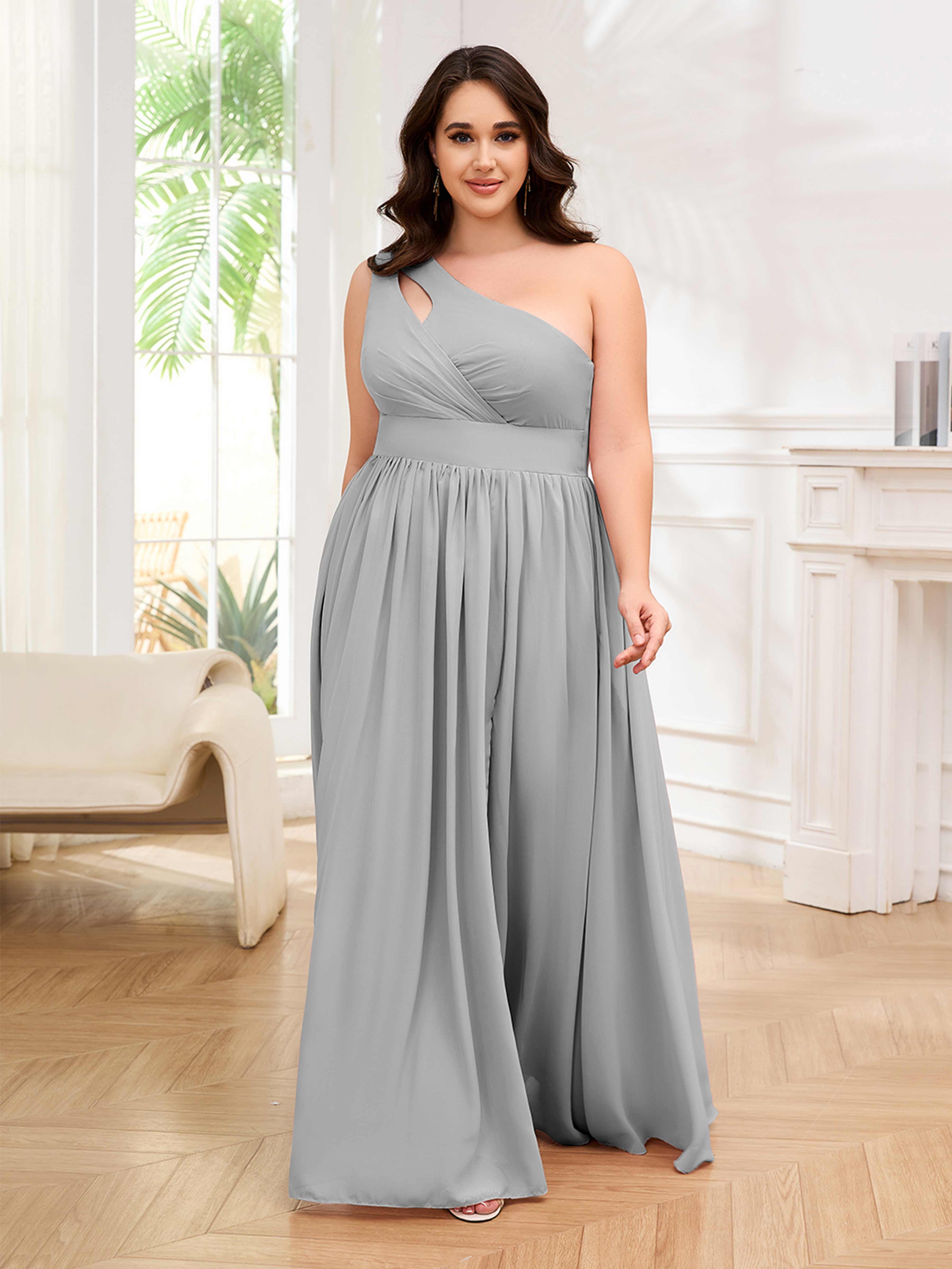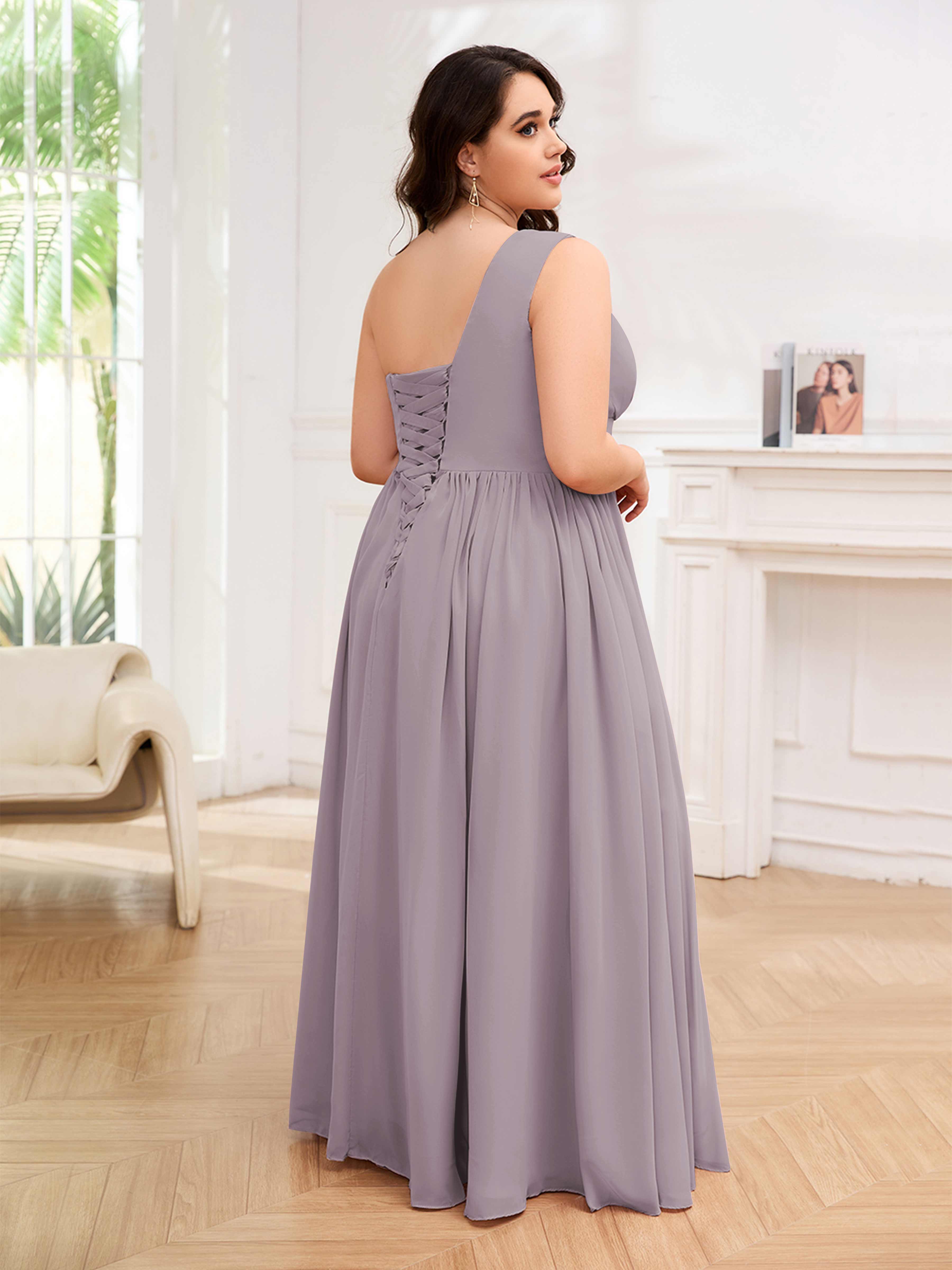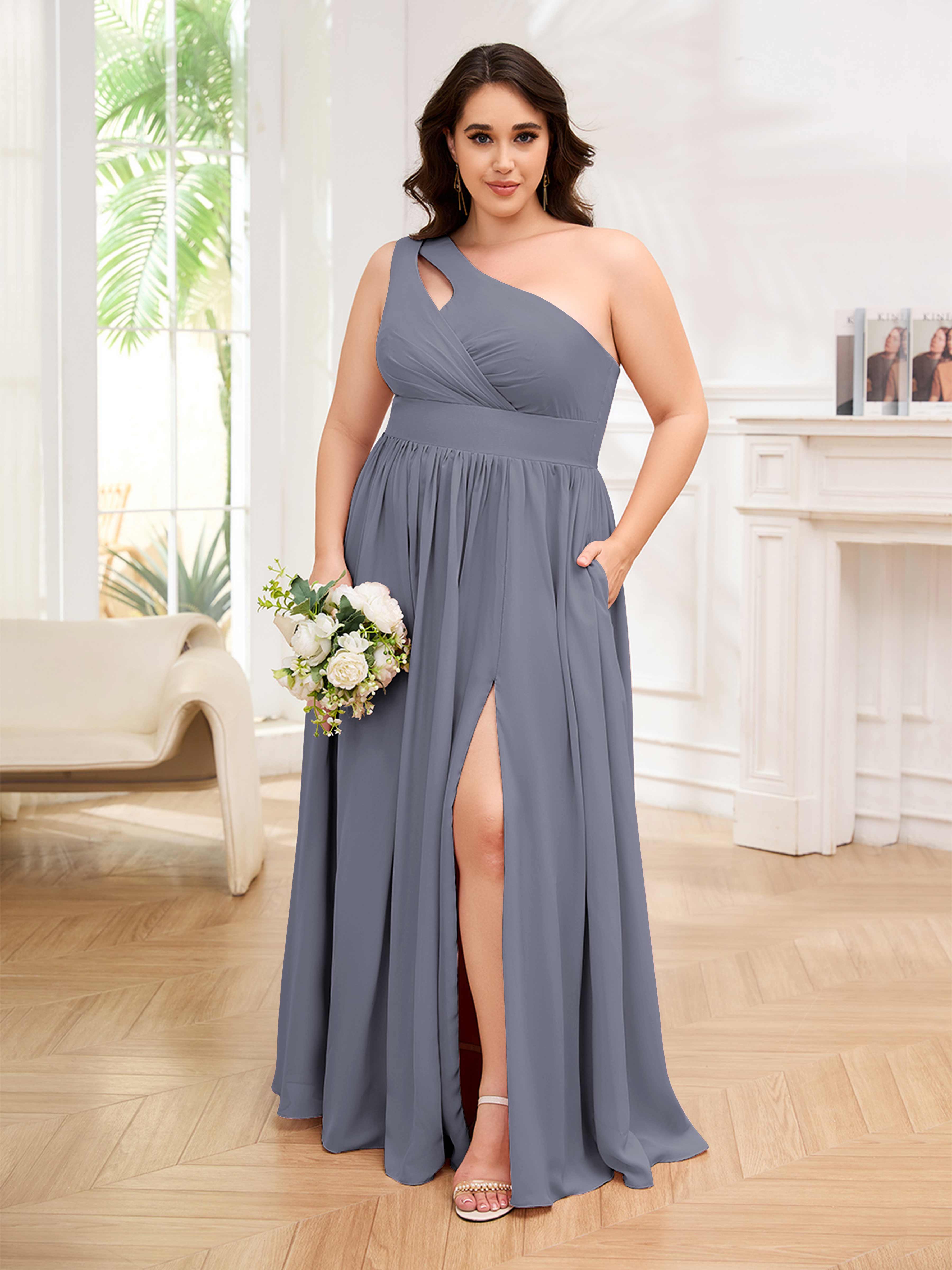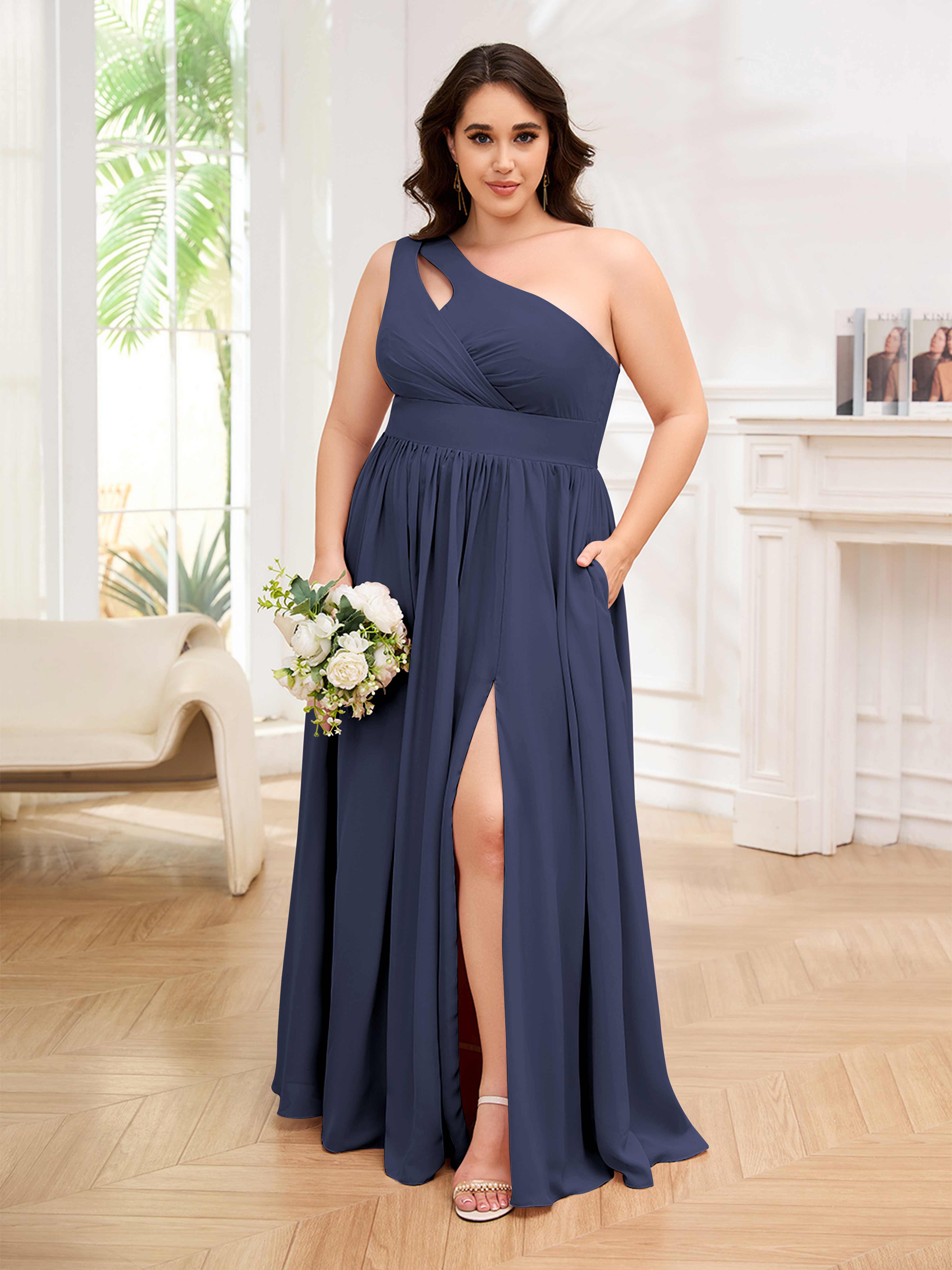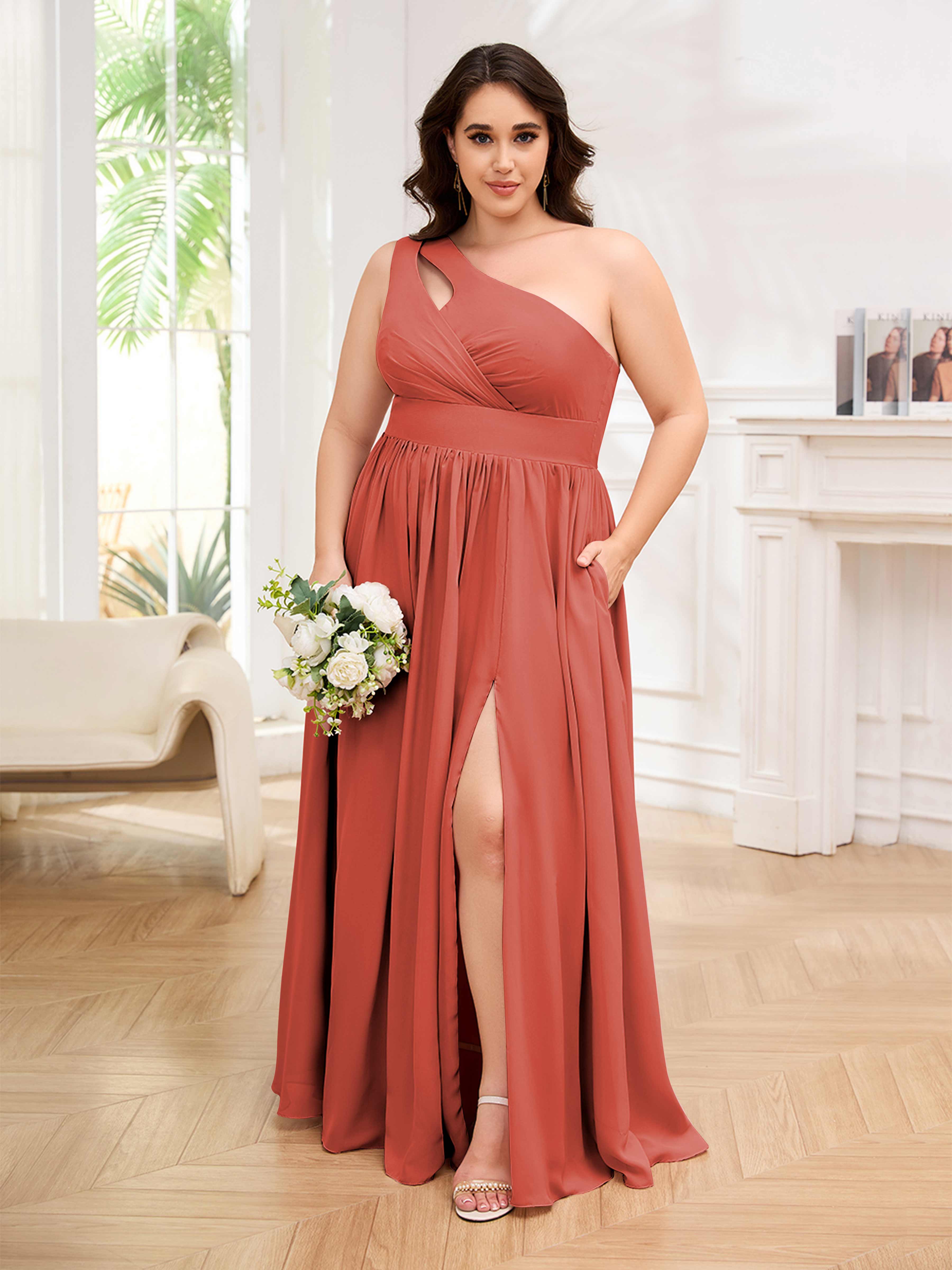 Amber Stylish One Shoulder Pleated Long Plus Size Bridesmaid Dresses
