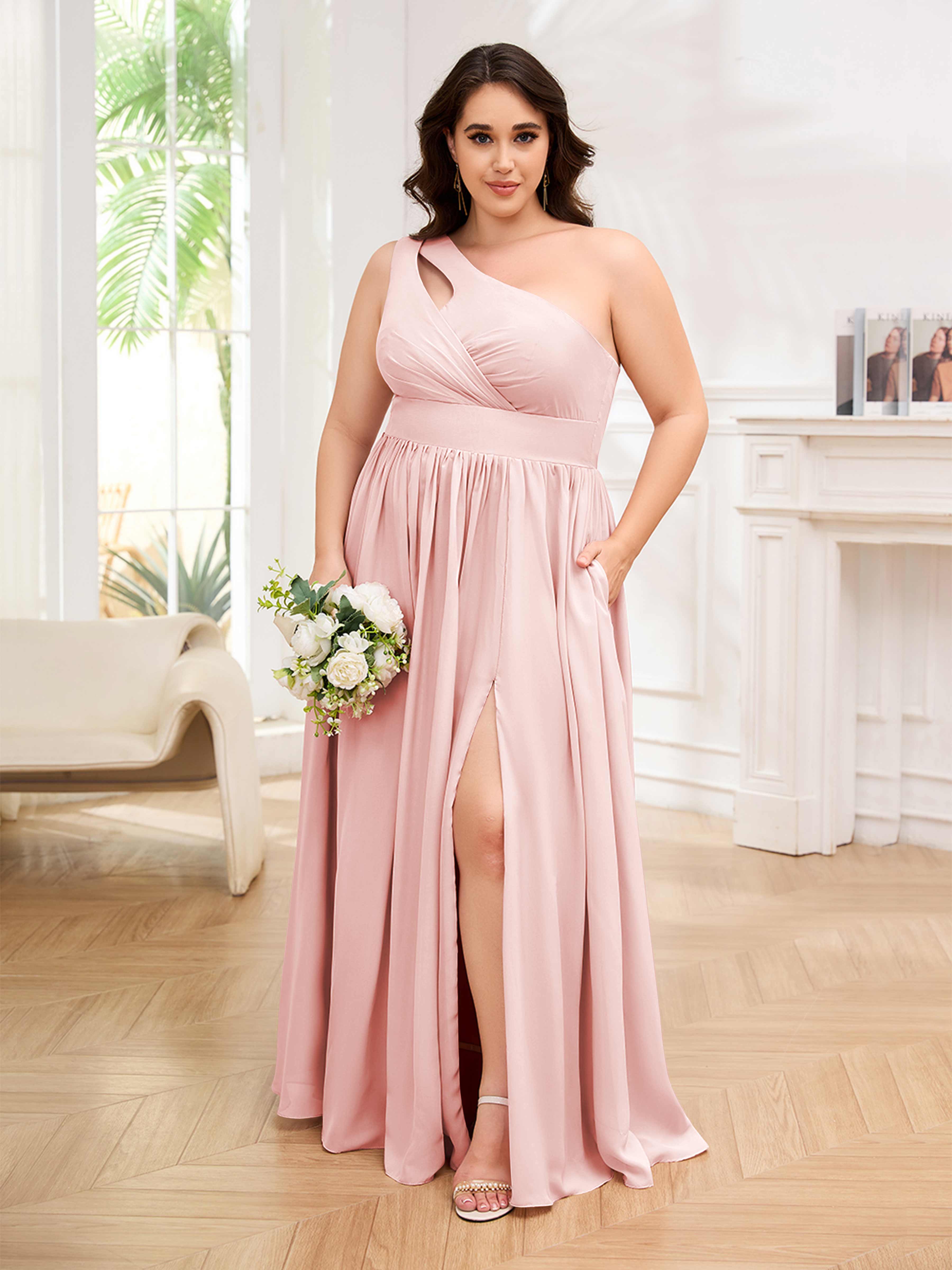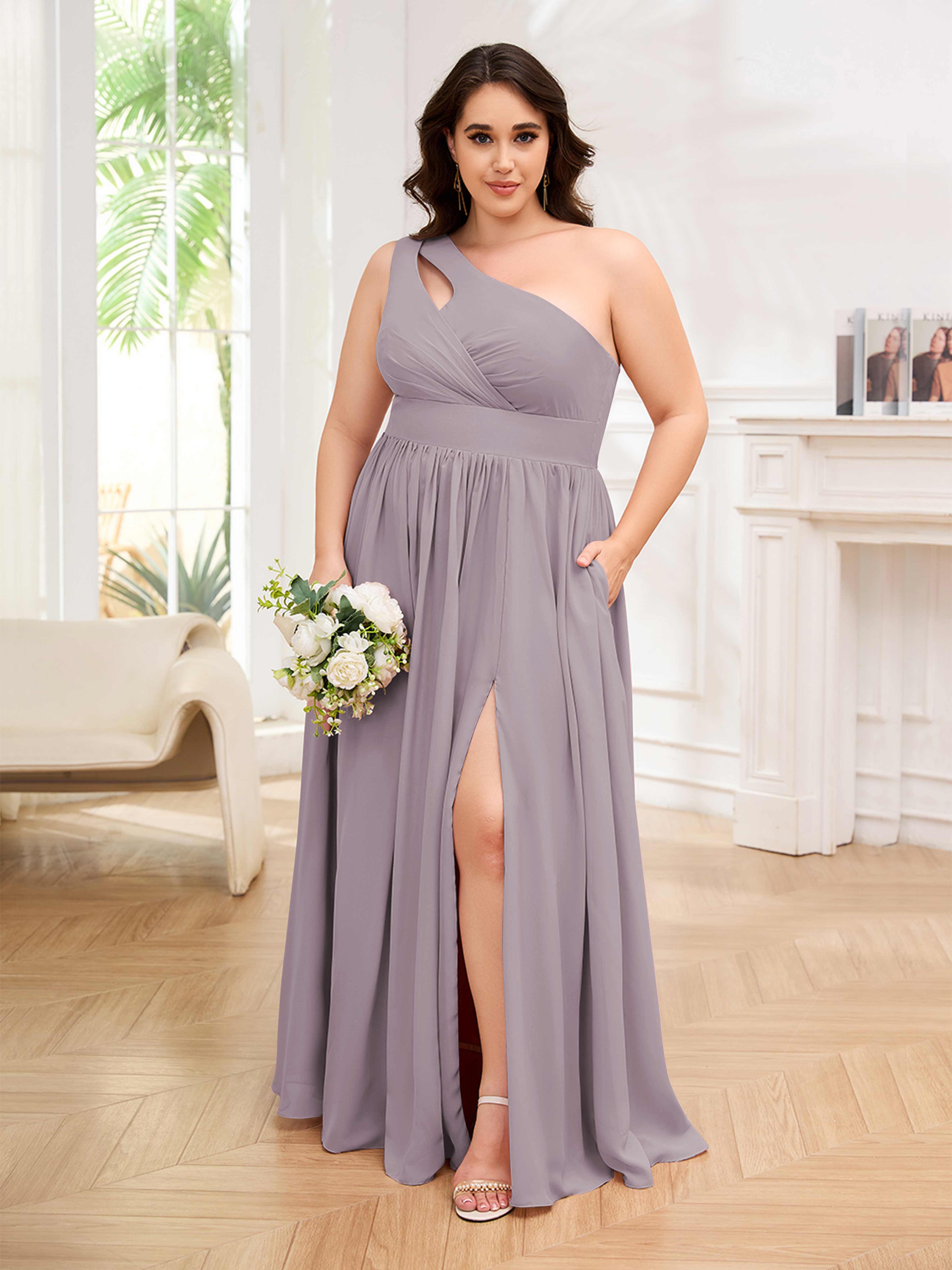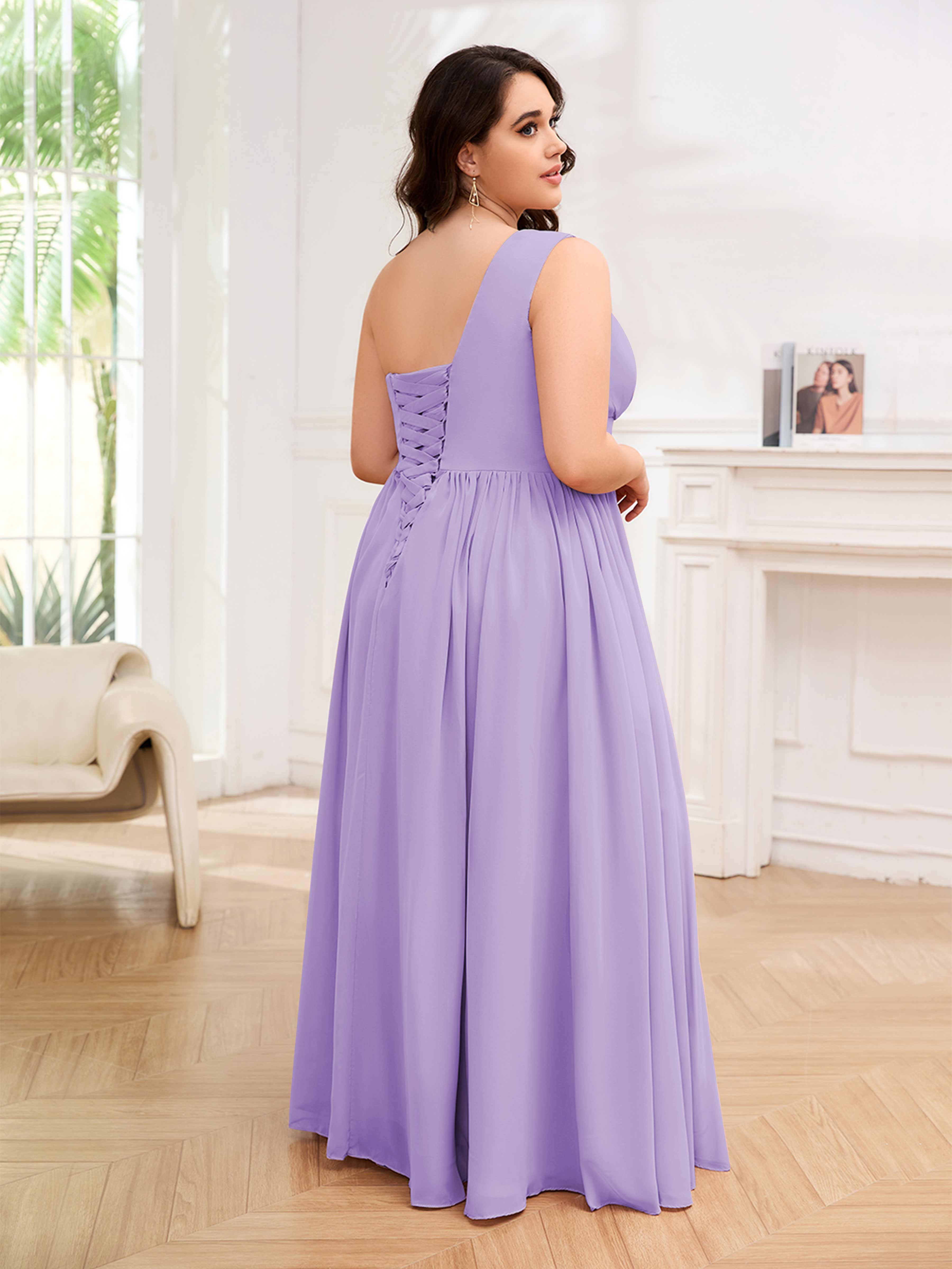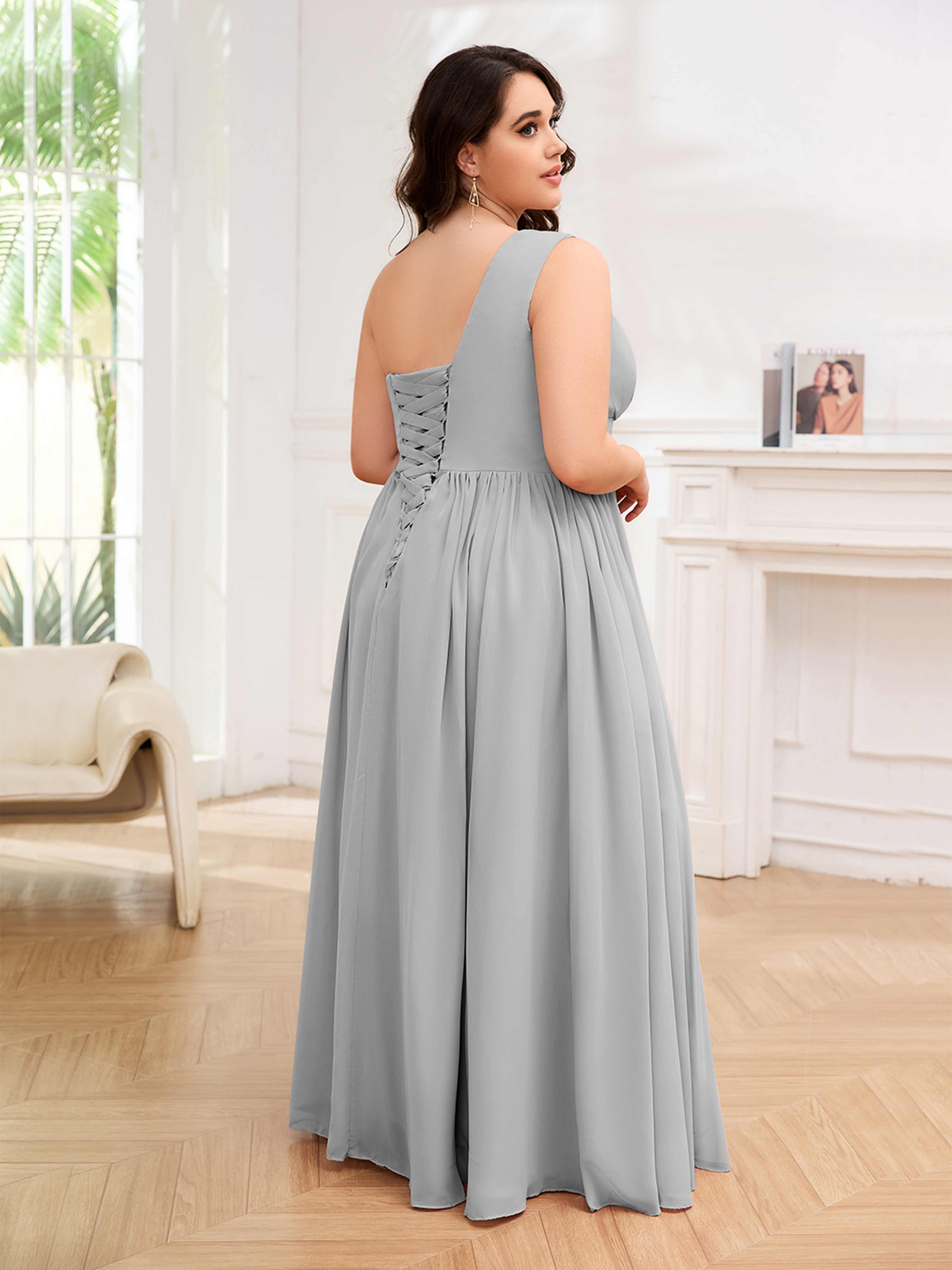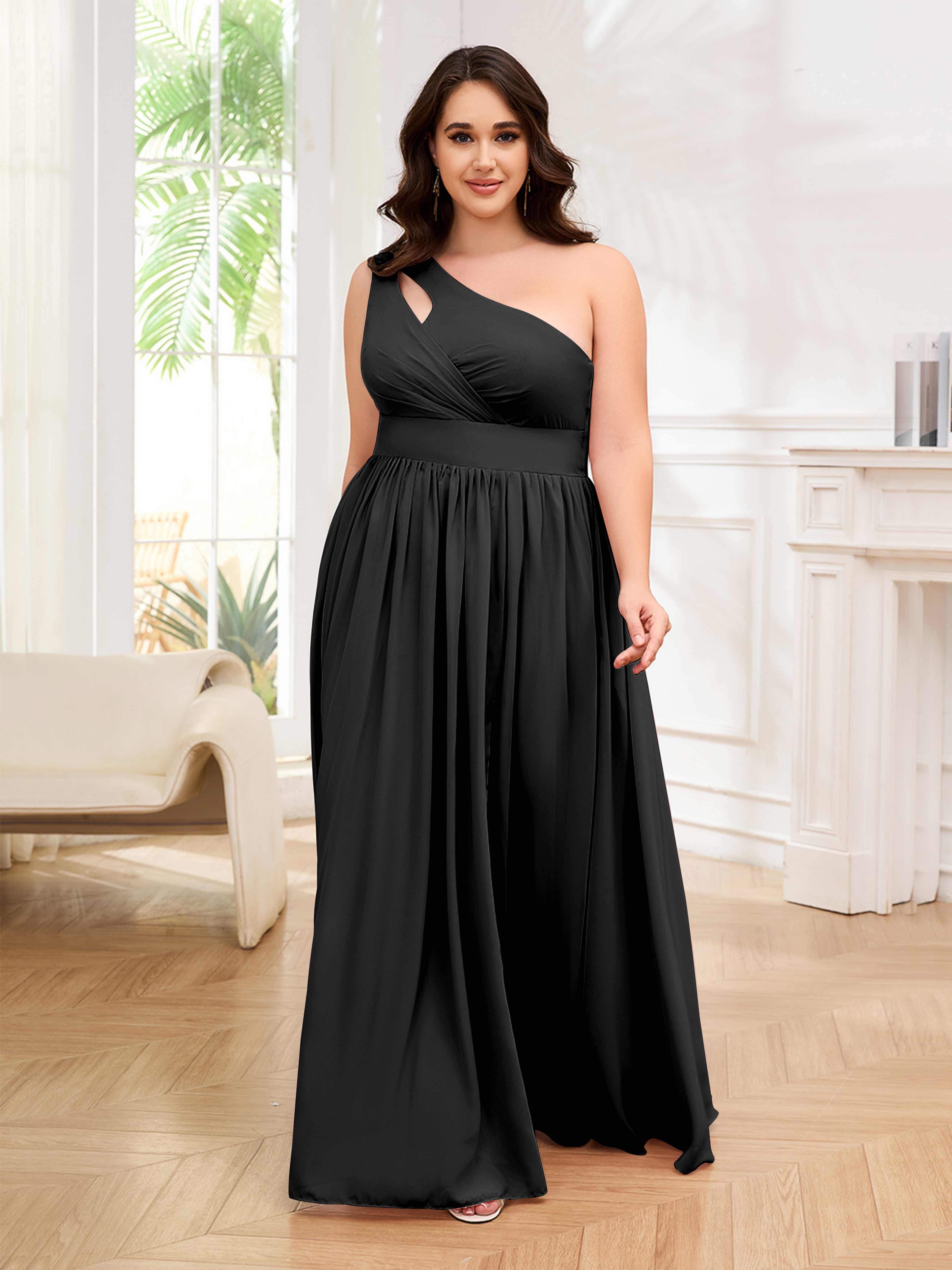 Amber Stylish One Shoulder Pleated Long Plus Size Bridesmaid Dresses