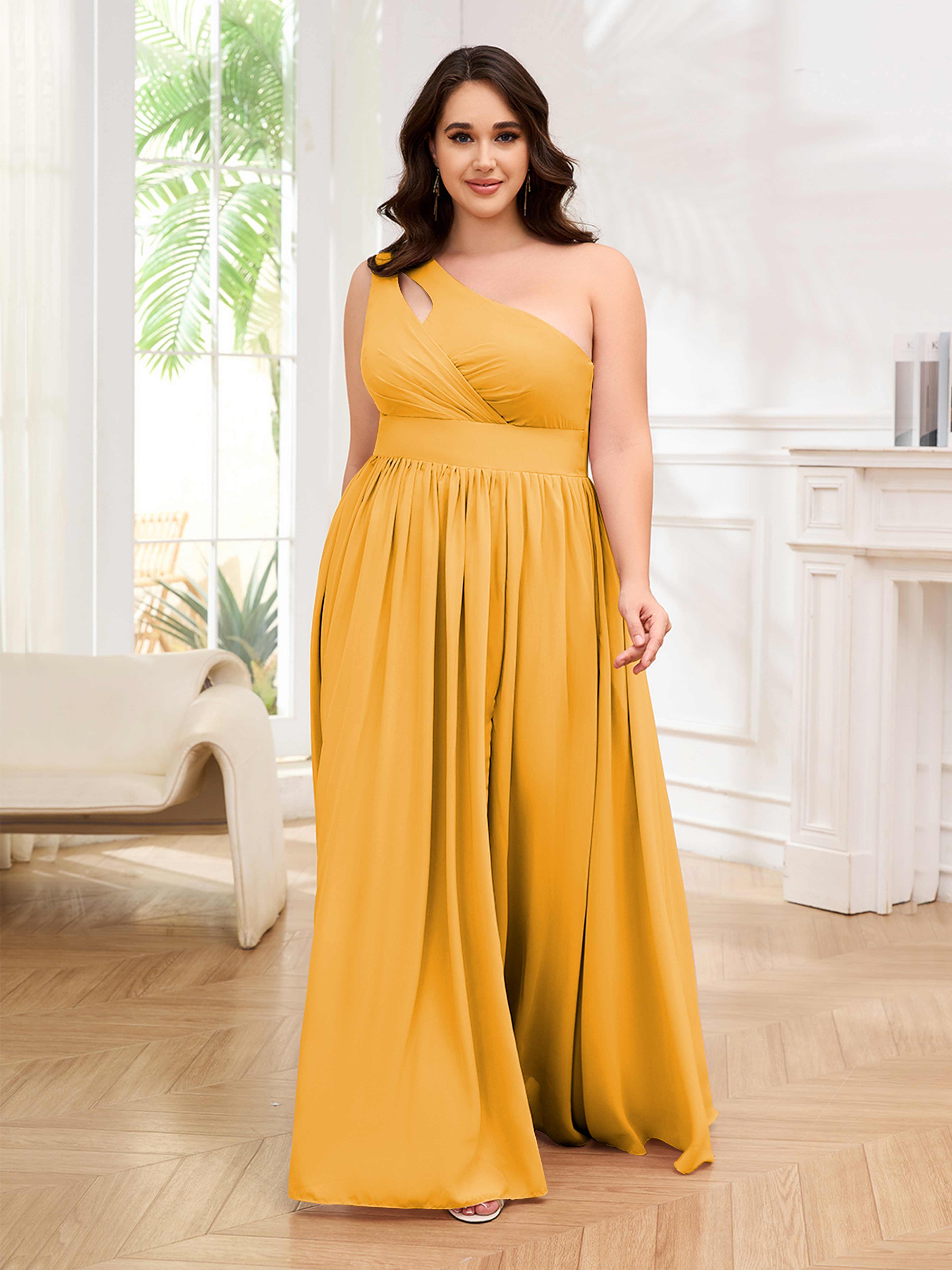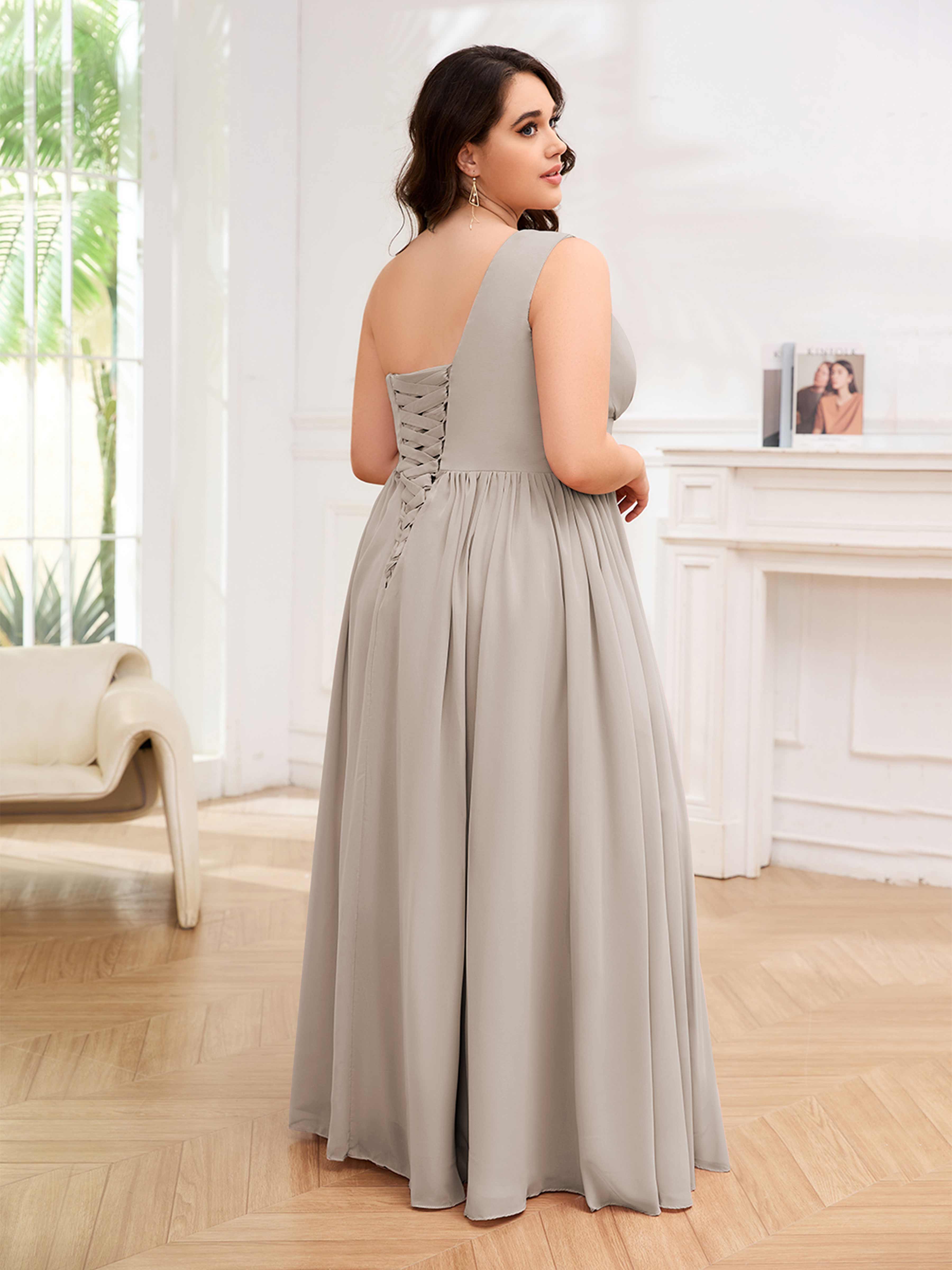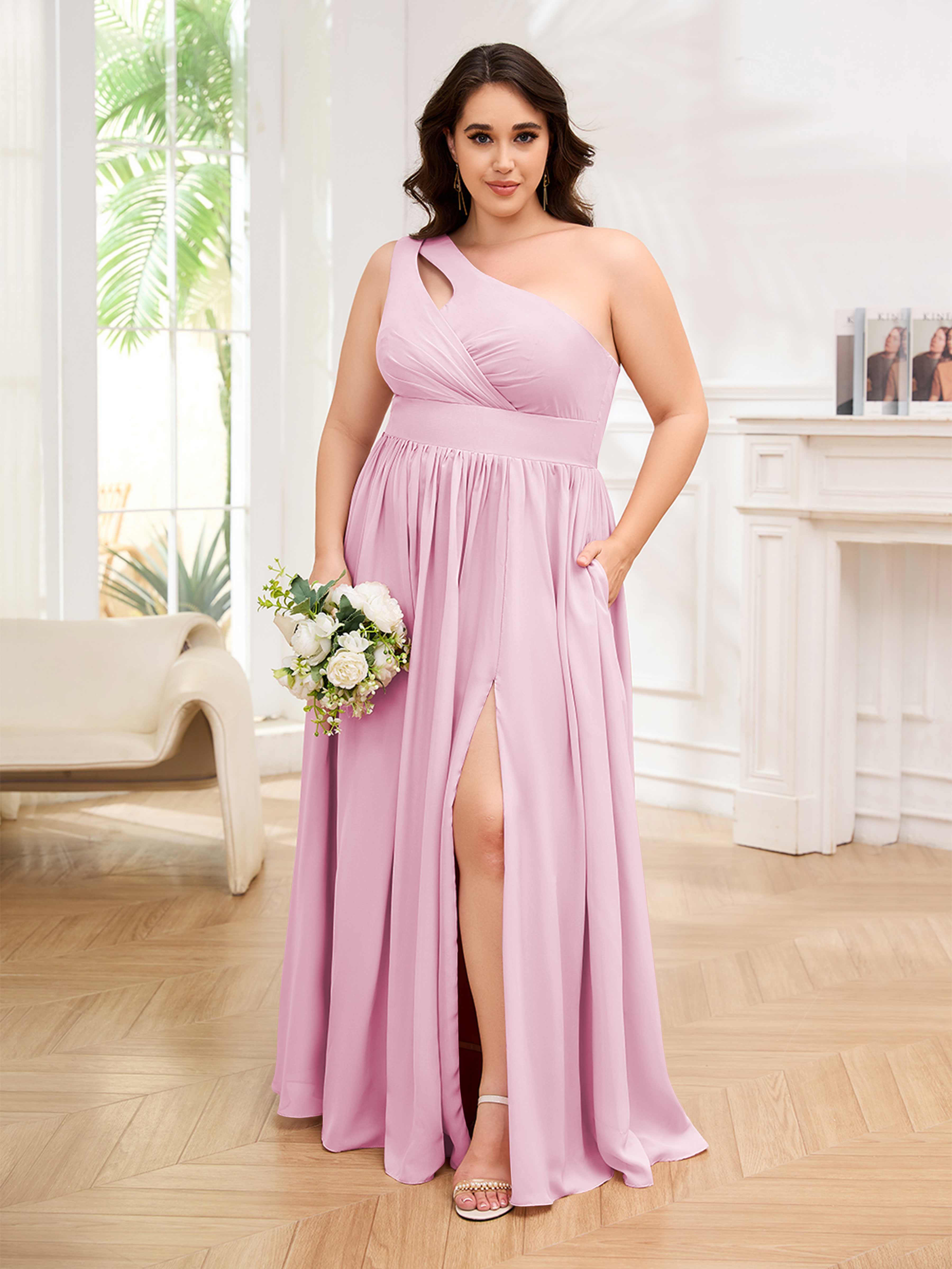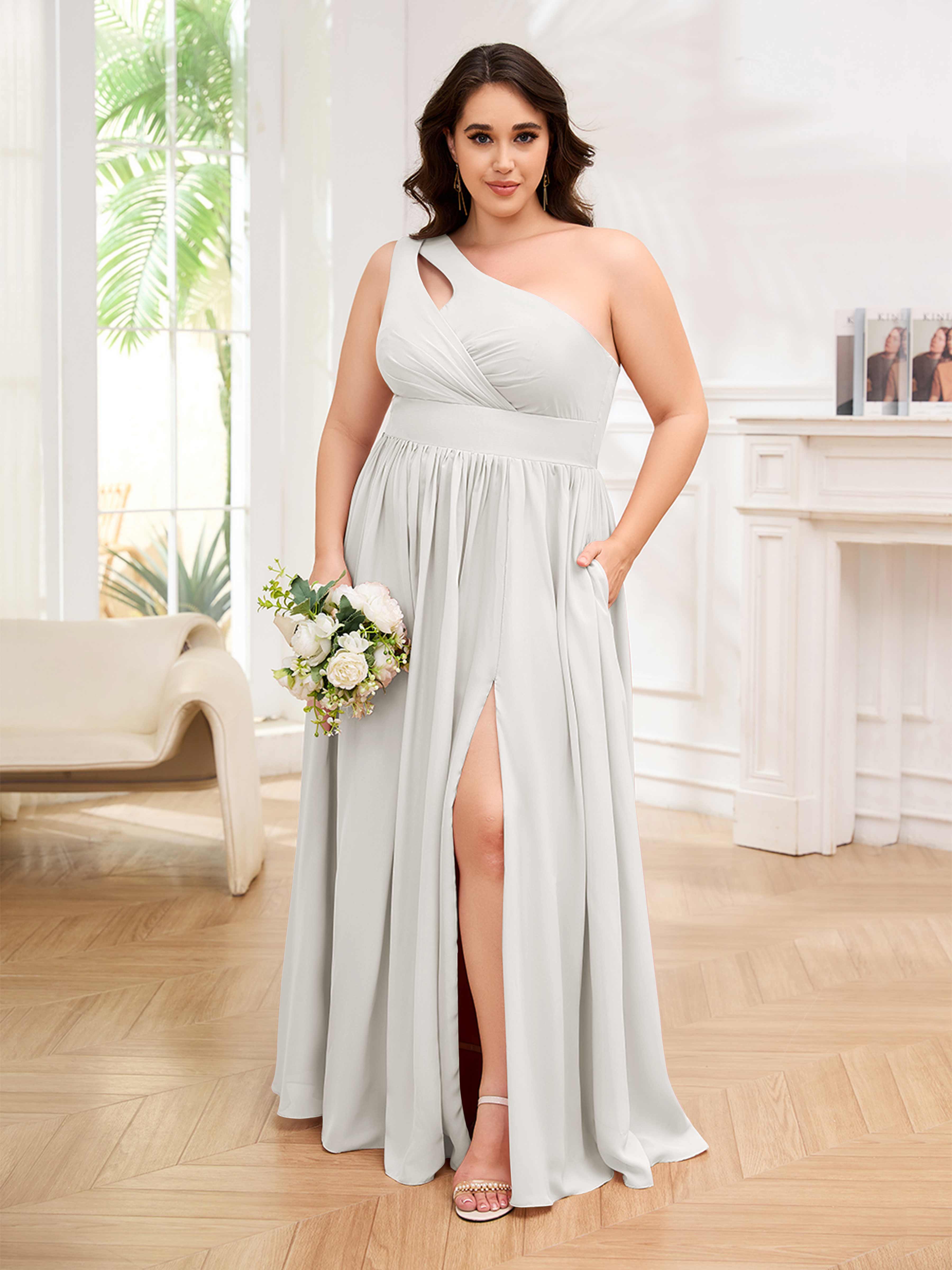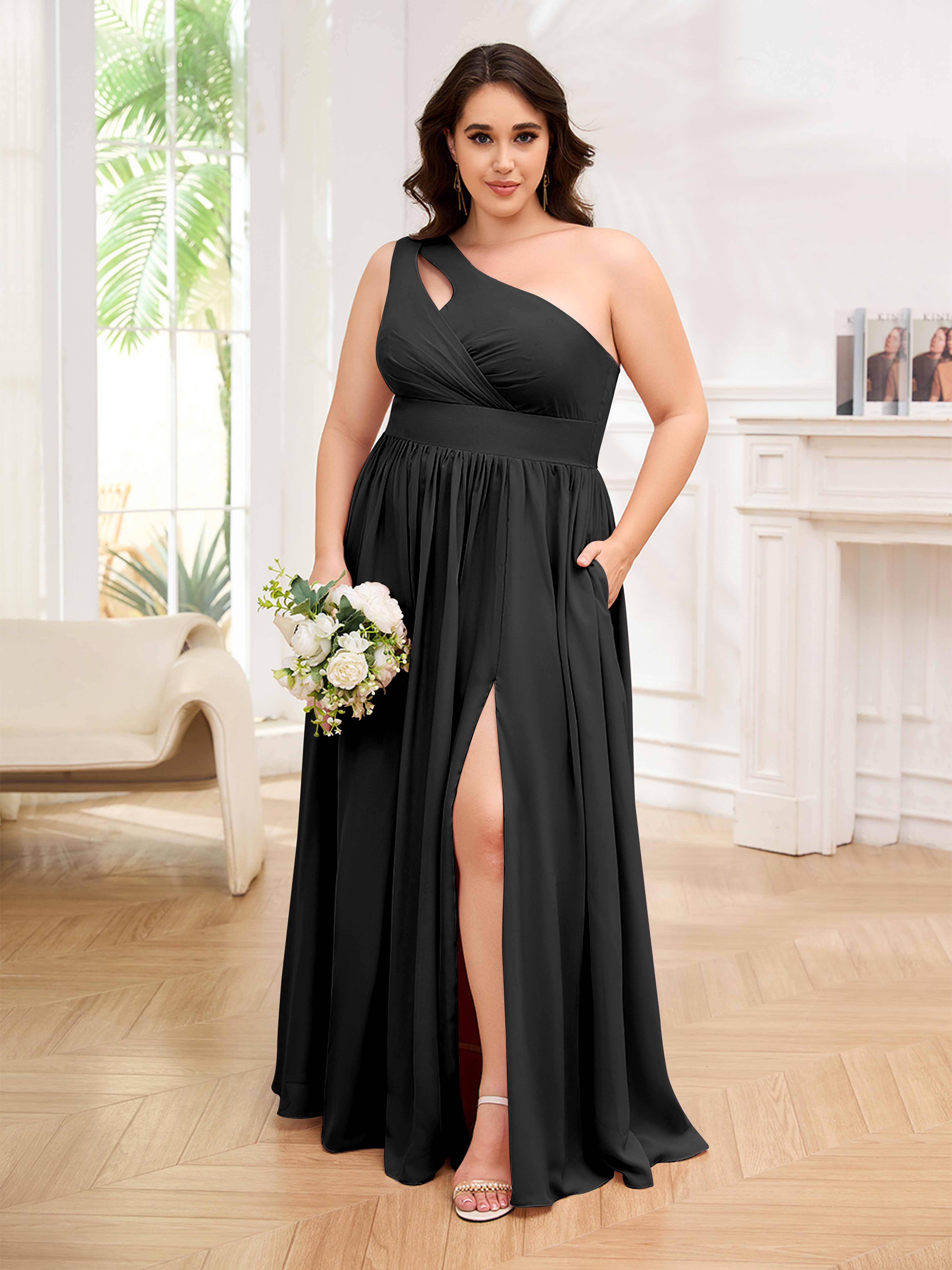 Amber Stylish One Shoulder Pleated Long Plus Size Bridesmaid Dresses