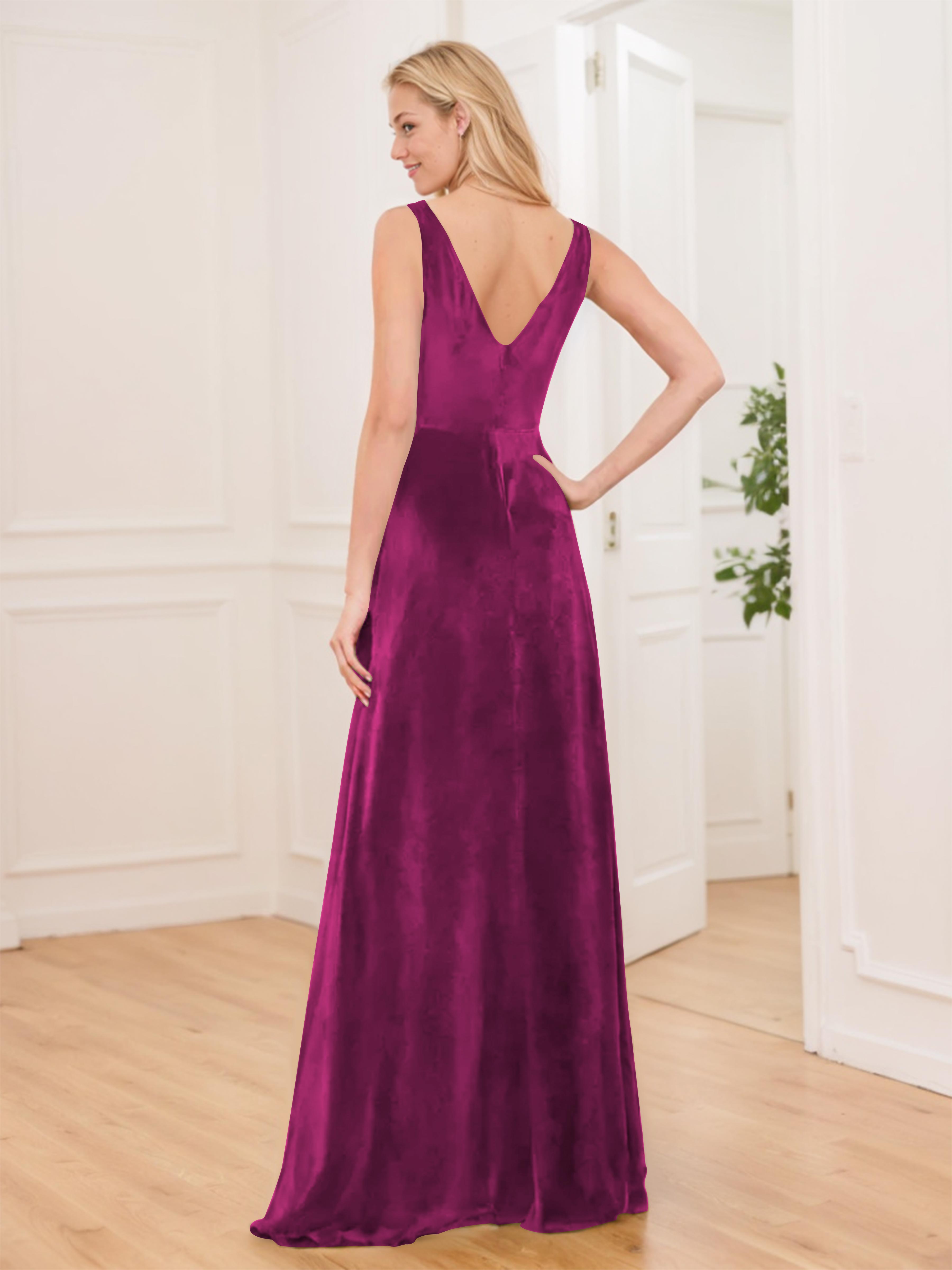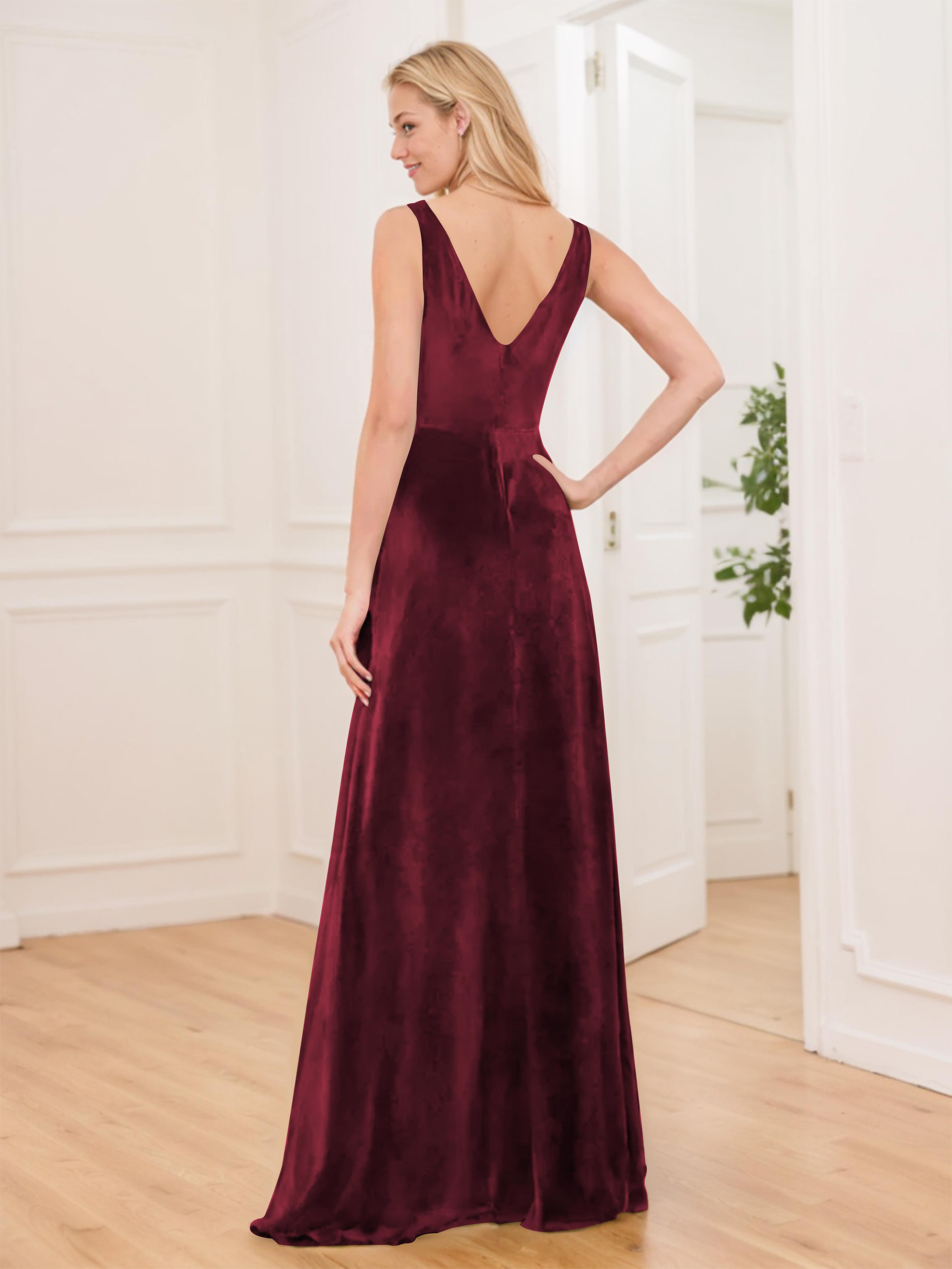 Anne Elegant V Neck Sleeveless Floor Length Velvet Bridesmaid Dresses