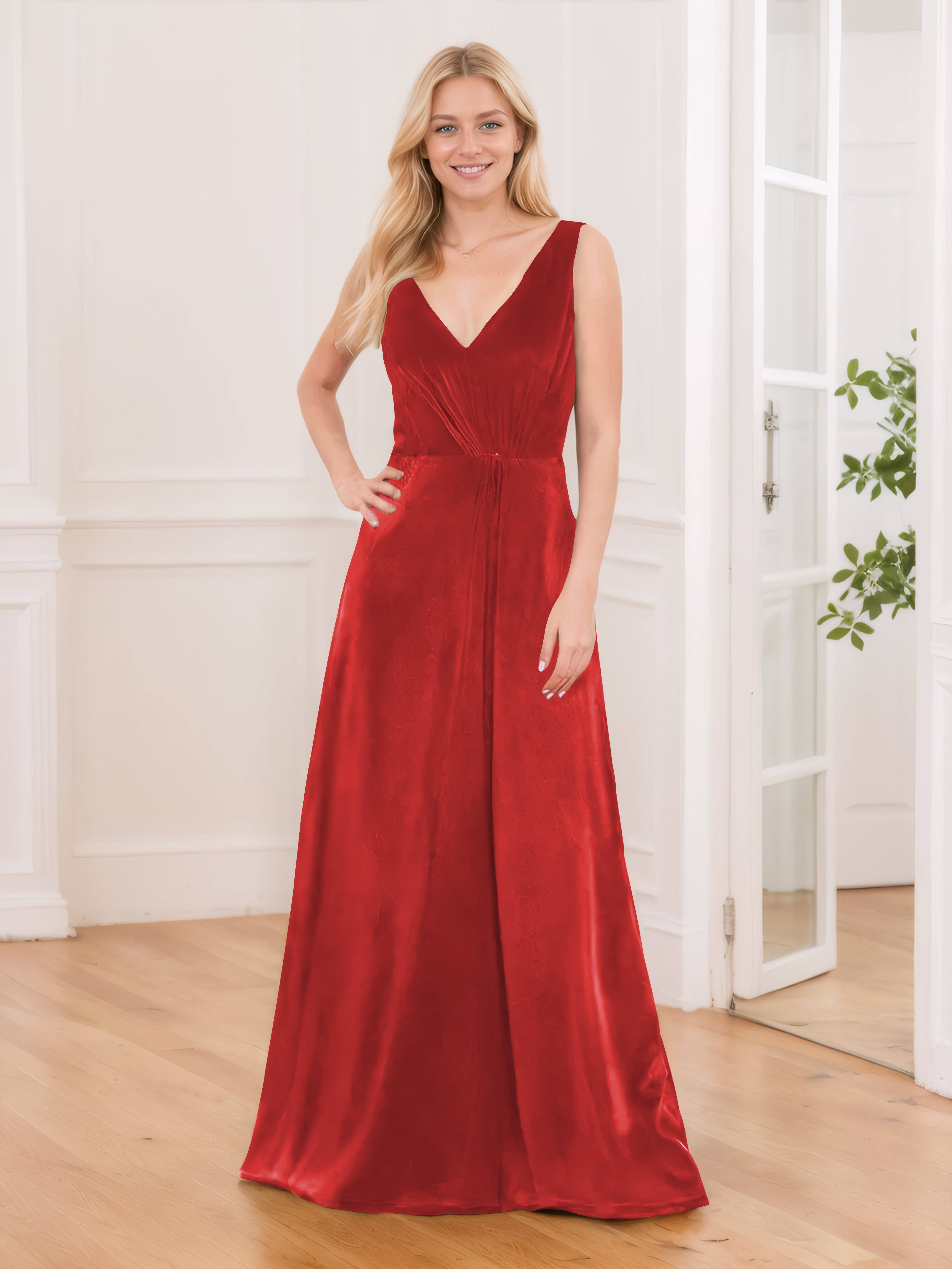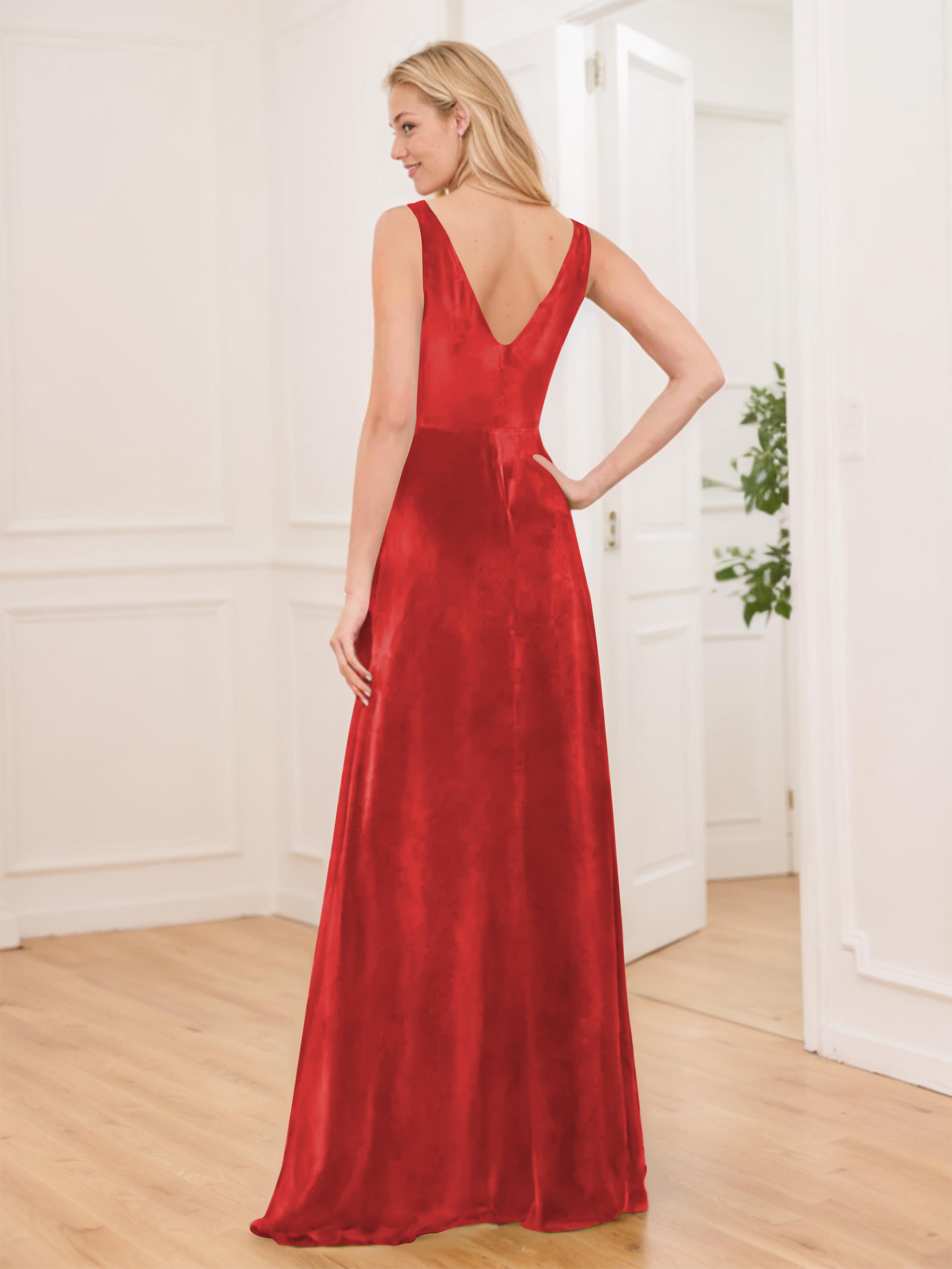 Embrace the thrill in V-Neck Sleeveless Long Velvet Bridesmaid Dresses. The seductive allure of the V-neck and the grace of sleeveless meet in an elegant symphony. Like a whisper of romance, velvet cloaks you in a timeless silhouette, exuding charm and sophistication for unforgettable moments!