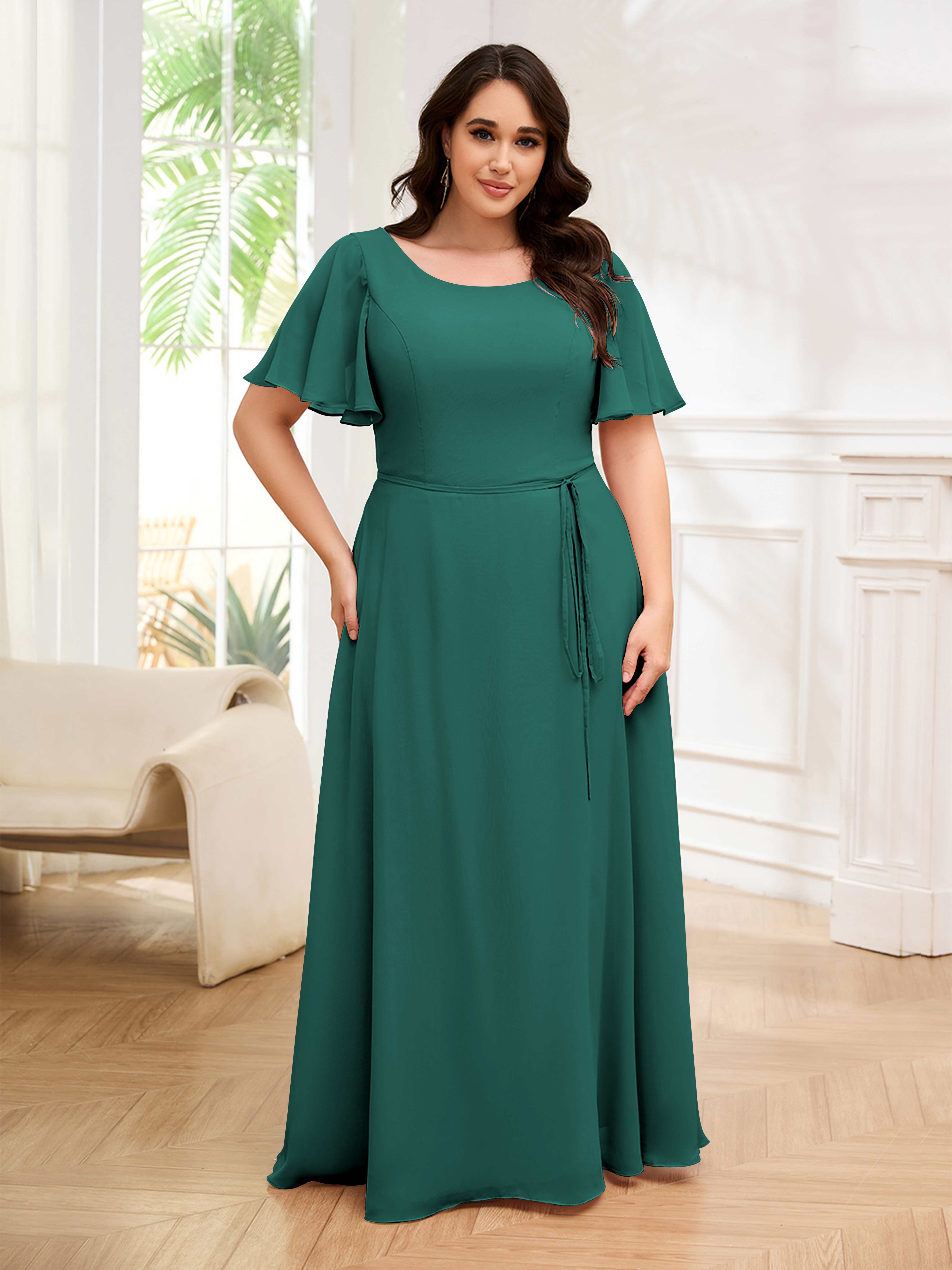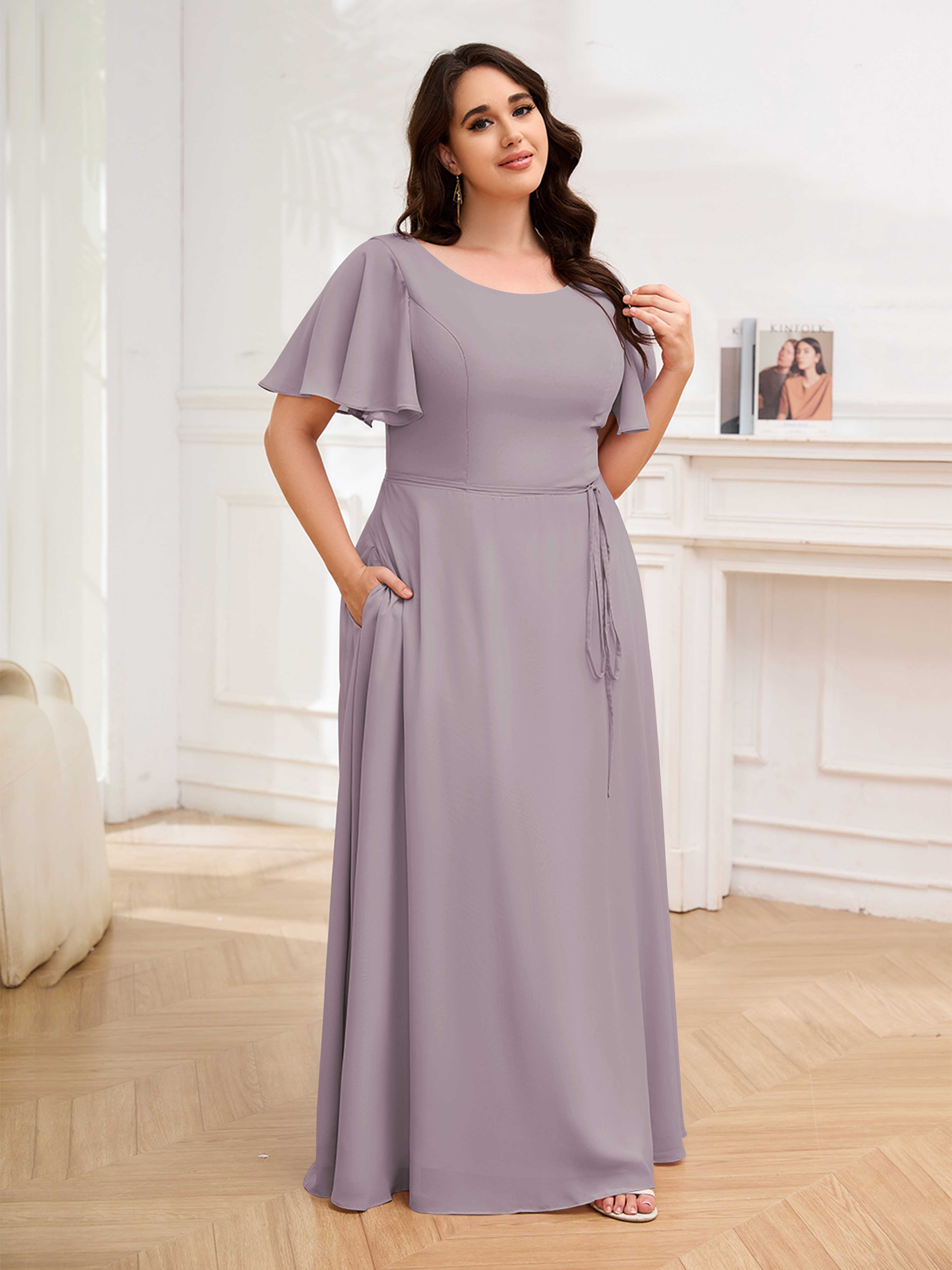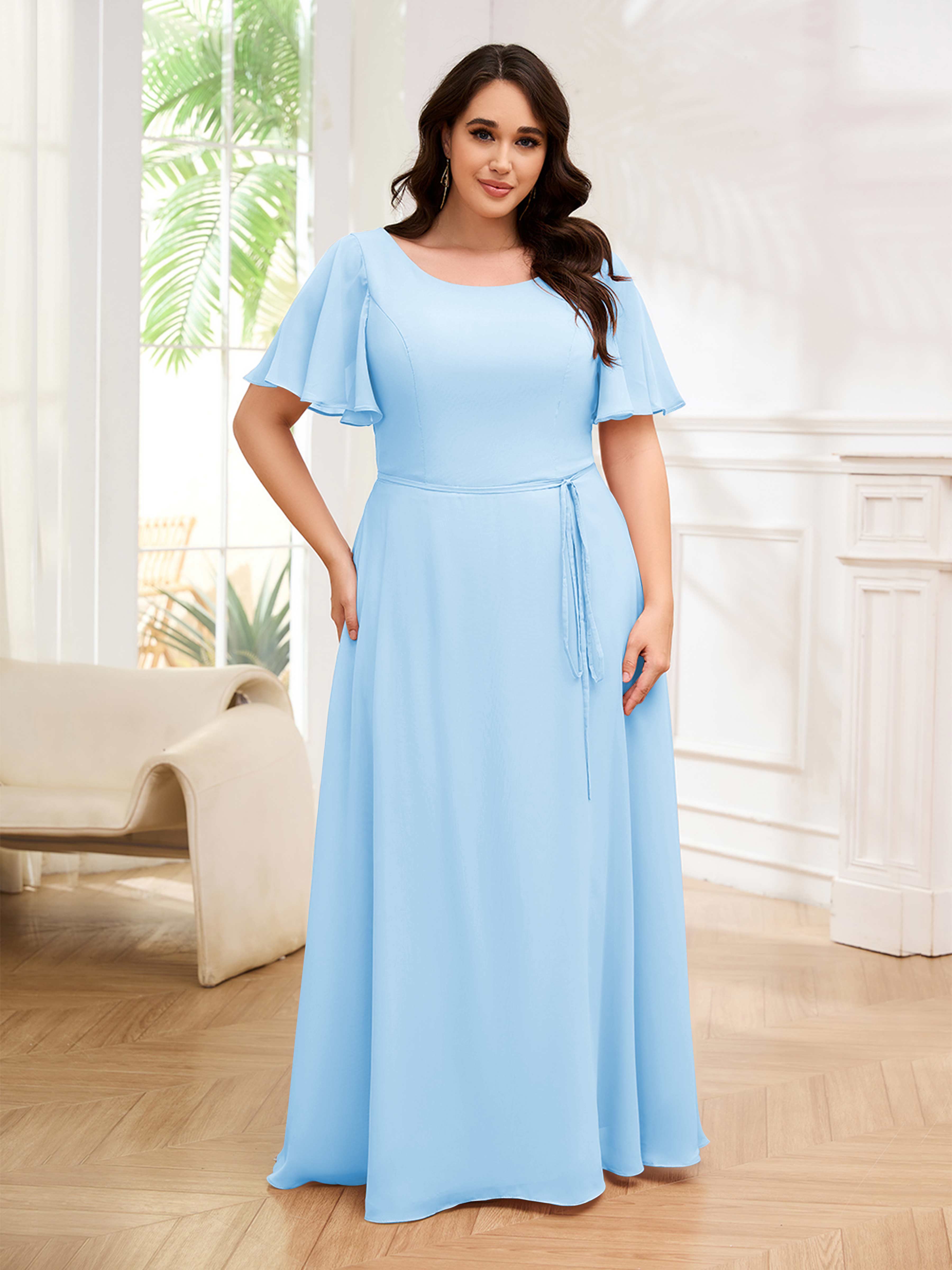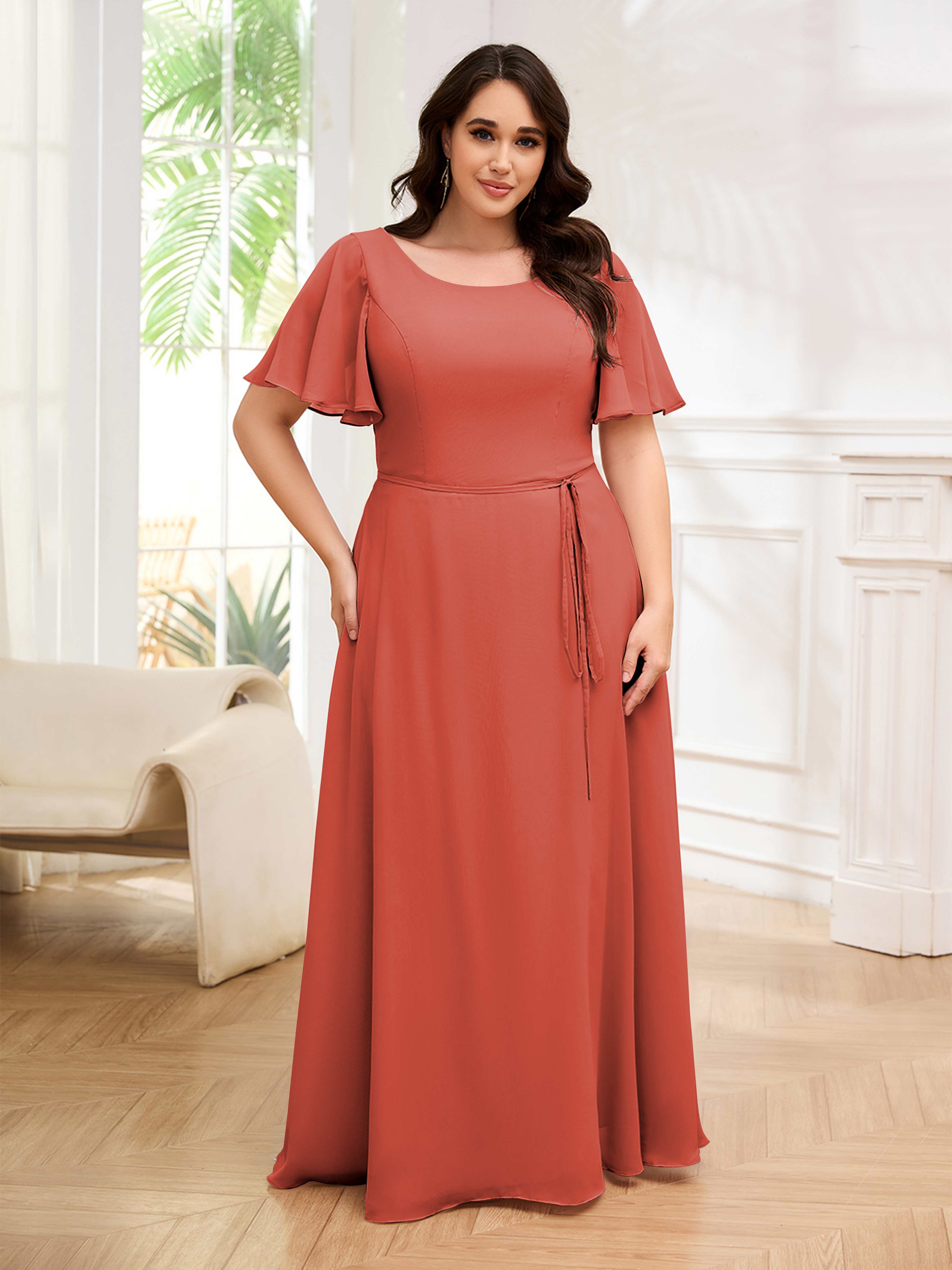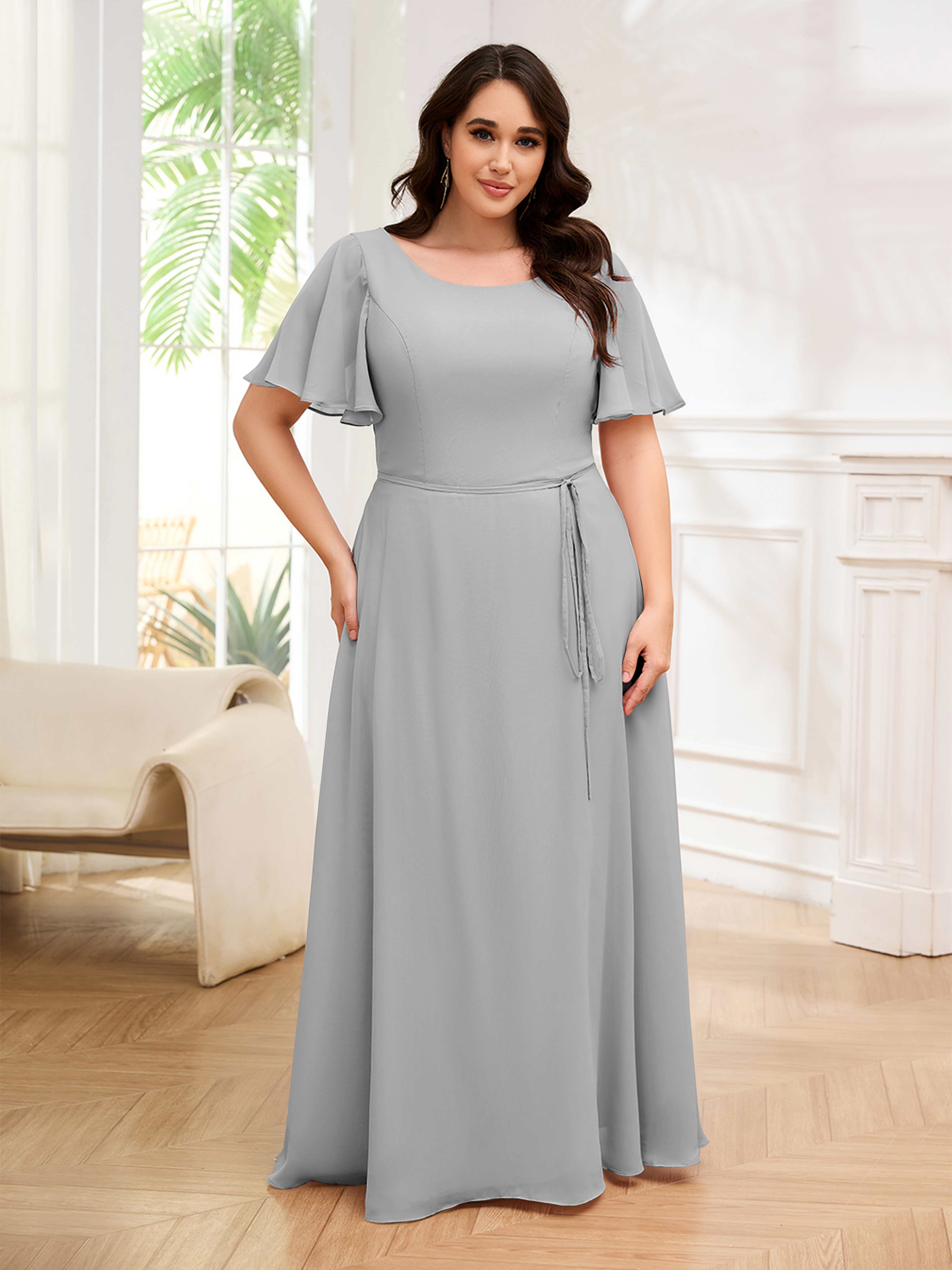 Ariya Modest Scoop Short Sleeves Long Chiffon Plus Size Bridesmaid Dresses