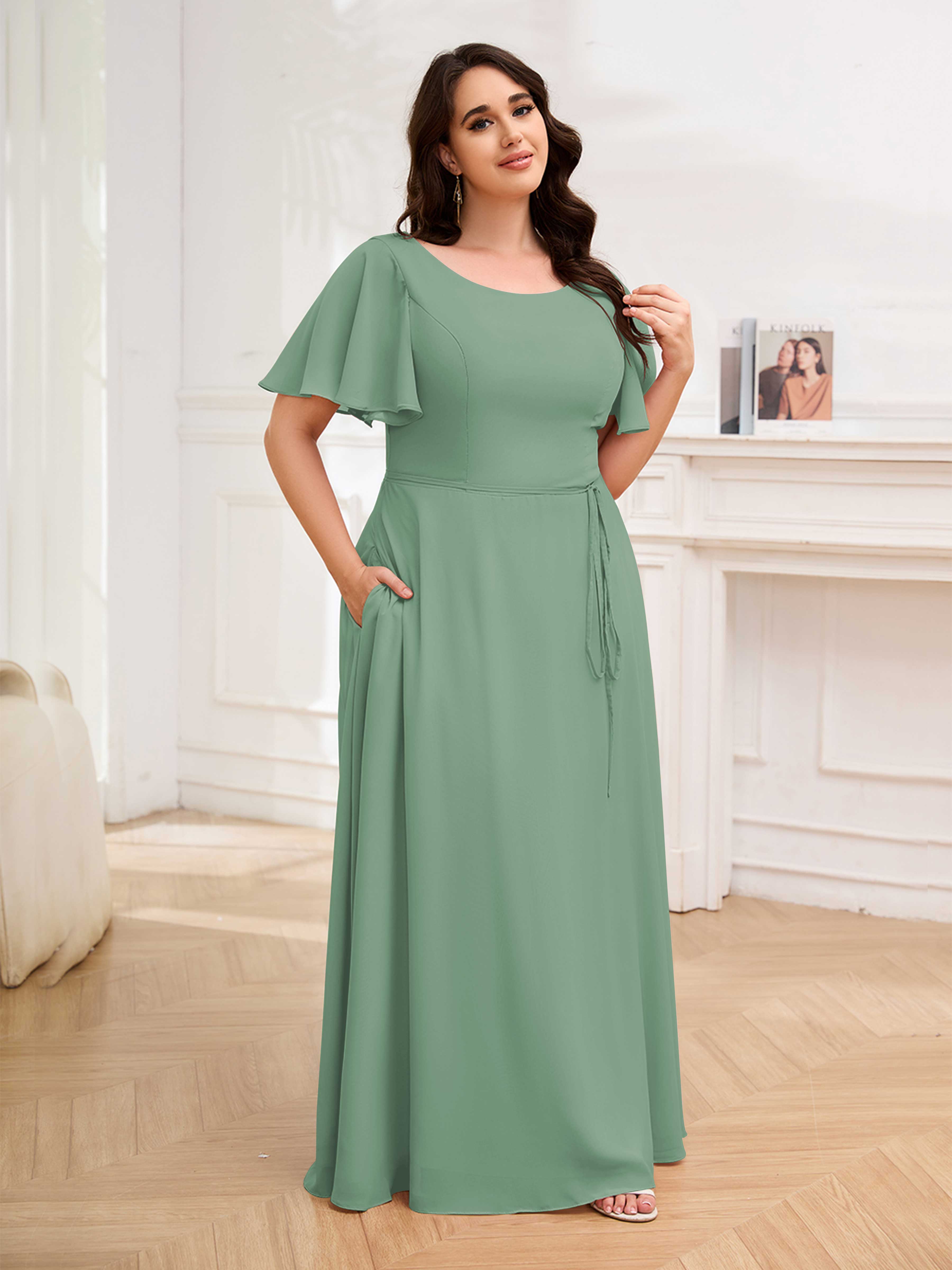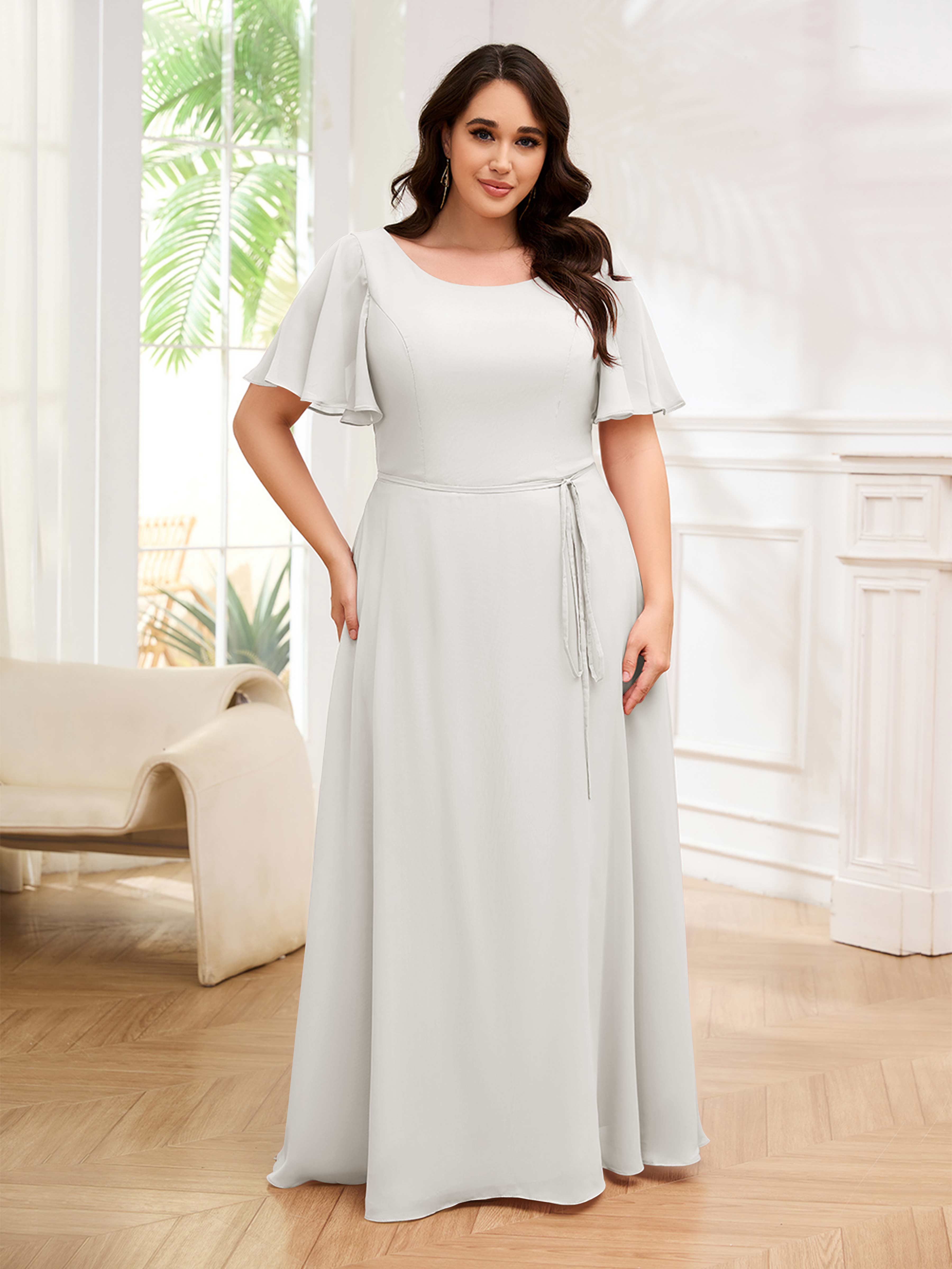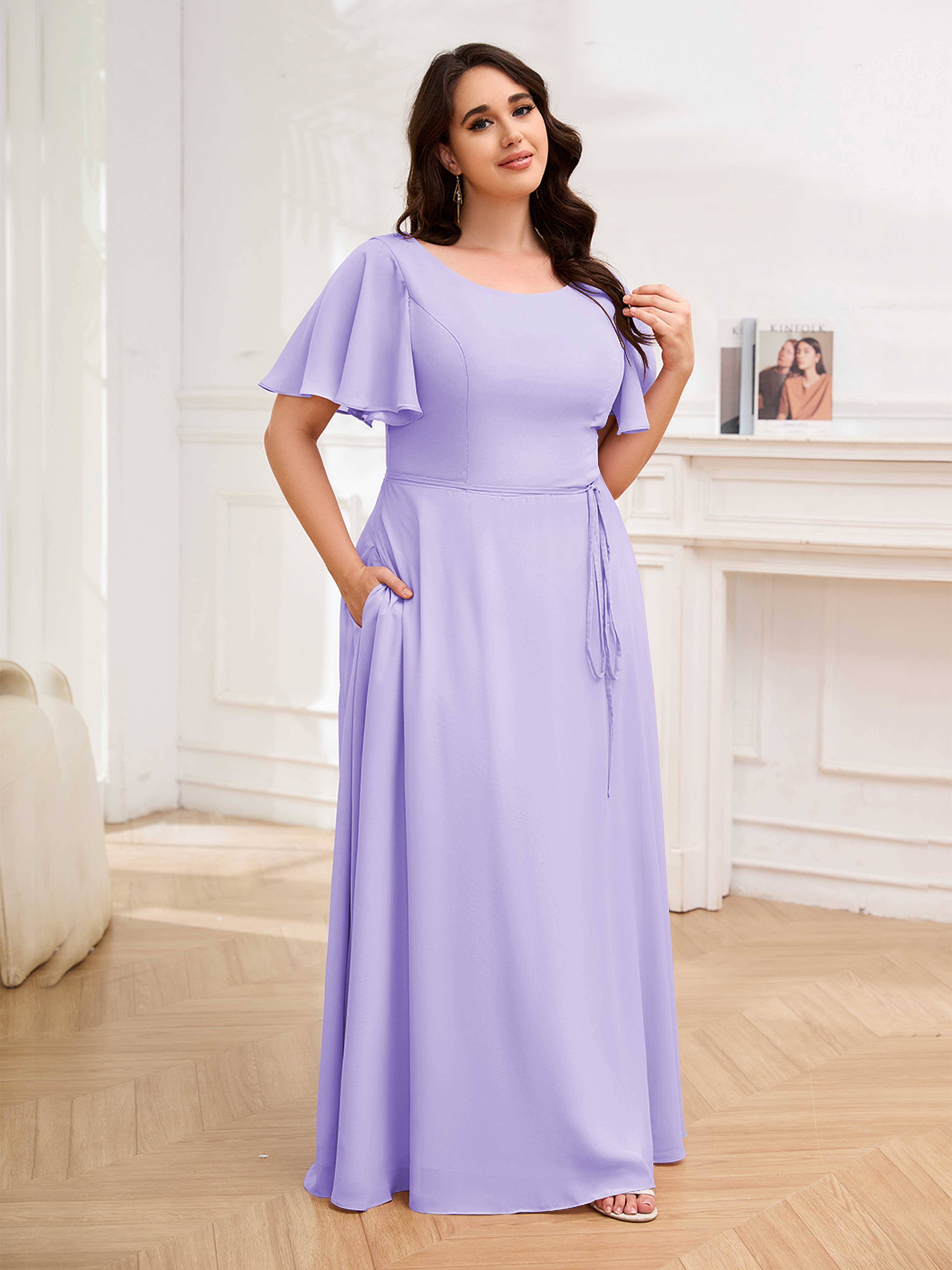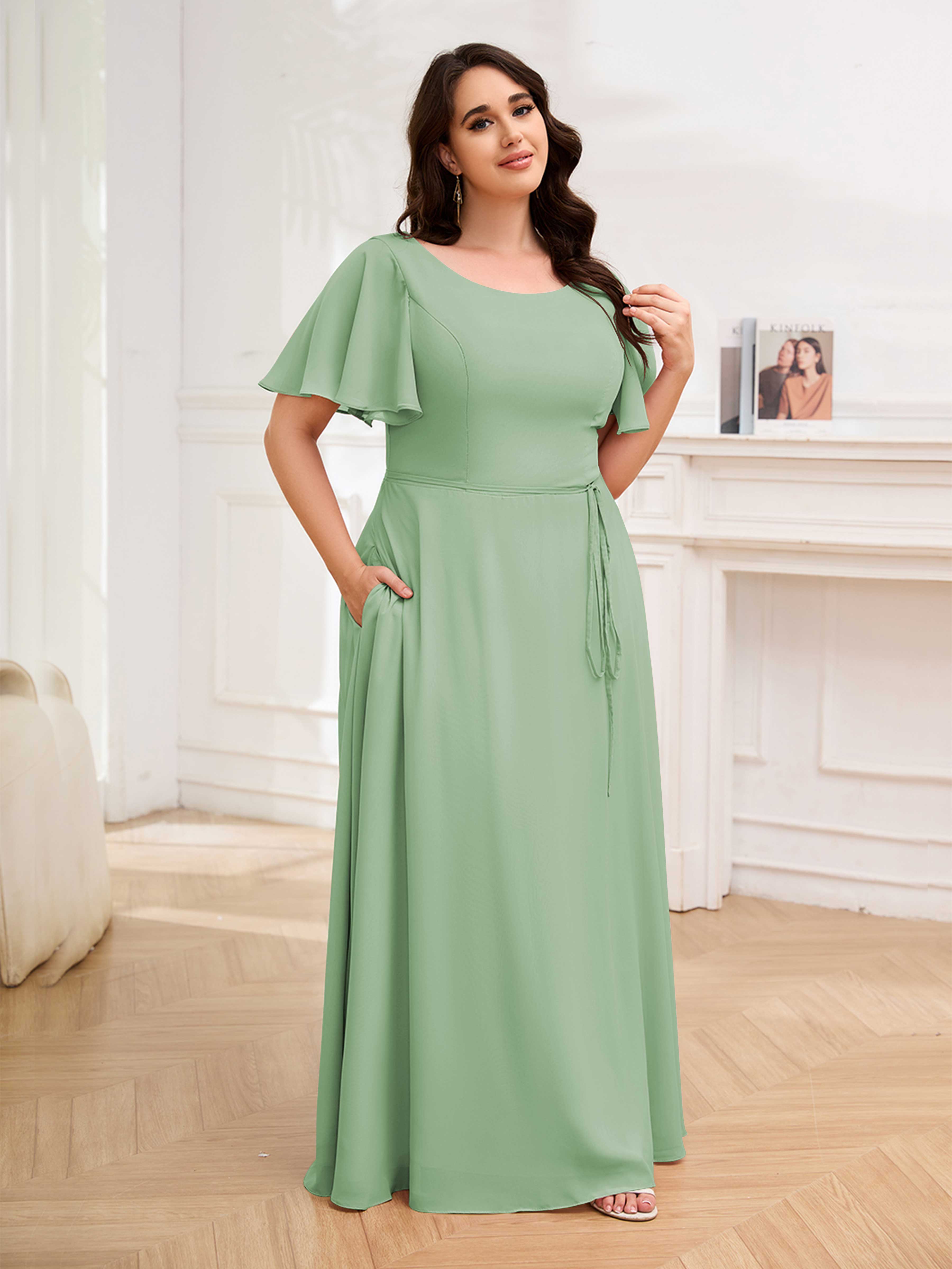 Ariya Modest Scoop Short Sleeves Long Chiffon Plus Size Bridesmaid Dresses
