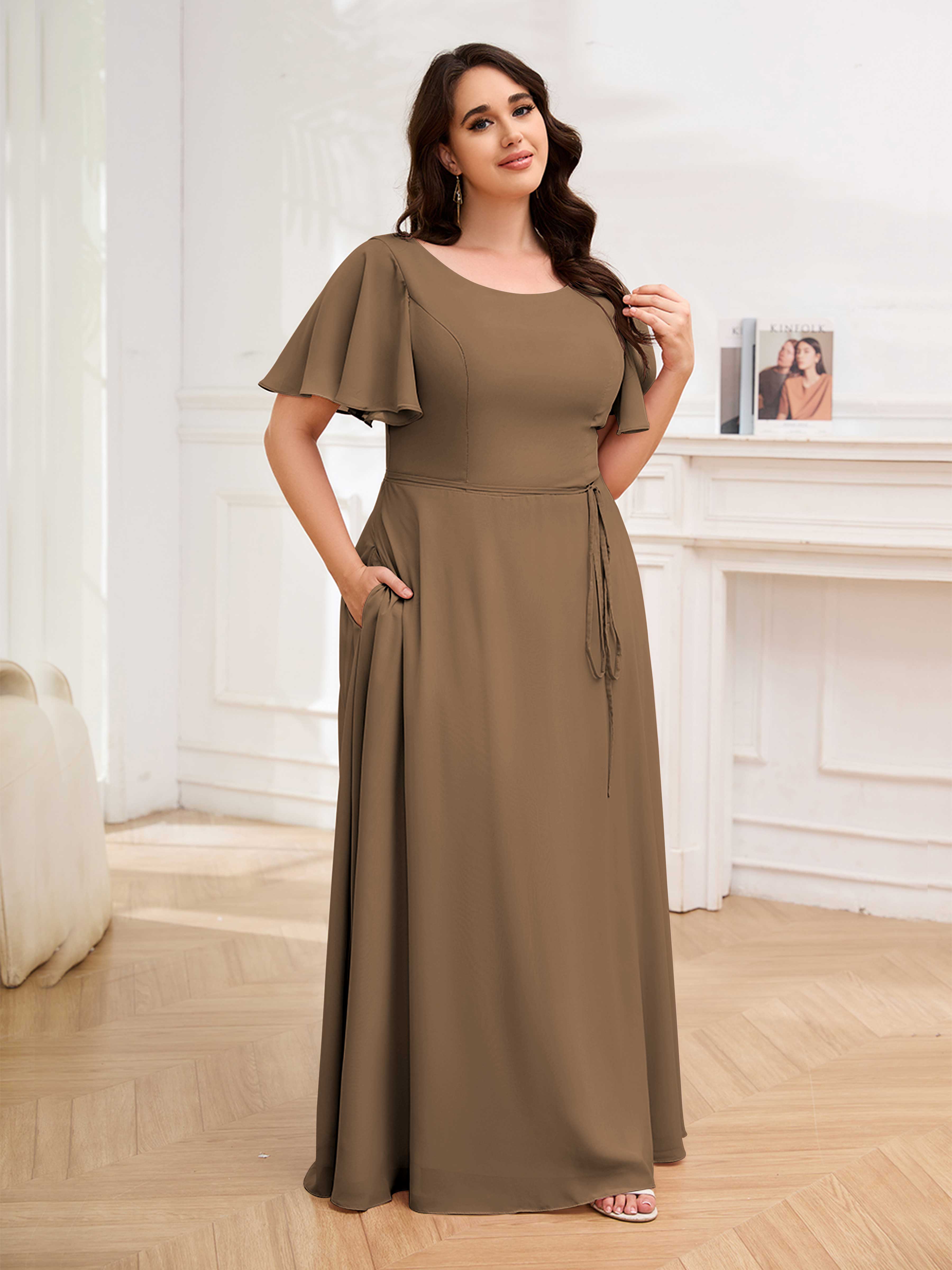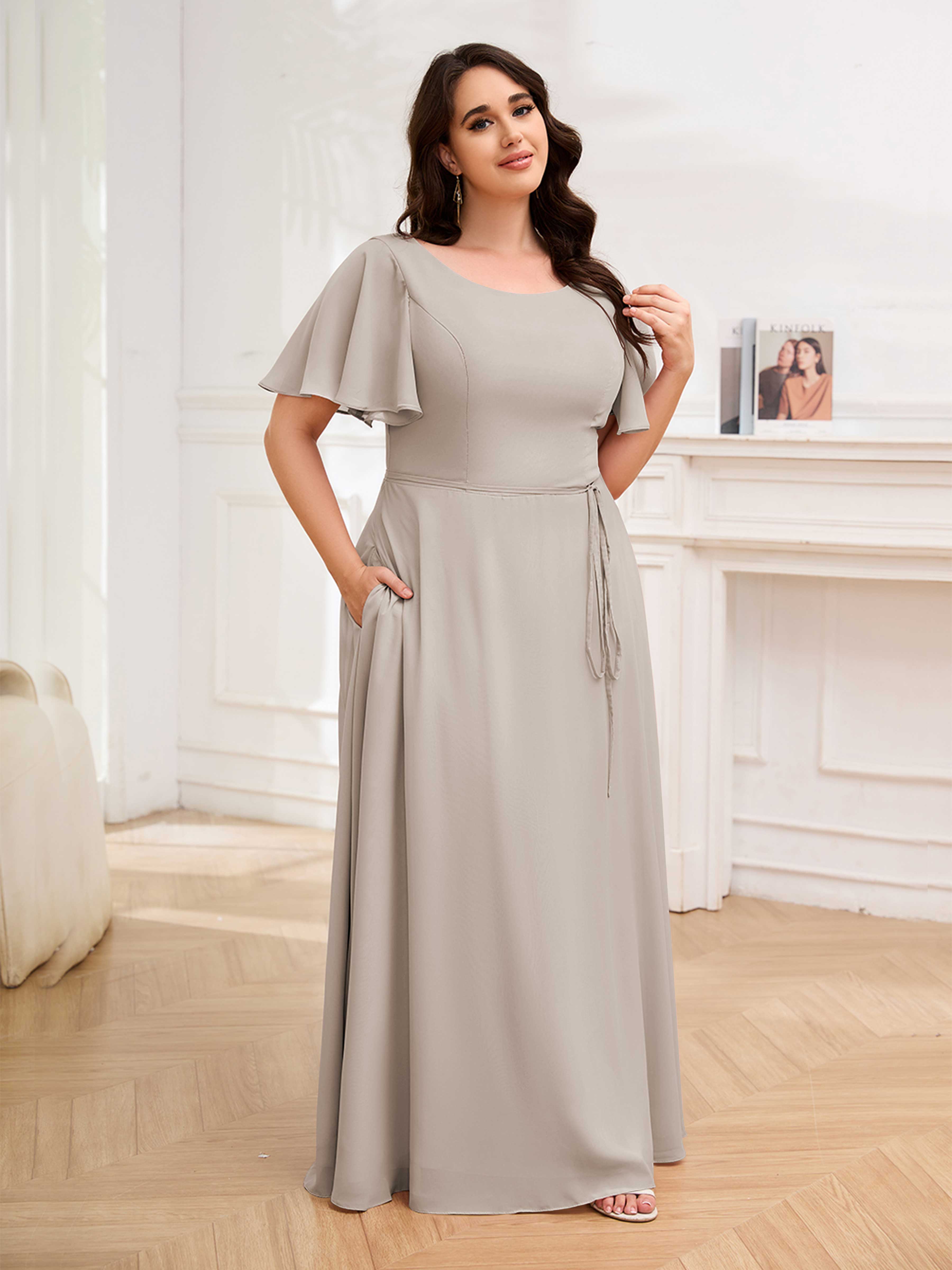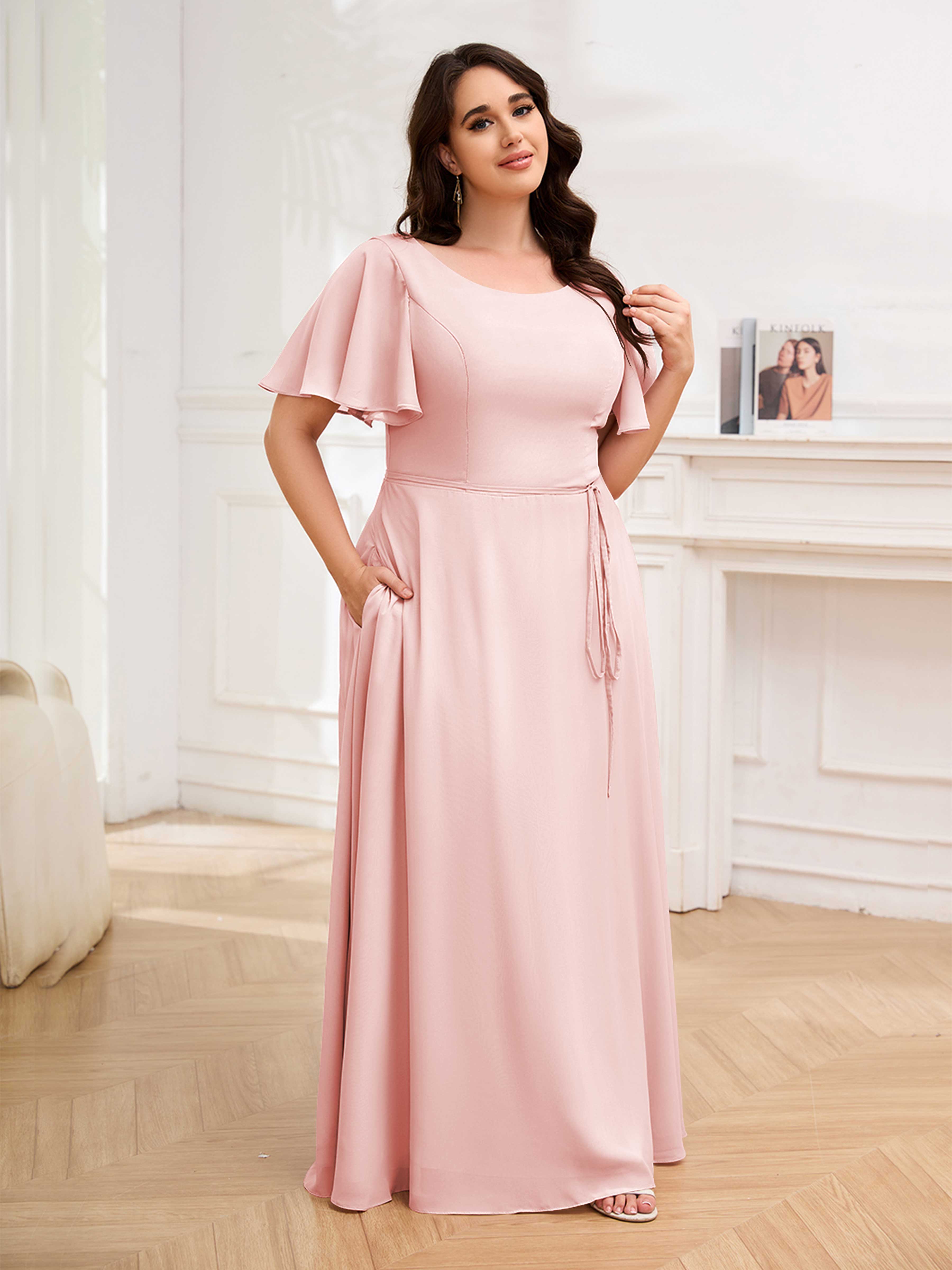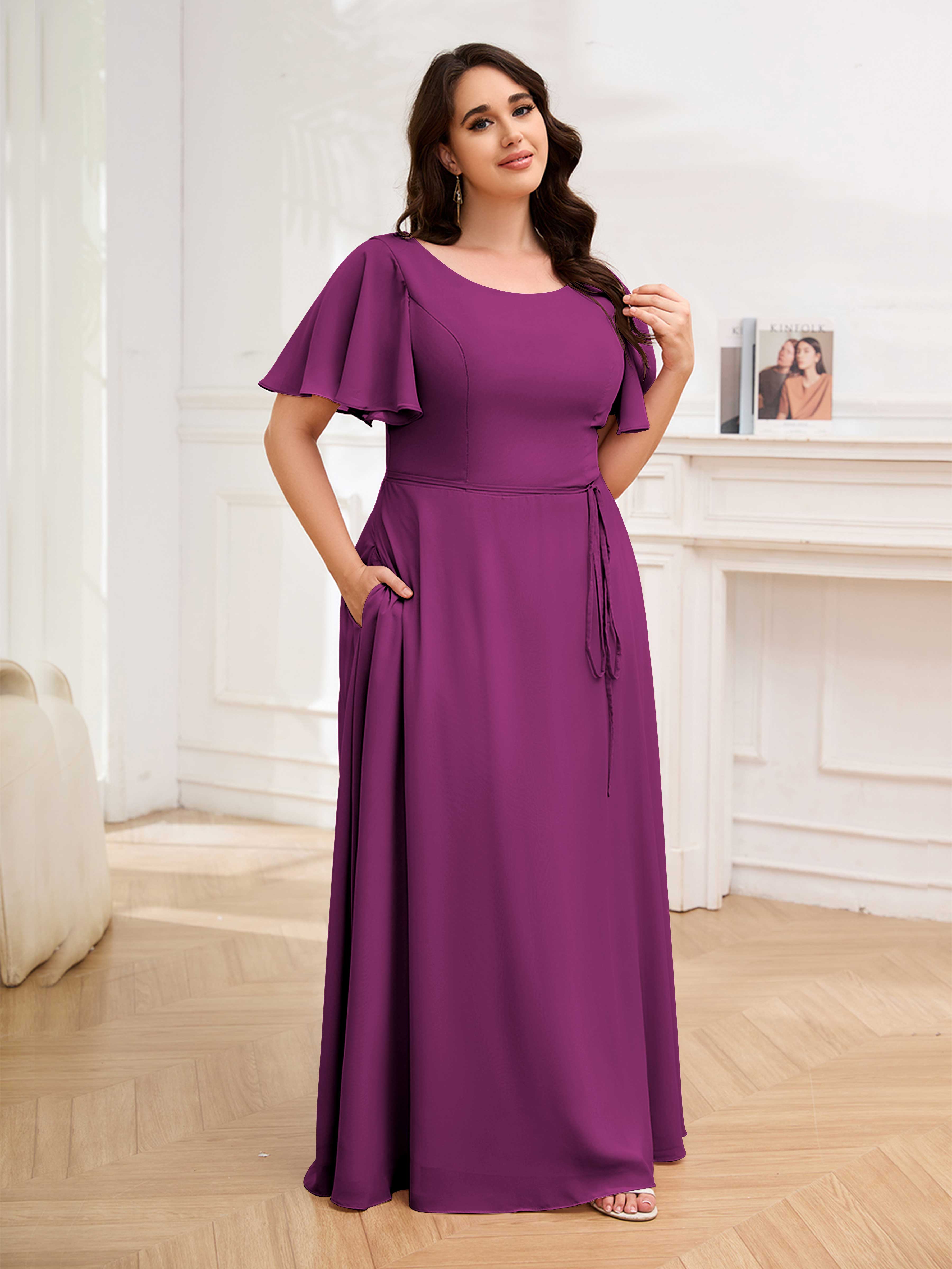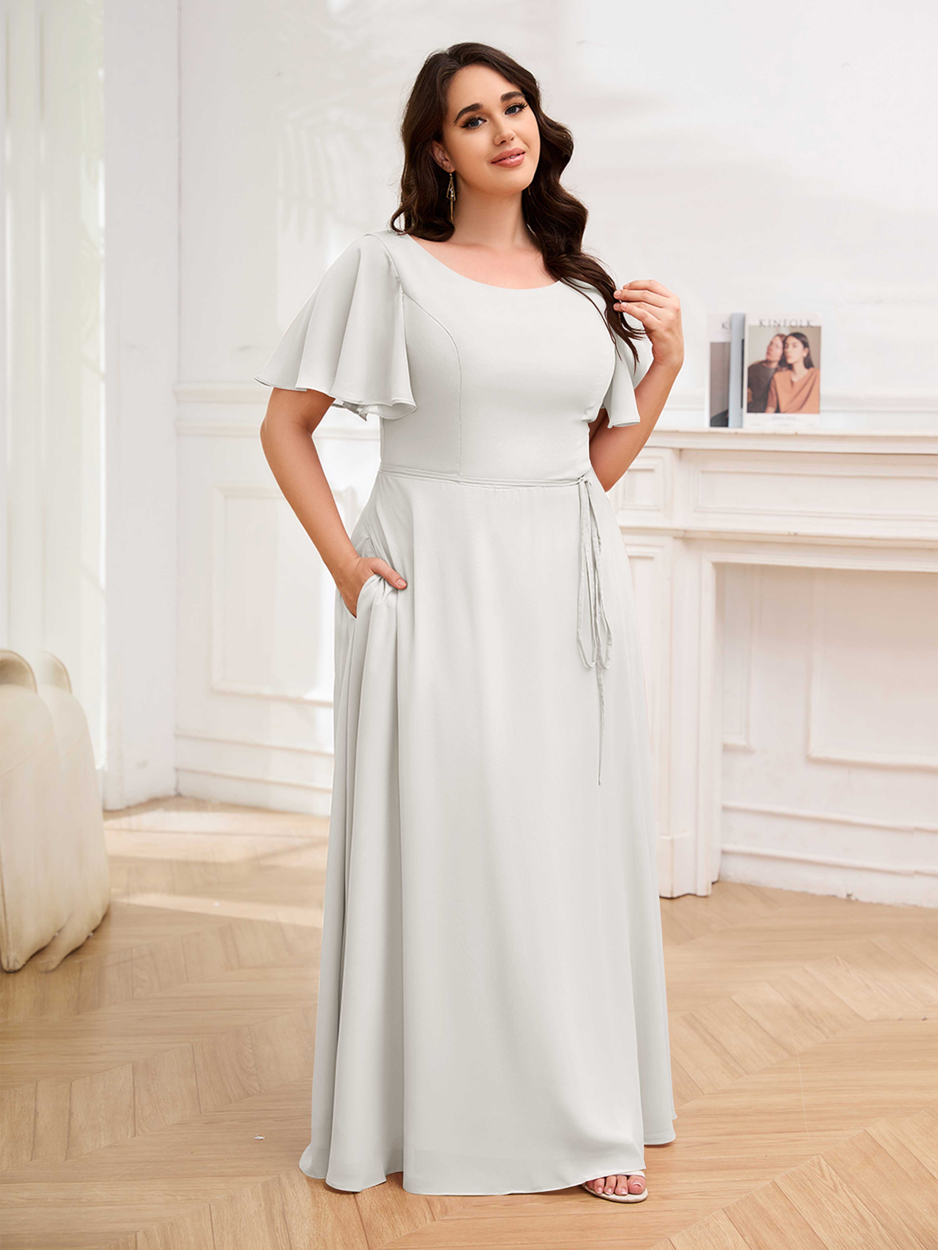 Ariya Modest Scoop Short Sleeves Long Chiffon Plus Size Bridesmaid Dresses