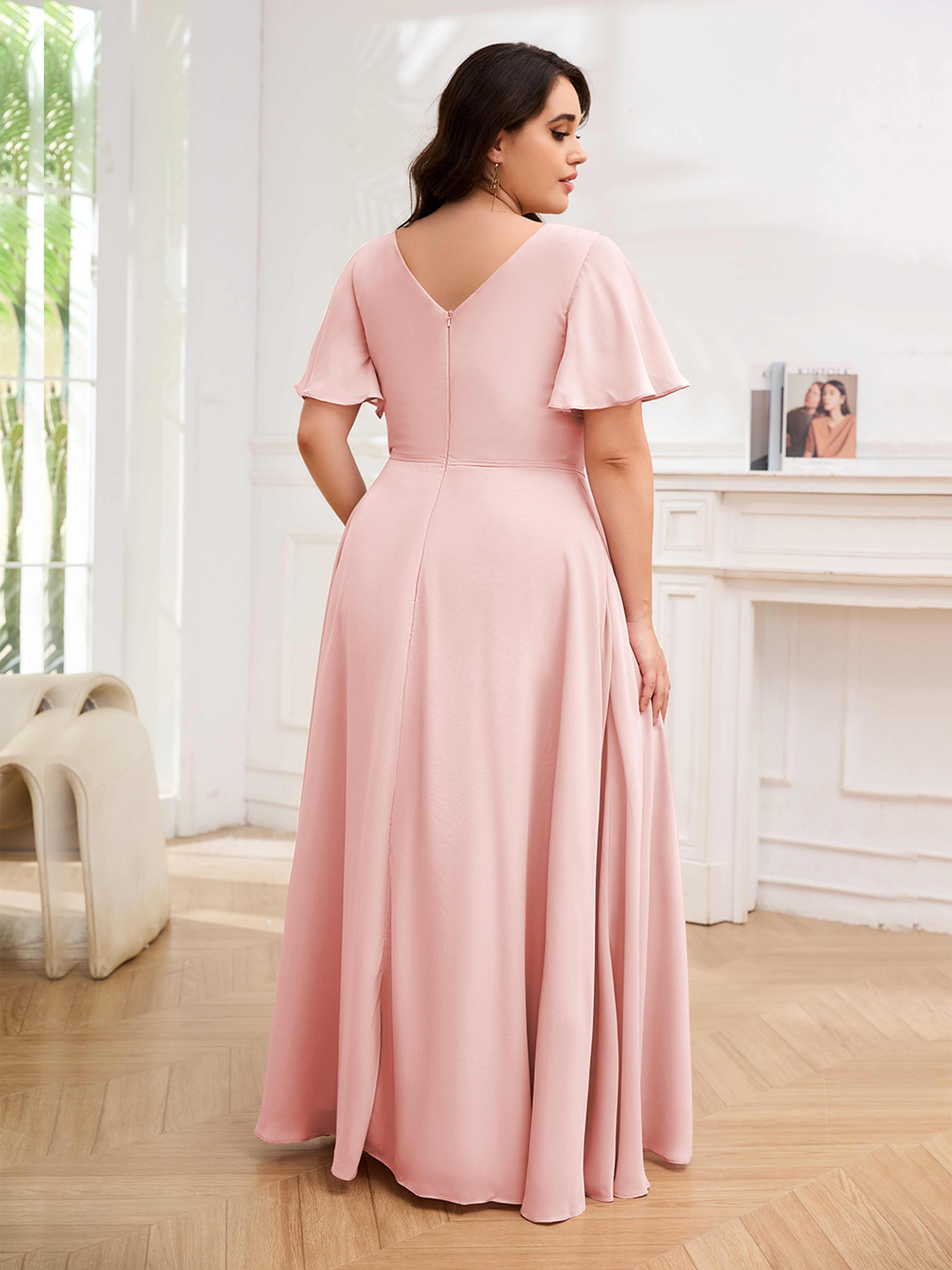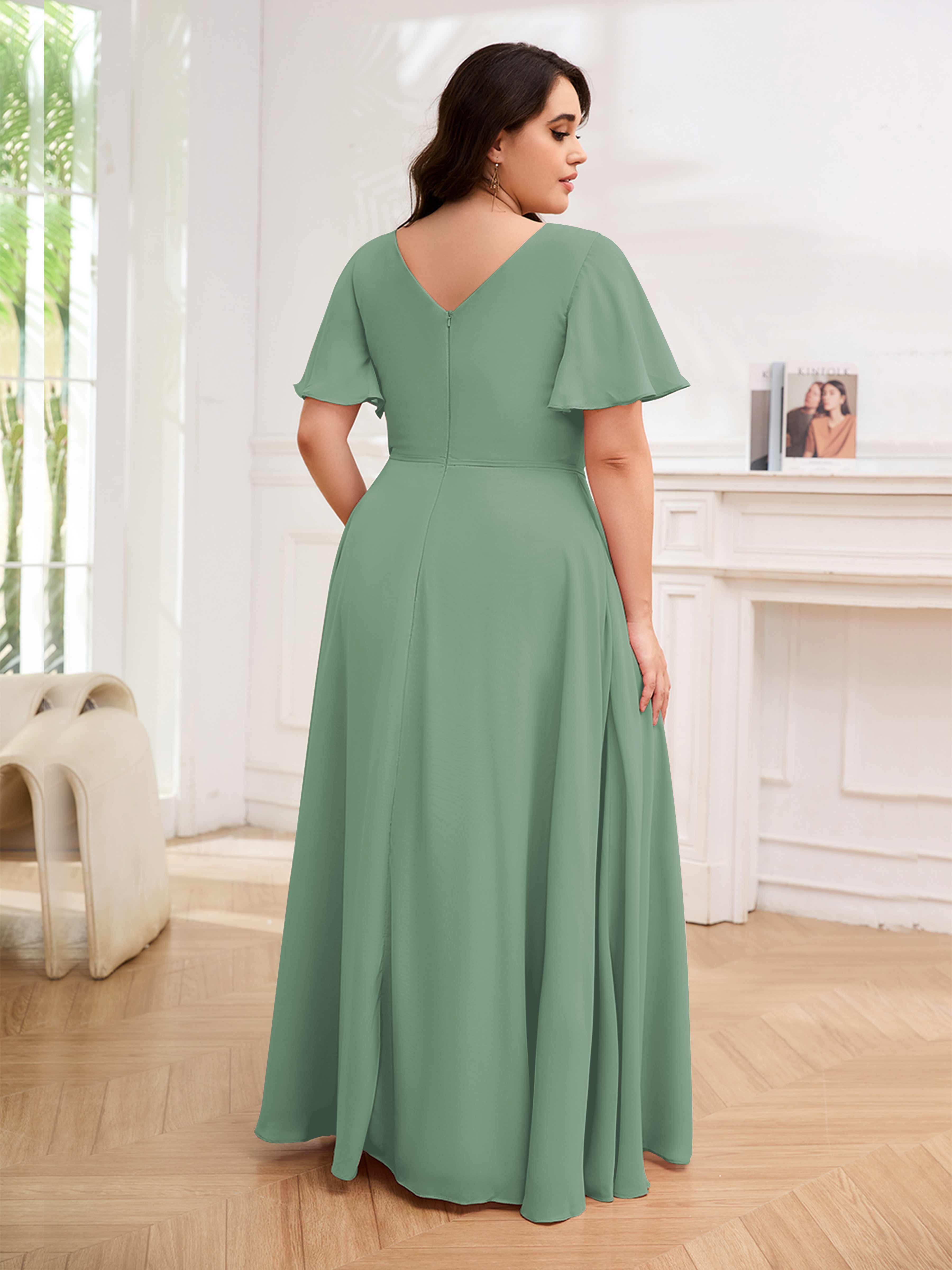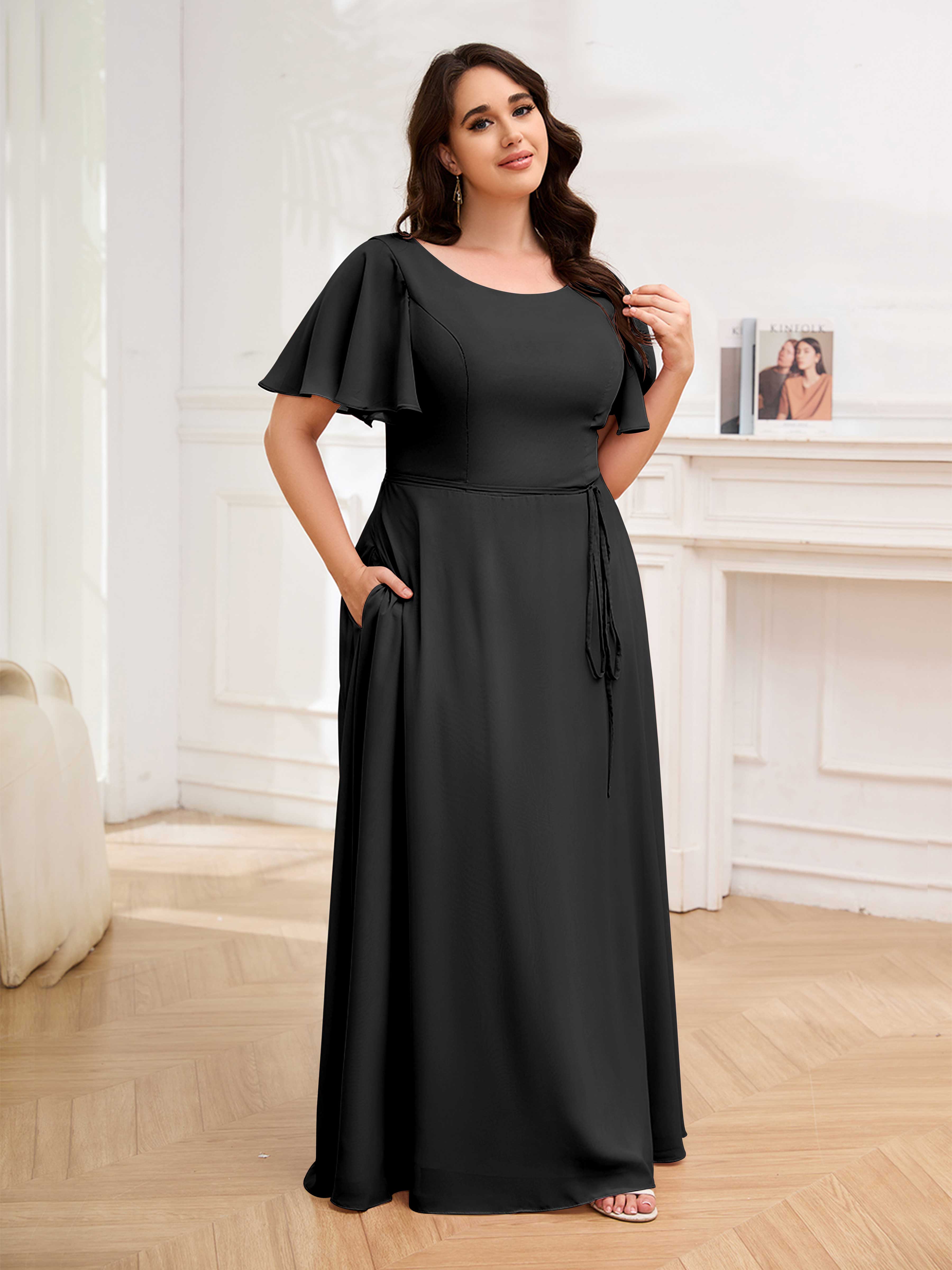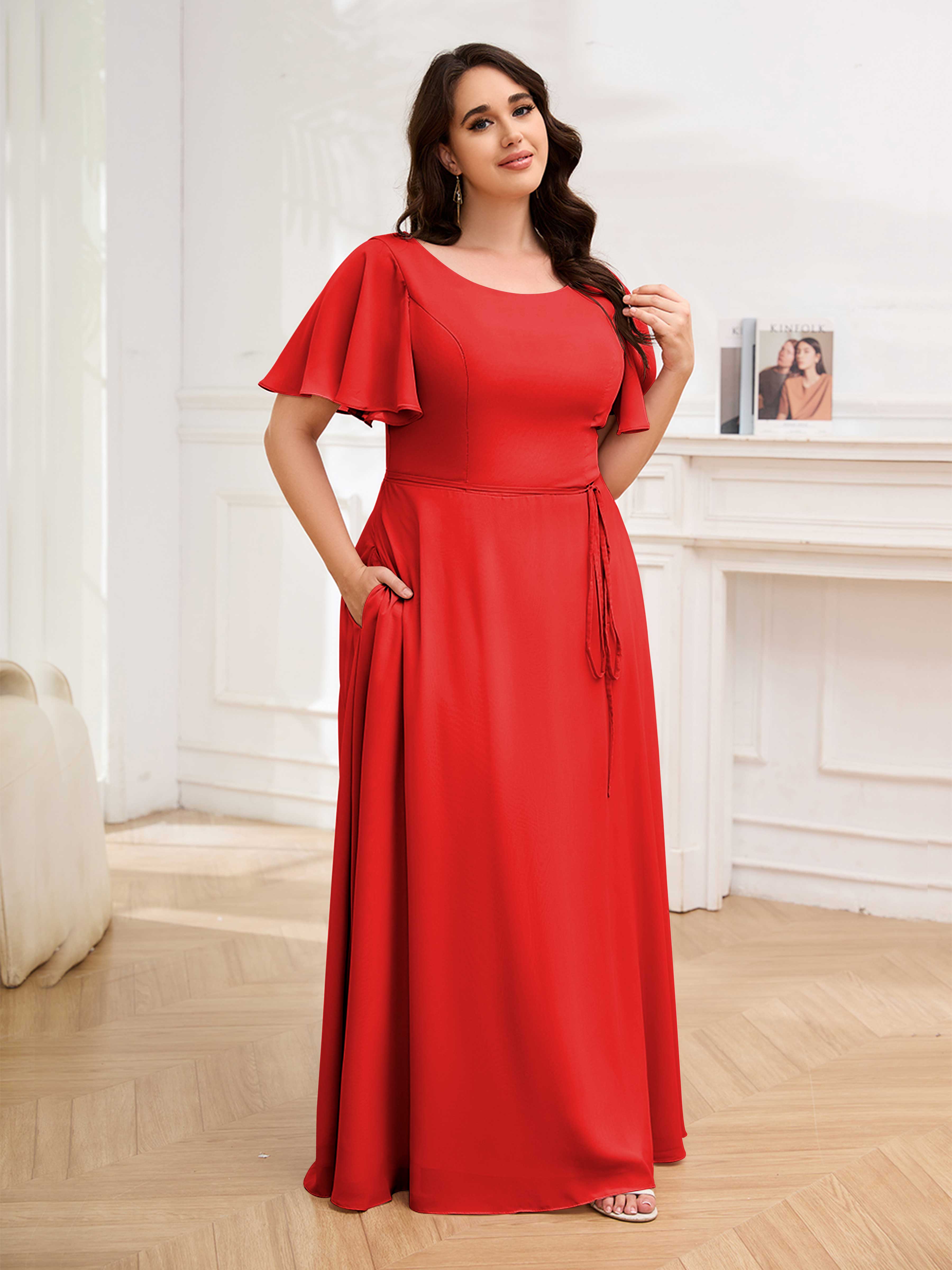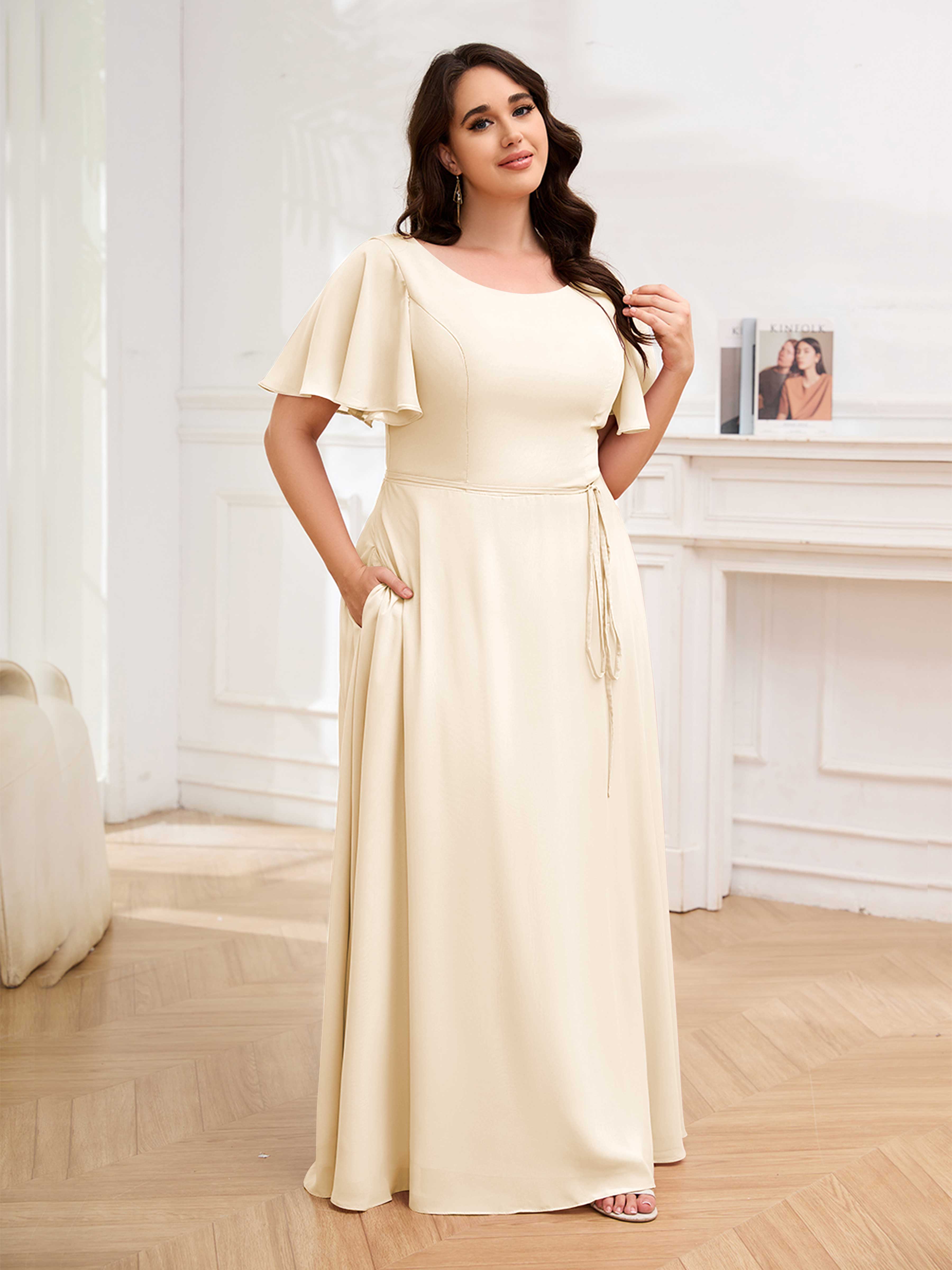 Ariya Modest Scoop Short Sleeves Long Chiffon Plus Size Bridesmaid Dresses