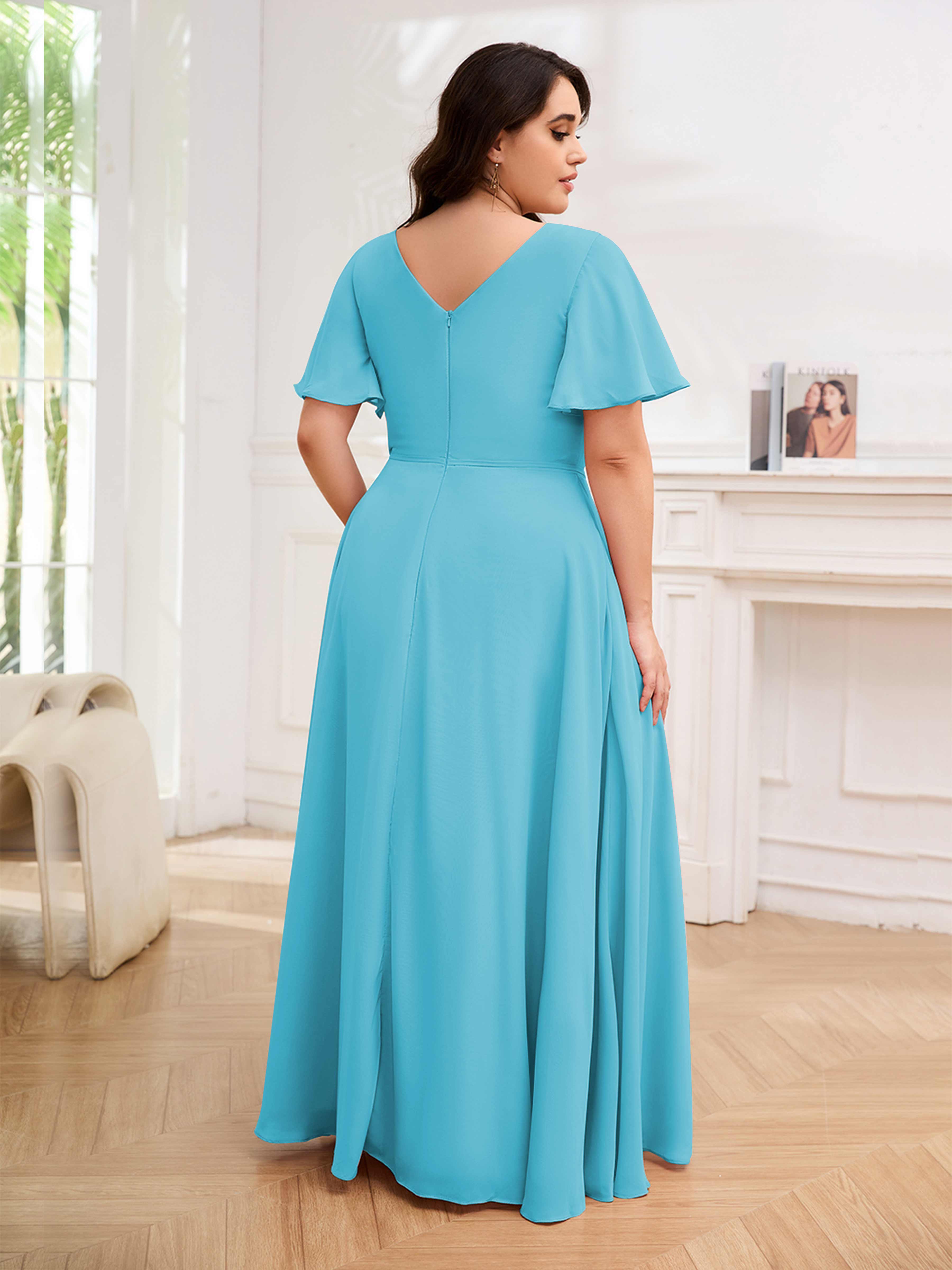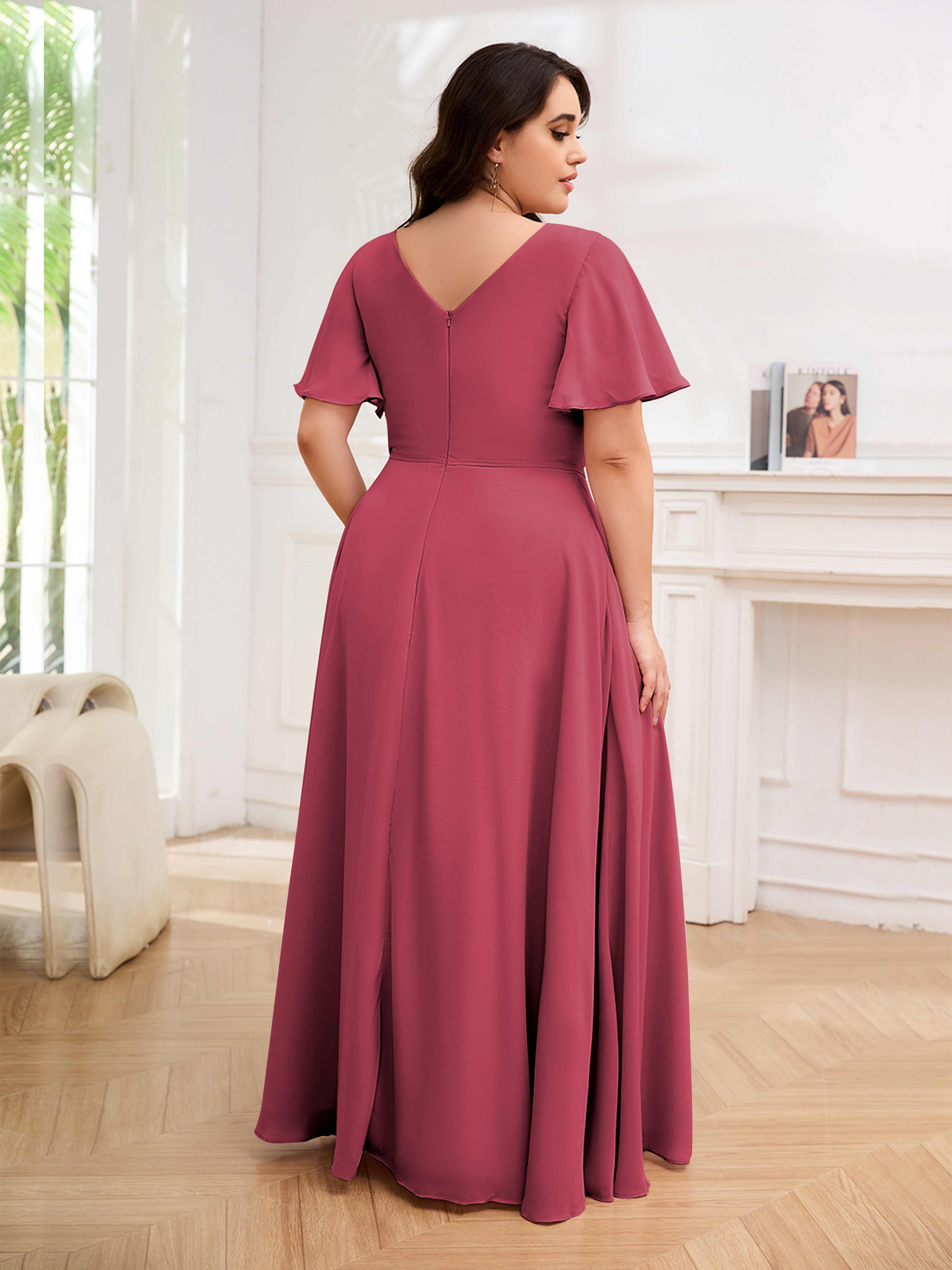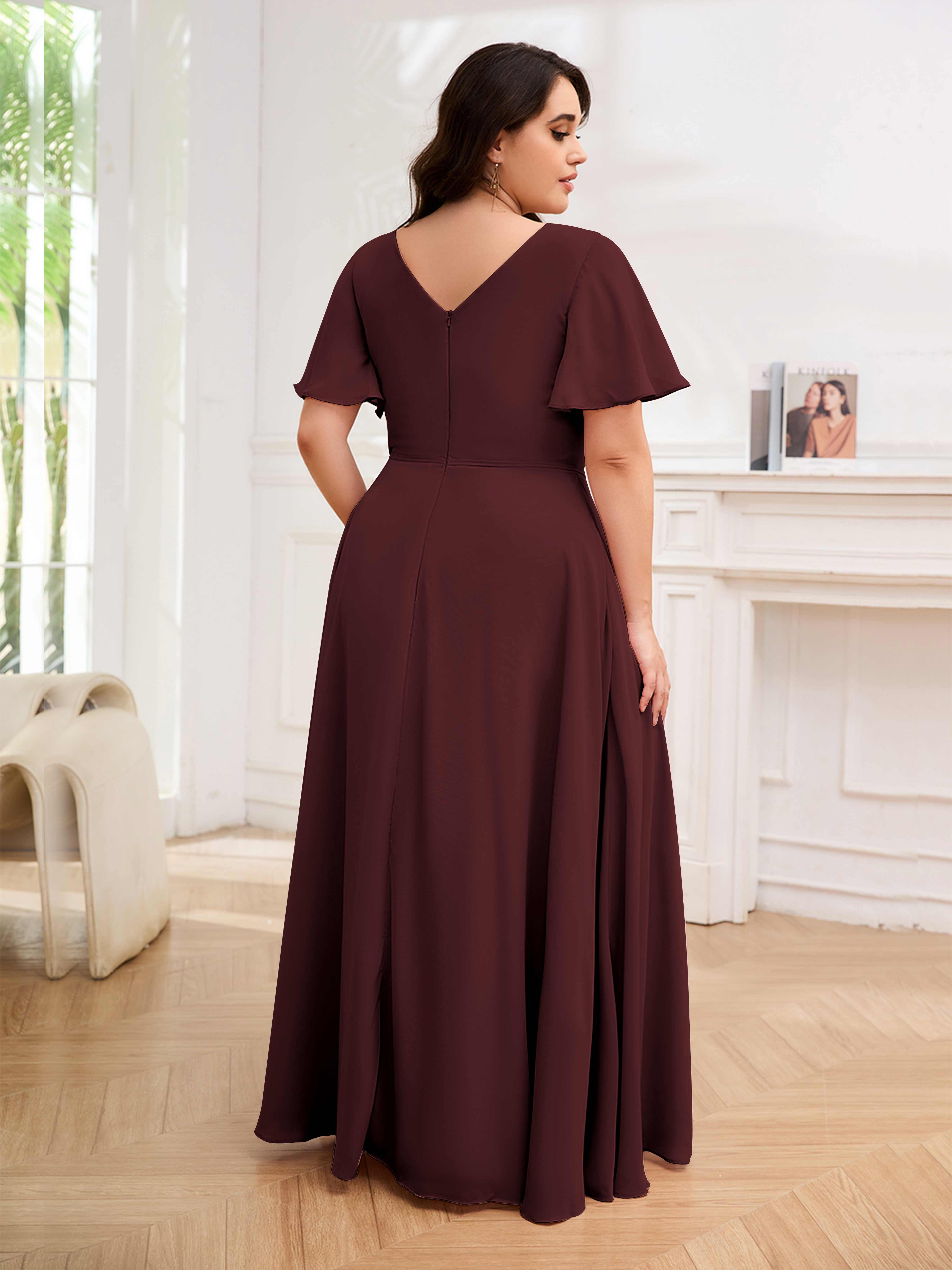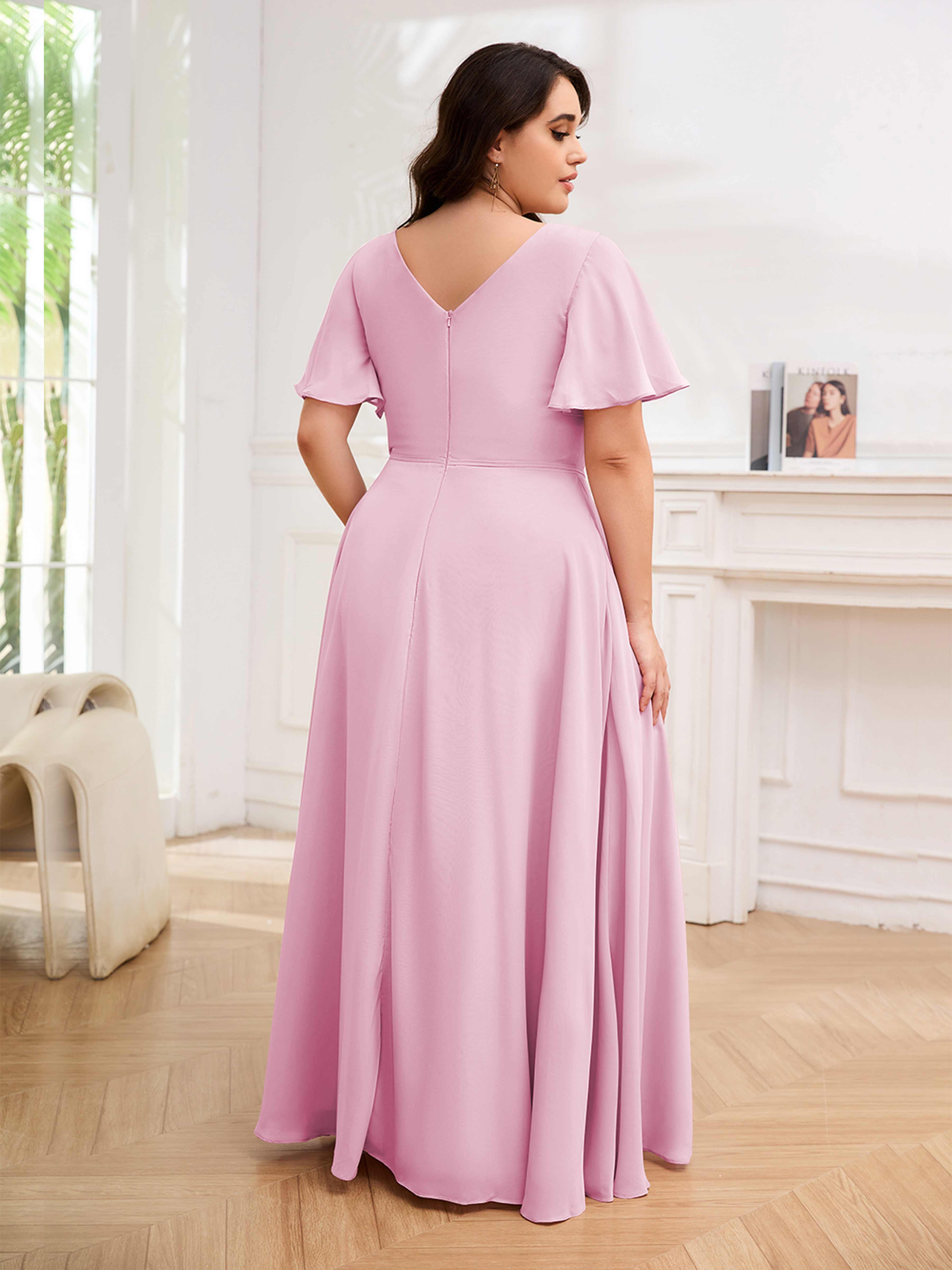 Ariya Modest Scoop Short Sleeves Long Chiffon Plus Size Bridesmaid Dresses