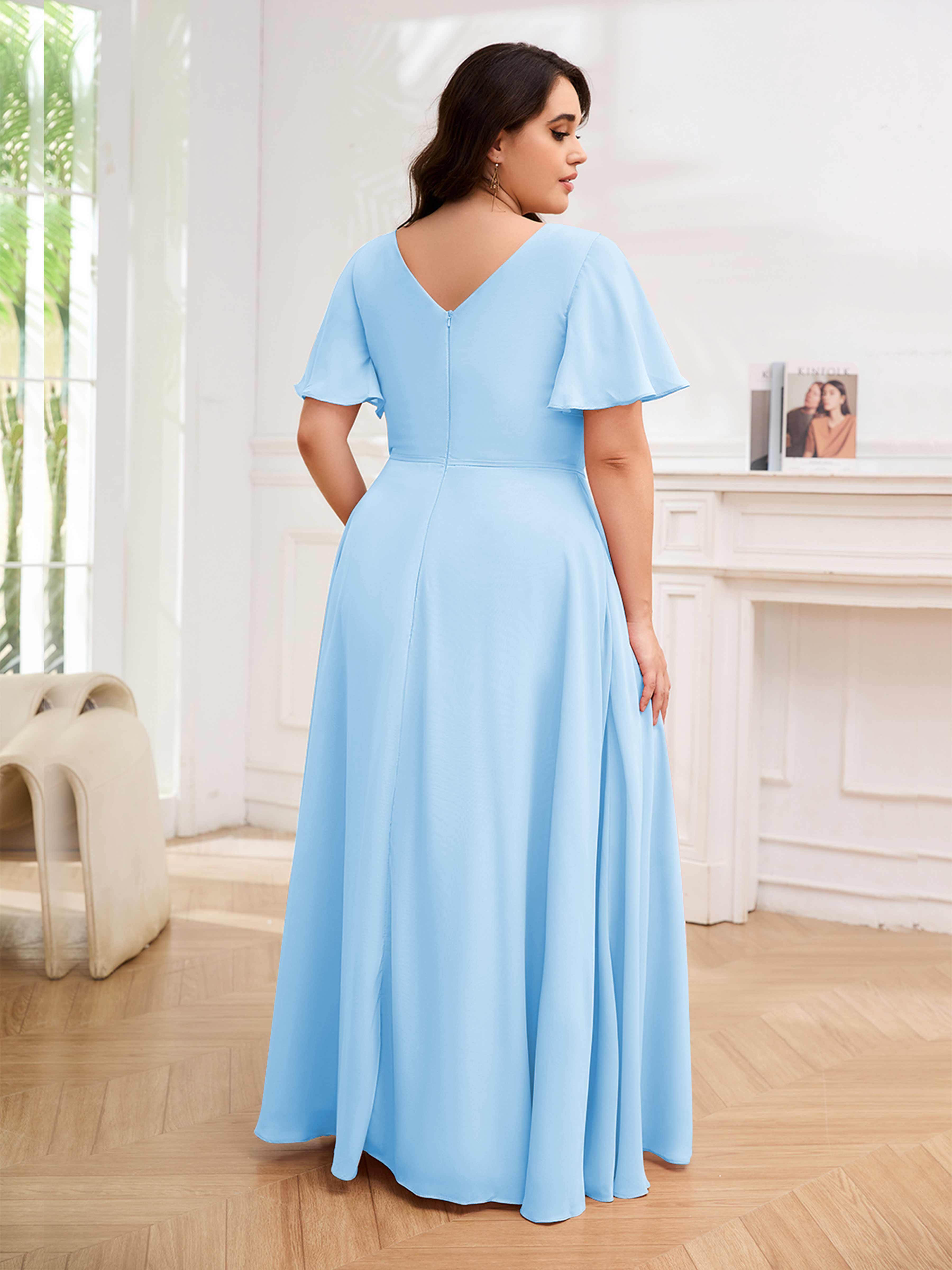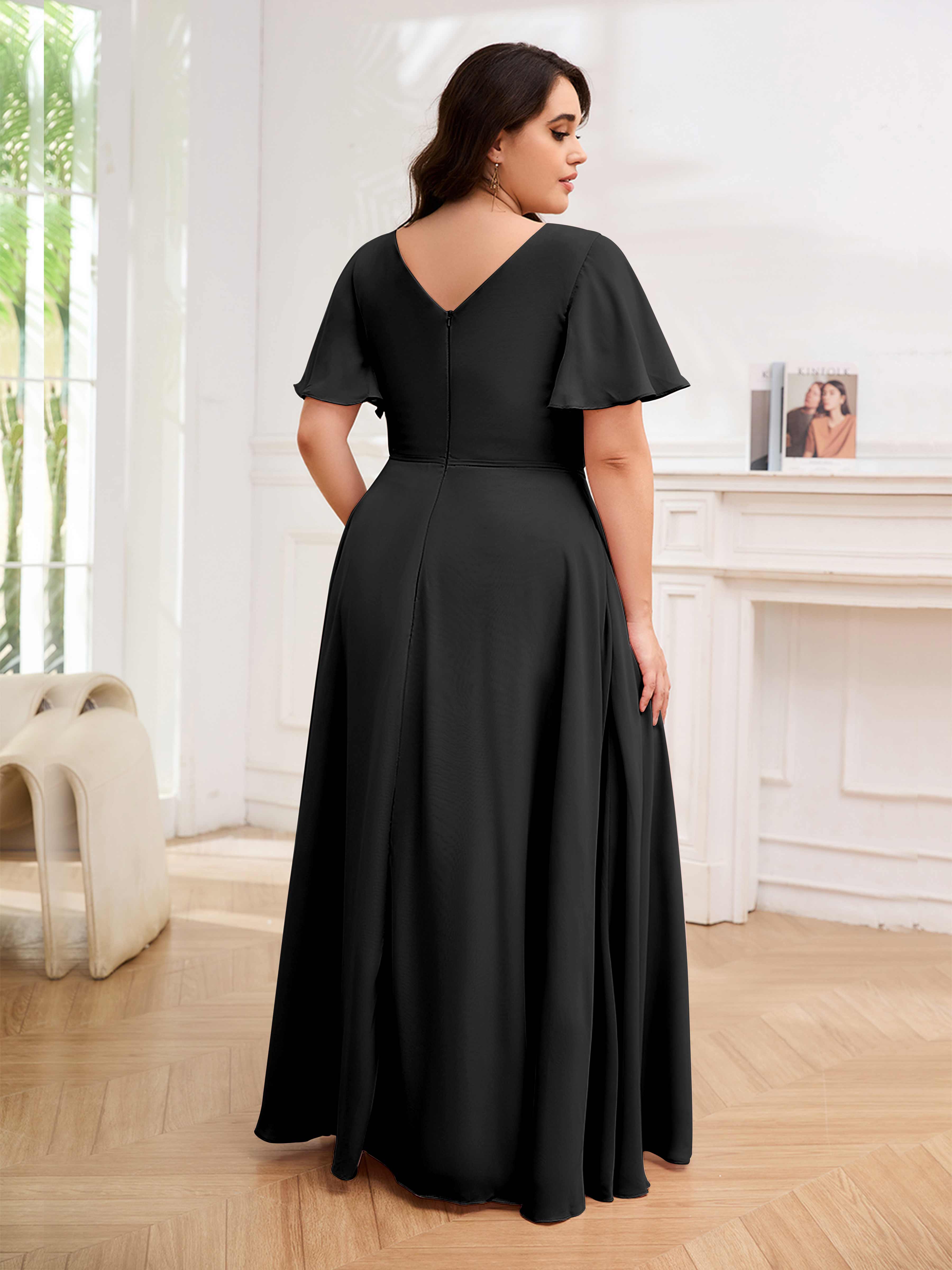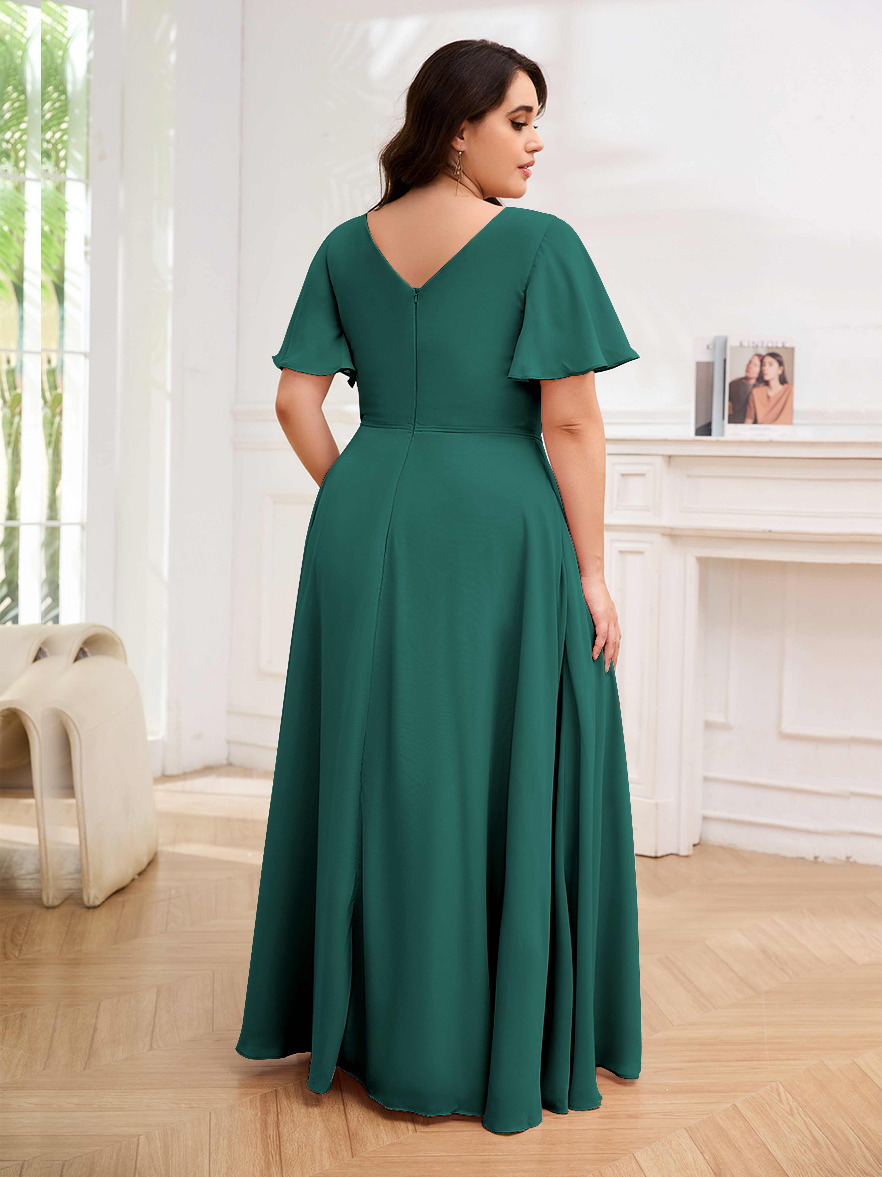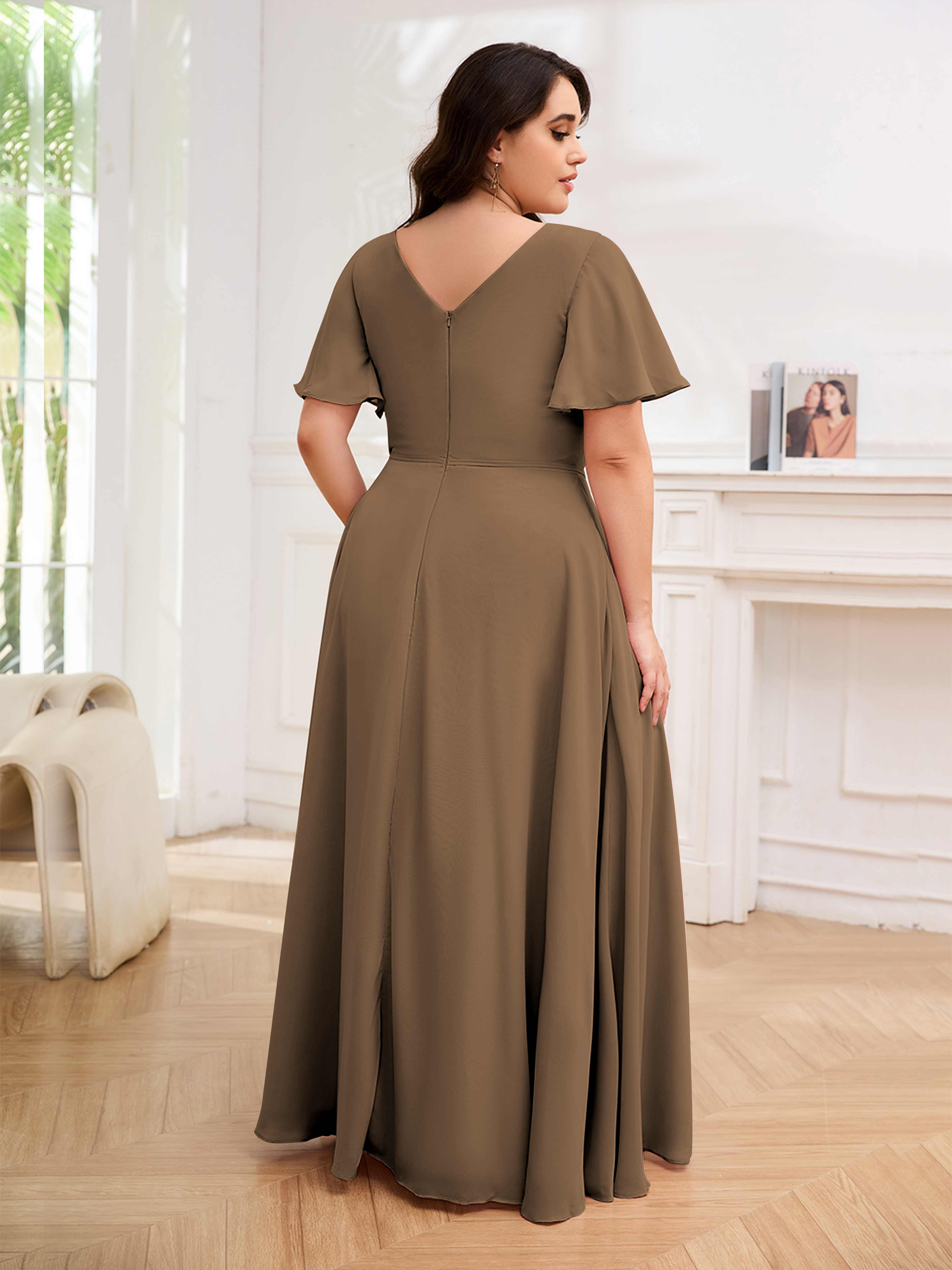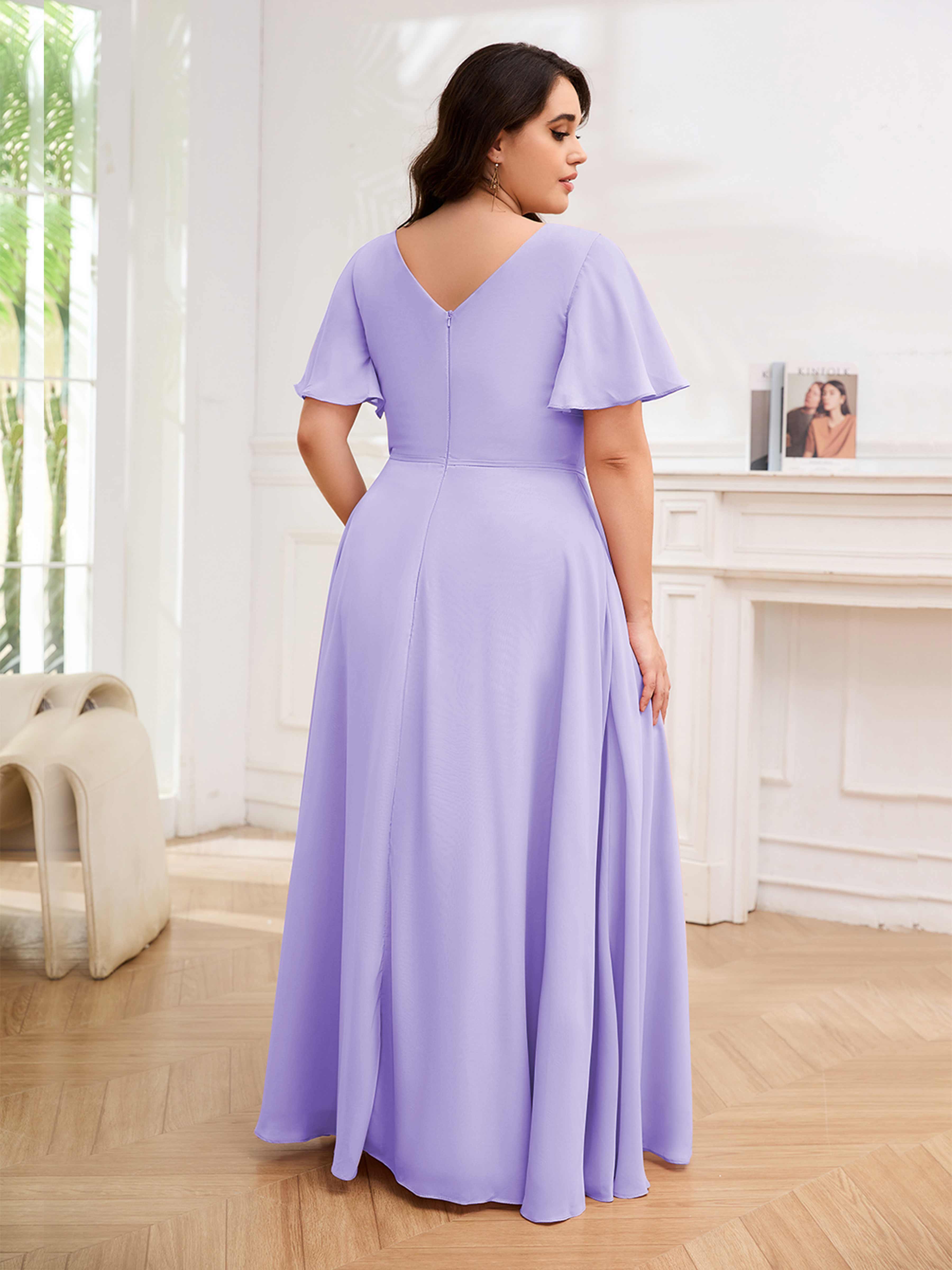 Ariya Modest Scoop Short Sleeves Long Chiffon Plus Size Bridesmaid Dresses