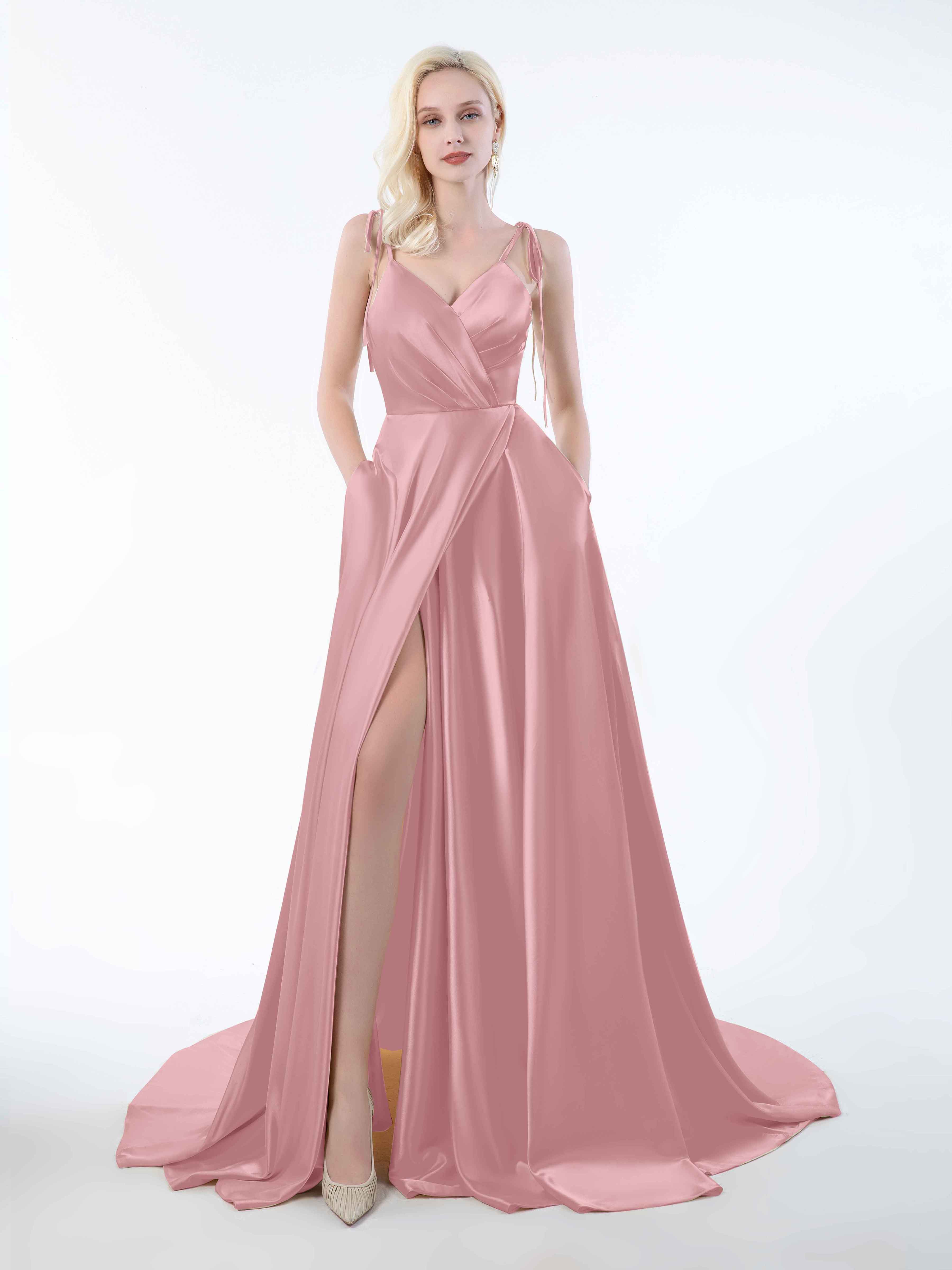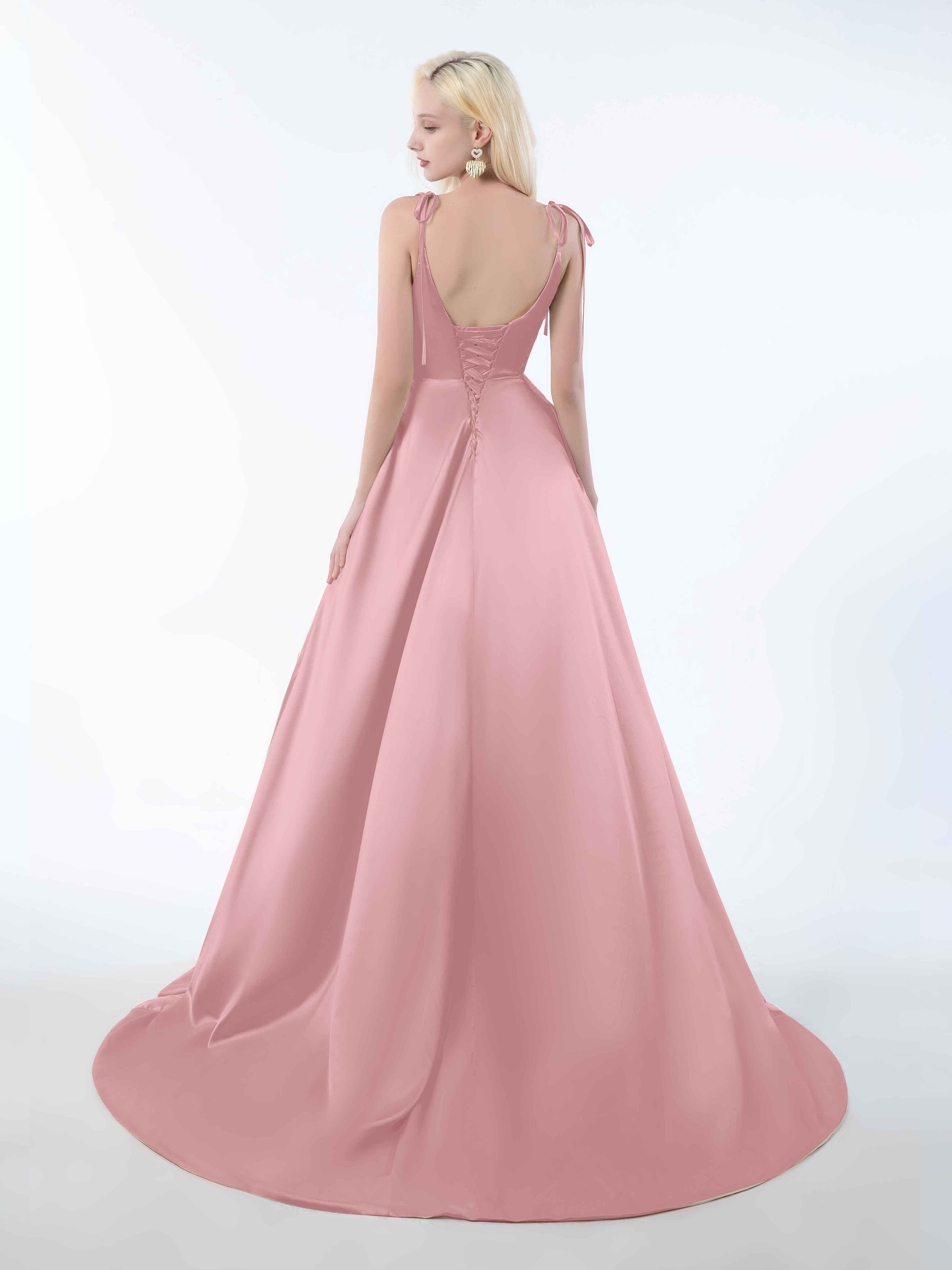 Experience the allure of the Brynlee dress, exquisitely crafted from high-quality satin fabric. The flattering ruched corset back, delicate spaghetti straps, and floor-length A-line skirt create a mesmerizing silhouette. Perfect for bridesmaids, proms, and other special occasions, these elegant dresses are available in a wide range of captivating colors.