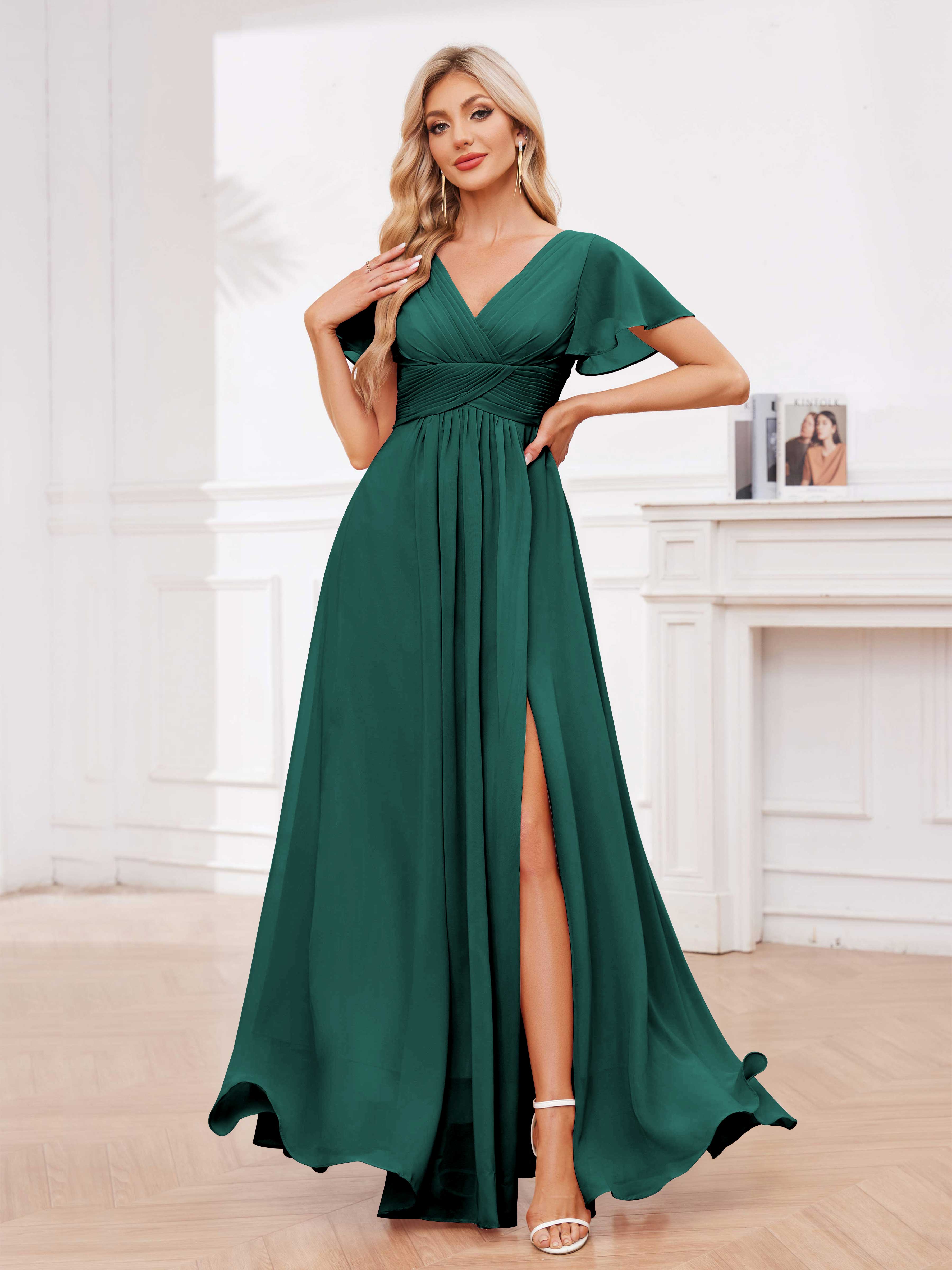 Calliope Modest A-Line Pleated Long Chiffon Bridesmaid Dresses