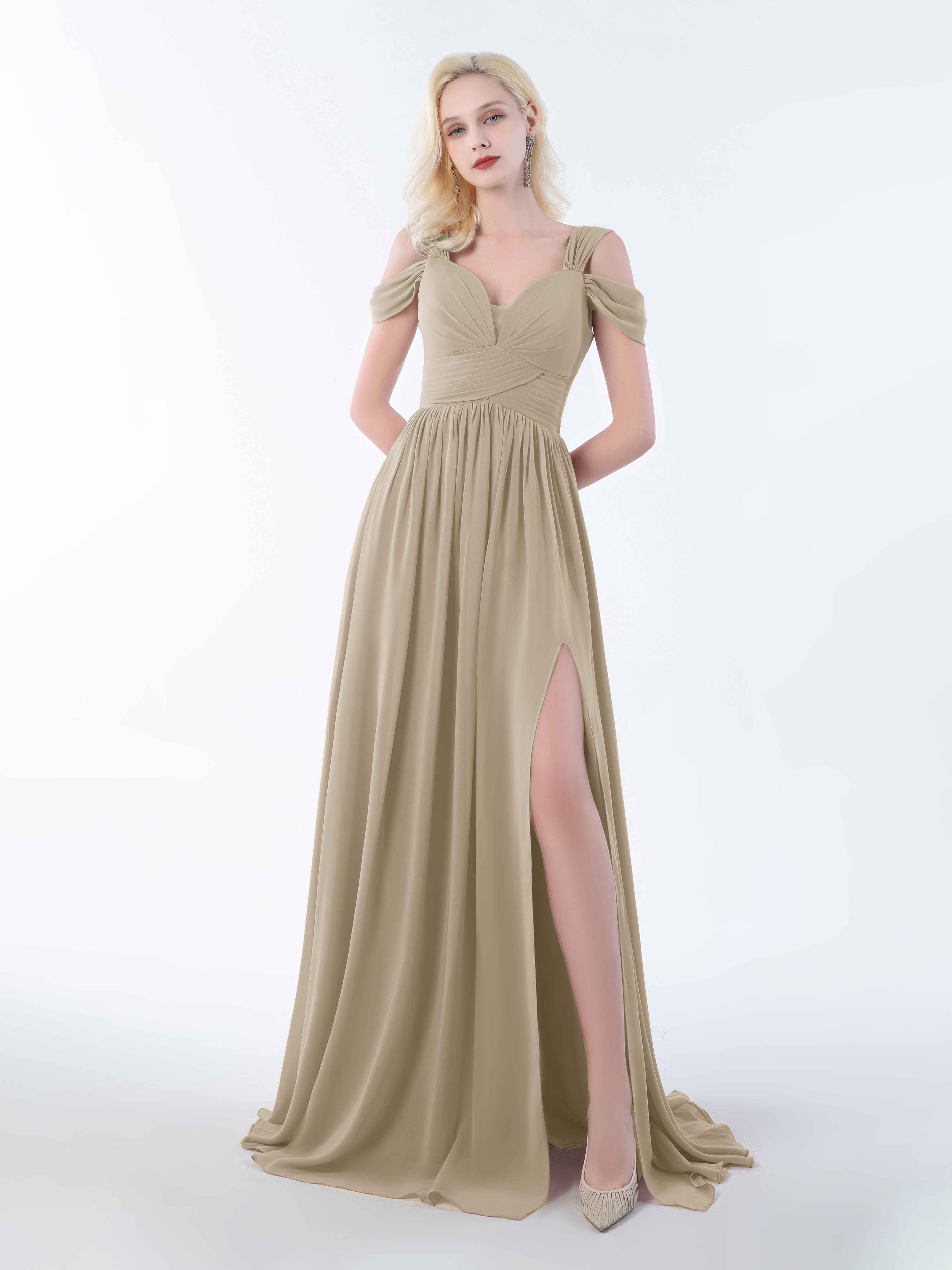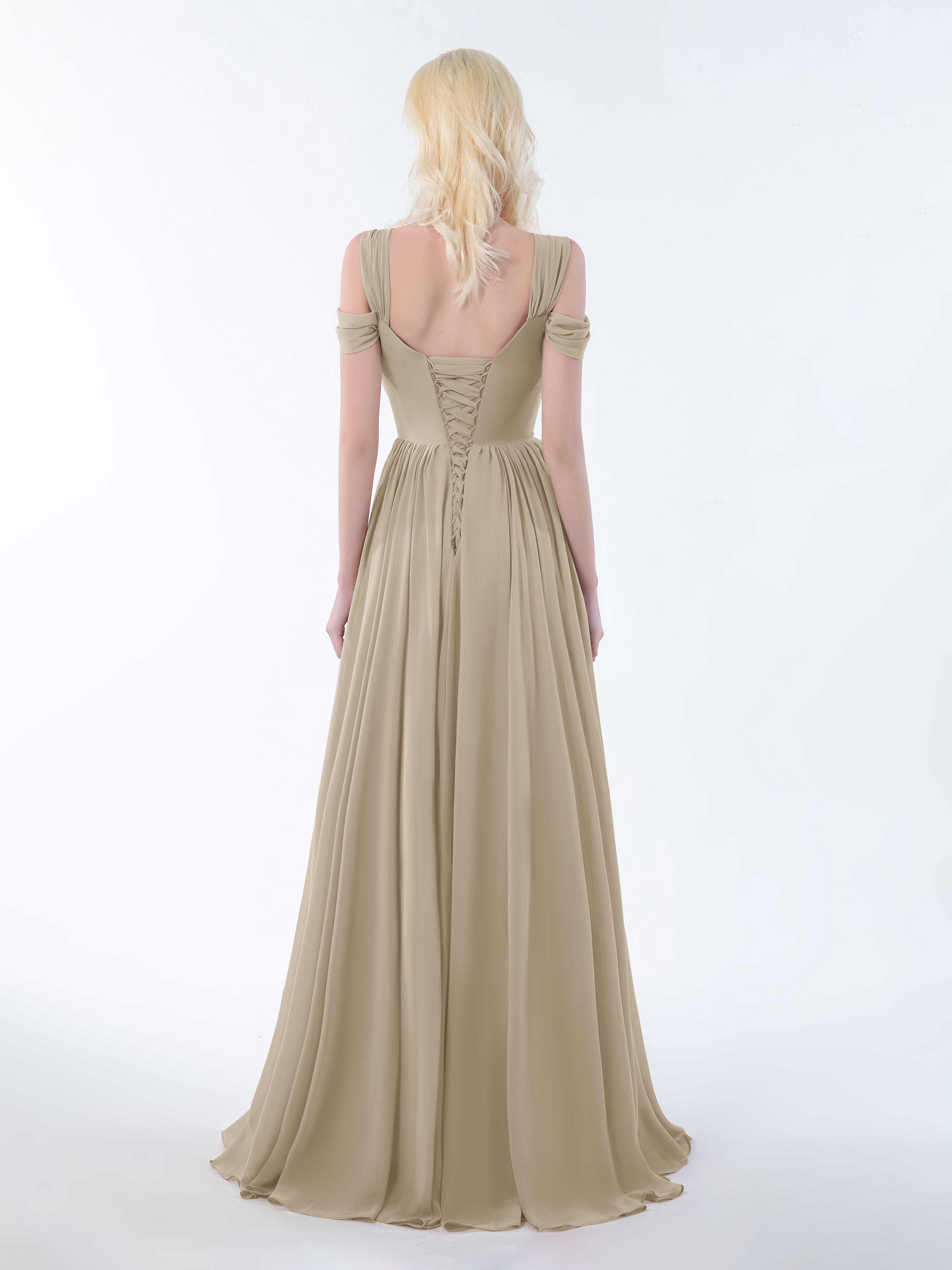 Catalina A-Line Corset Back Pleated Long Chiffon Bridesmaid Dresses