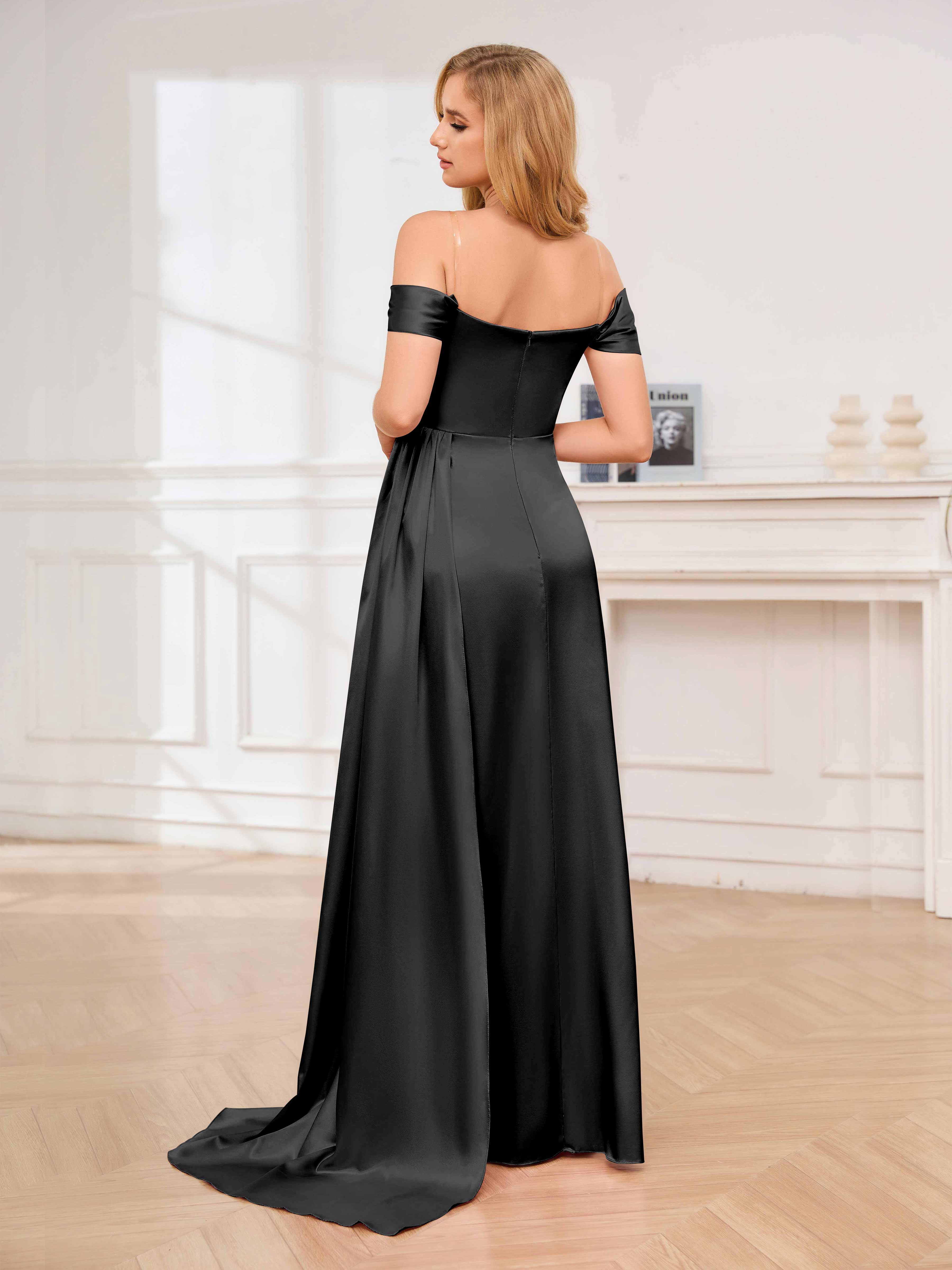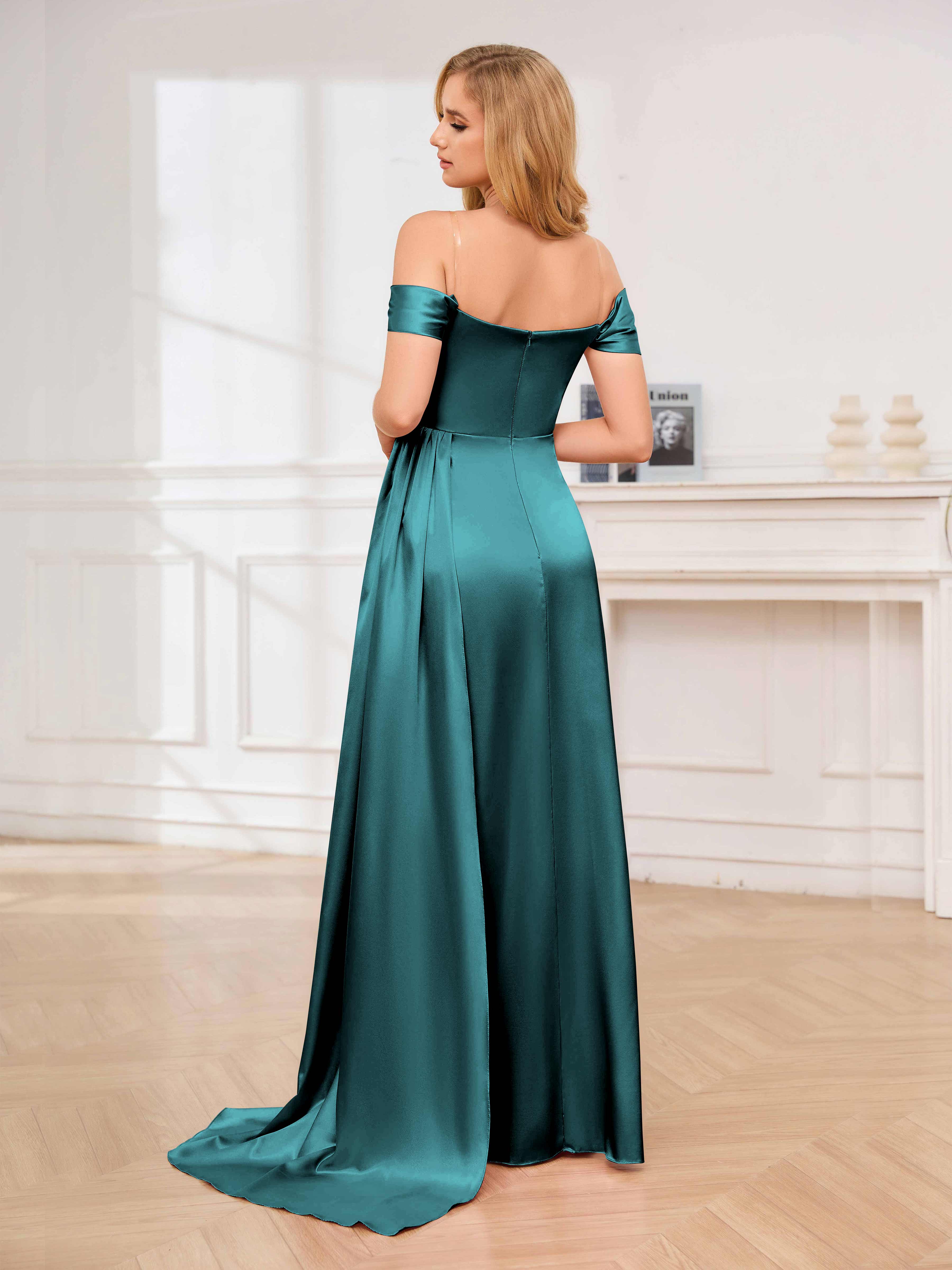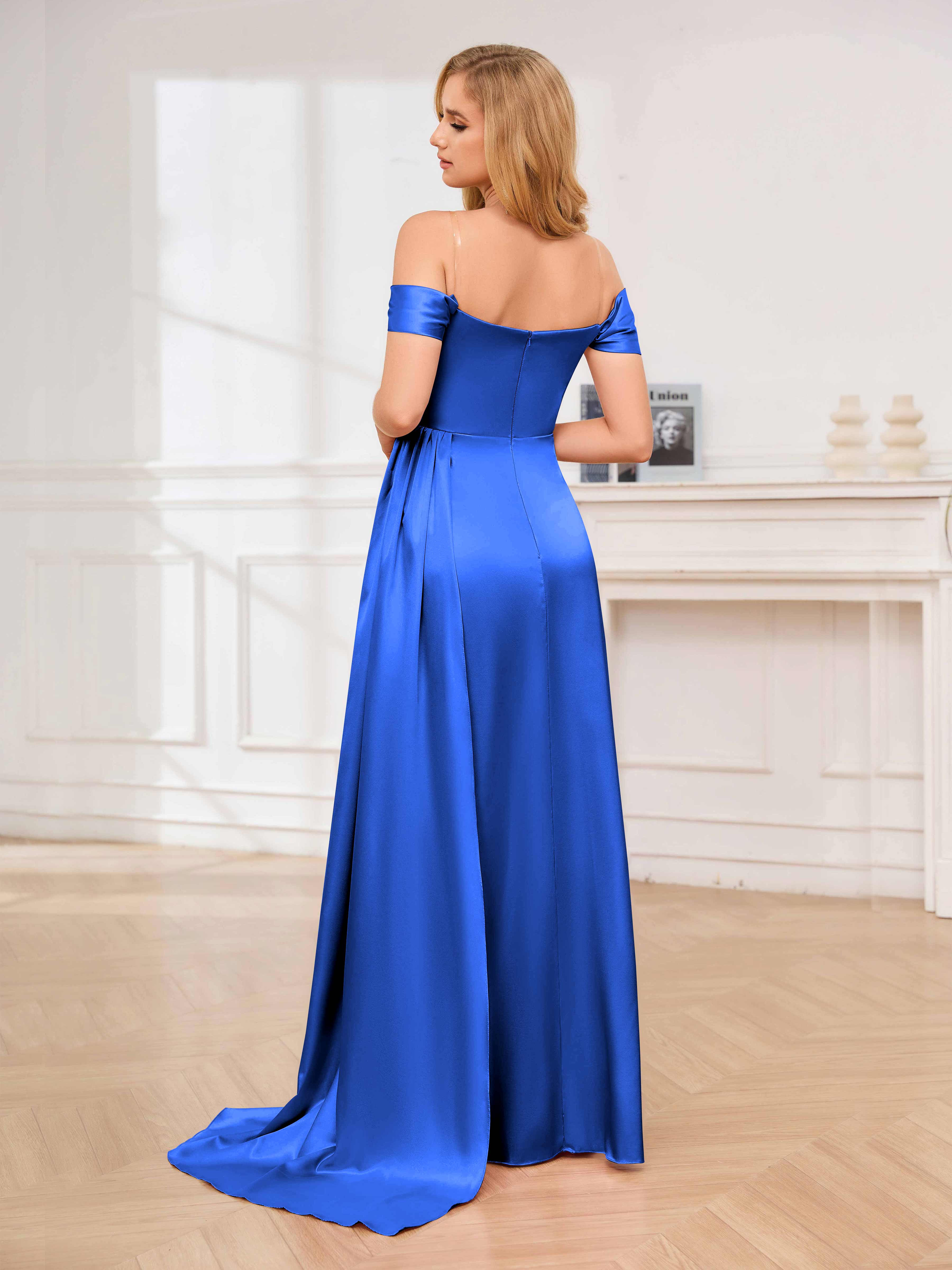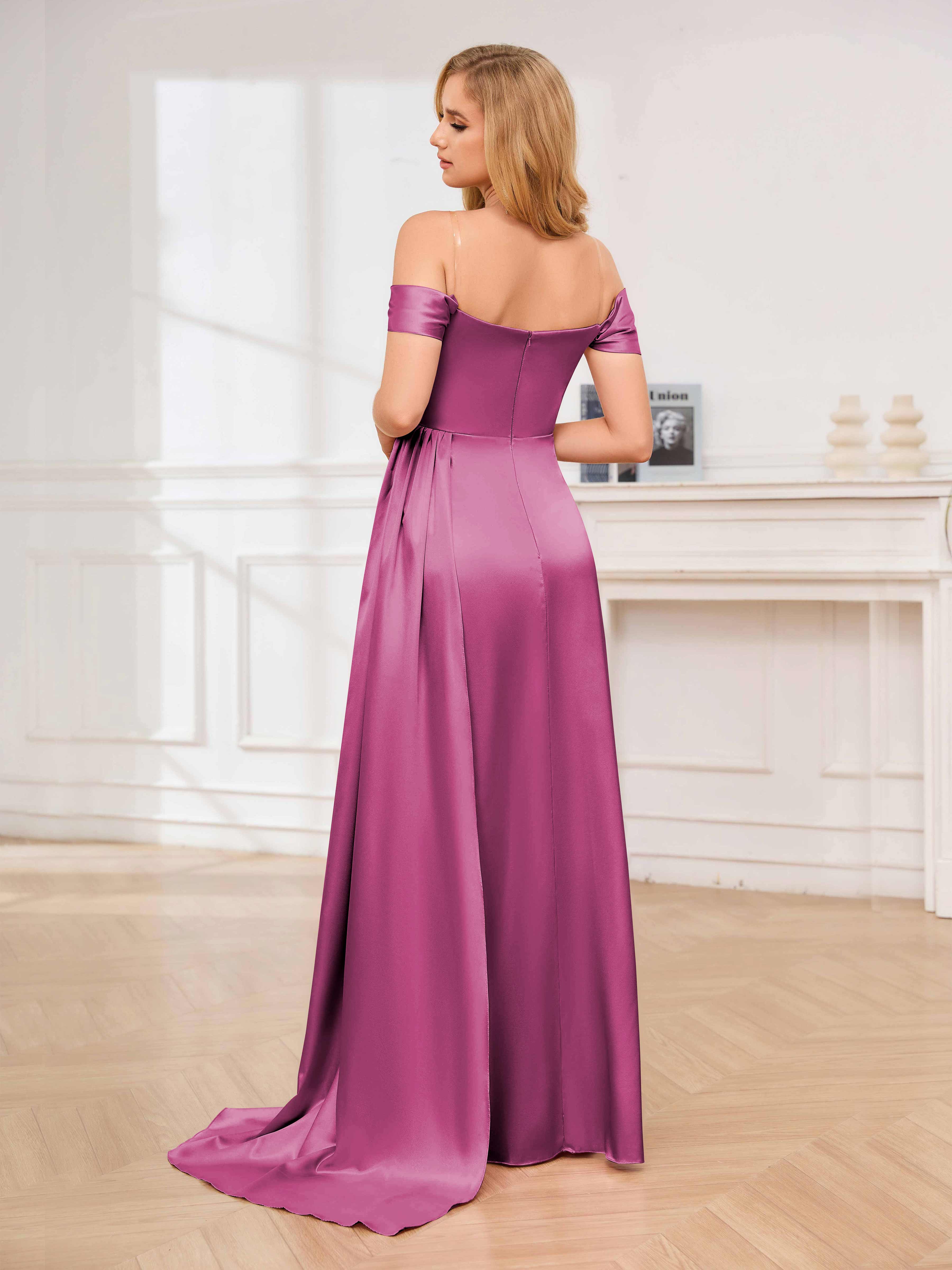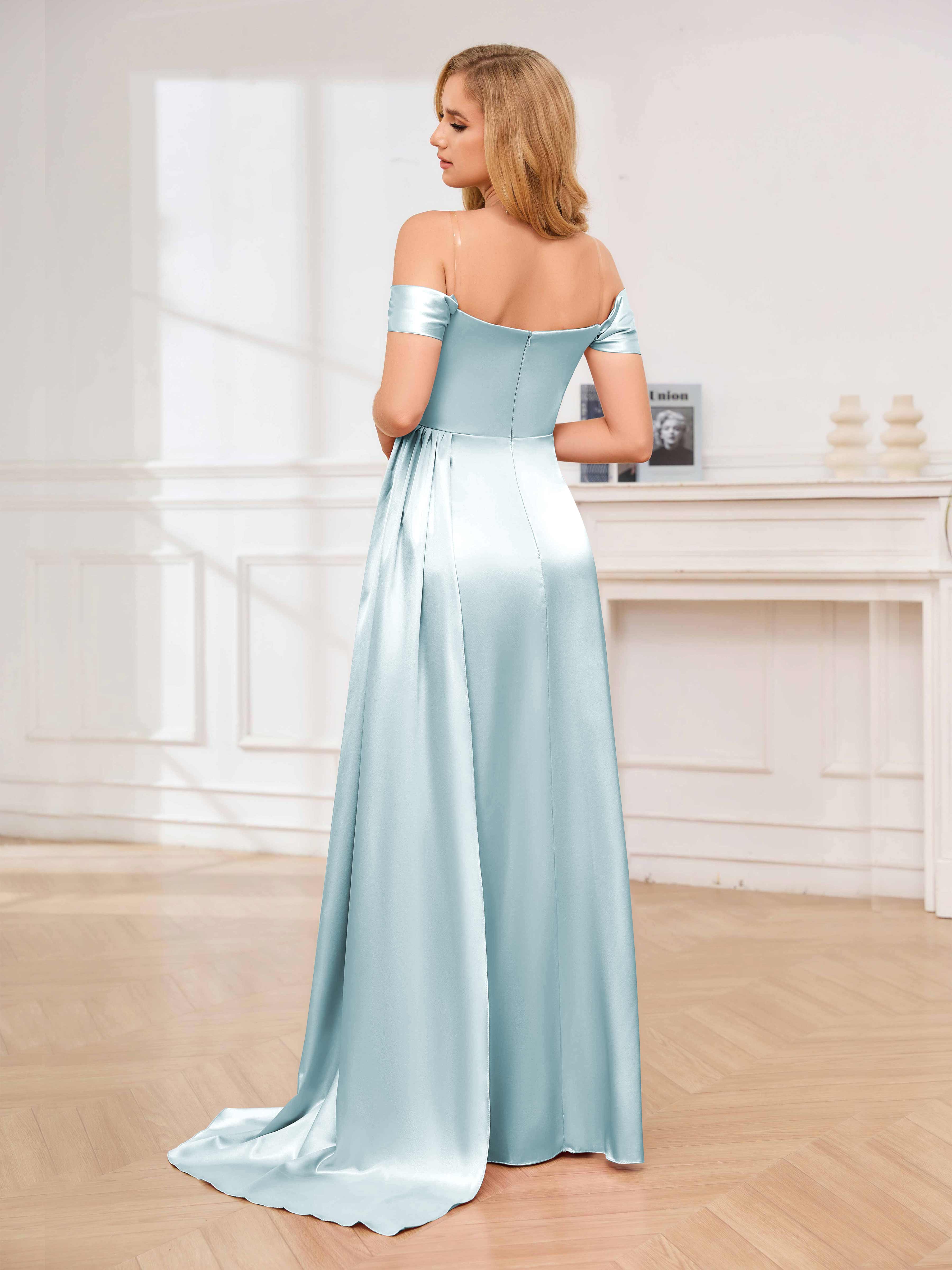 Cecelia Dreamy Off the Shoulder Pleated Long Formal Dresses