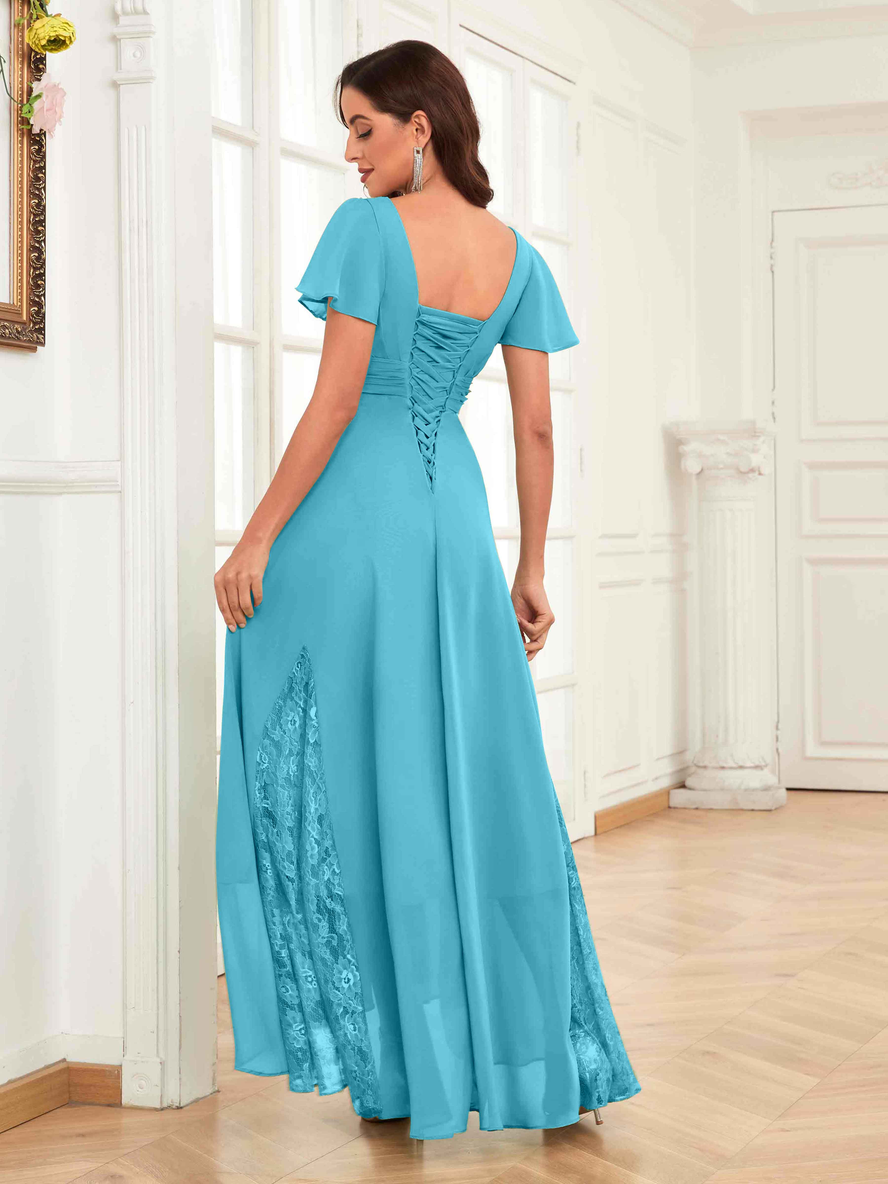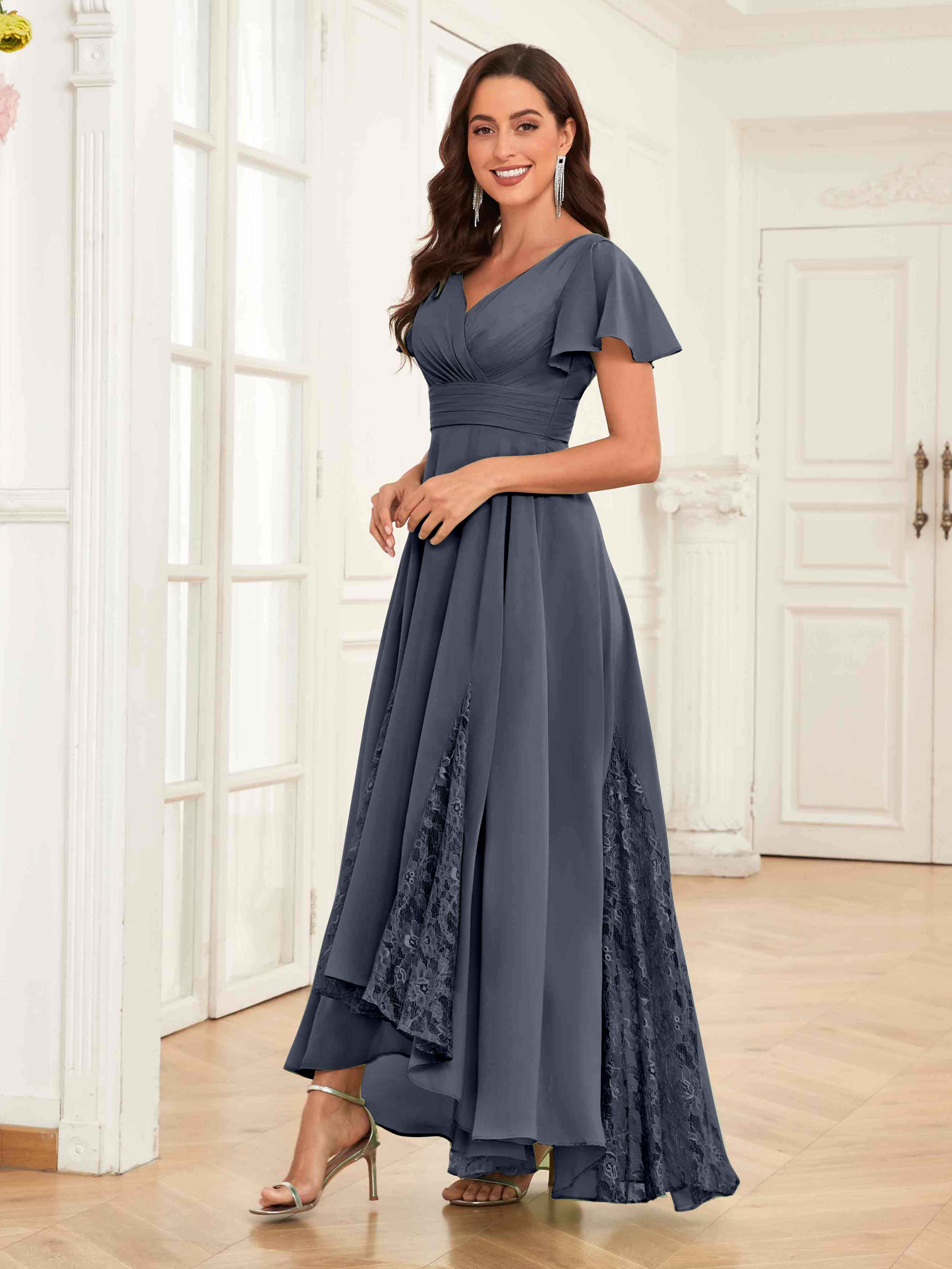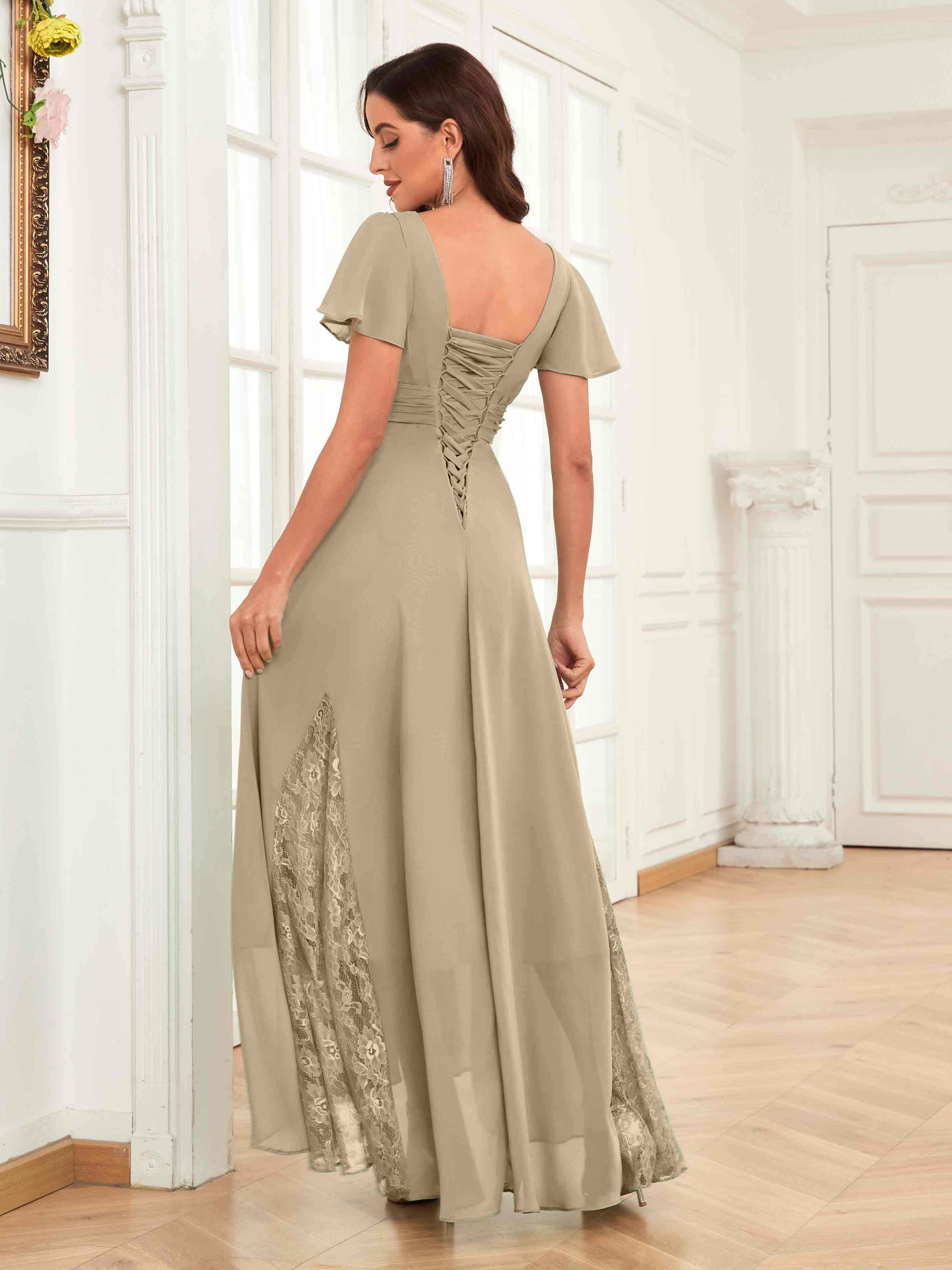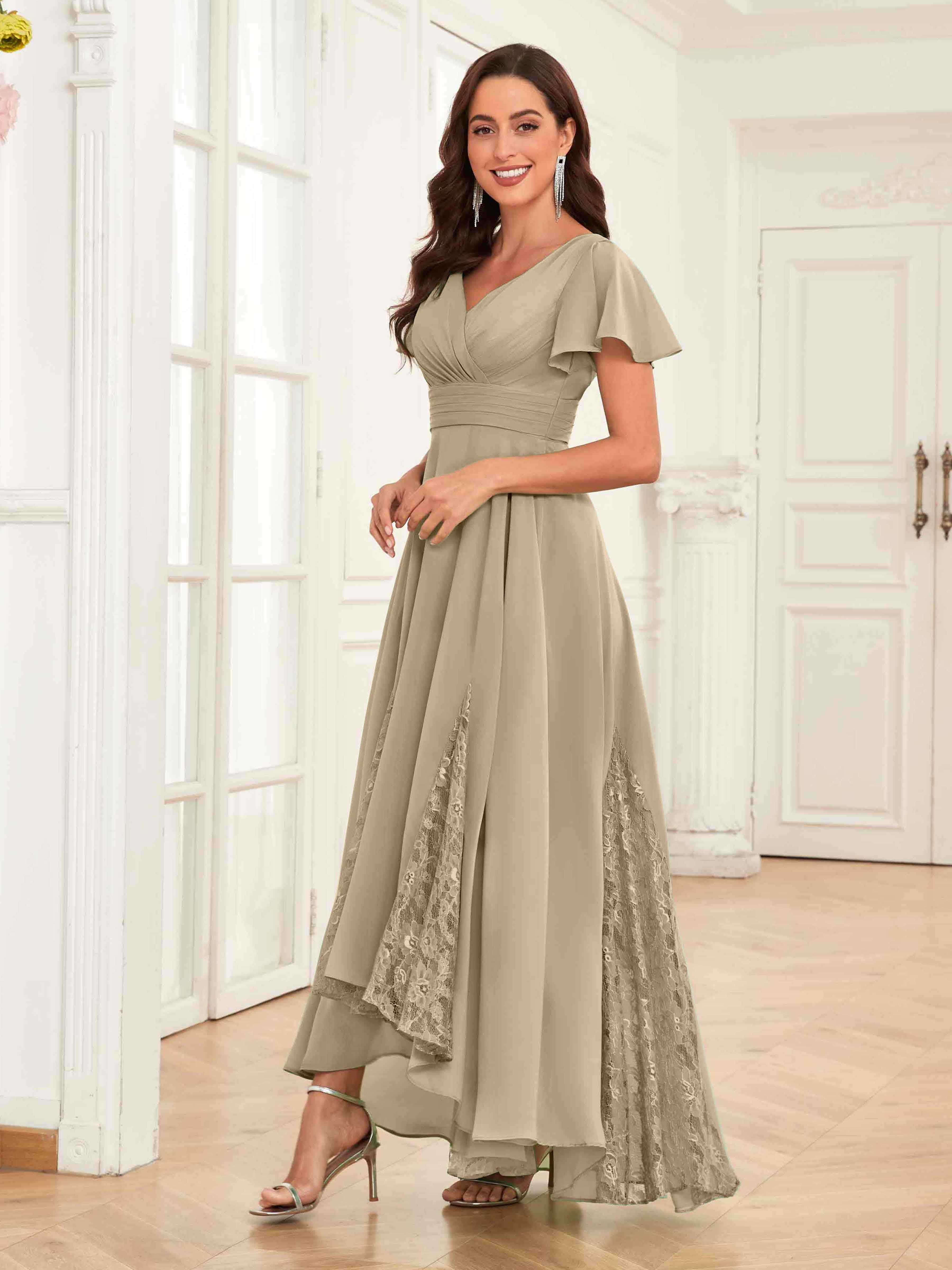 Charlee Graceful Ruched Lace Hem Mother Of The Bride Dresses with Cap Sleeves