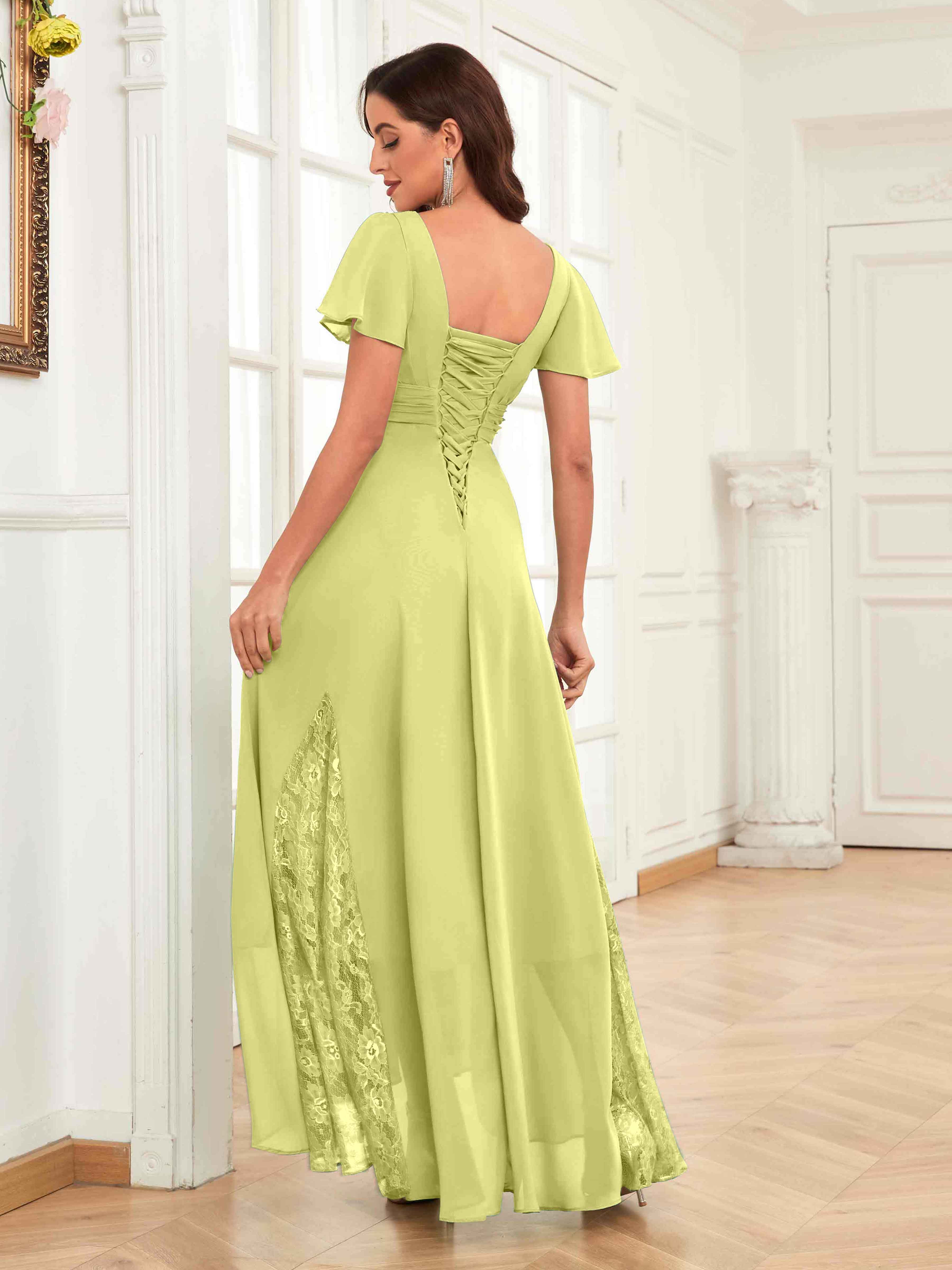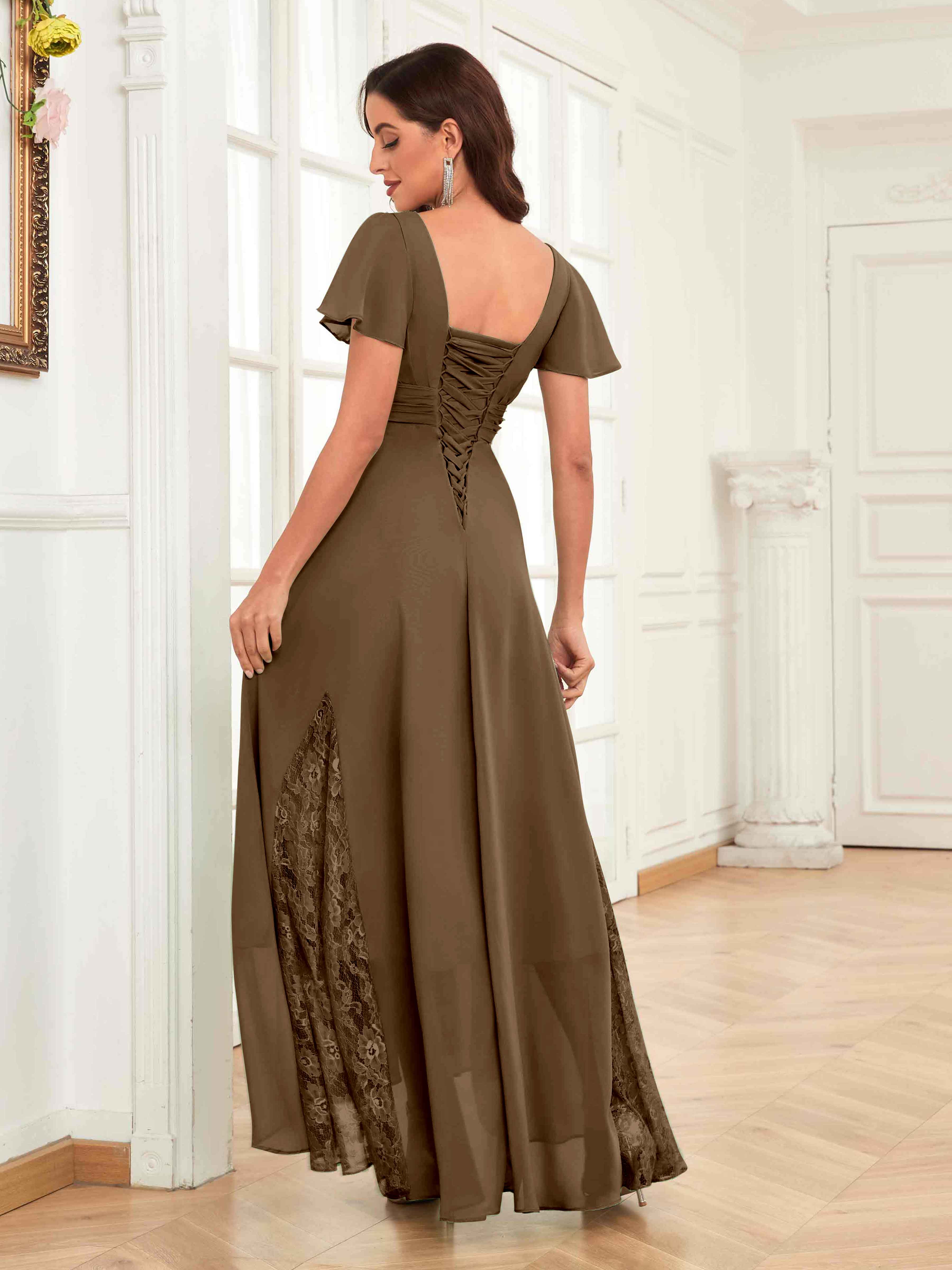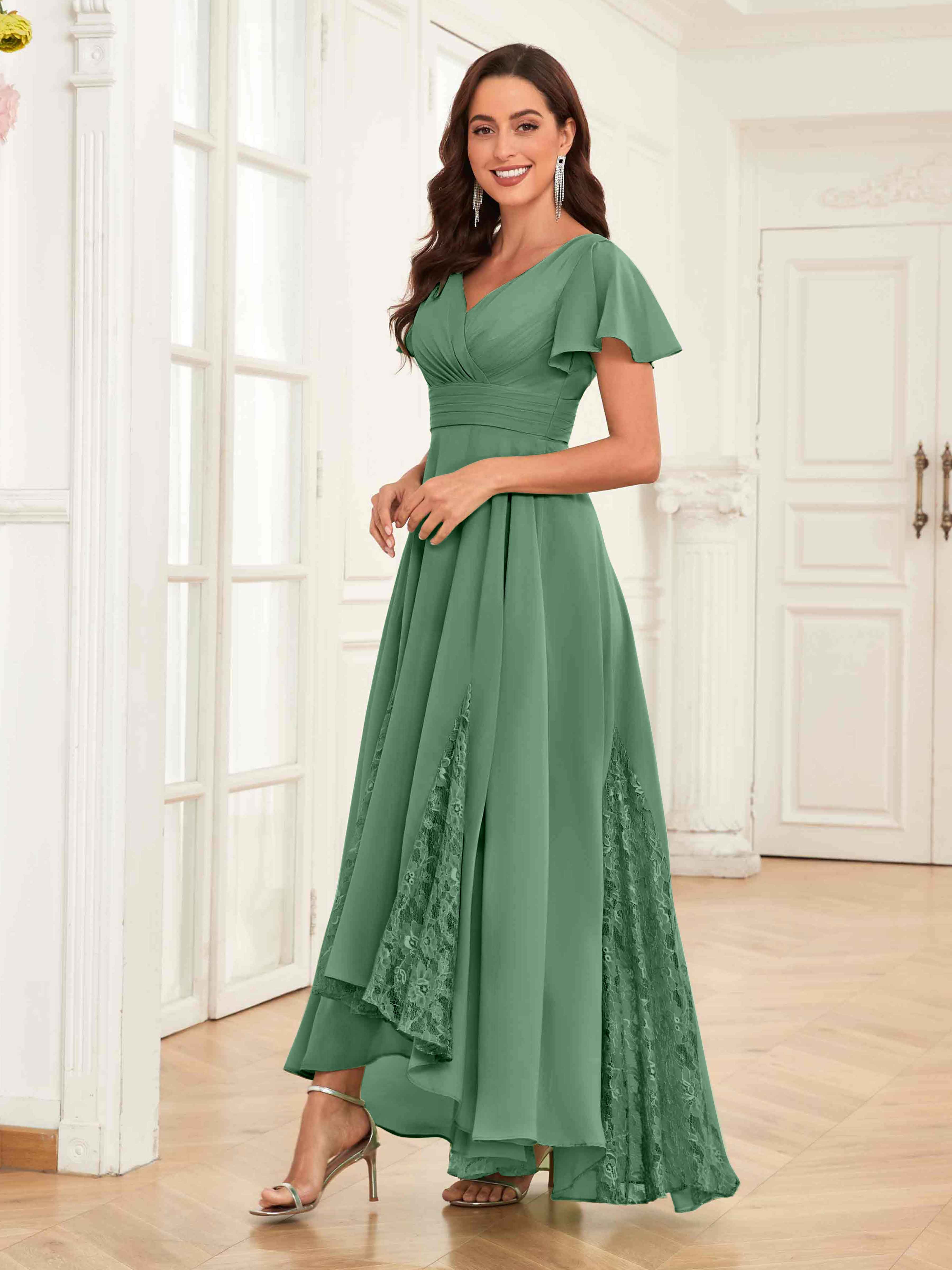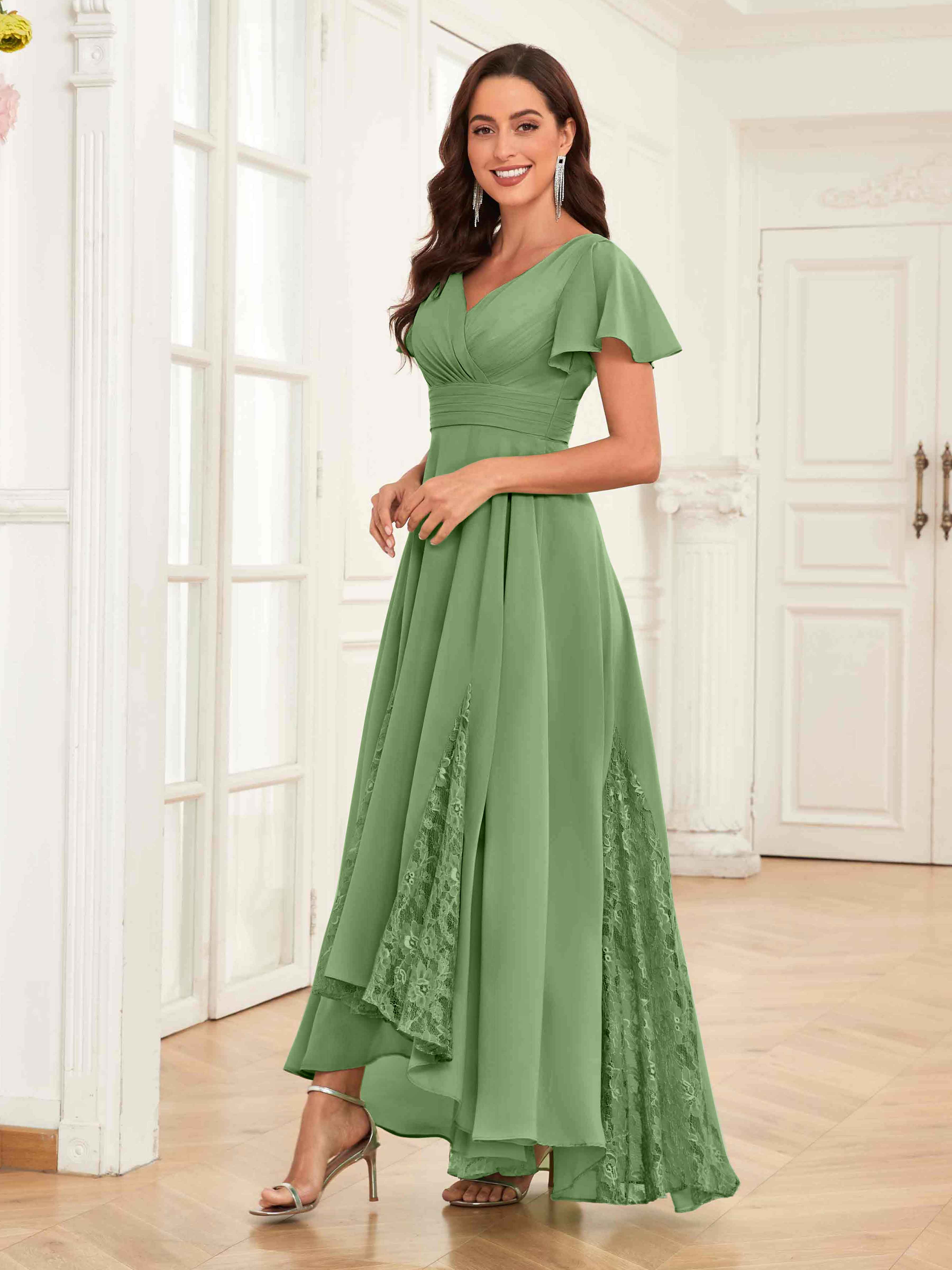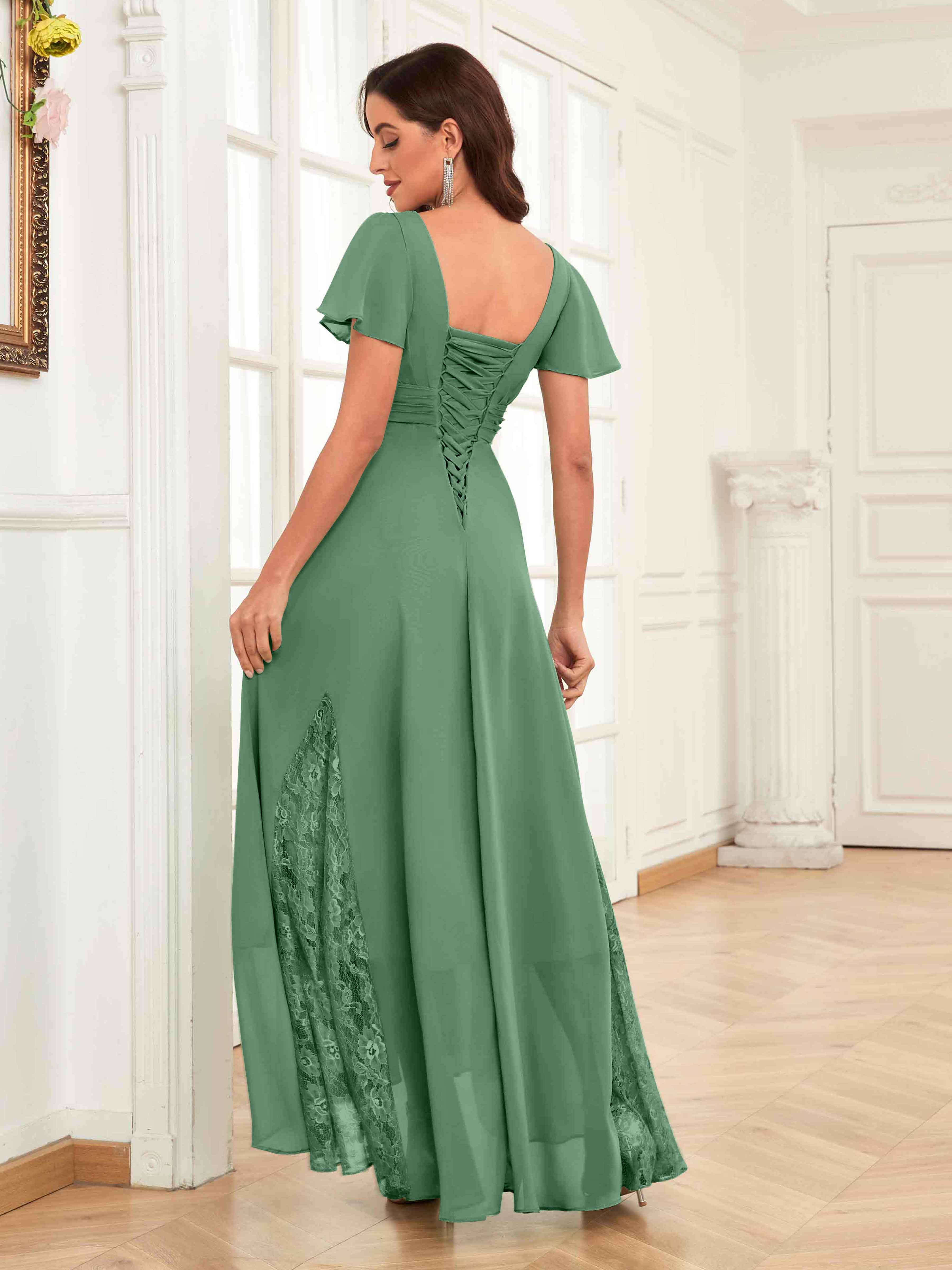 Charlee Graceful Ruched Lace Hem Mother Of The Bride Dresses with Cap Sleeves