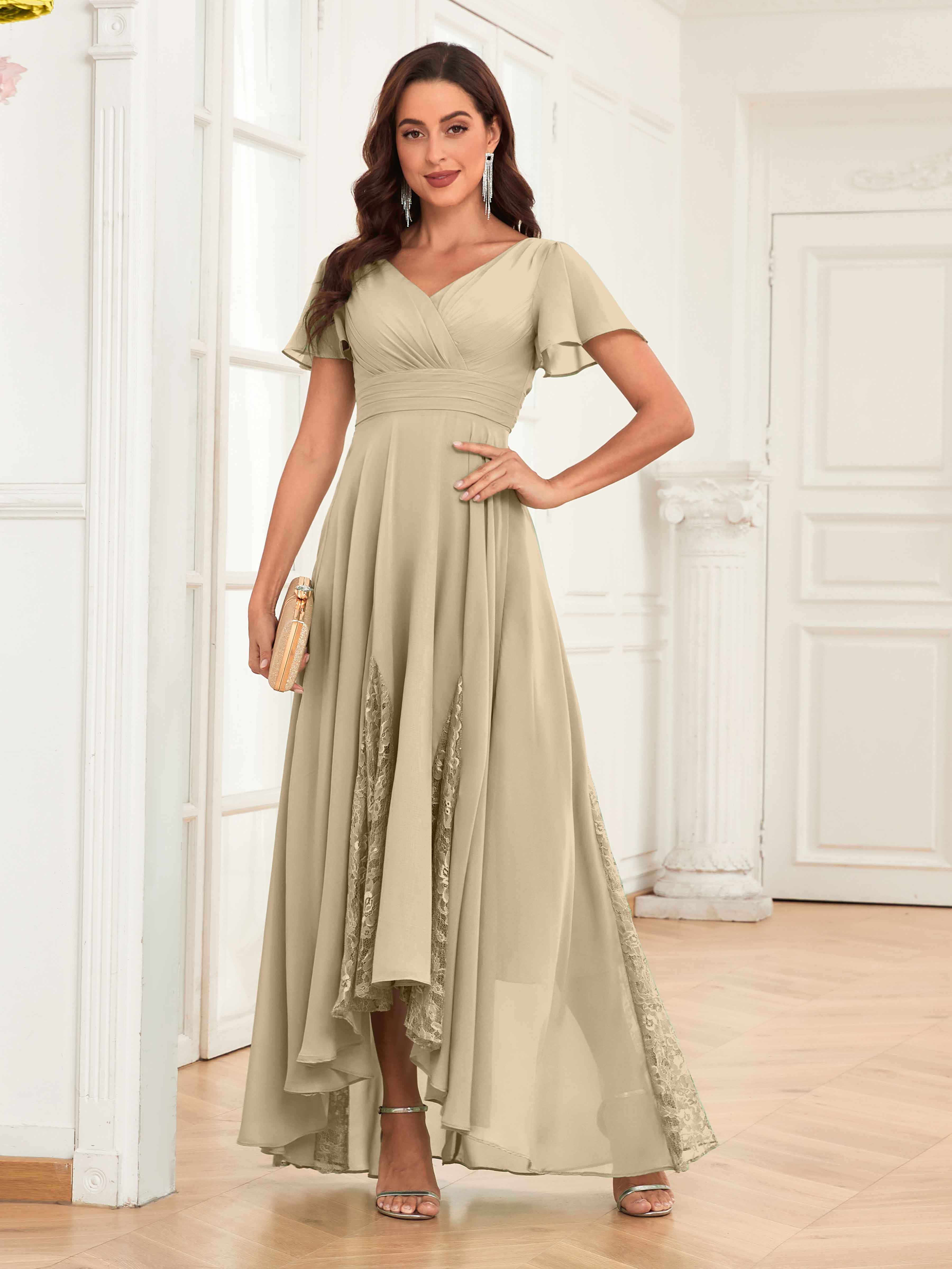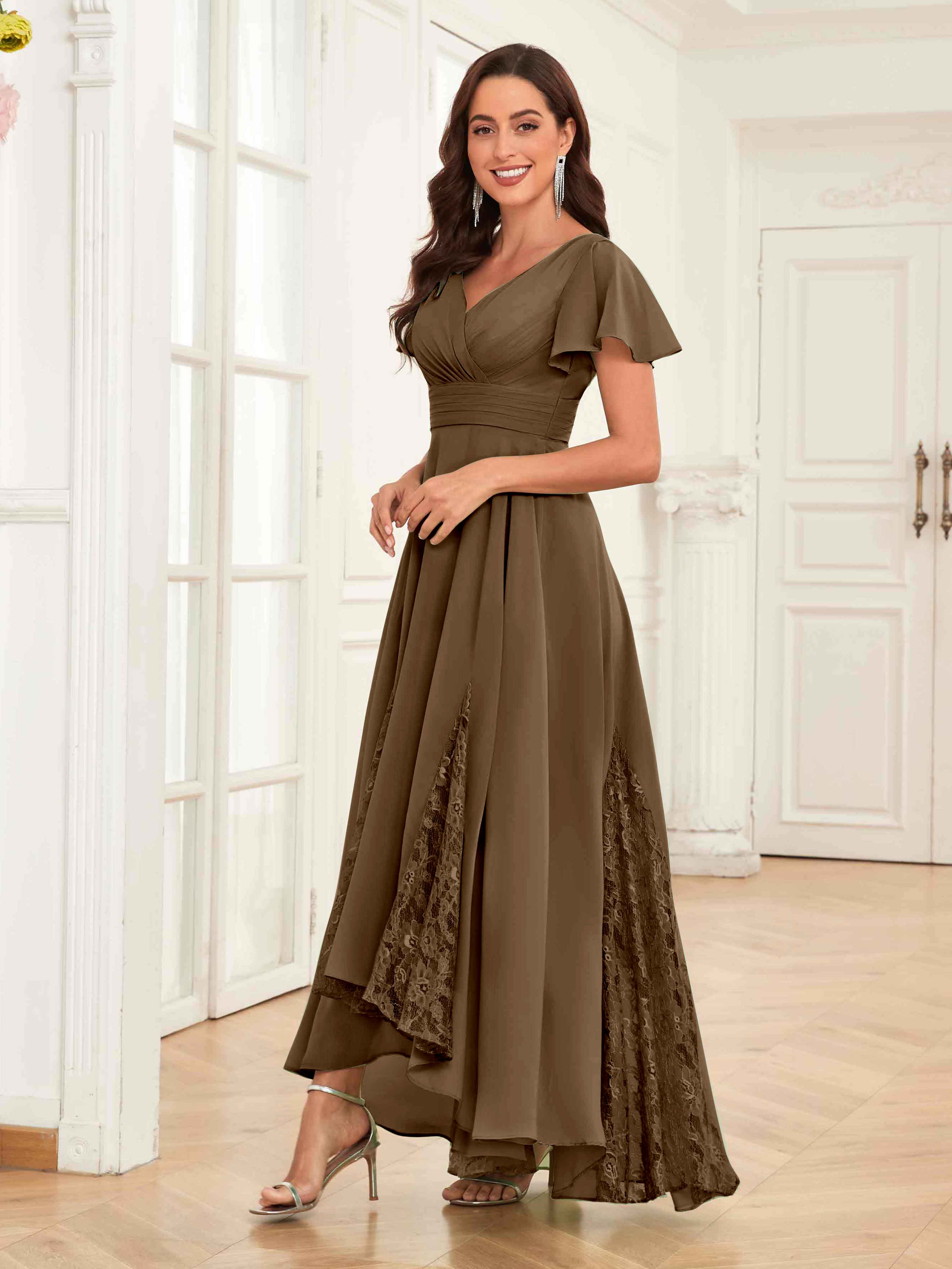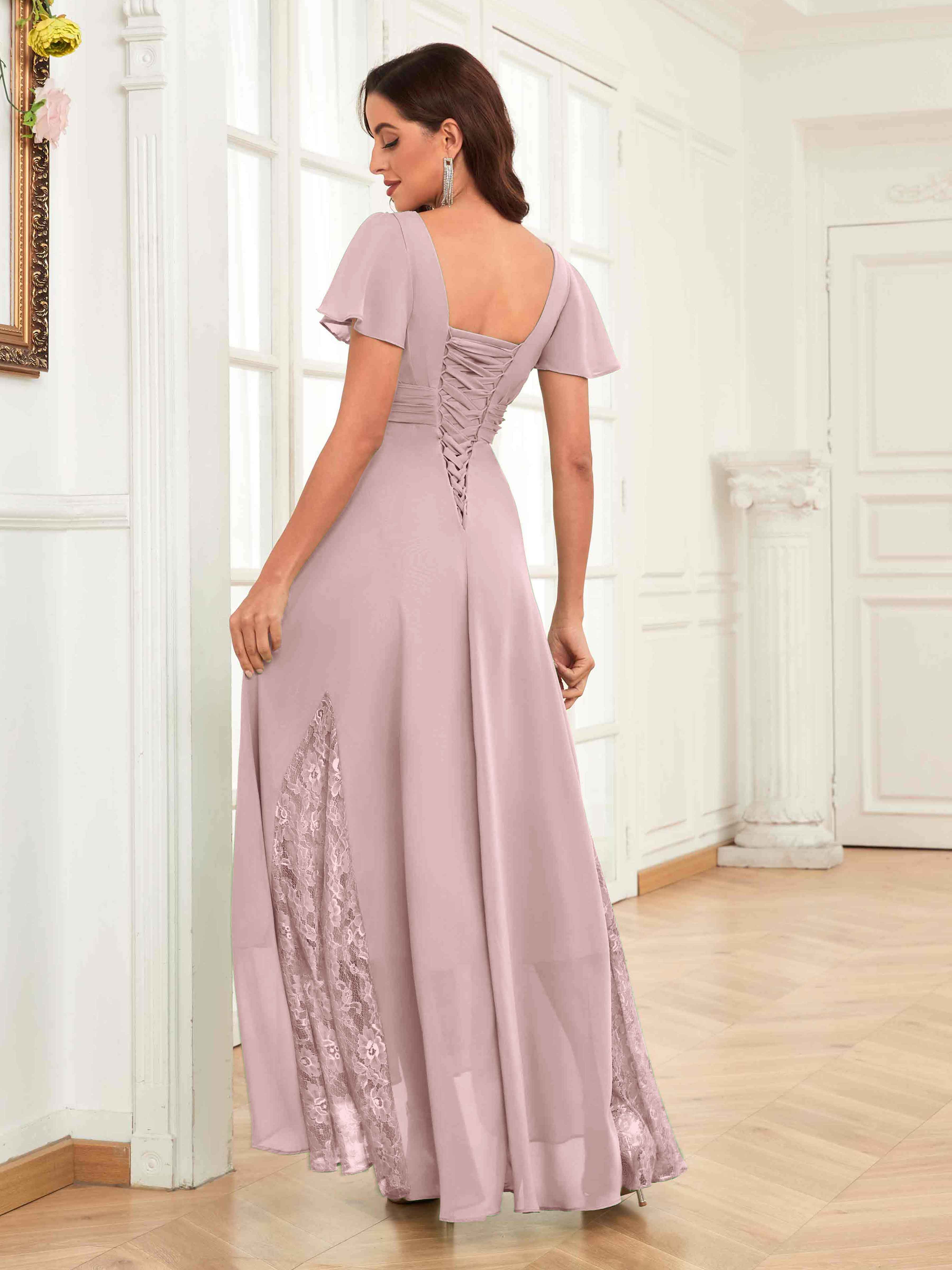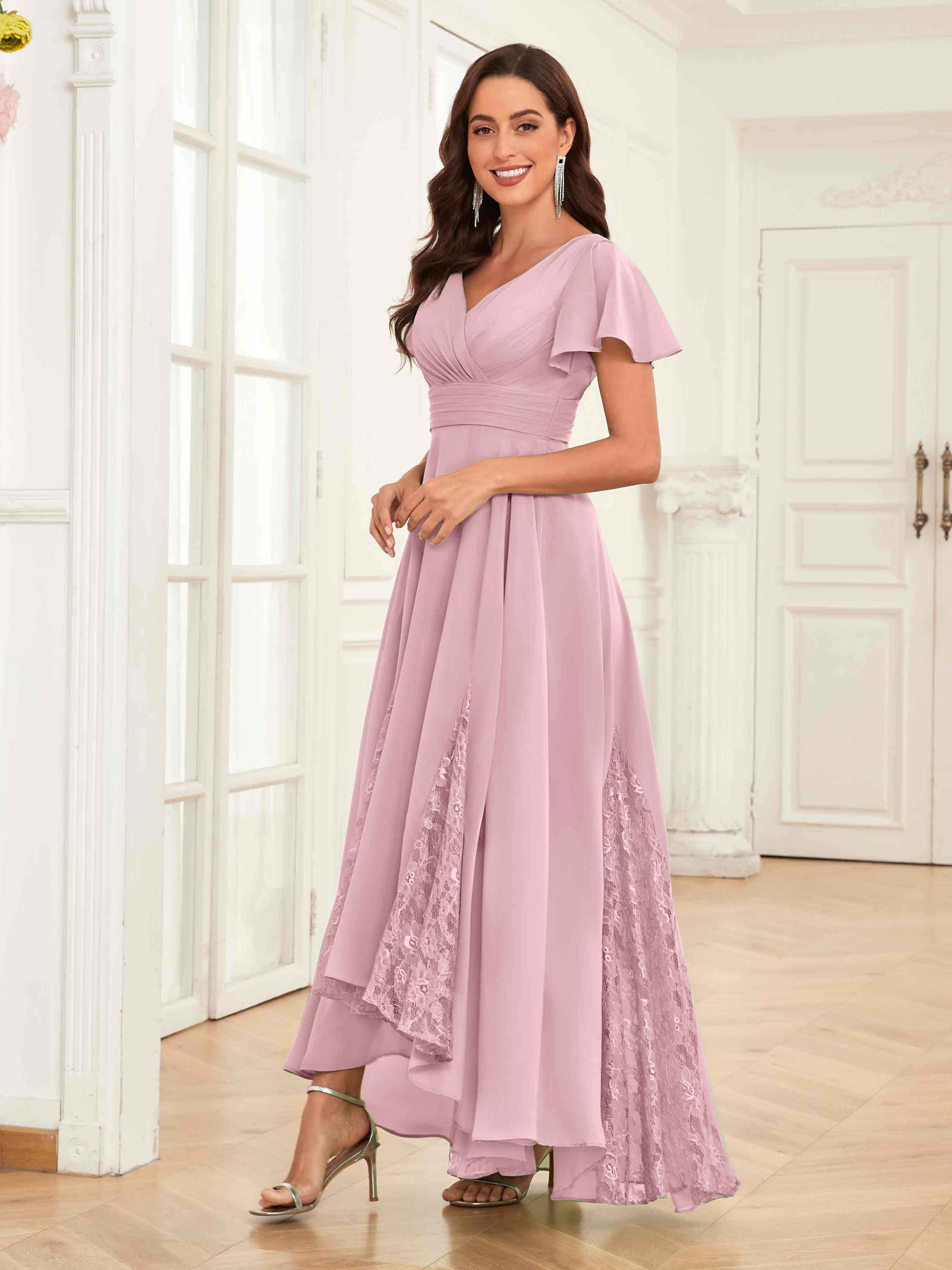 Charlee Graceful Ruched Lace Hem Mother Of The Bride Dresses with Cap Sleeves