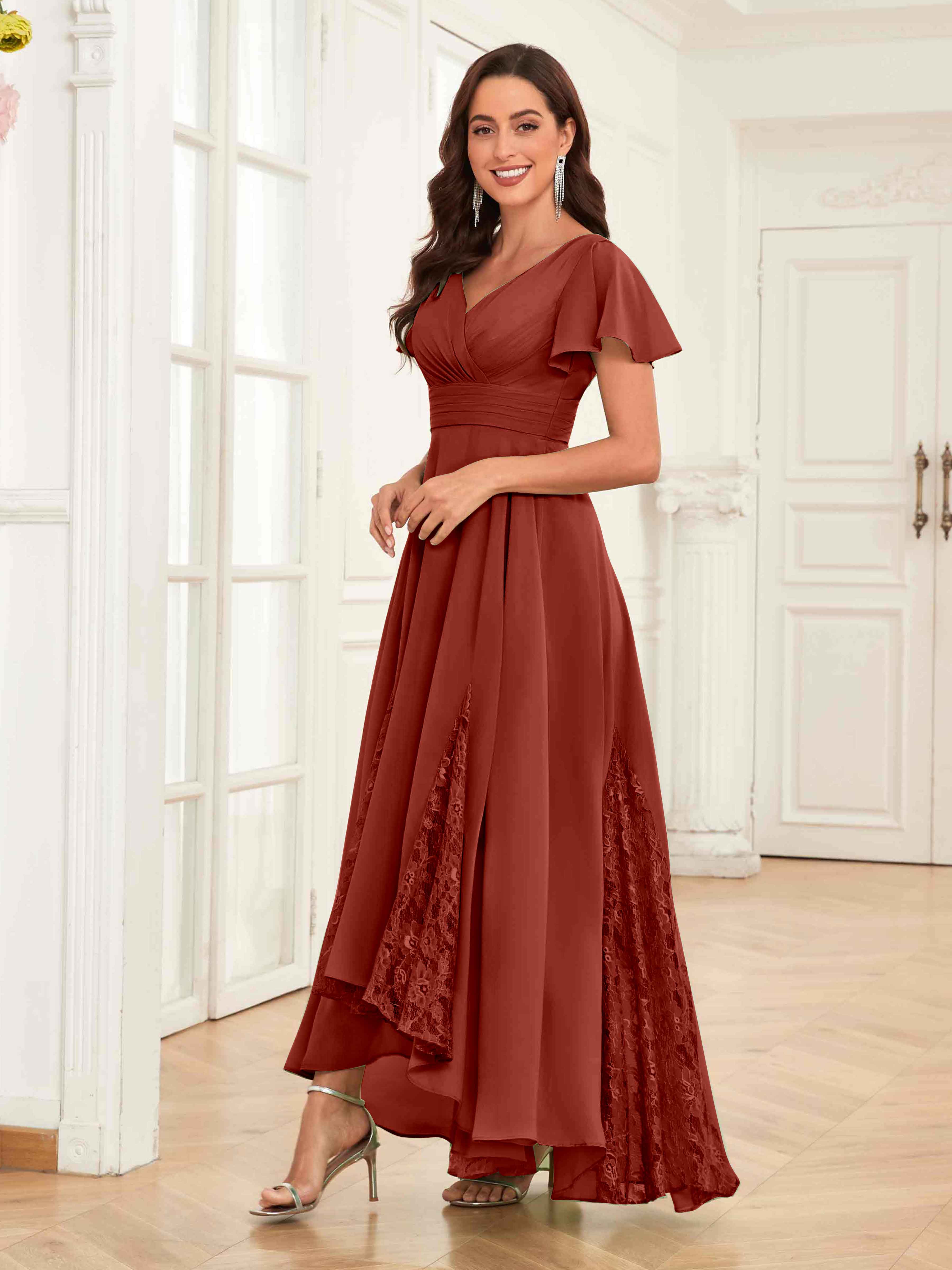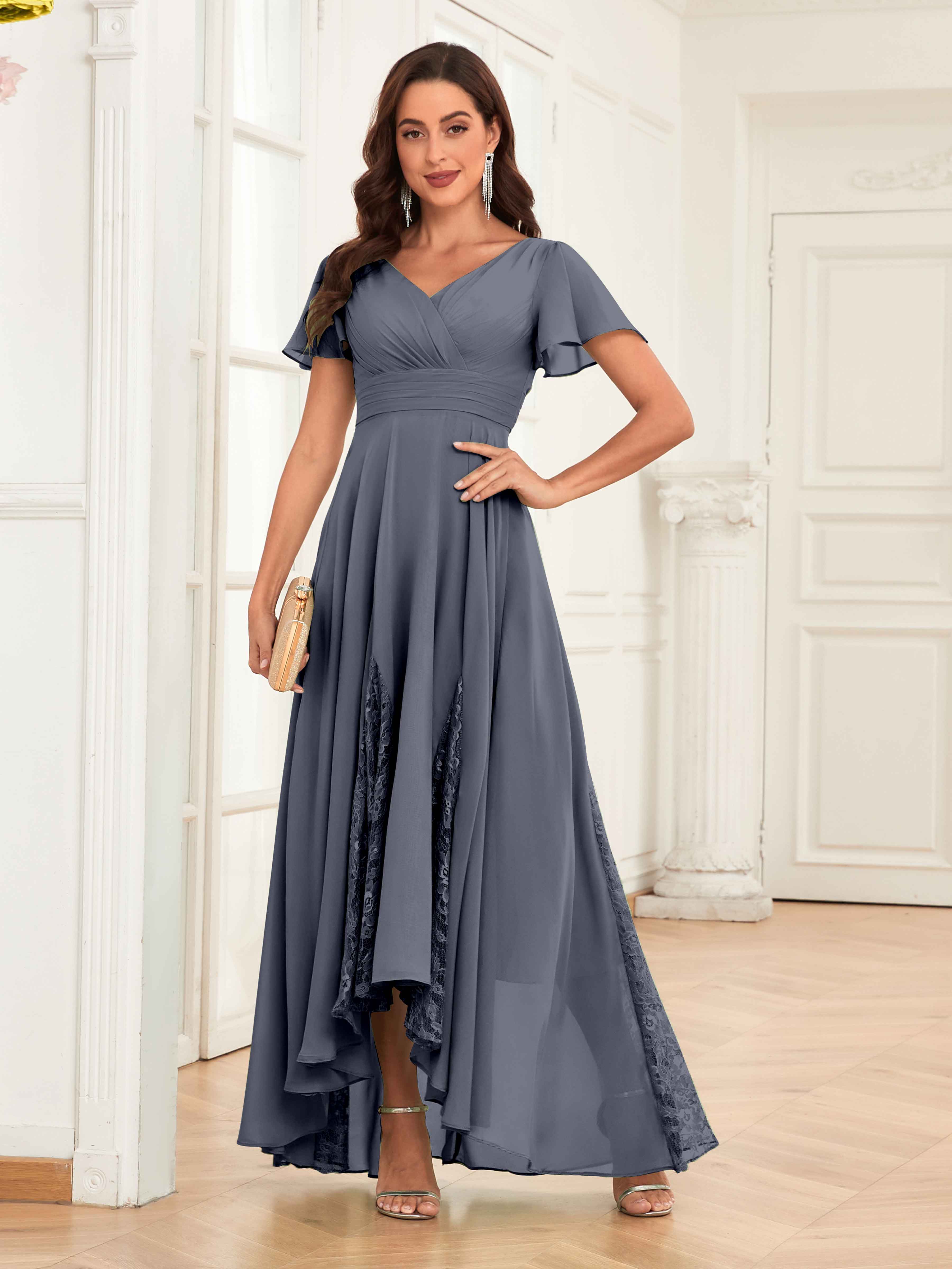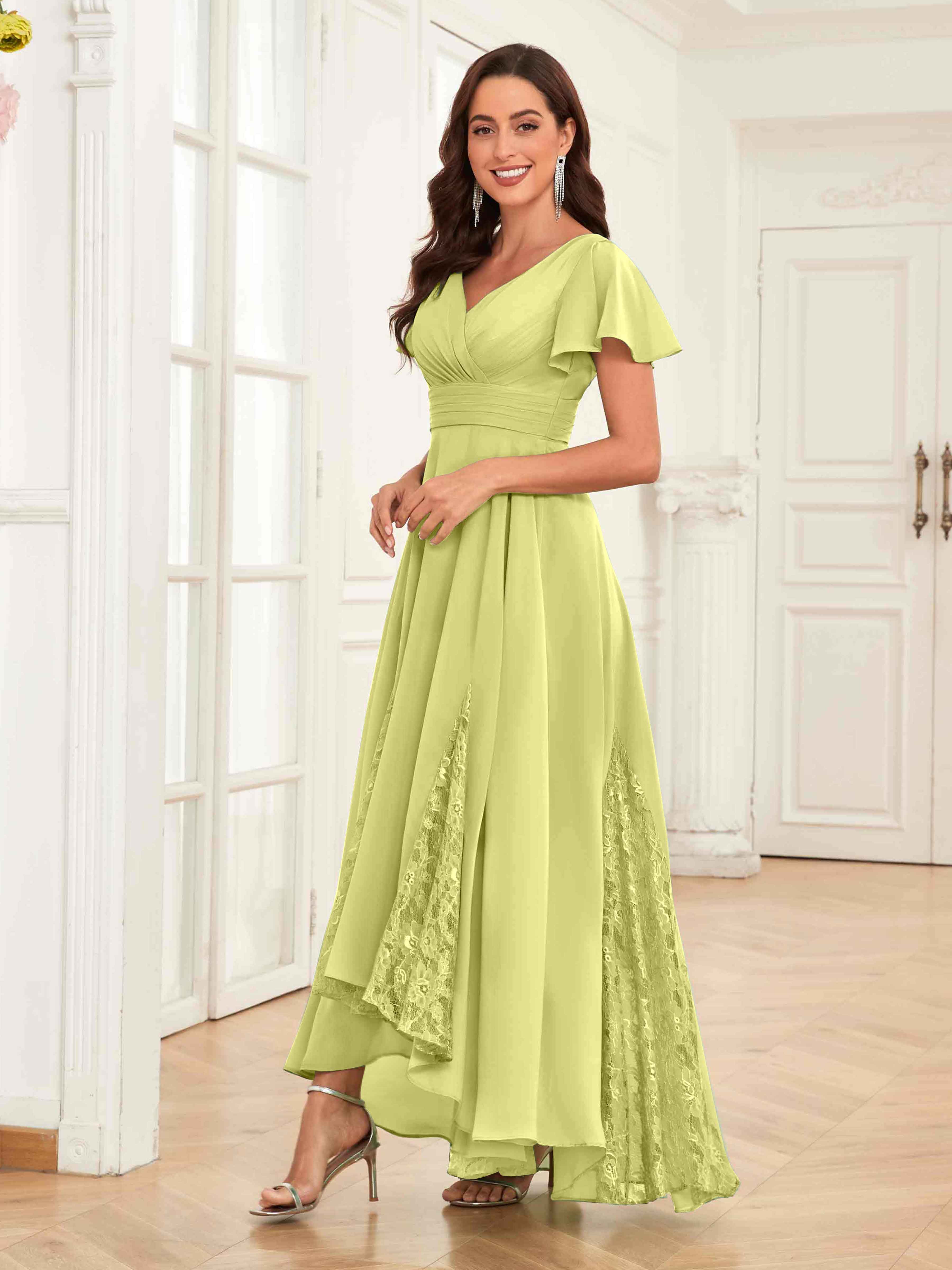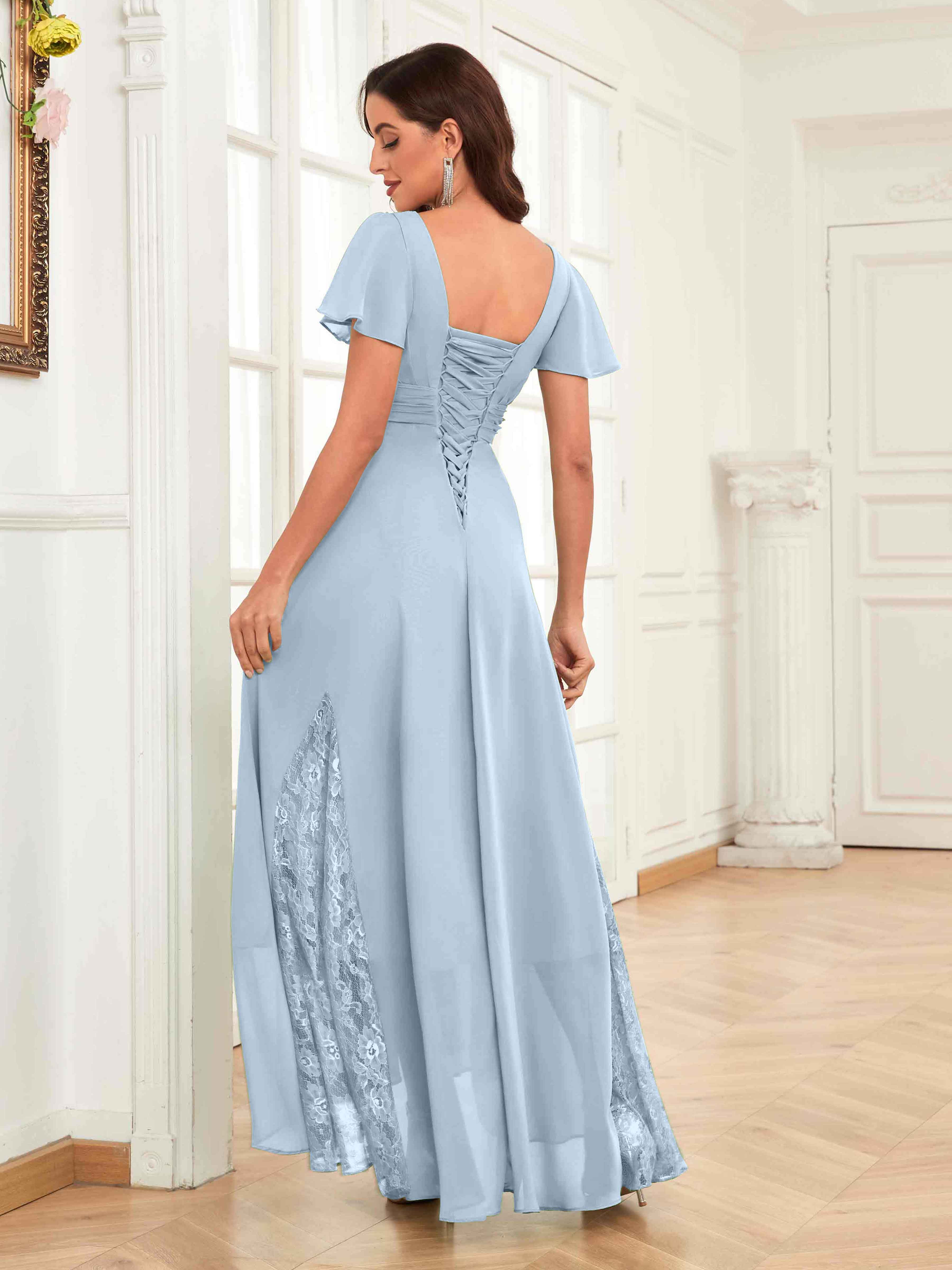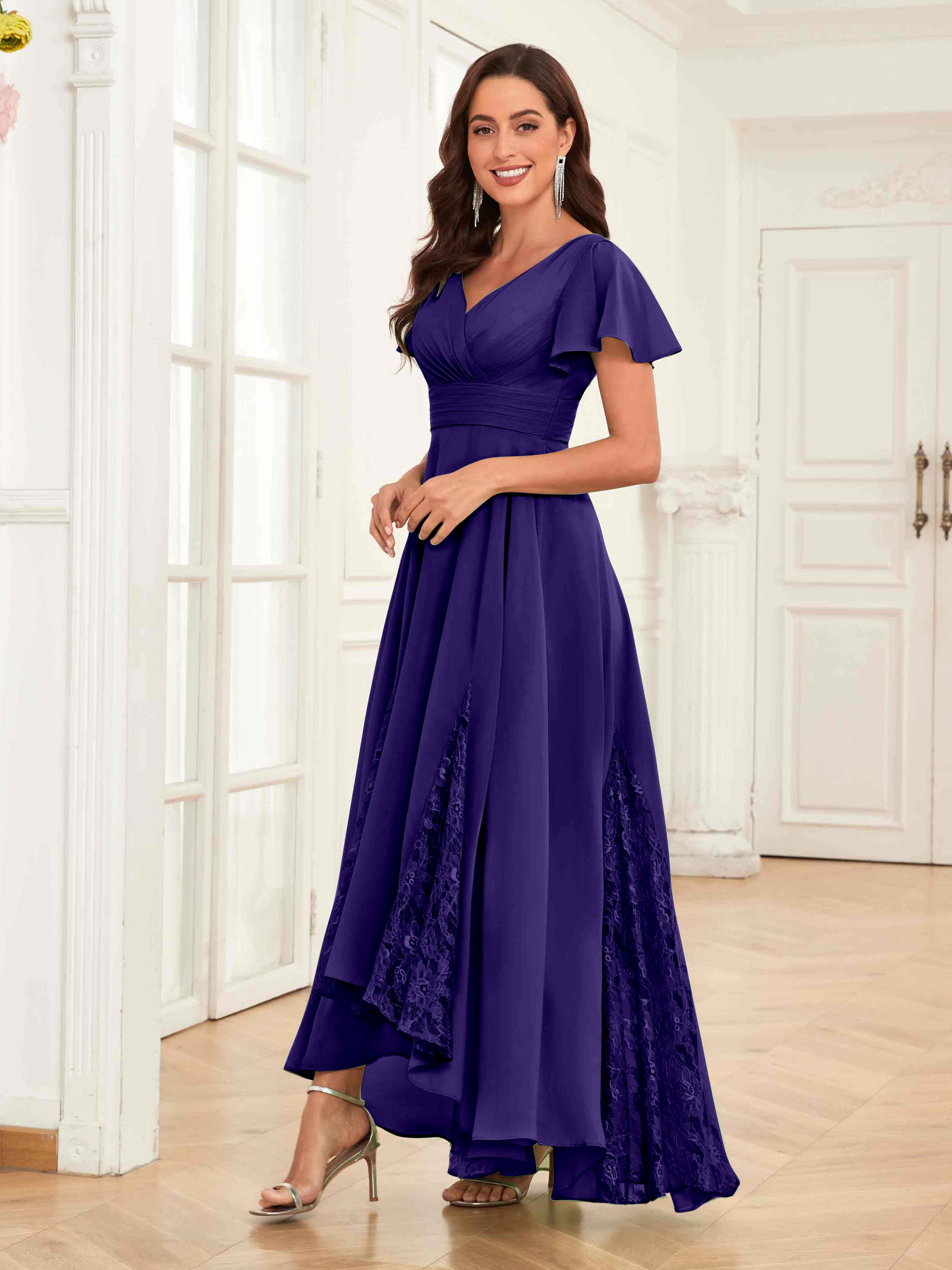Charlee Graceful Ruched Lace Hem Mother Of The Bride Dresses with Cap Sleeves